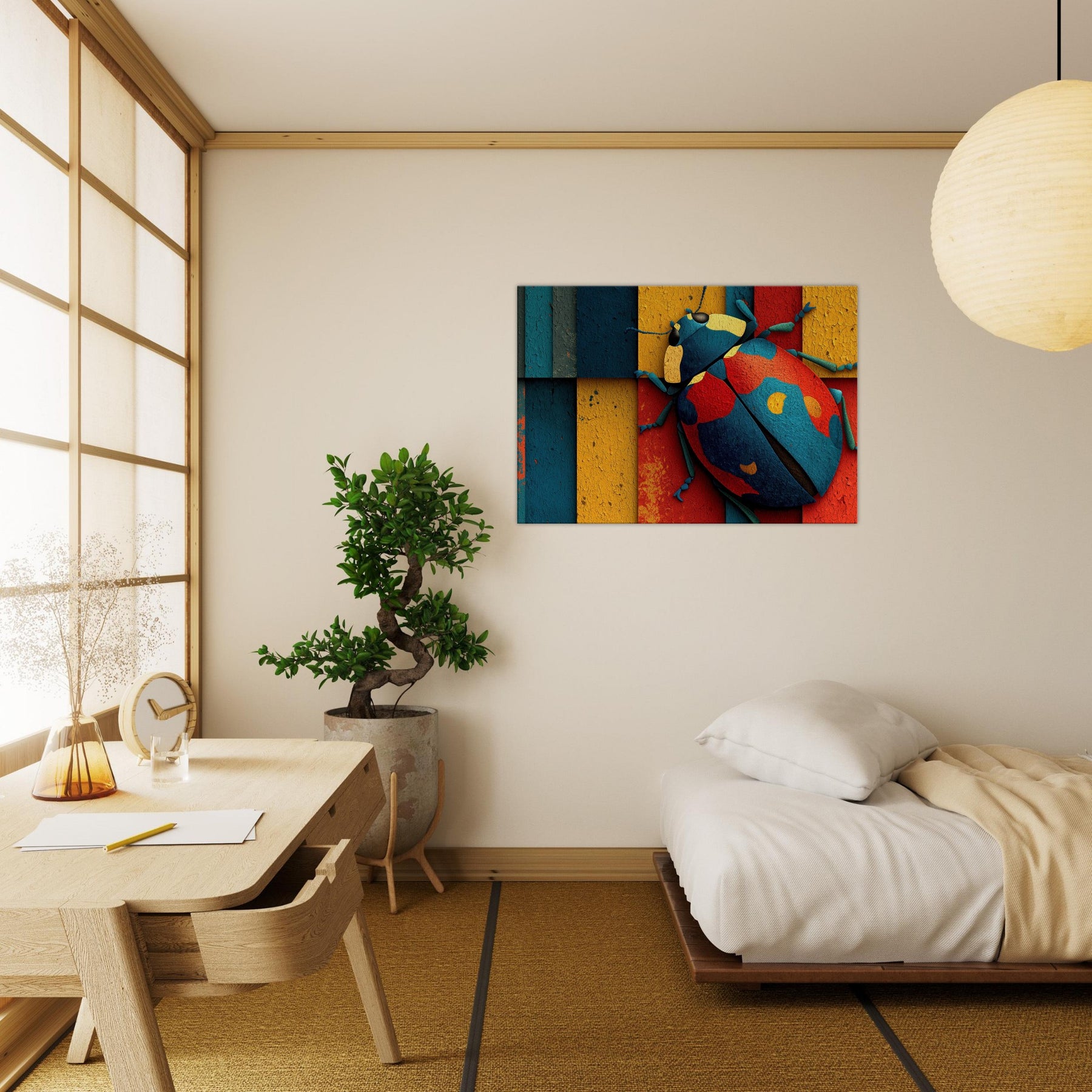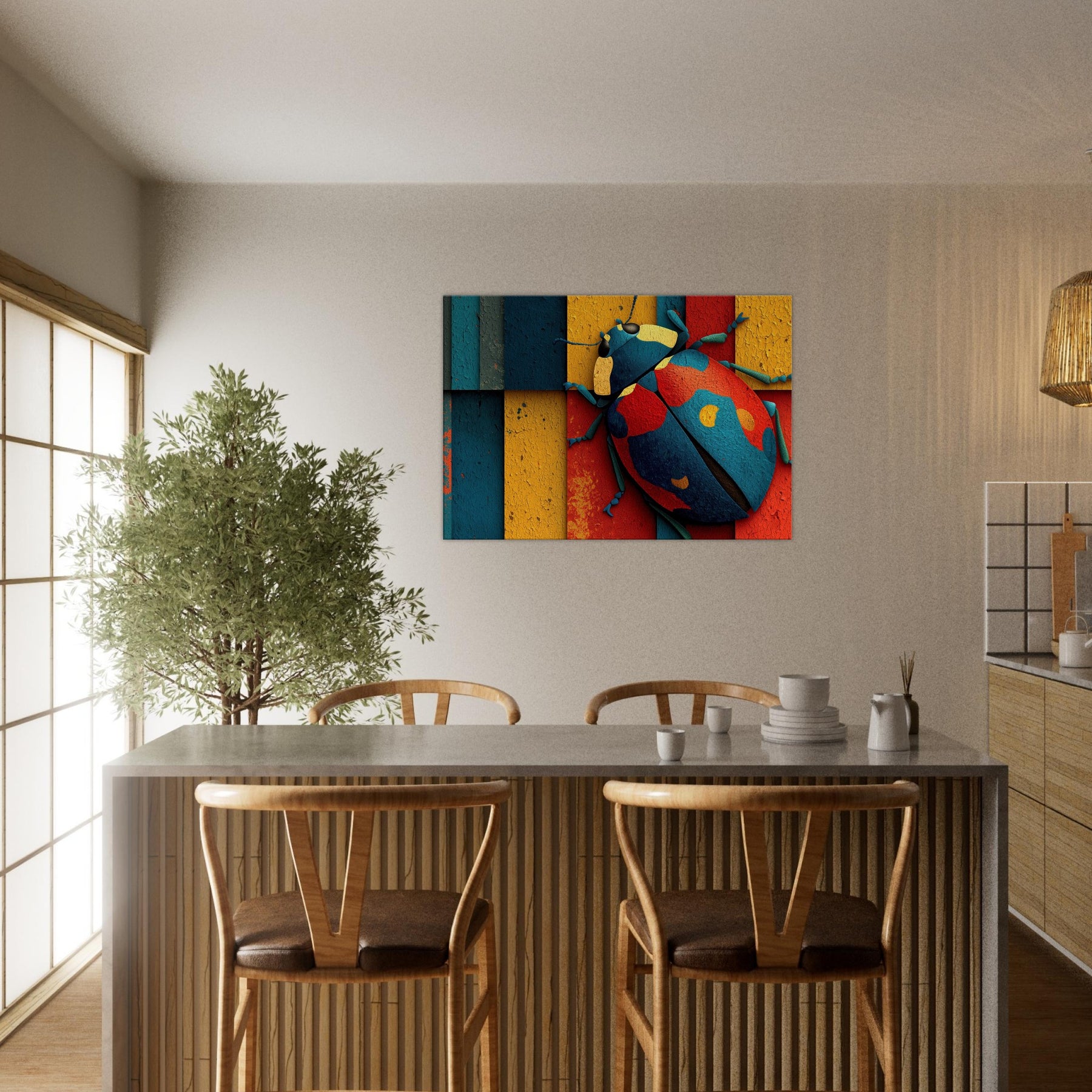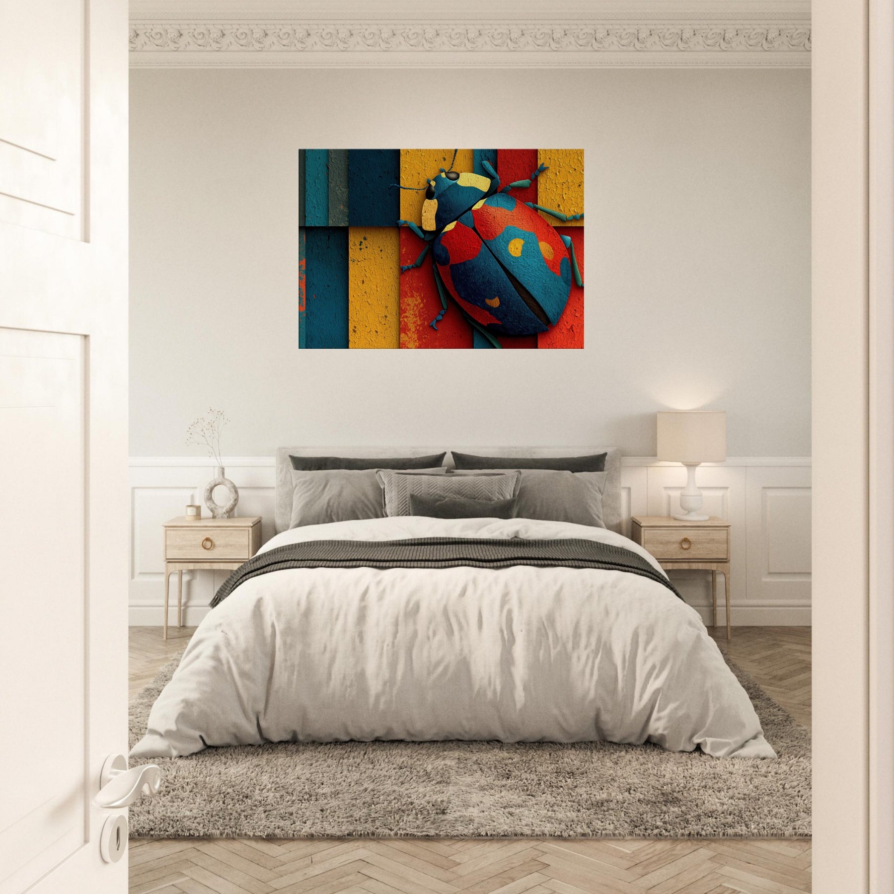 Immerse your space in a nocturnal garden of color where a Ladybug tumbles into a dreamscape of texture and light. Abstract shapes swirl in electric blues, sunlit yellows, and fiery reds, creating a tactile rhythm that invites the eye to wander. This piece balances whimsy and sophistication, turning any wall into a dialogue between nature and art. Perfect for a living room or study, it breathes warmth and playfulness, while its layered surfaces echo the quiet pulse of a summer afternoon.