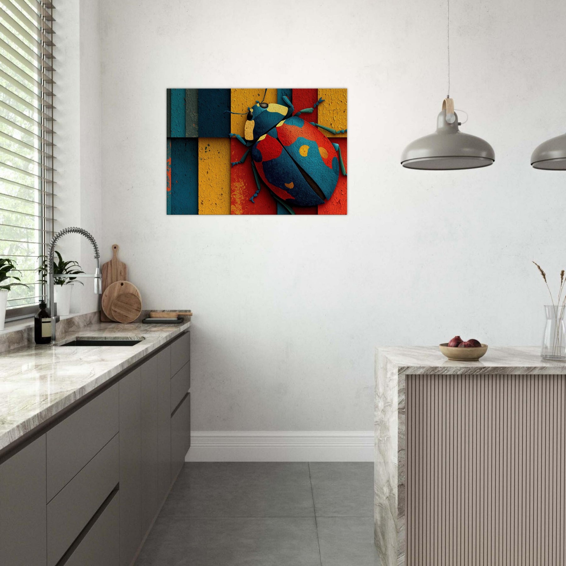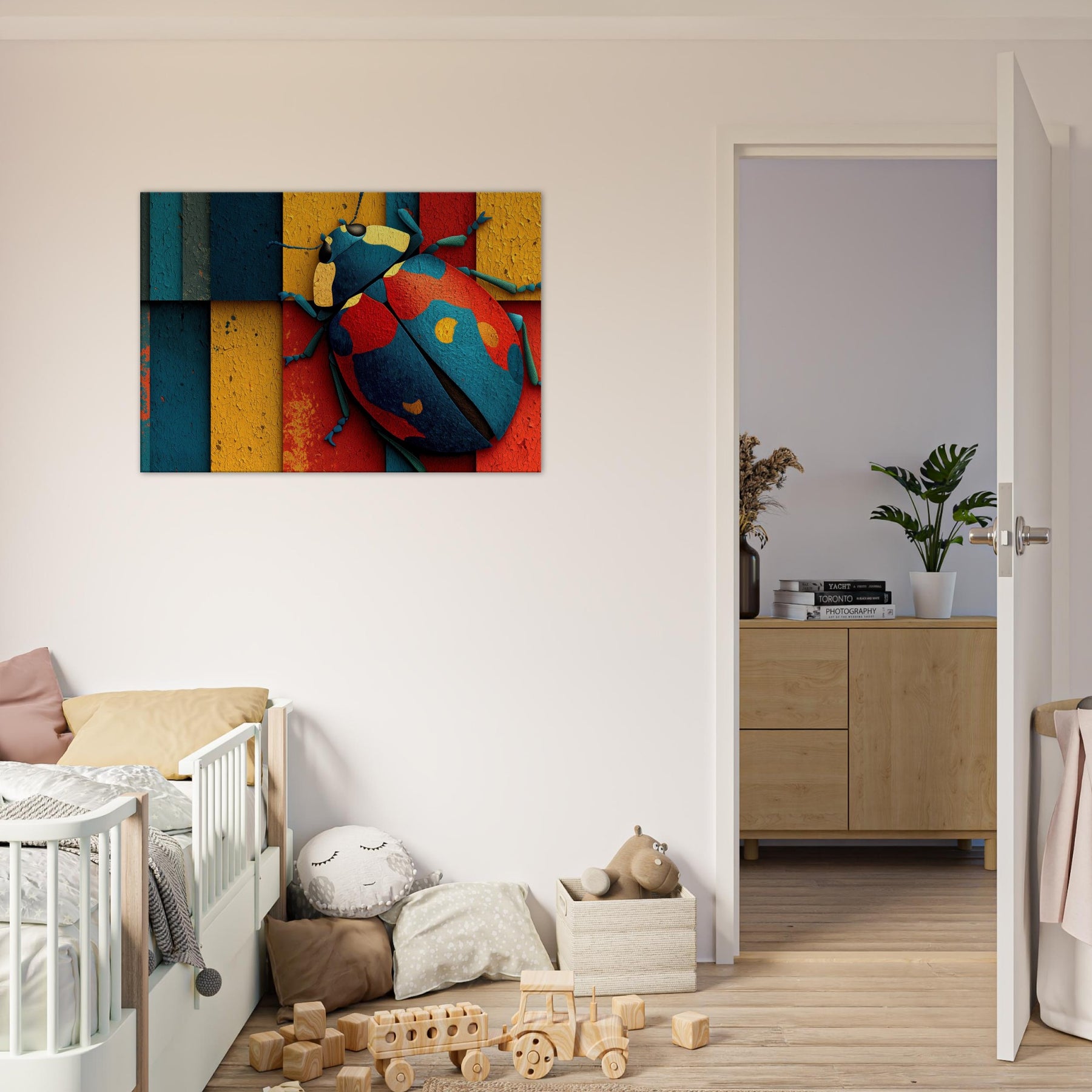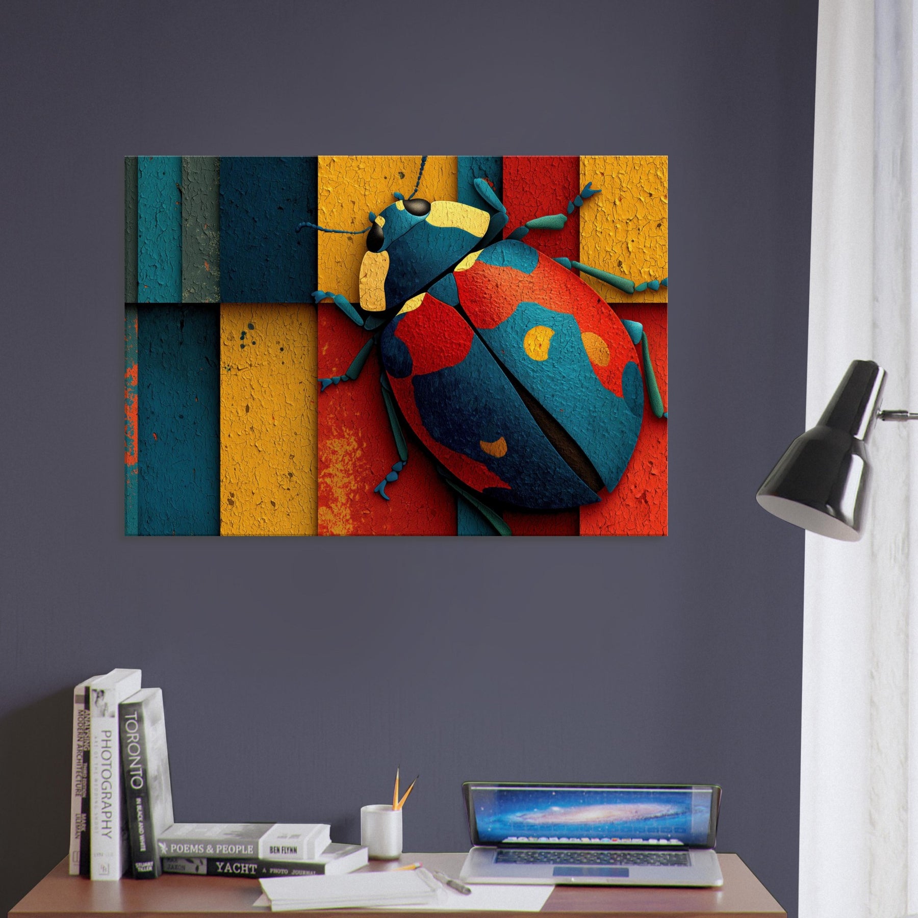 Immerse your space in a nocturnal garden of color where a Ladybug tumbles into a dreamscape of texture and light. Abstract shapes swirl in electric blues, sunlit yellows, and fiery reds, creating a tactile rhythm that invites the eye to wander. This piece balances whimsy and sophistication, turning any wall into a dialogue between nature and art. Perfect for a living room or study, it breathes warmth and playfulness, while its layered surfaces echo the quiet pulse of a summer afternoon.