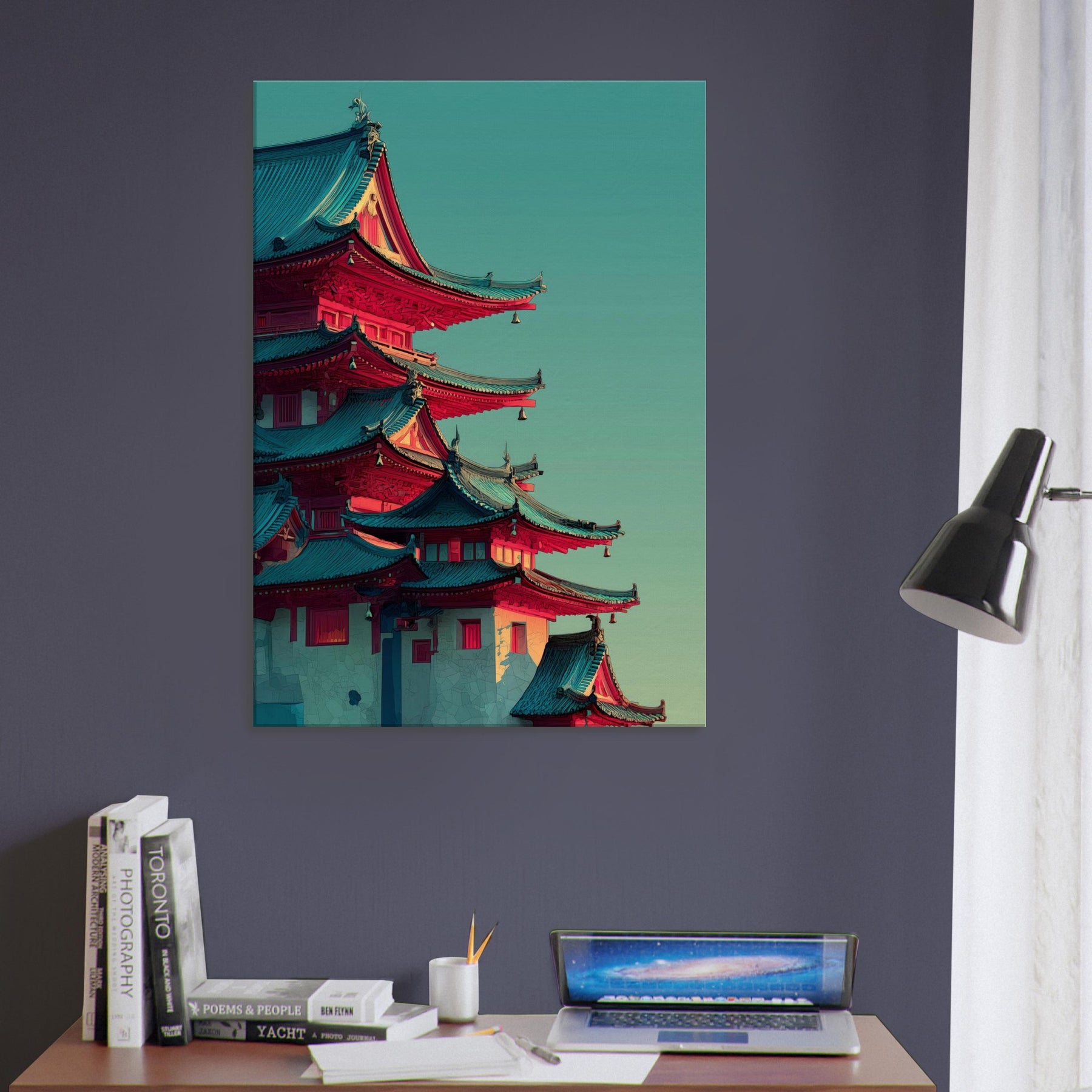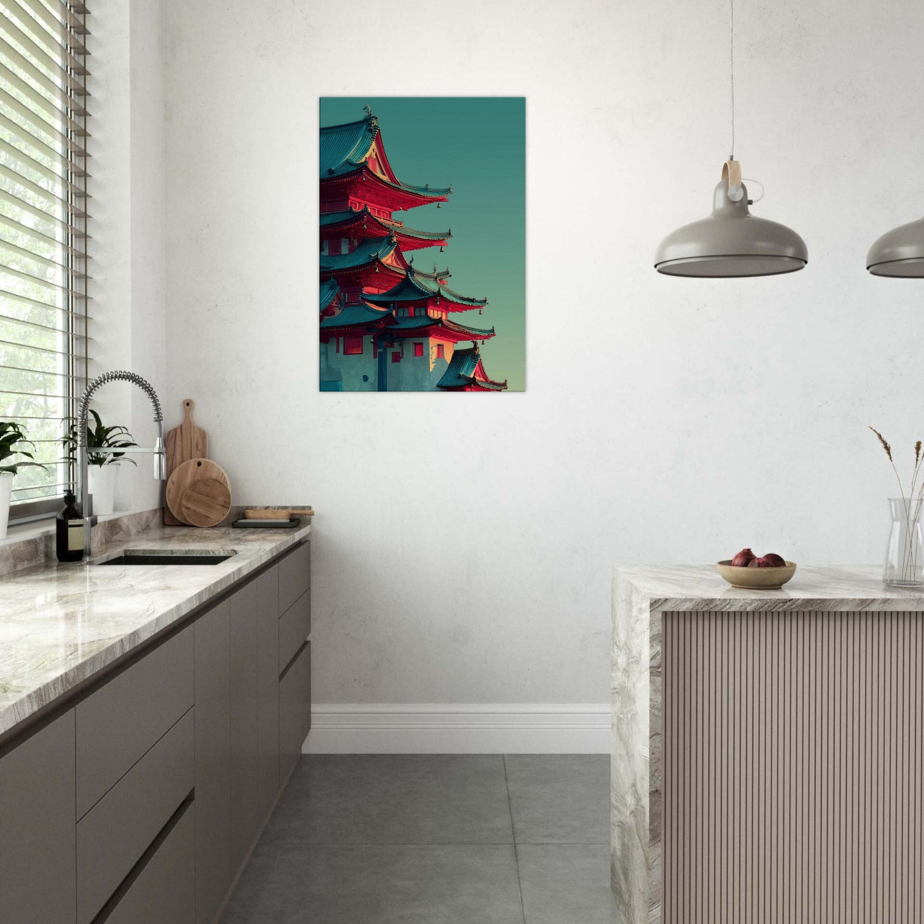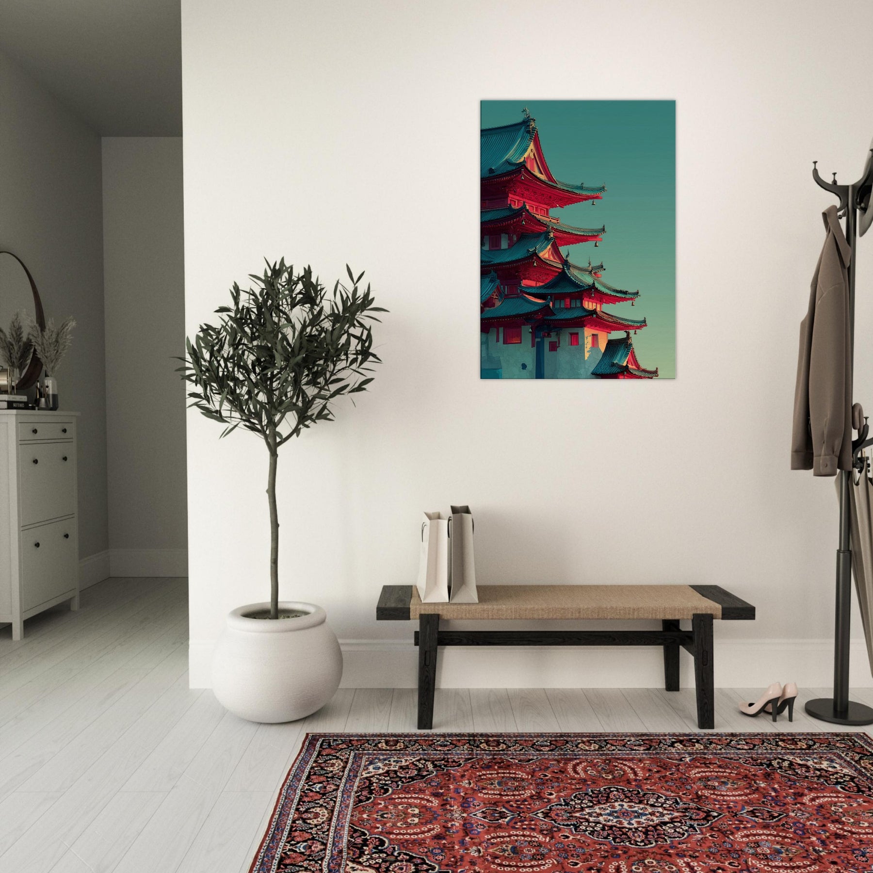 Pagoda Roofline unfolds as a luminous skyline of stacked eaves and quiet shadows, inviting calm into any room. This artwork blends architectural precision with fluid color, wrapping your living space in warm reds and cooling teals that echo dusk over a tranquil city. Its abstracted forms glow with a subtle rhythm, turning walls into a pavilion of contemplation. Hang it in a lounge or study to spark conversation, deepen texture, and elevate your space with a sense of height, balance, and poetic perspective.