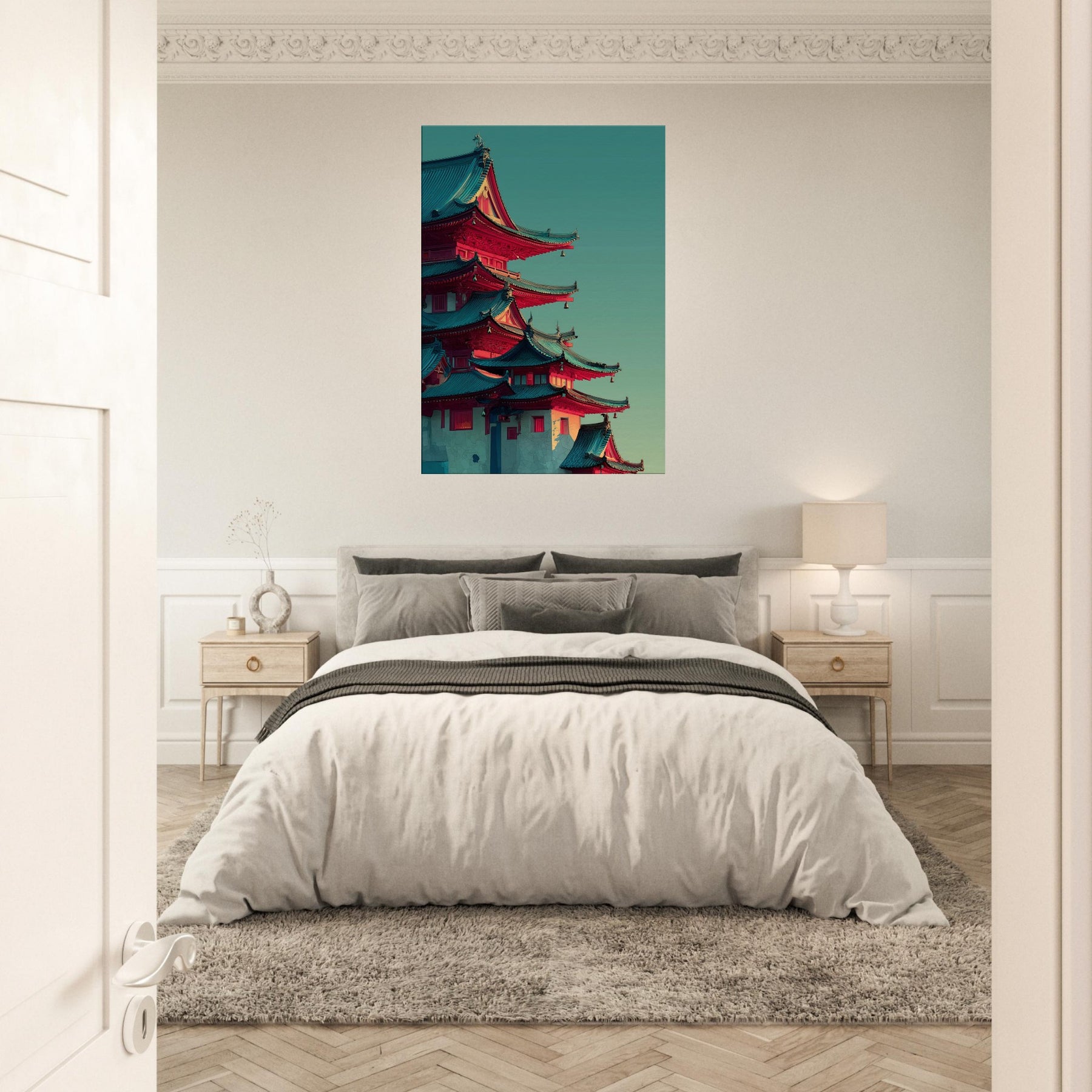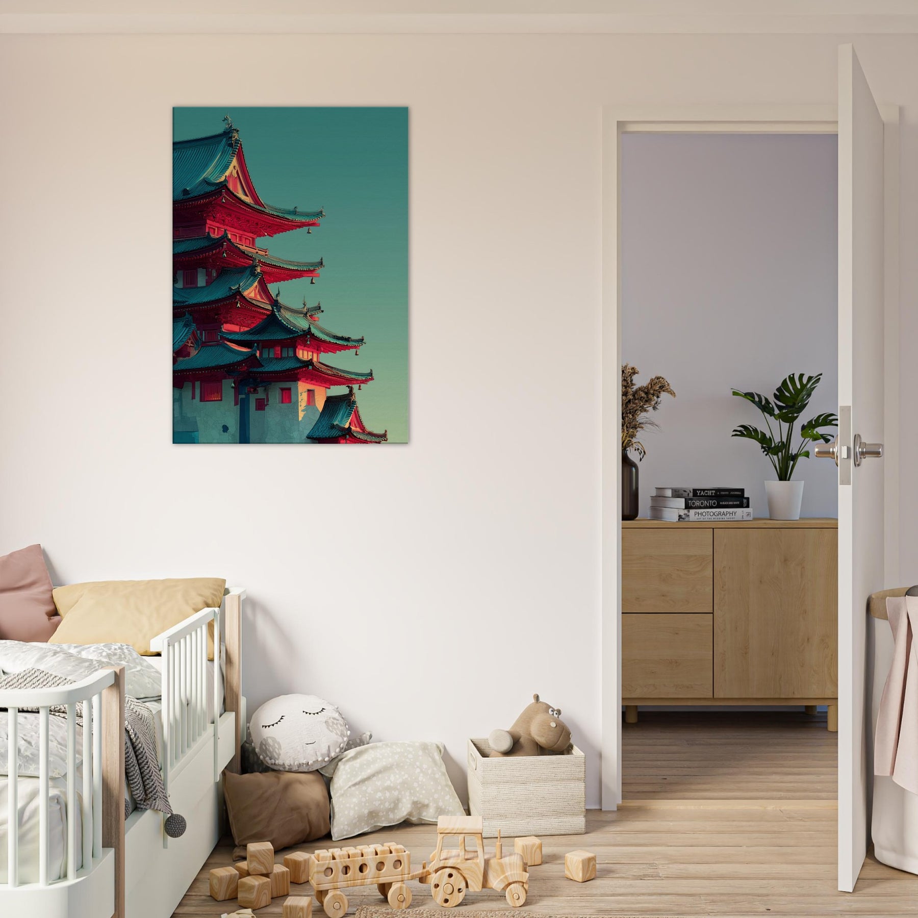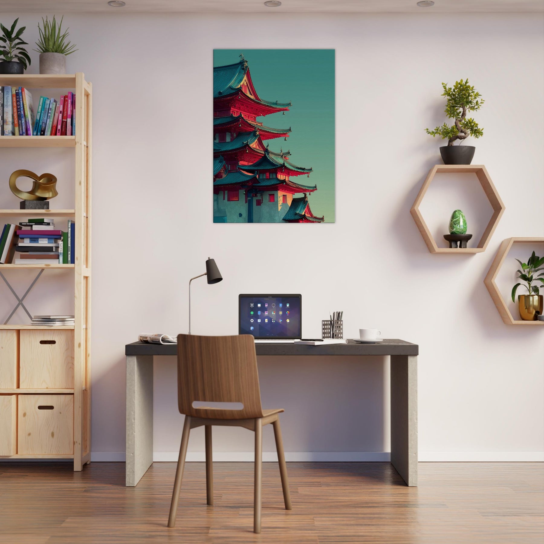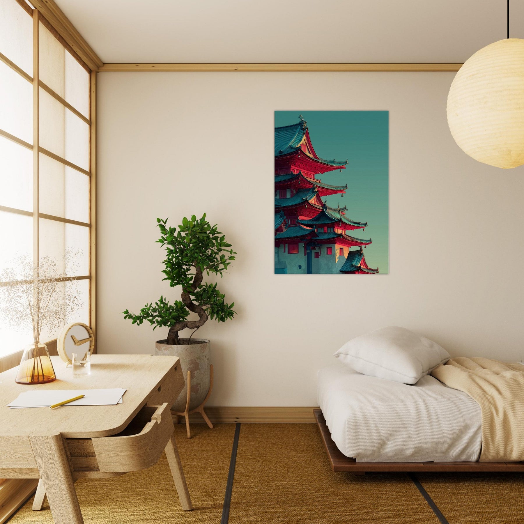 Pagoda Roofline unfolds as a luminous skyline of stacked eaves and quiet shadows, inviting calm into any room. This artwork blends architectural precision with fluid color, wrapping your living space in warm reds and cooling teals that echo dusk over a tranquil city. Its abstracted forms glow with a subtle rhythm, turning walls into a pavilion of contemplation. Hang it in a lounge or study to spark conversation, deepen texture, and elevate your space with a sense of height, balance, and poetic perspective.