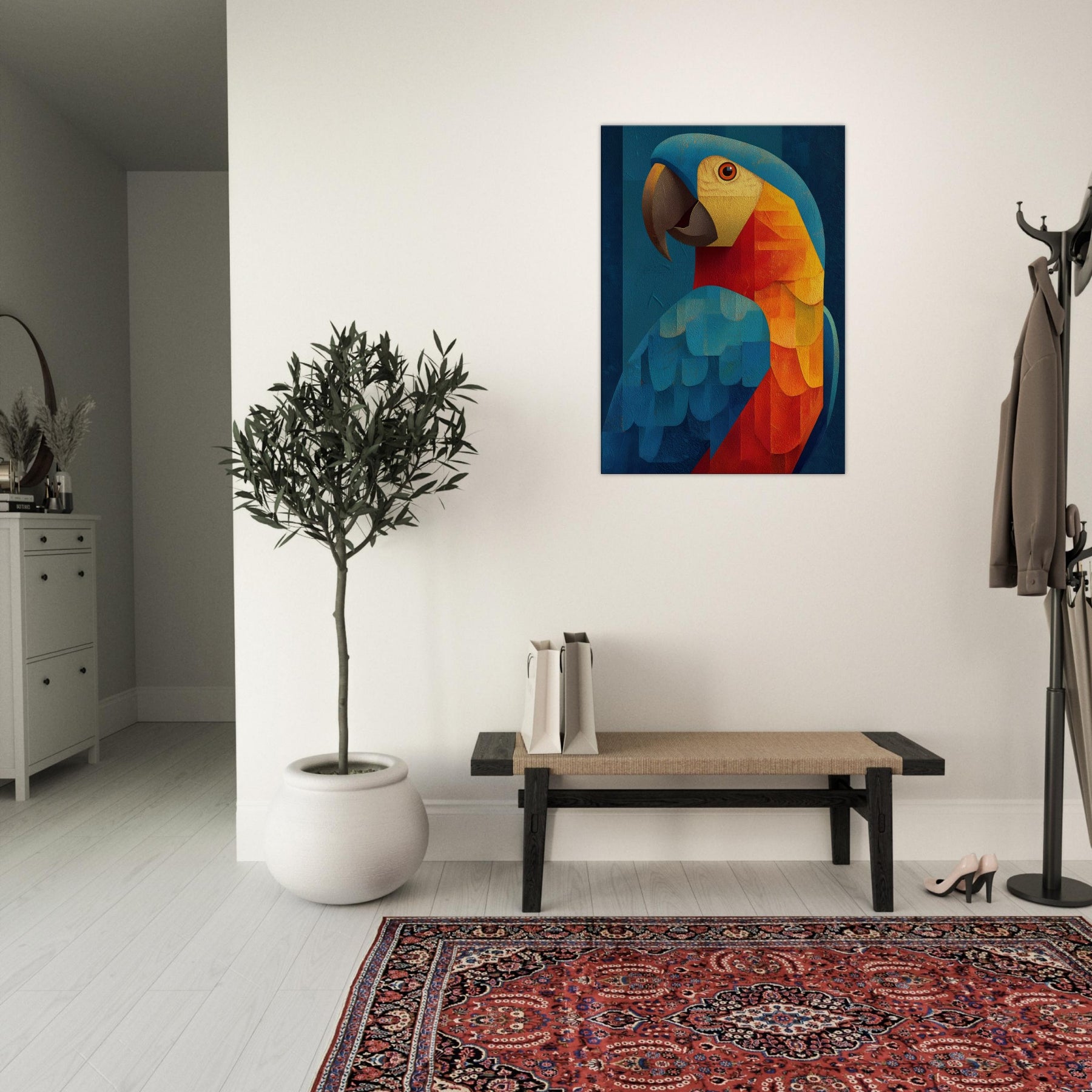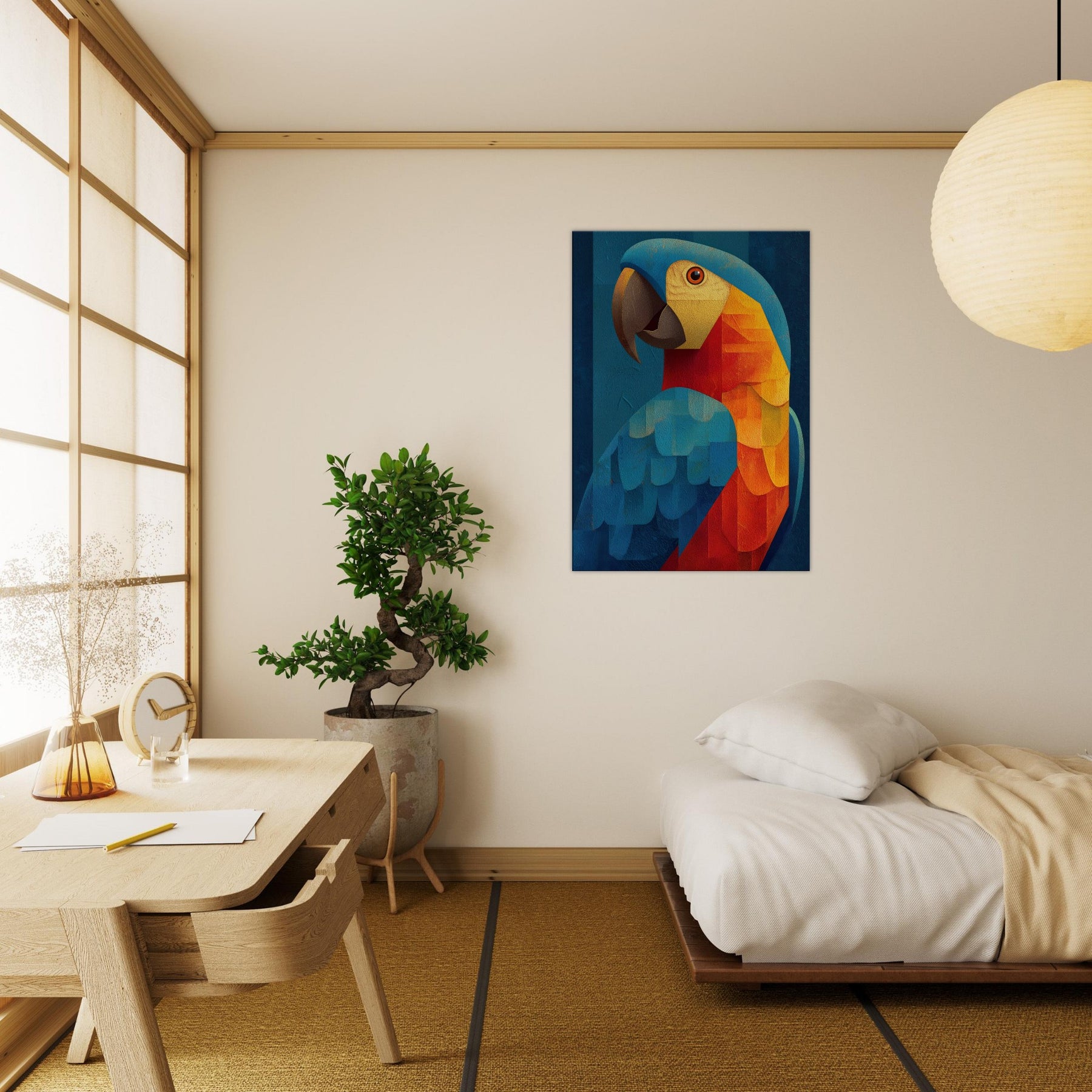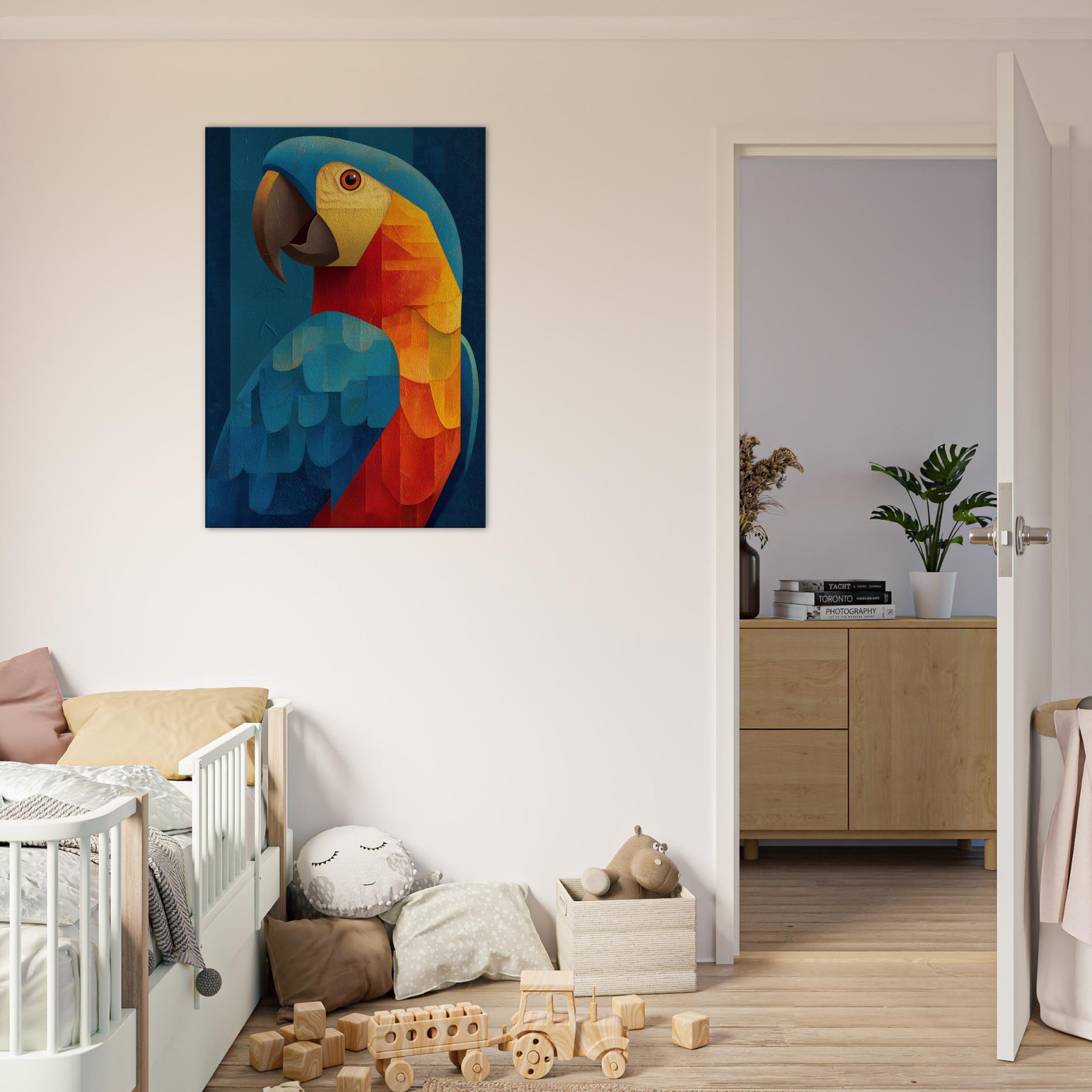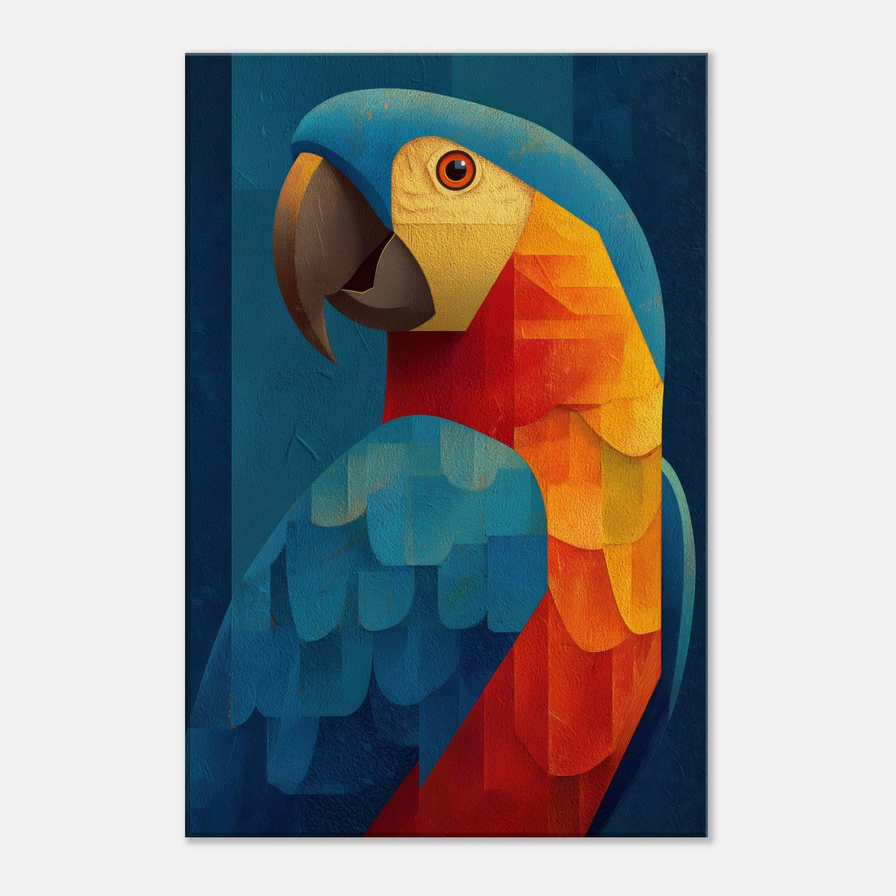 Like a sunlit jewel perched on a canvas, this Parrot radiates energy through faceted geometry and luminous color. The bold blend of cobalt blues, turquoise highlights, and blazing oranges invites the eye to travel across each angular feather, creating a living dialogue between light and shadow. In a modern living space, it swells with warmth and movement a focal point that sparks conversation and softens hard edges with its lyrical rhythm. A wall art that feels both playful and refined.