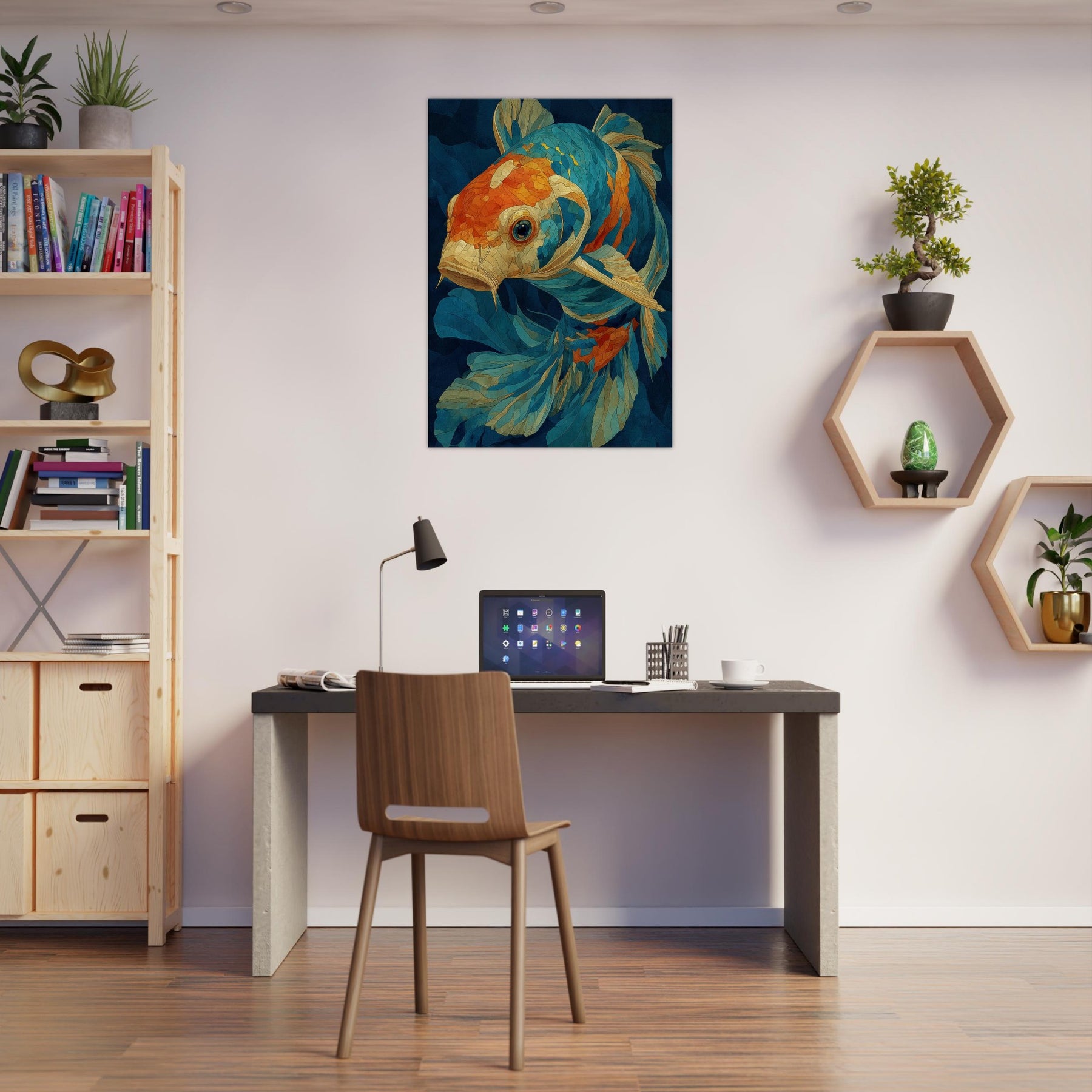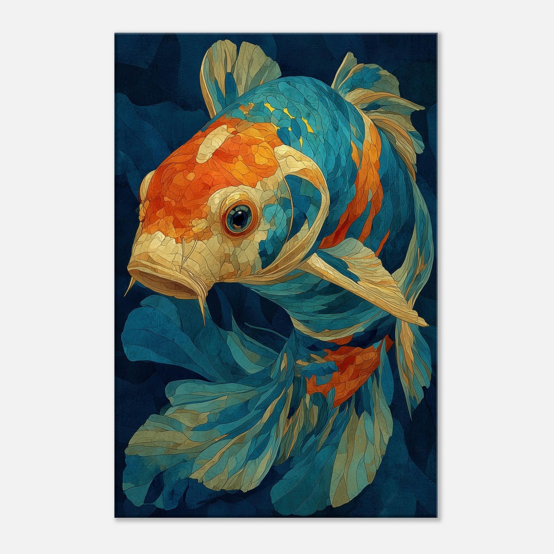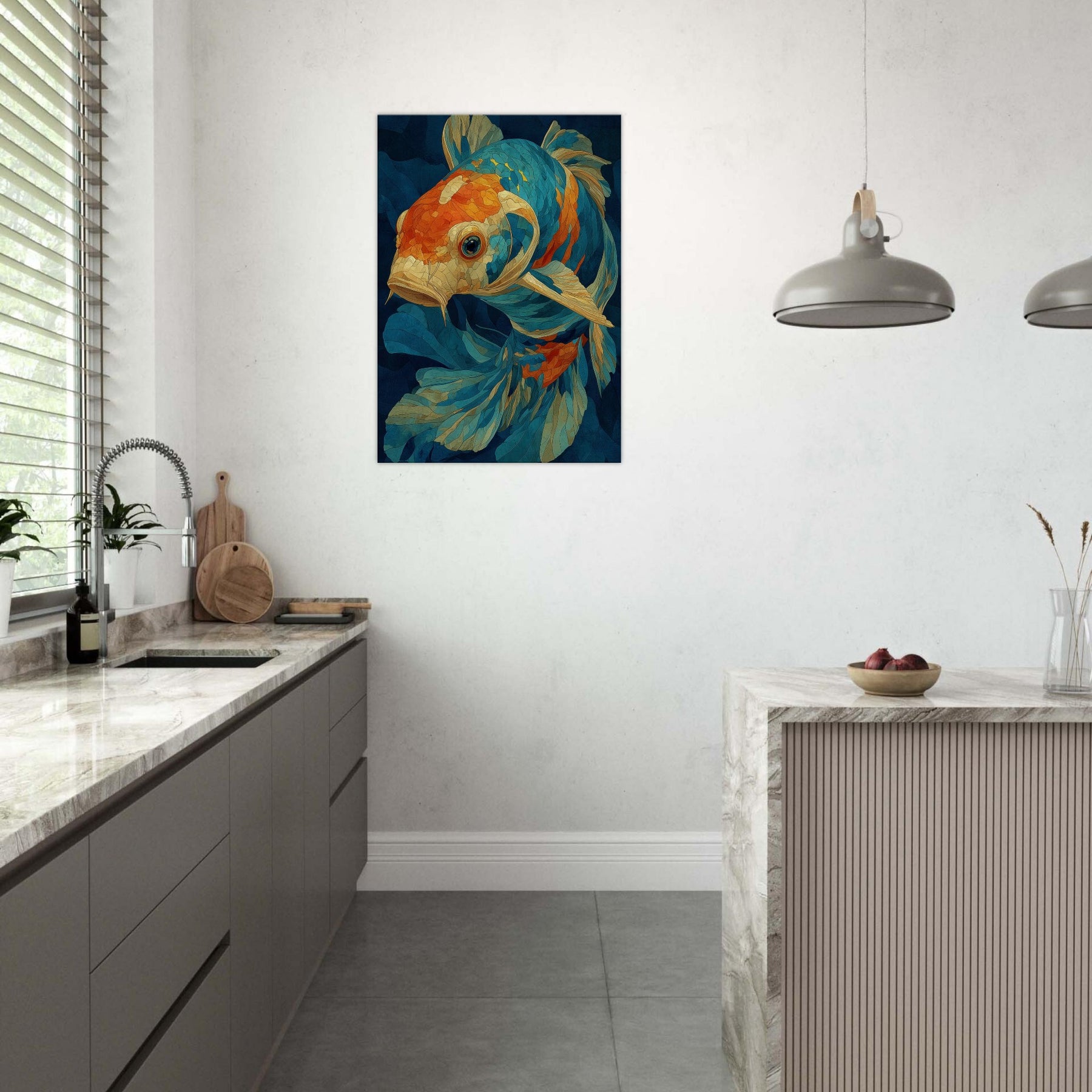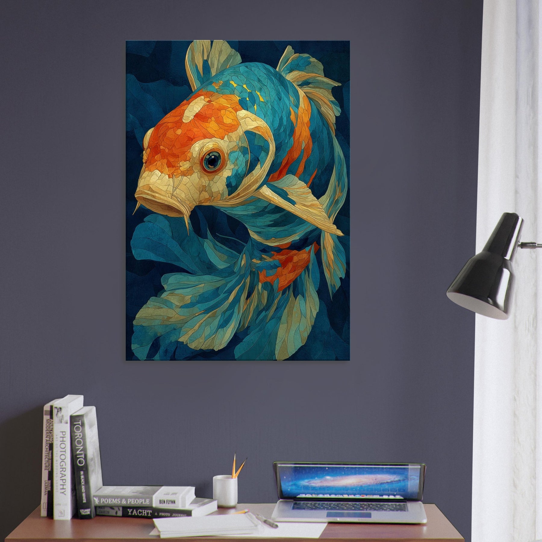 Let this Koi Fish swim into your living space as a pulse of color and grace. The abstract, mosaic like currents ripple with warmth and cool, guiding light through a quiet room and turning walls into a contemplative aquarium. Each luminous scale seems to catch a whisper of river sun, inviting calm and curiosity in equal measure. This piece marries movement and stillness, drama and restraint, making a studio, hallway, or lounge feel larger, more intentional, and beautifully alive.