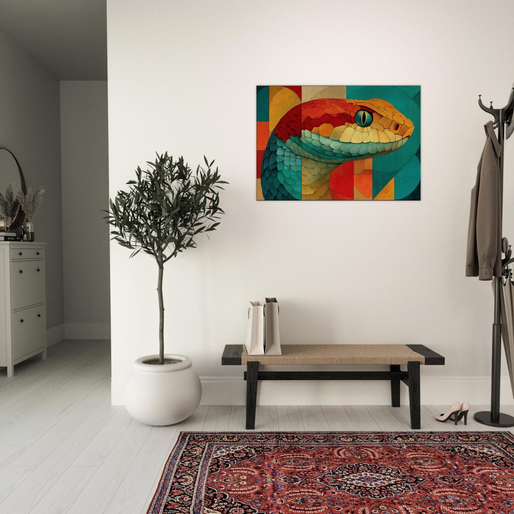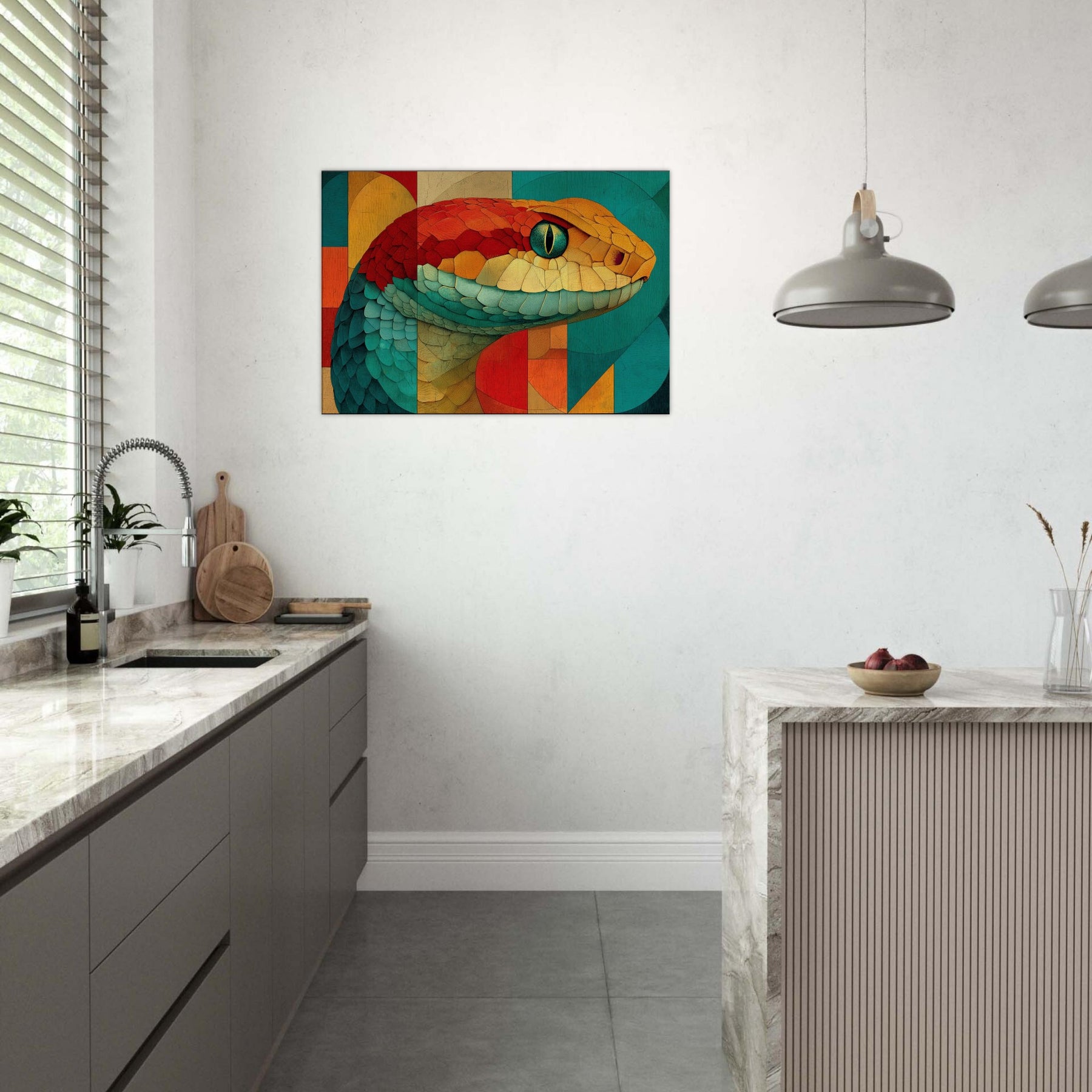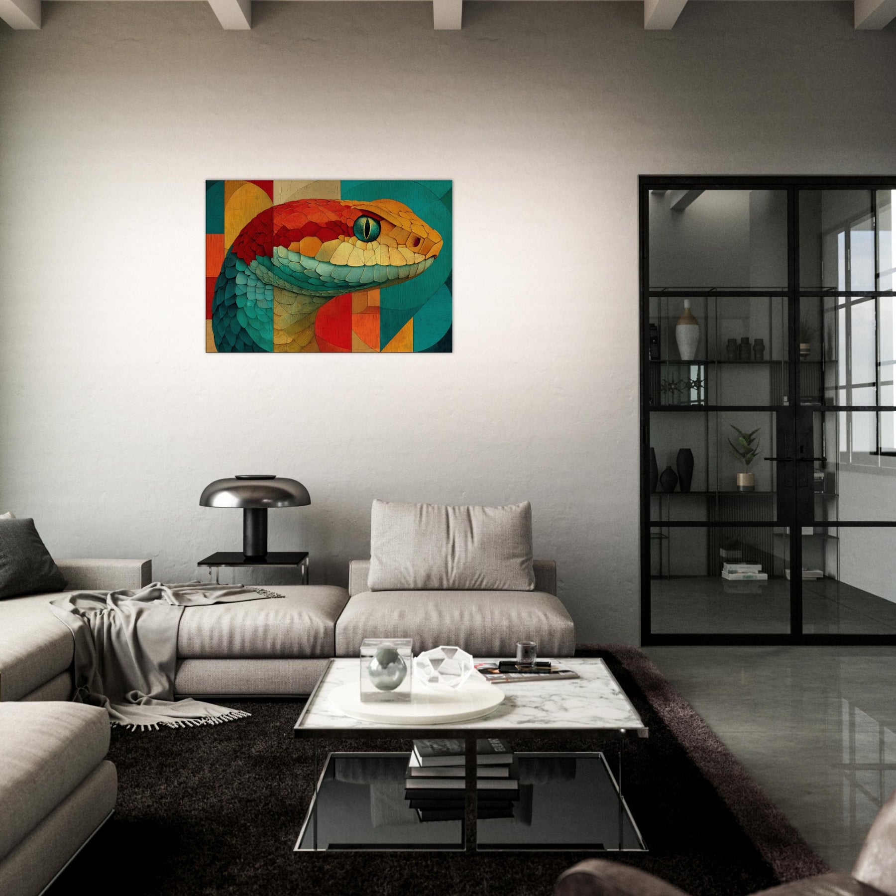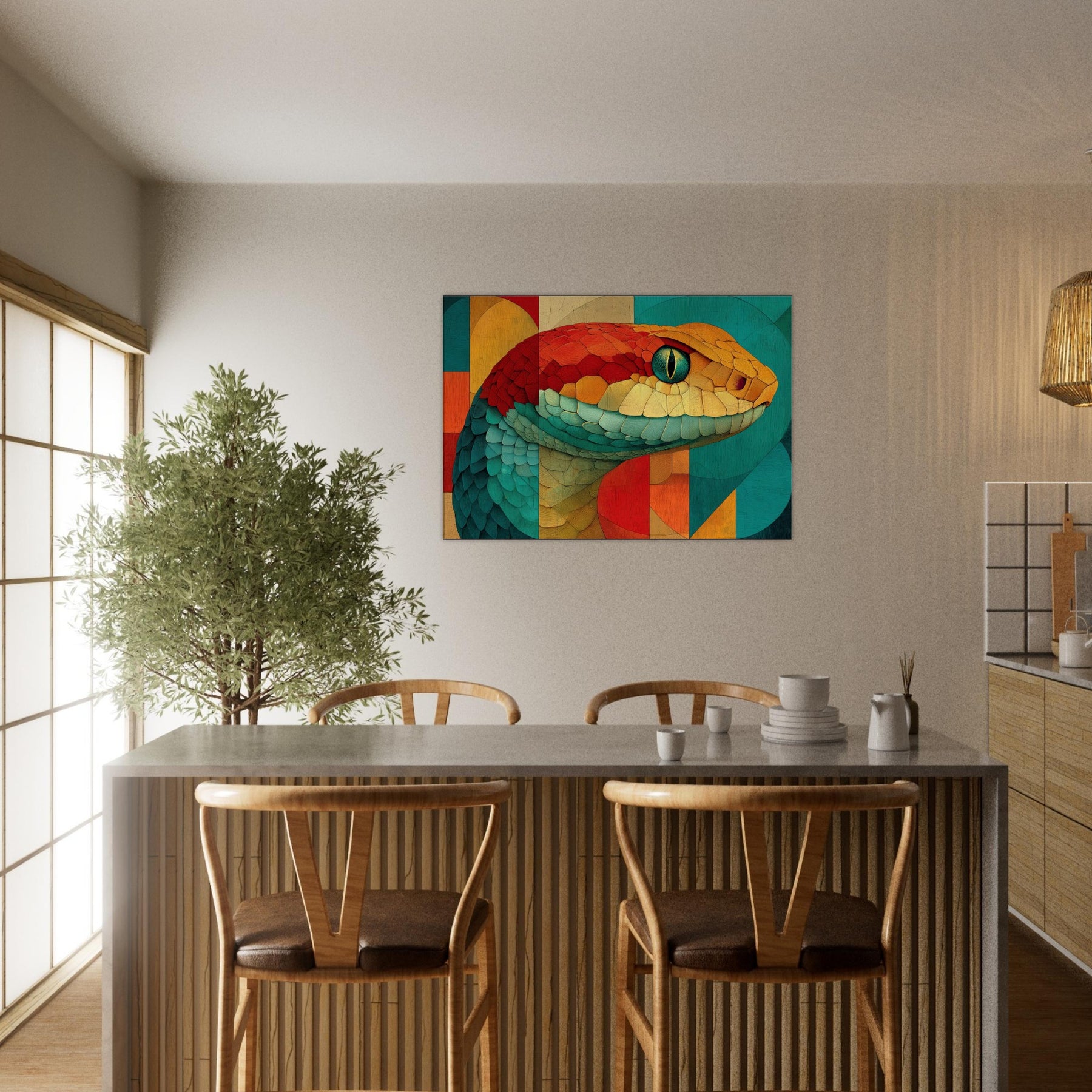 Immerse your space in a flowing chorus of color and scale. This reinterpretation of the Snake unfurls as a mosaic of warm and cool tones, each fragment catching light and whispered shadow. The abstract composition moves like a quiet current across walls, inviting you to lean in and discover its shimmer and depth. Perfect for a living room or study, it adds sophistication, a hint of danger, and a serene, nocturnal energy that elevates everyday moments into artful rituals.