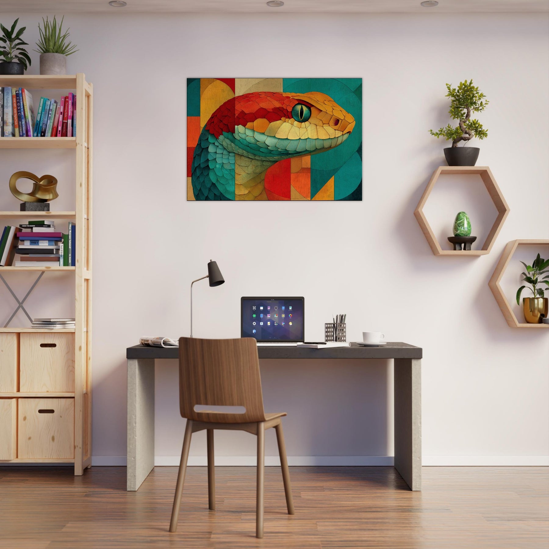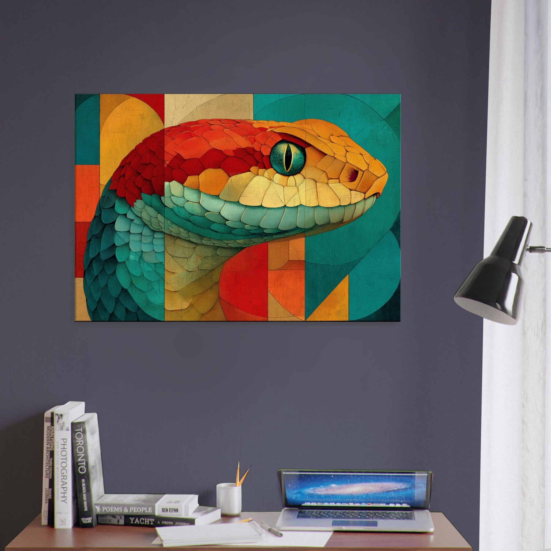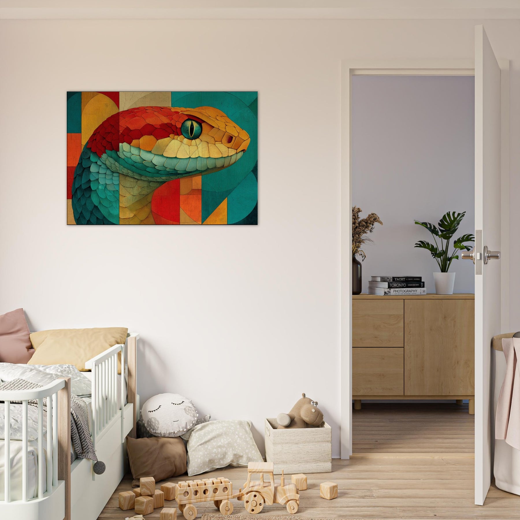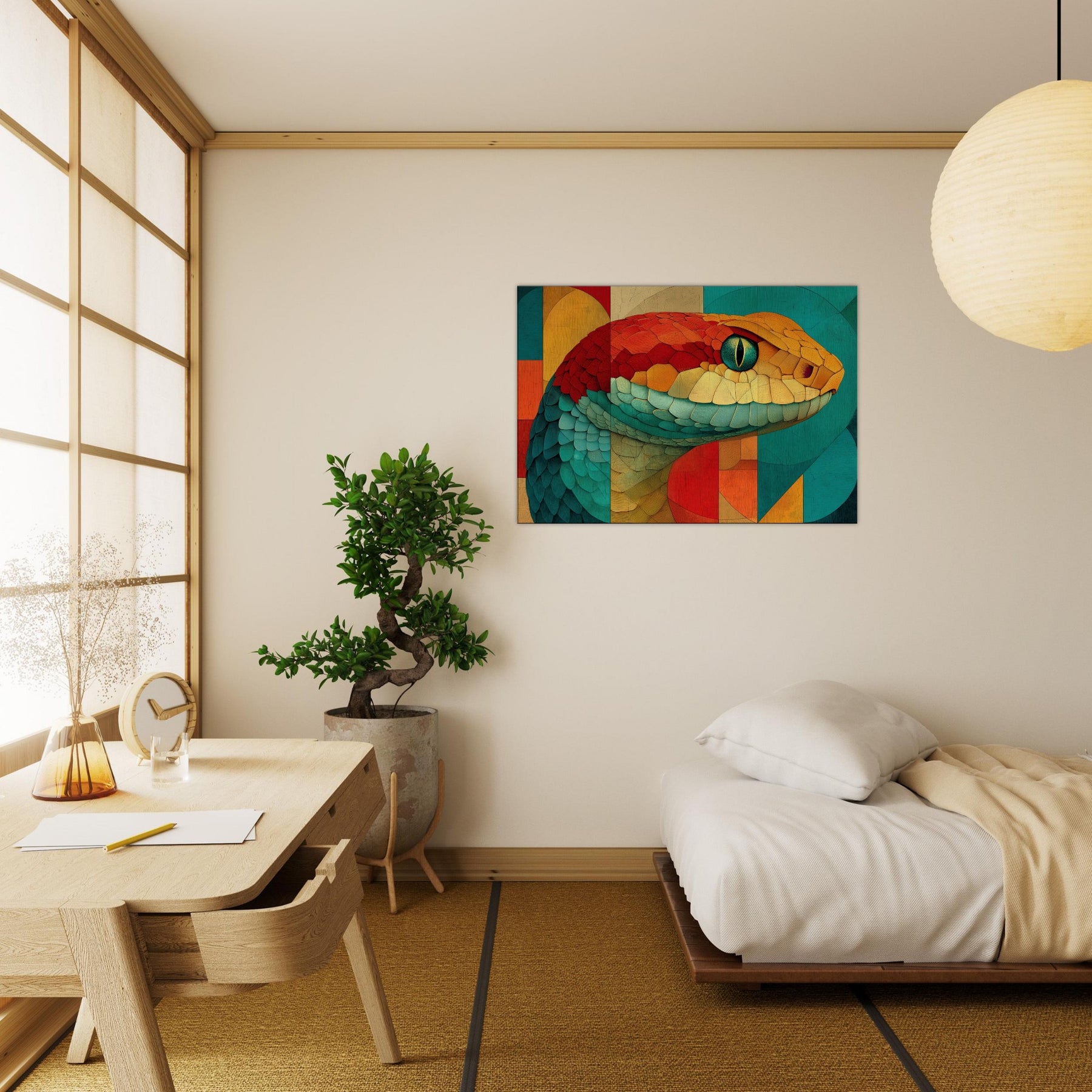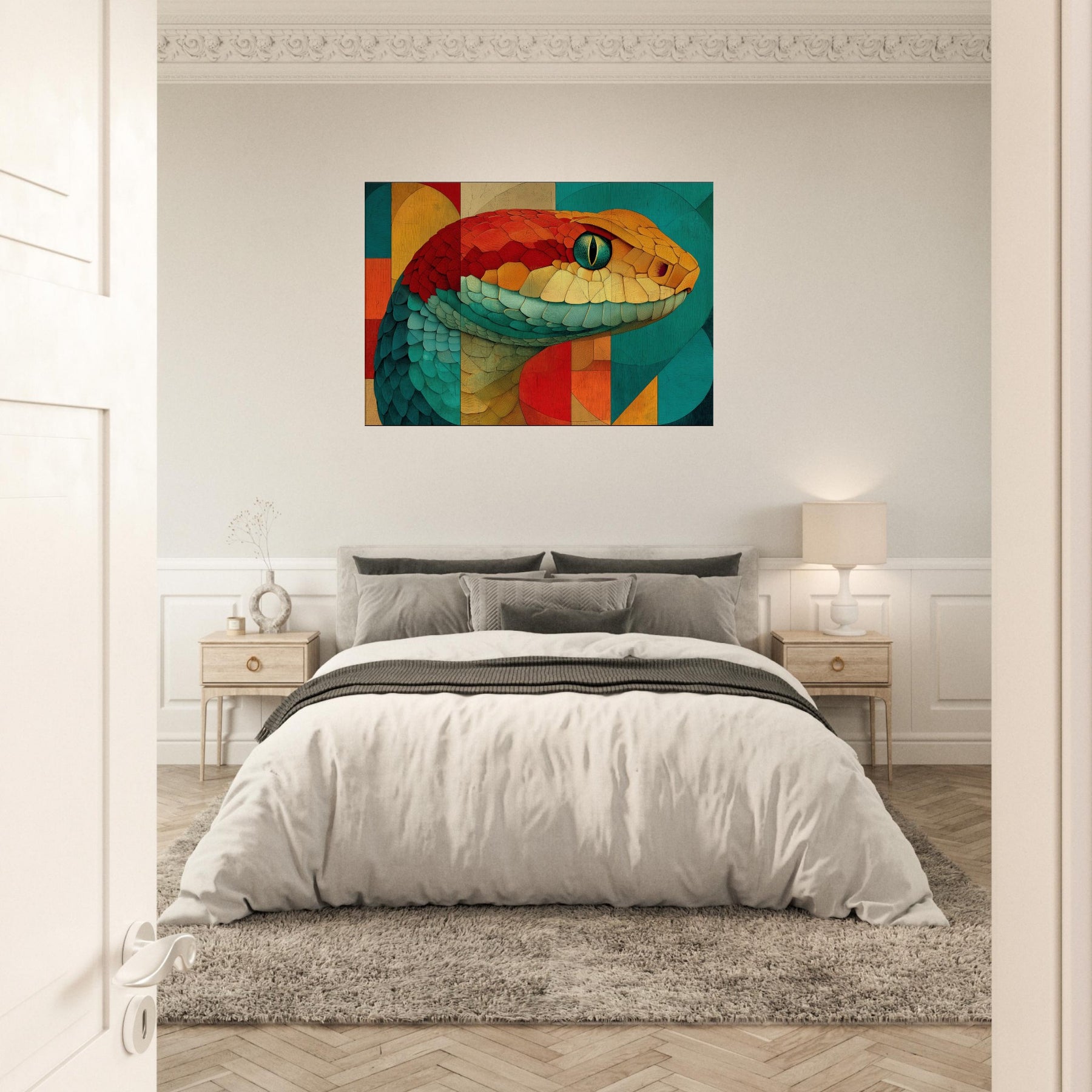 Immerse your space in a flowing chorus of color and scale. This reinterpretation of the Snake unfurls as a mosaic of warm and cool tones, each fragment catching light and whispered shadow. The abstract composition moves like a quiet current across walls, inviting you to lean in and discover its shimmer and depth. Perfect for a living room or study, it adds sophistication, a hint of danger, and a serene, nocturnal energy that elevates everyday moments into artful rituals.