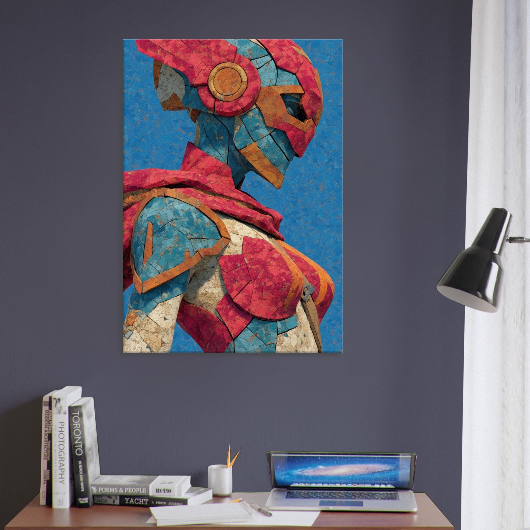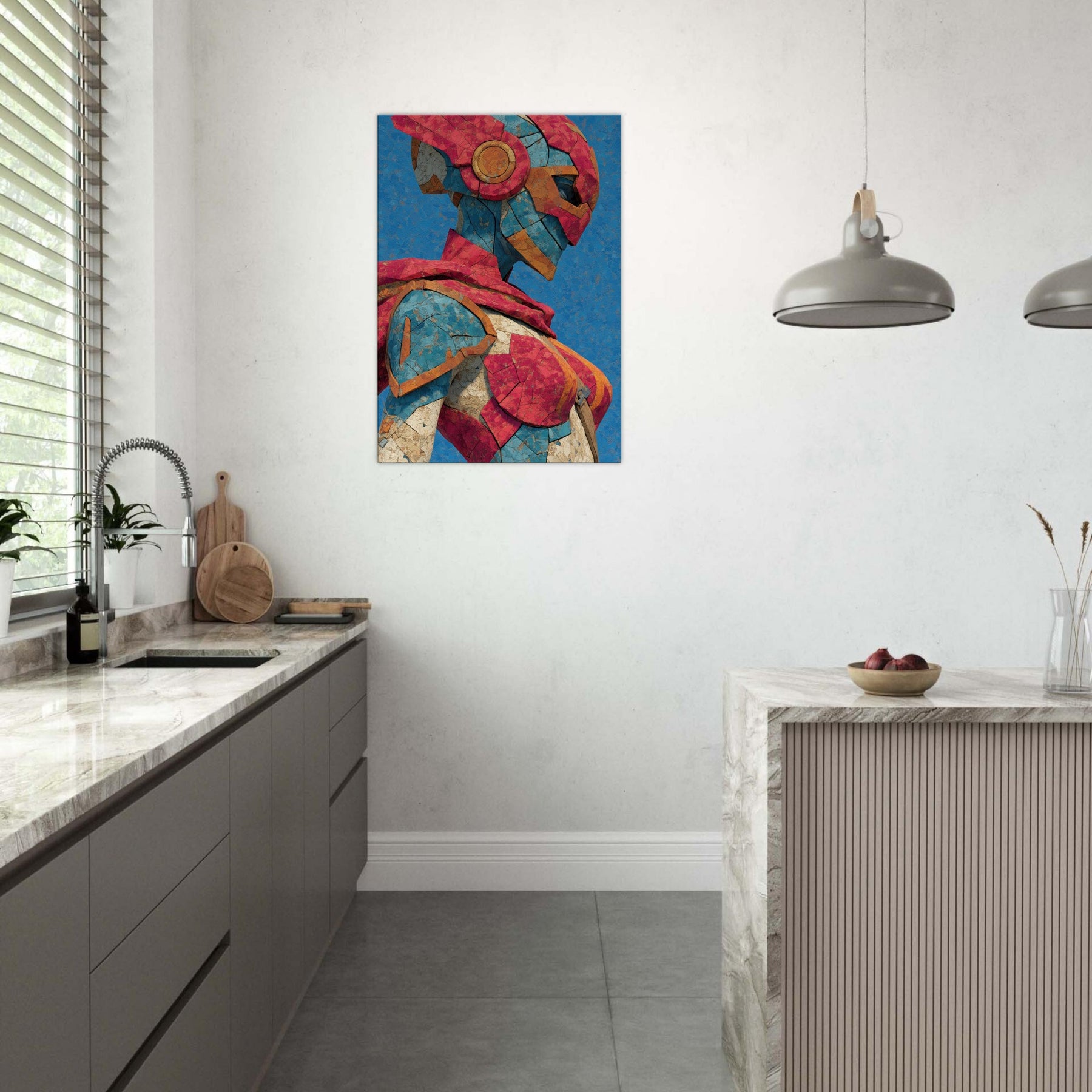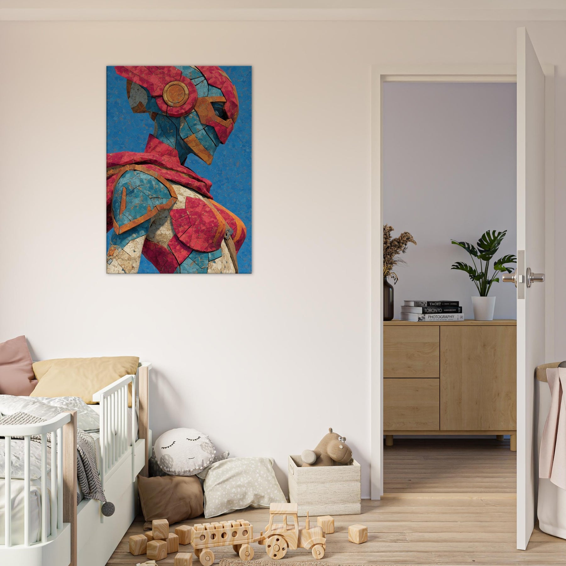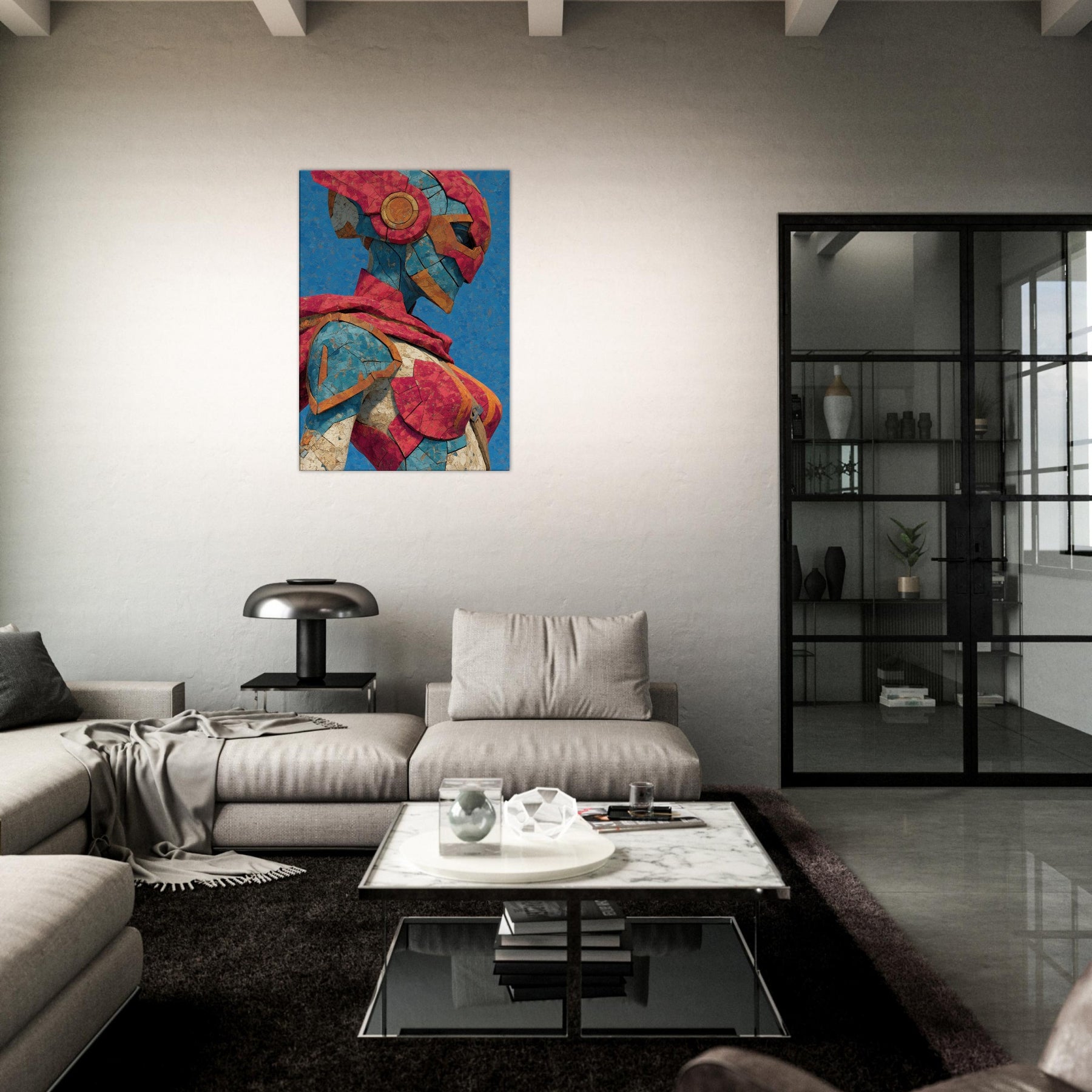Step into a room where a Valkyrie strides through a storm of color. This abstract interpretation stitches vibrant shards of pink, blue, and bronze into a radiant silhouette, as if light itself were forged into armor. The piece exudes motion and reverent strength, a nocturnal guardian that catches sunbeams and soft lamps alike, turning any wall into a beacon of myth and modernity. Hang it to evoke transcendence in your living space, inviting contemplation, bold energy, and dreamlike escapism.