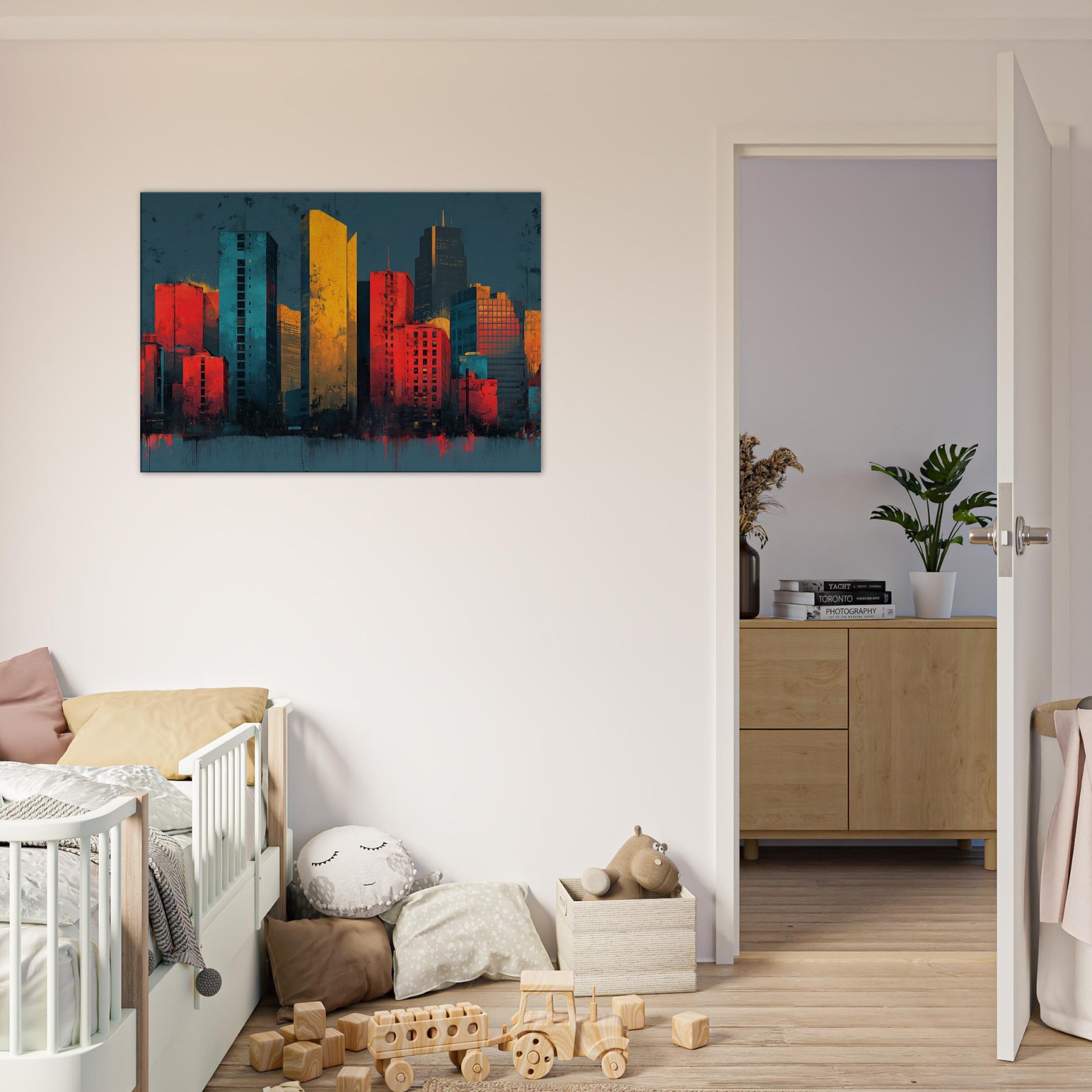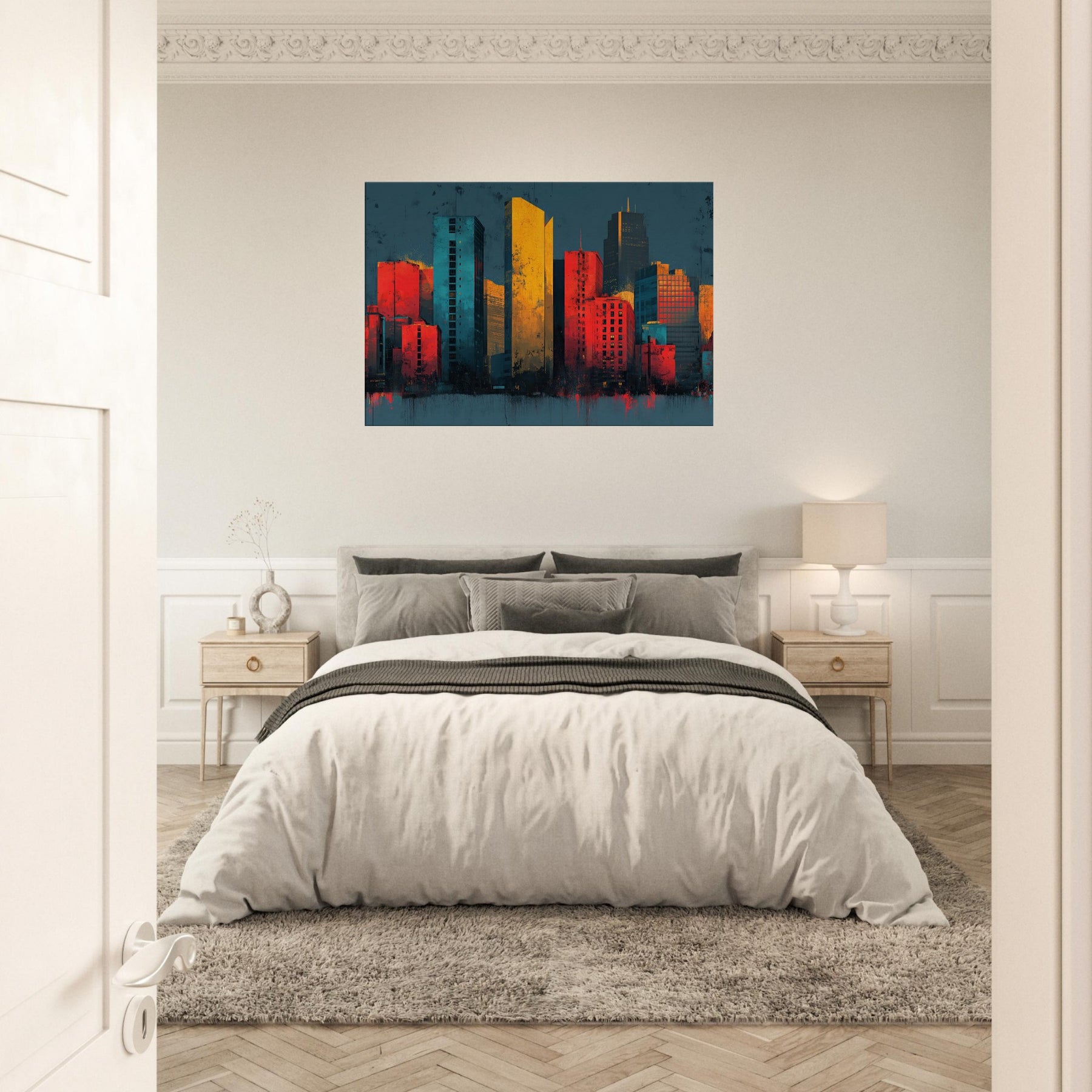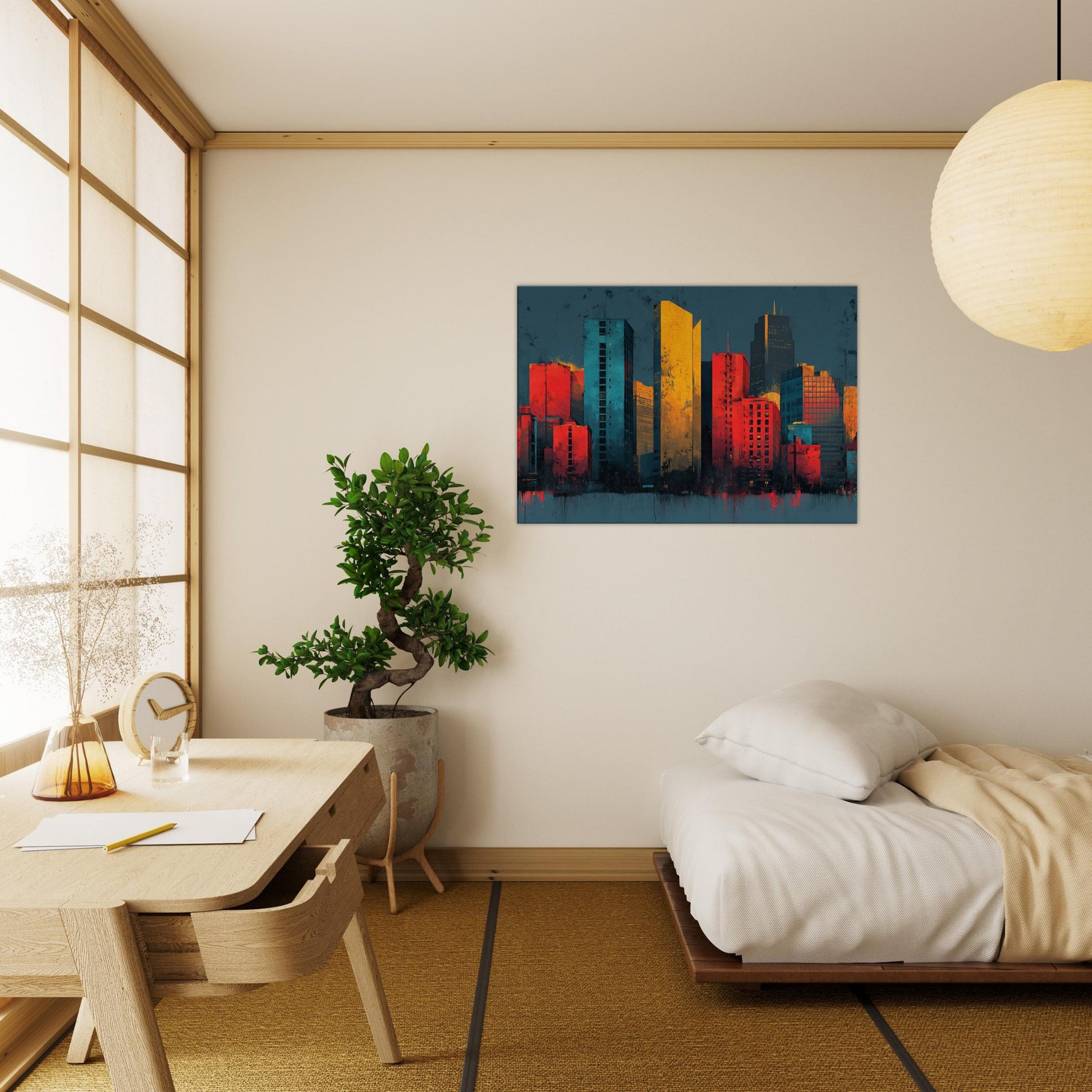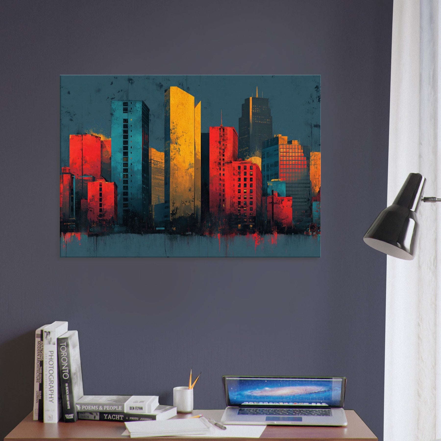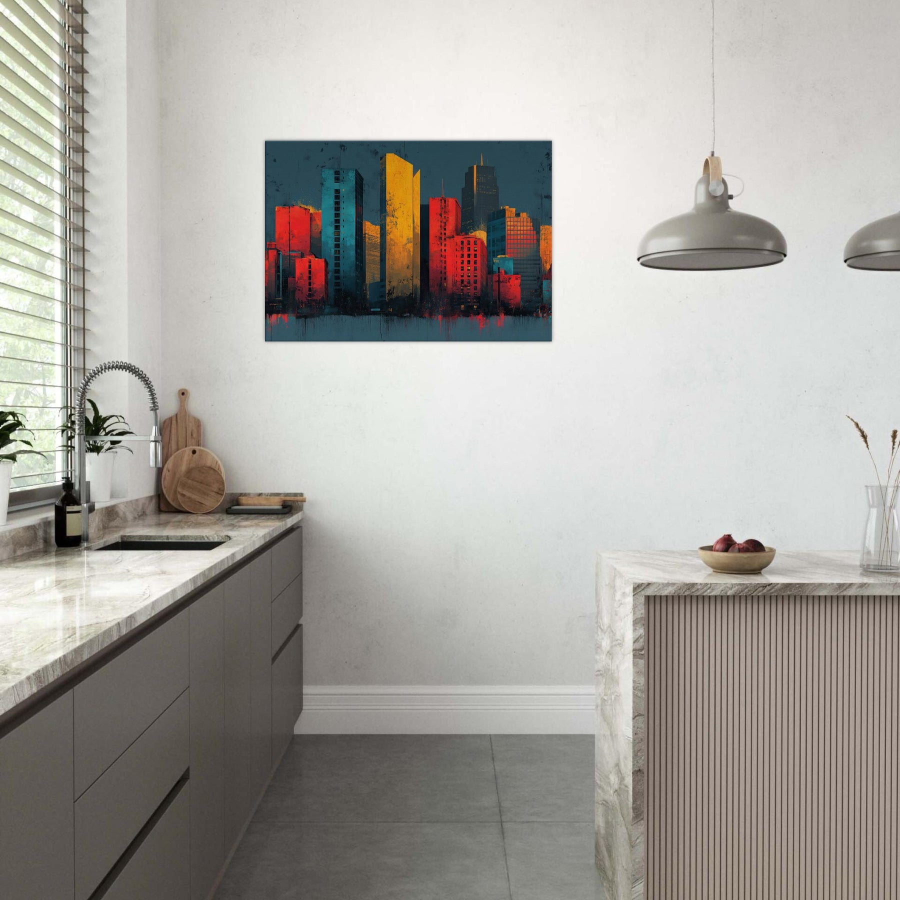 Let Boston rise as a symphony of color where towers pulse with memory. This abstract cityscape folds light into the fabric of the room, blending flame orange with deep teal and graphite as if the skyline is pulsing at dusk. The piece invites the senses to wander cool river air, the warmth of sunset on glass creating a dramatic yet intimate atmosphere. A bold focal point for a living space that heightens conversation, refines a modern decor, and stirs curiosity every time you glance up.