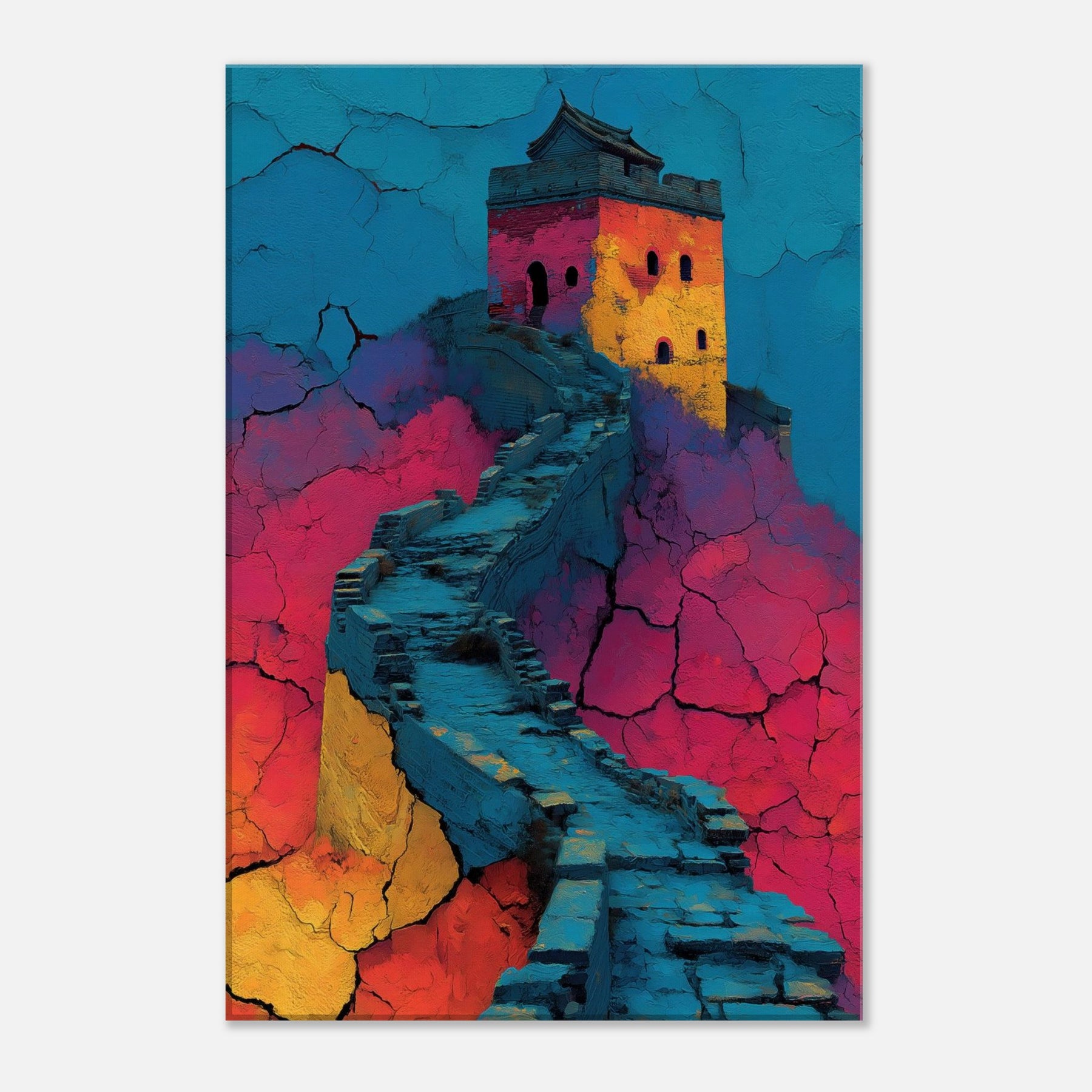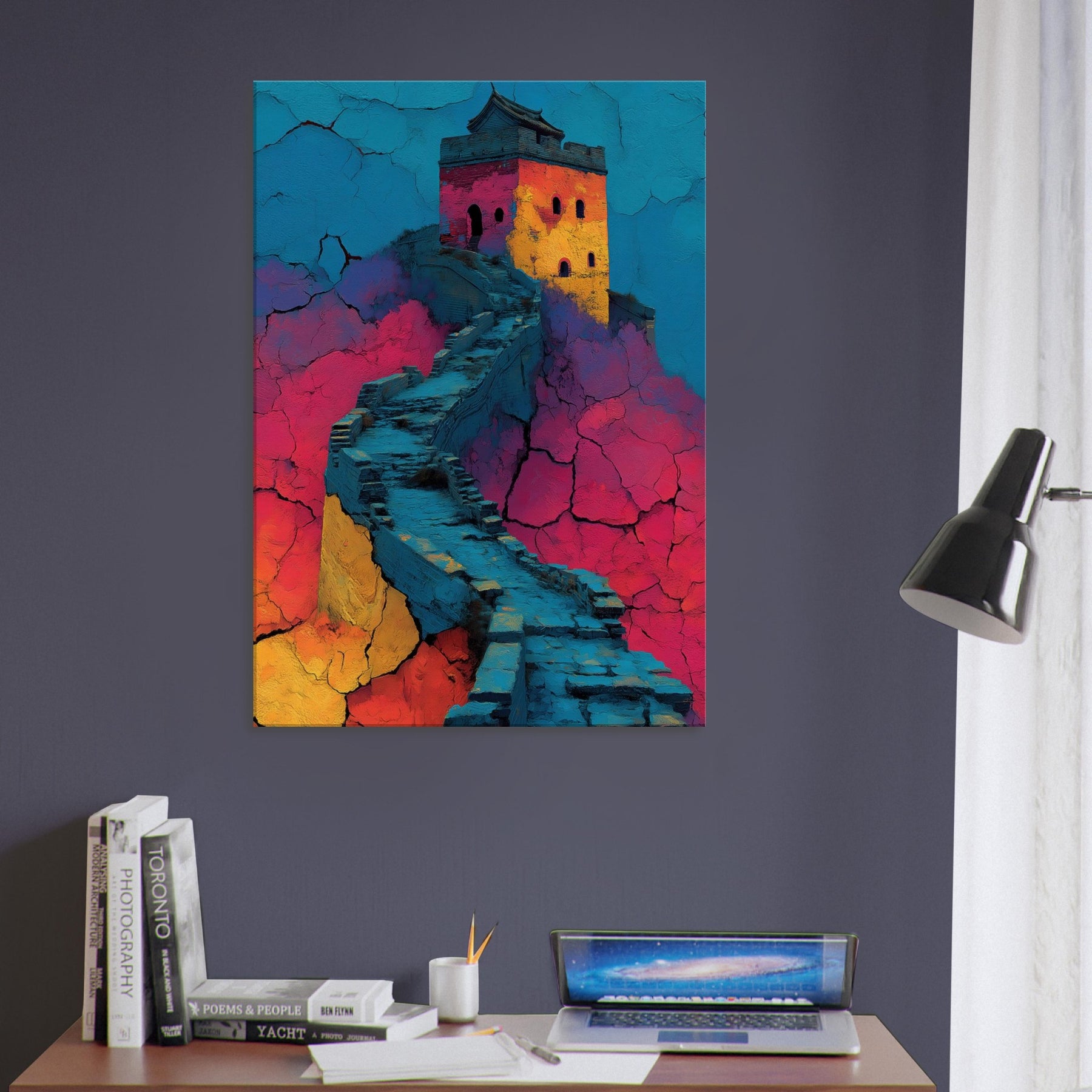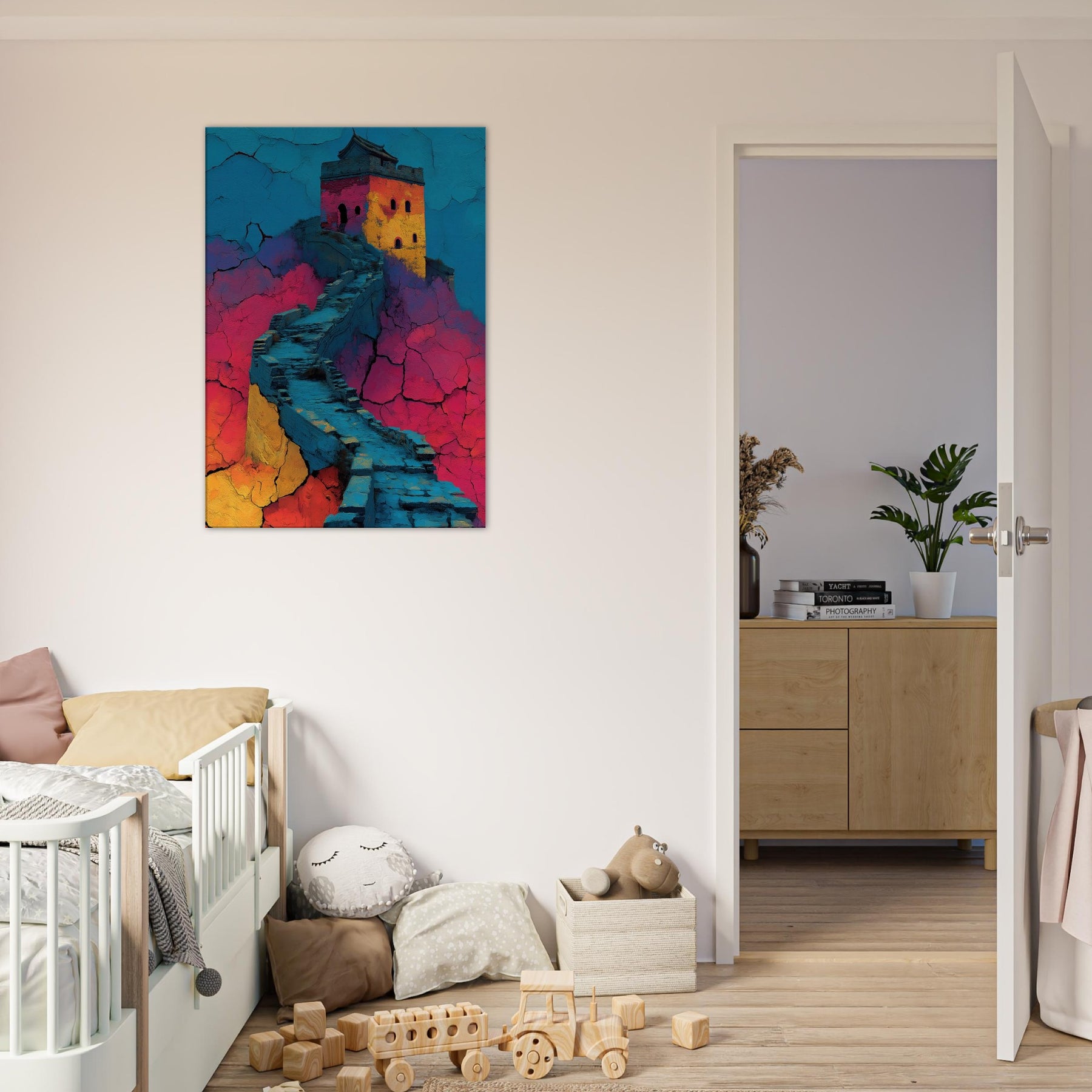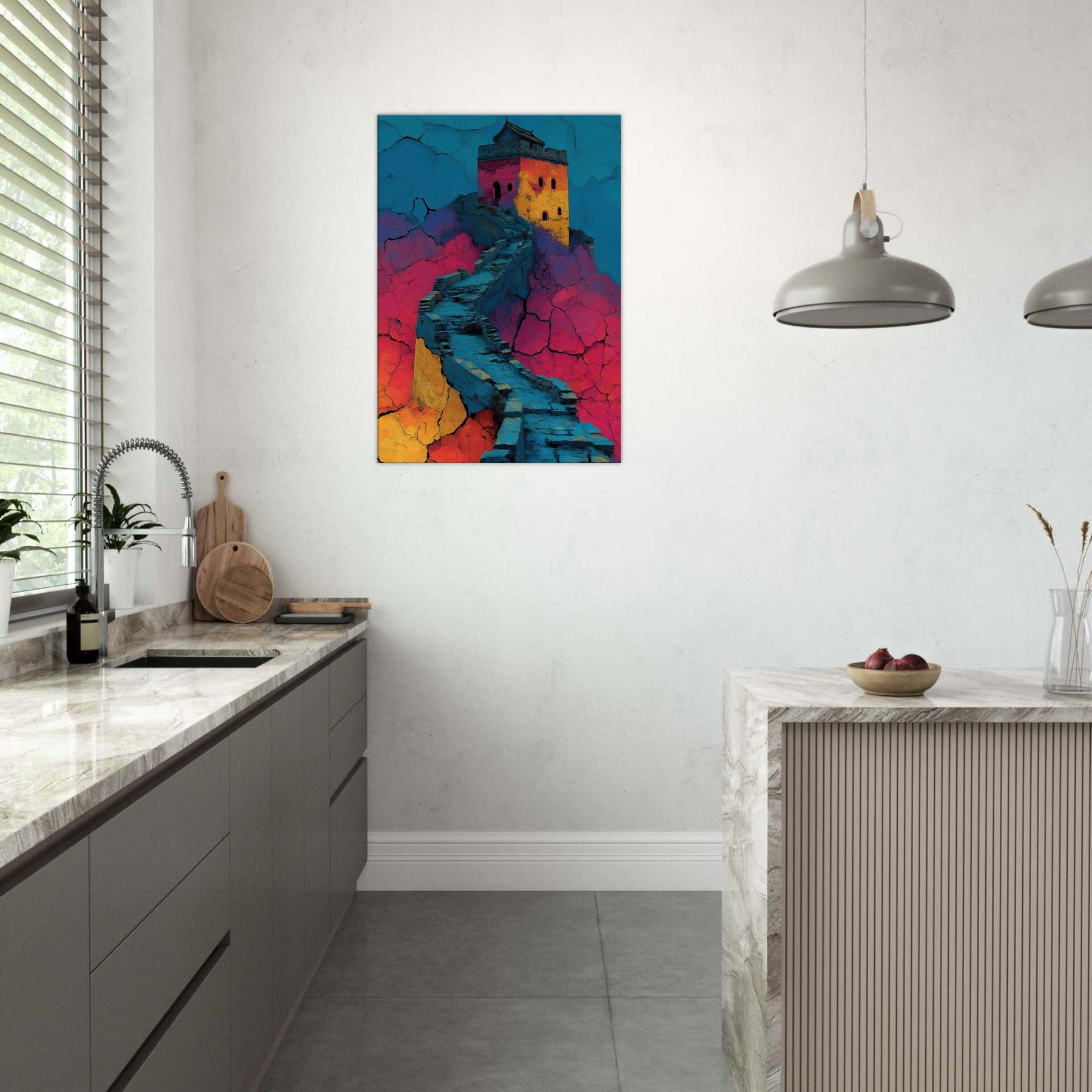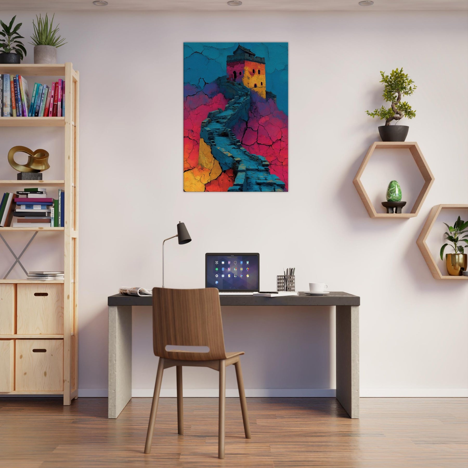 Behold the Great Wall Silhouette rendered as an electric, abstract ascent. The composition mingles ancient stone with a fevered palette teal stairways, magenta shadows, and sunlit yellows that invites the eye to wander and linger. It turns a corridor into a horizon and a room into a quiet, cinematic space. This piece amplifies atmosphere in living rooms, bedrooms, or studios, pairing as a bold focal point with minimalist furnishings for a modern, contemplative retreat.
