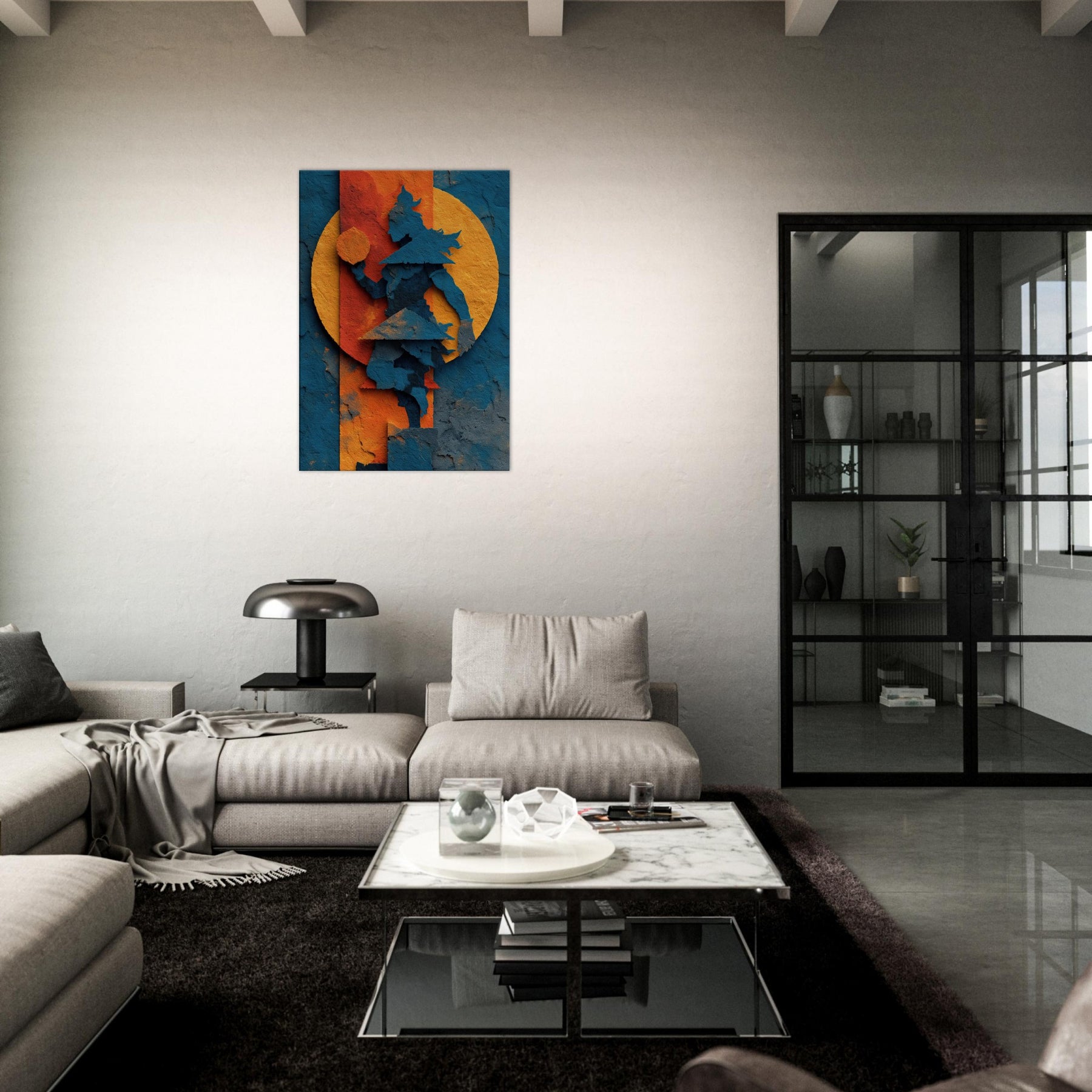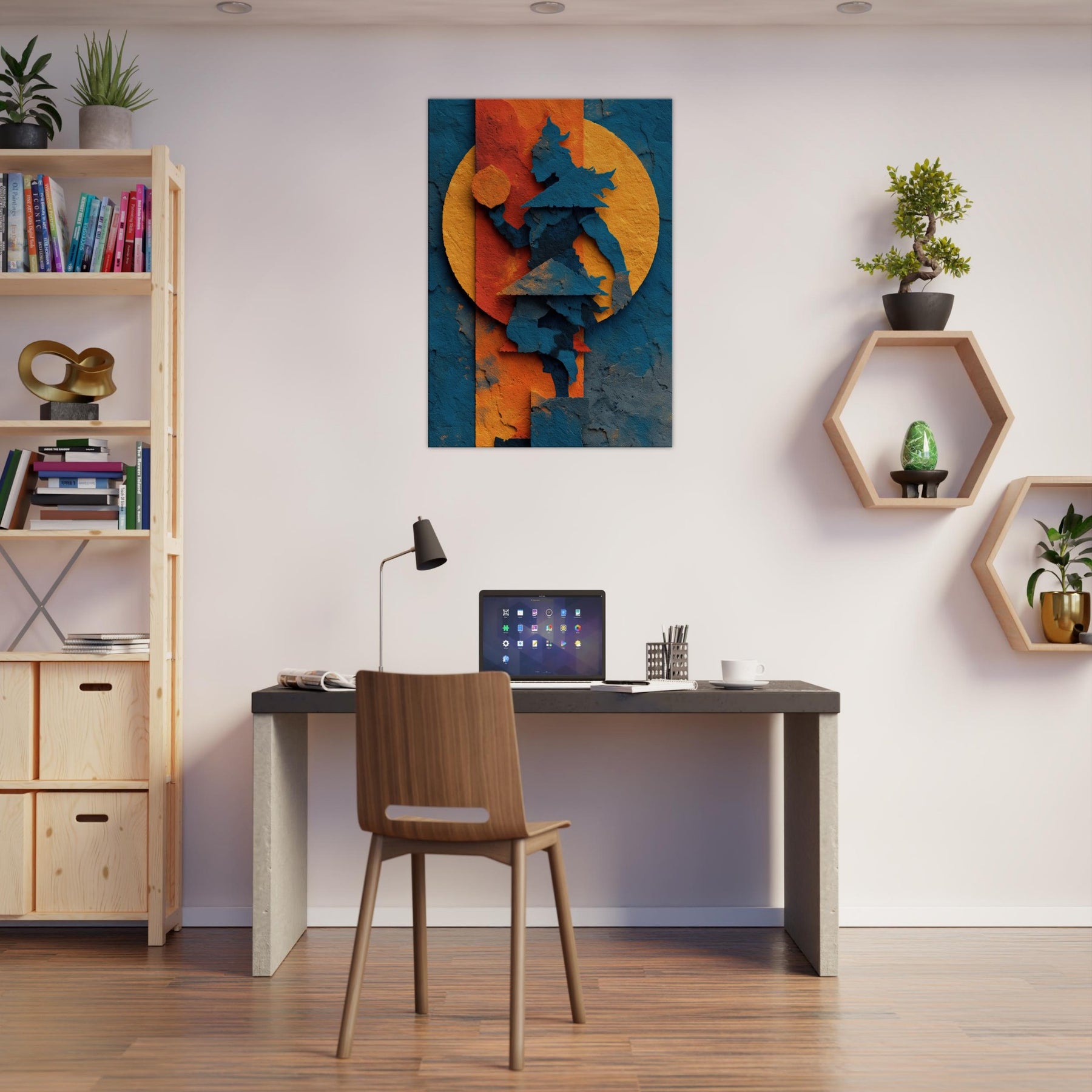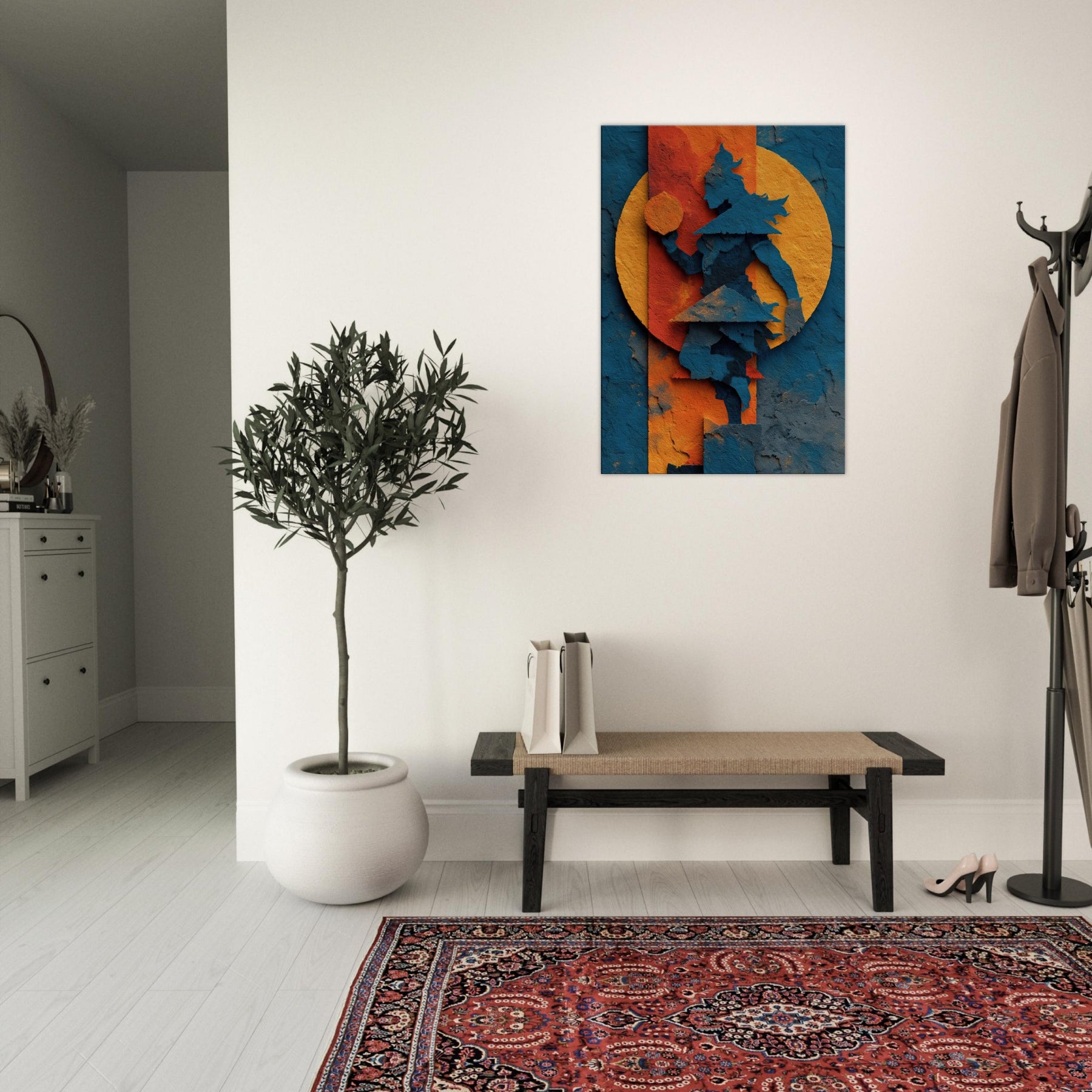 Immerse your living space in a cosmic rhythm with Shiva Nataraja reimagined in abstract form. The piece dissolves solid color into kinetic silhouettes deep blues, sunlit oranges, and molten gold that seem to move with a whispered mantra. It radiates a mystical warmth, like temple light spilling across a quiet wall, inviting stillness and wonder. Crafted as a contemporary sculpture for walls, it turns any room into a meditative sanctuary while maintaining elegant, modern energy that complements both minimal and maximal decor.