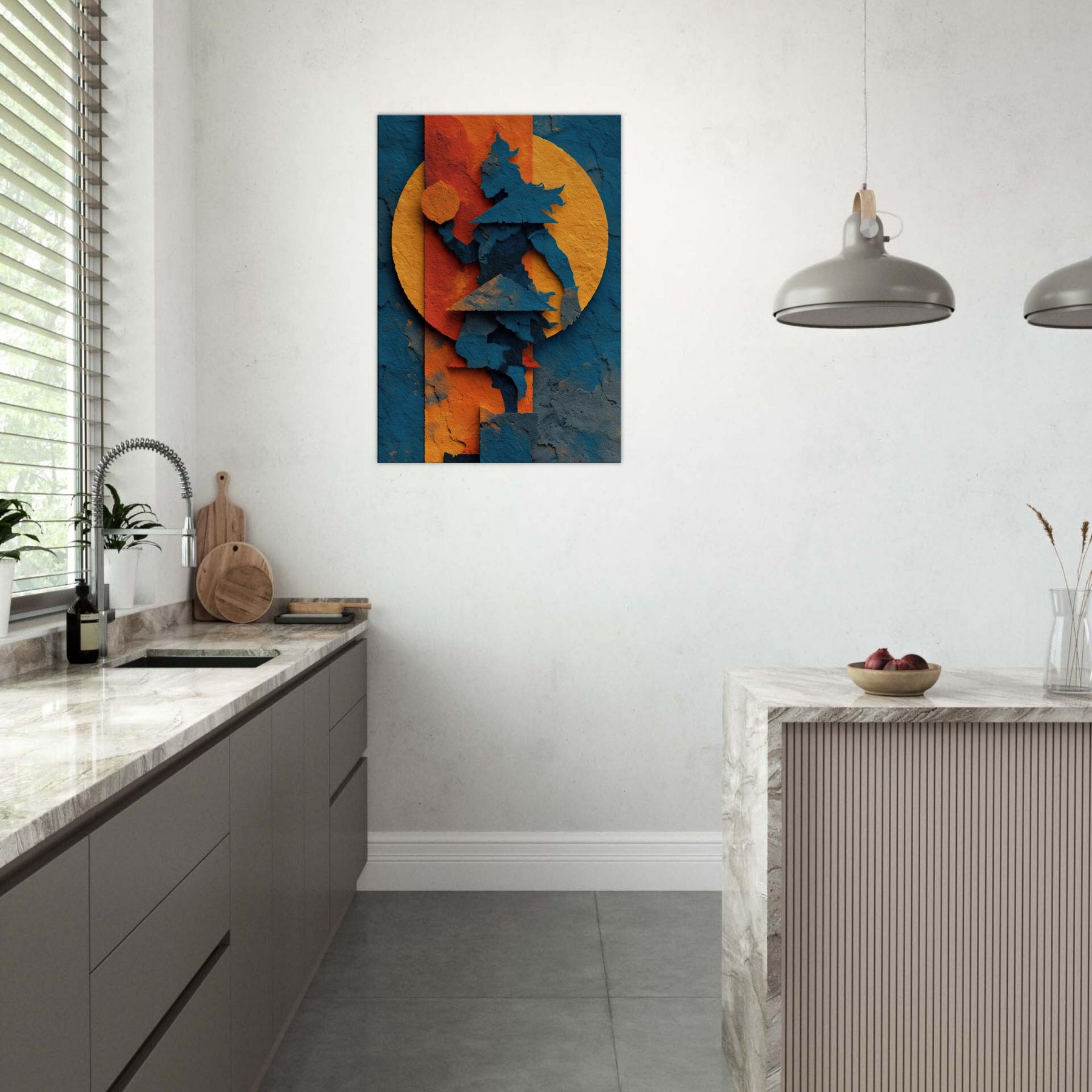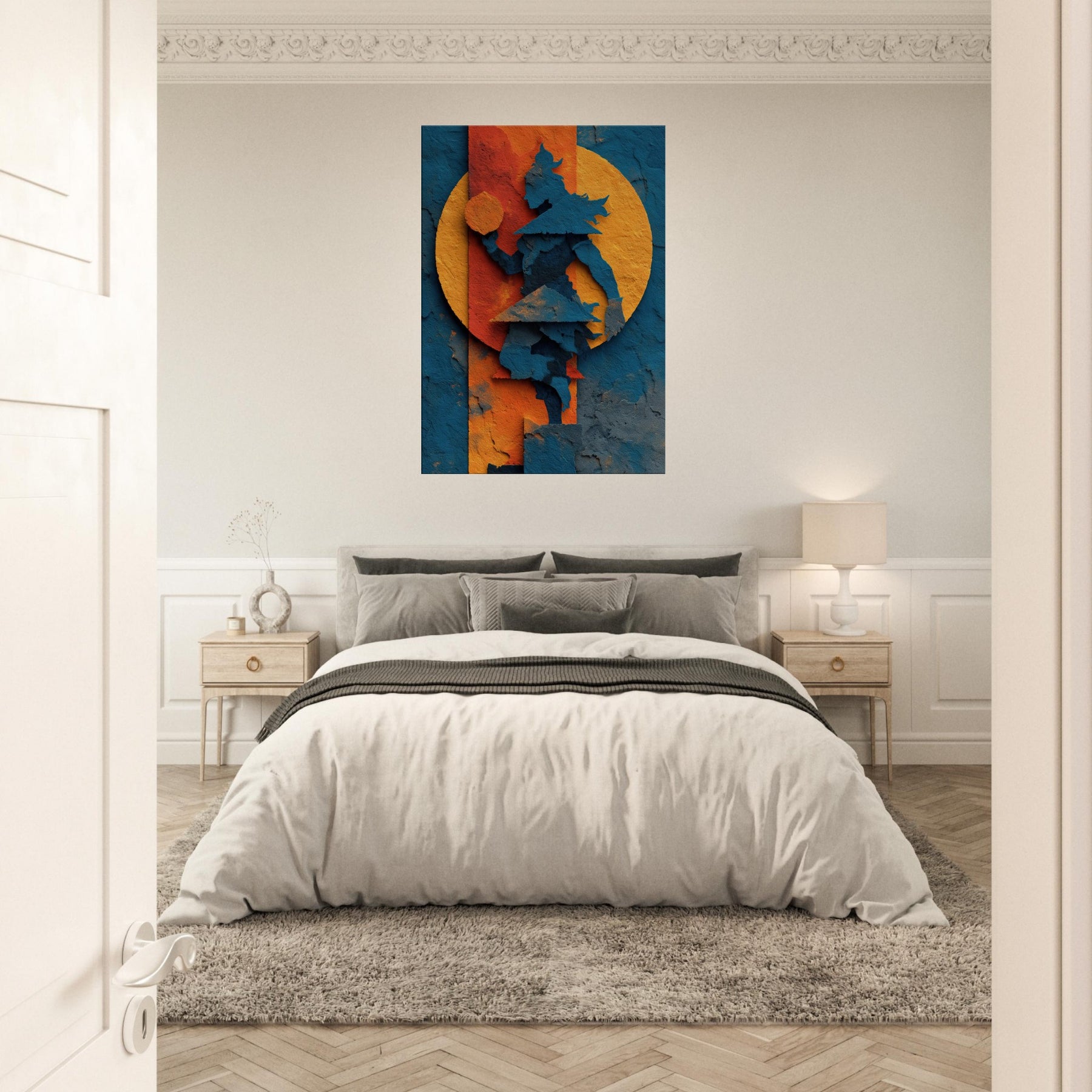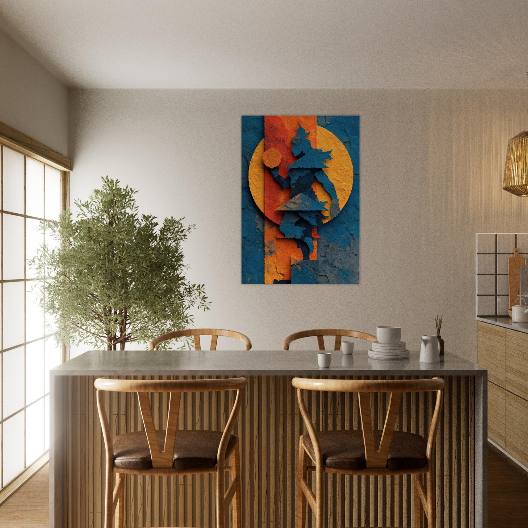 Immerse your living space in a cosmic rhythm with Shiva Nataraja reimagined in abstract form. The piece dissolves solid color into kinetic silhouettes deep blues, sunlit oranges, and molten gold that seem to move with a whispered mantra. It radiates a mystical warmth, like temple light spilling across a quiet wall, inviting stillness and wonder. Crafted as a contemporary sculpture for walls, it turns any room into a meditative sanctuary while maintaining elegant, modern energy that complements both minimal and maximal decor.