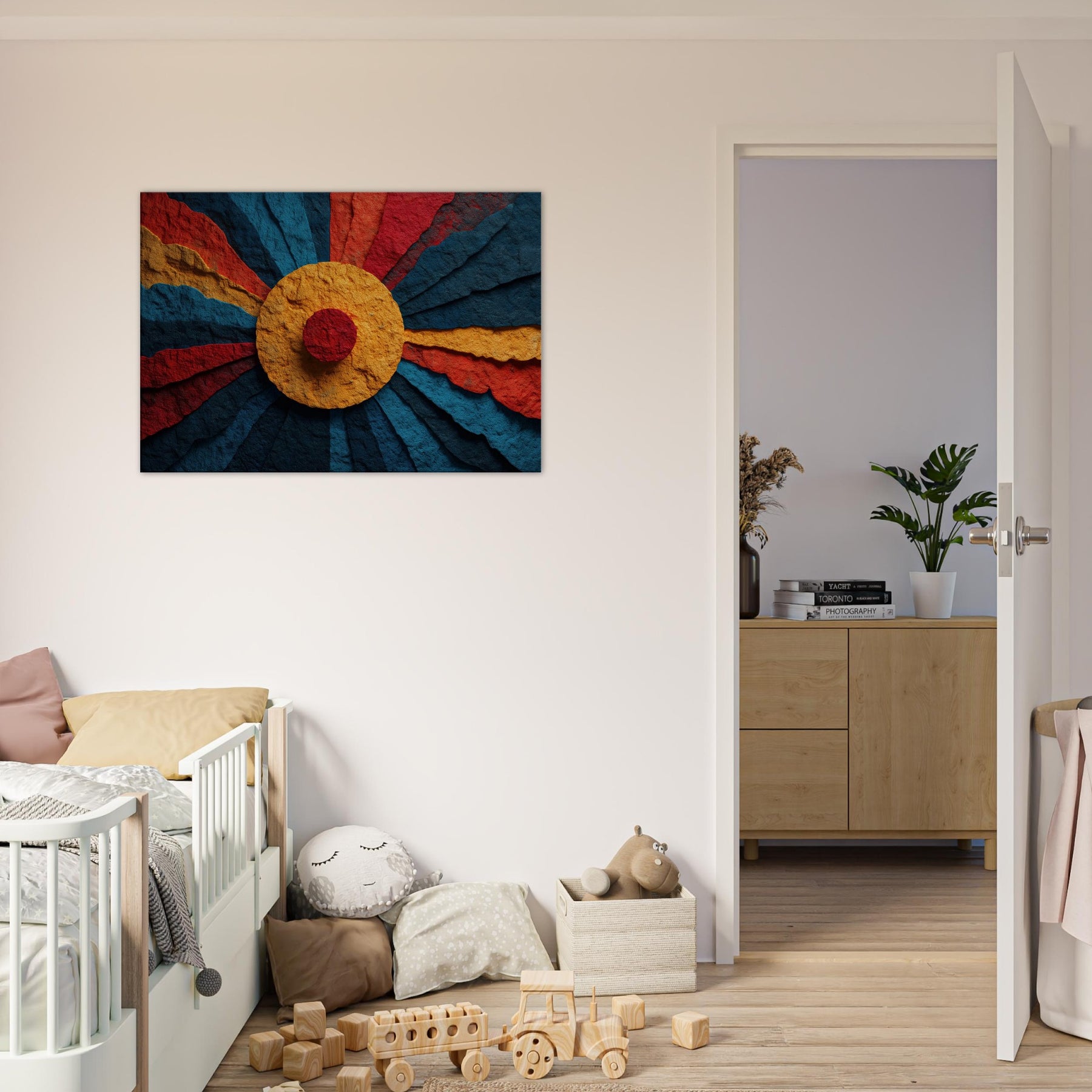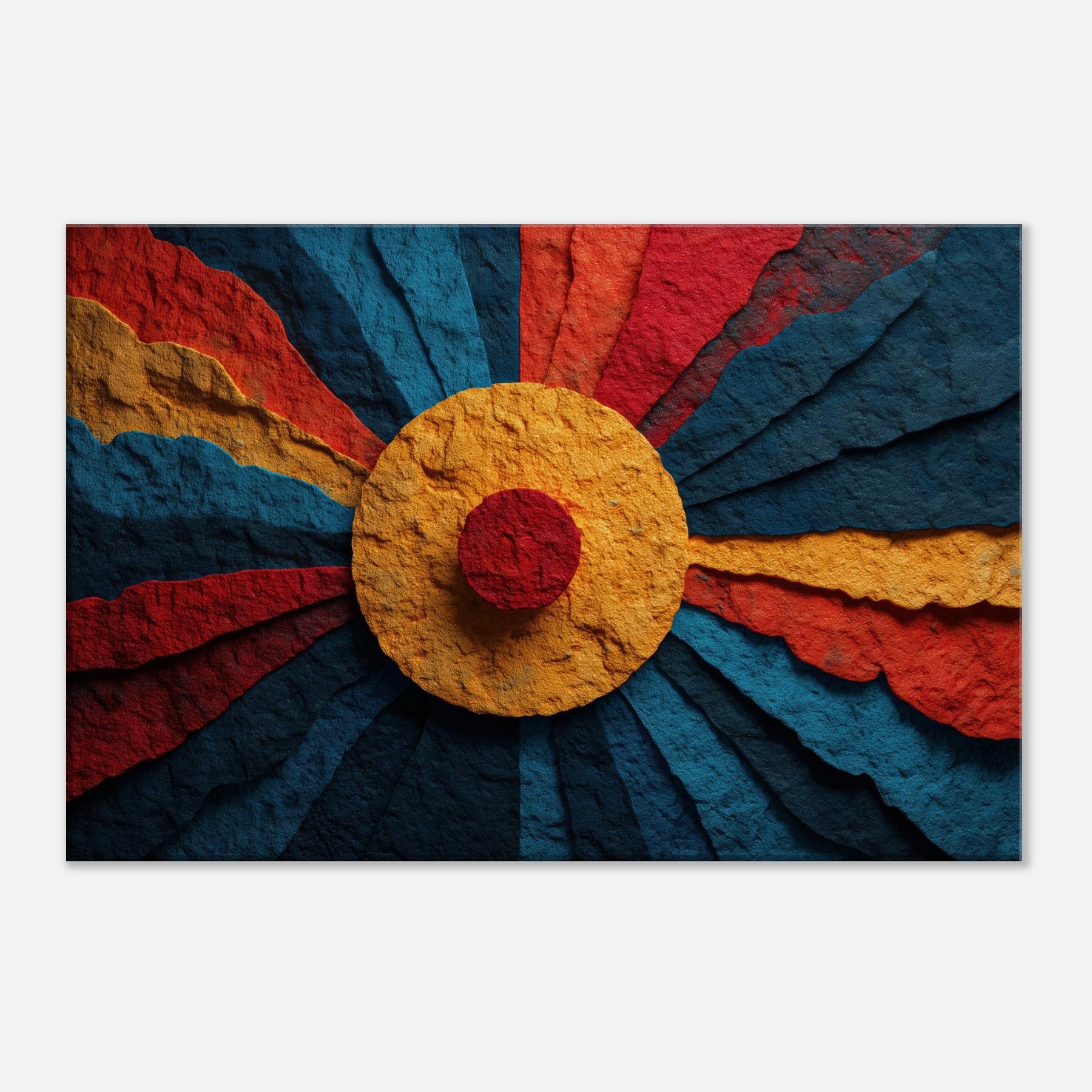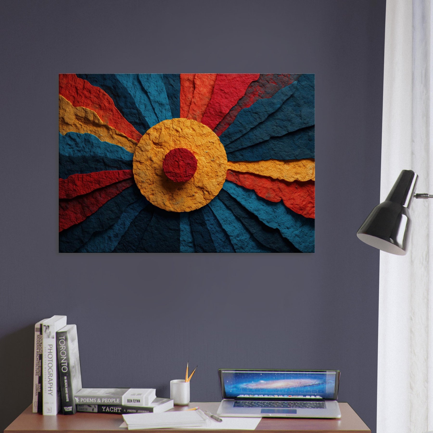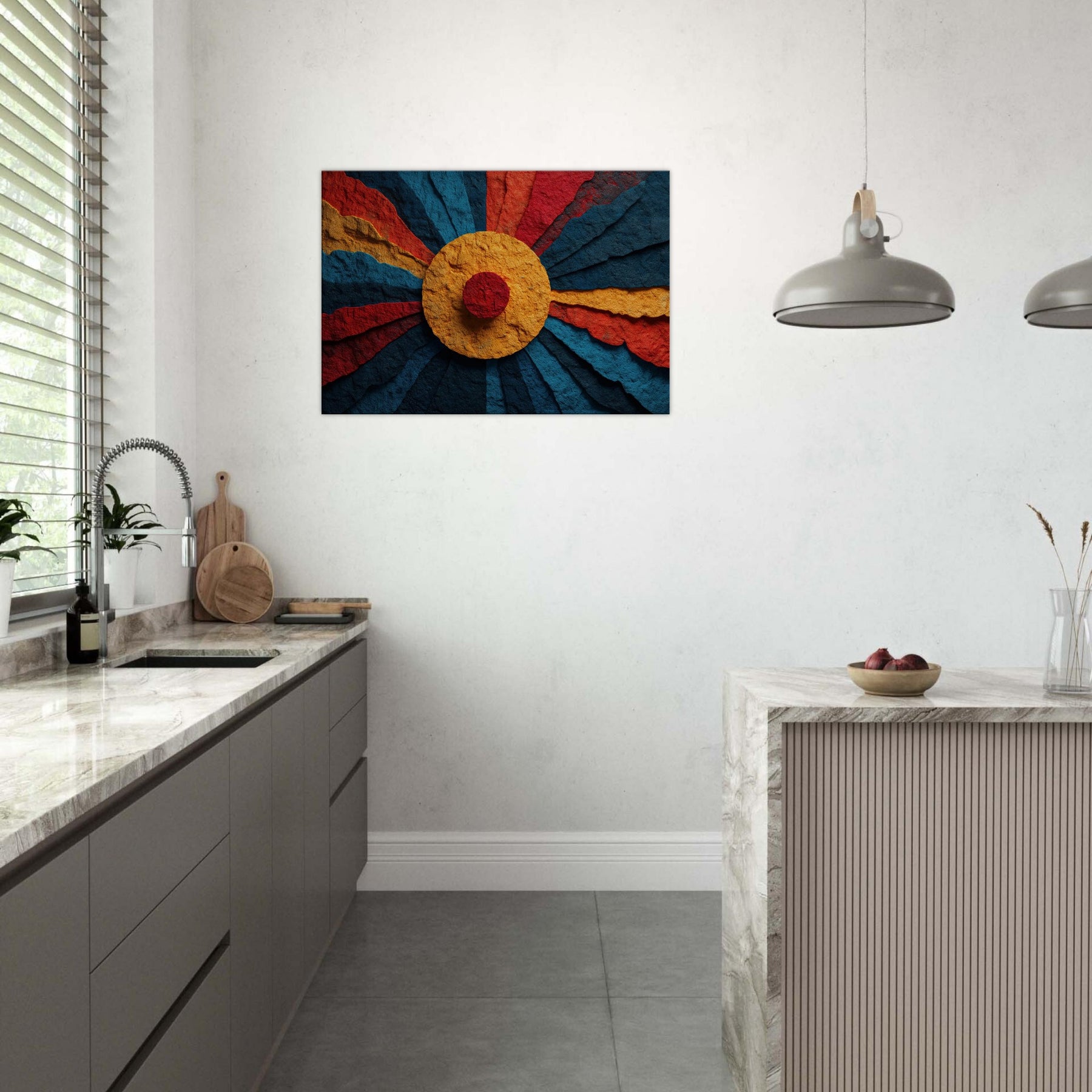 A luminous abstraction that circles inward, the Dharma Wheel pulses with color and motion. Each ring of textured pigment suggests breath, a quiet mantra you can feel under your fingertips. In a living room or studio, this piece breathes with you, turning walls into a meditation alcove. The mystical energy of the wheel invites reflection, while the vivid hues amber, cobalt, ruby create a warm, contemporary atmosphere that elevates any space. The central subject is Dharma Wheel (Dharmachakra).