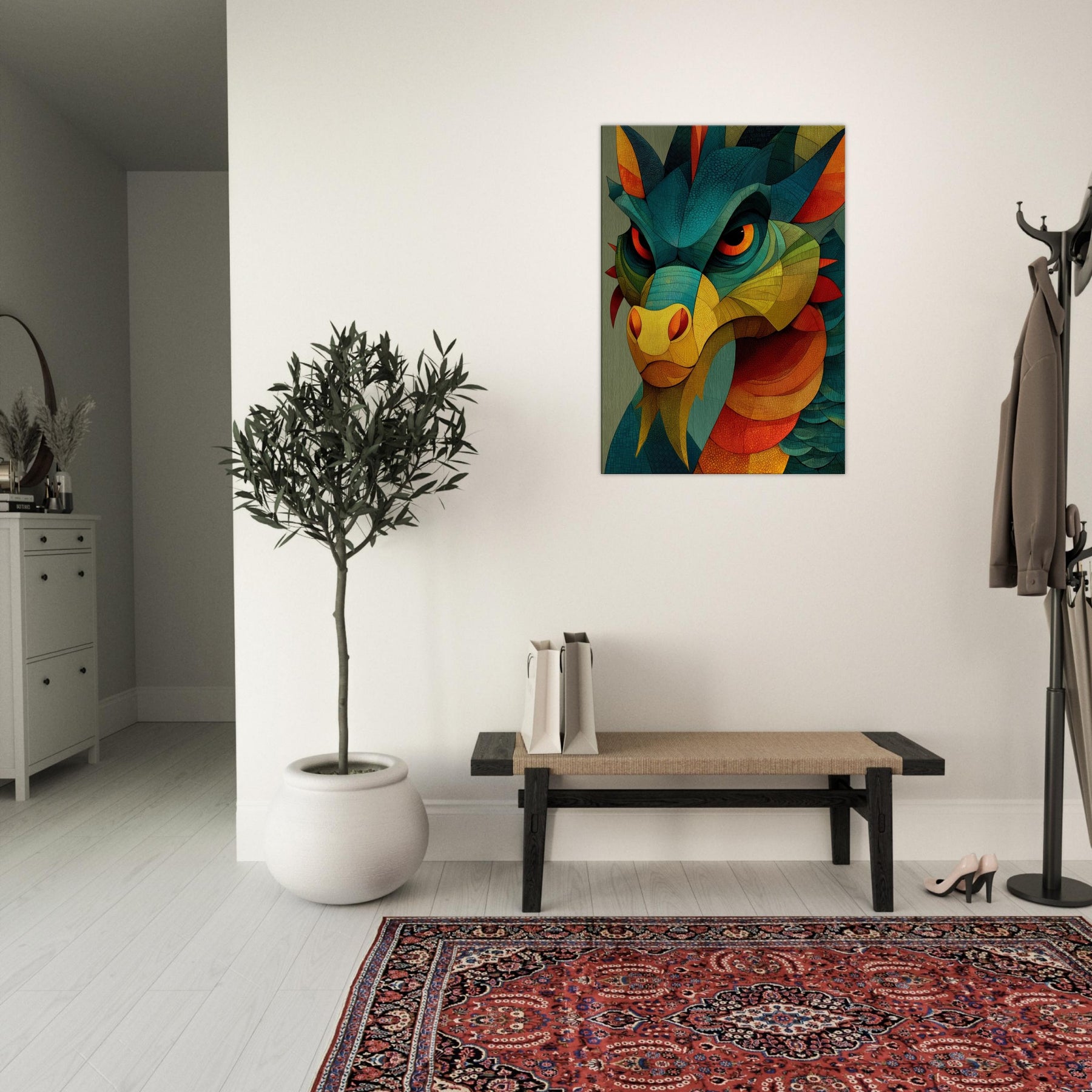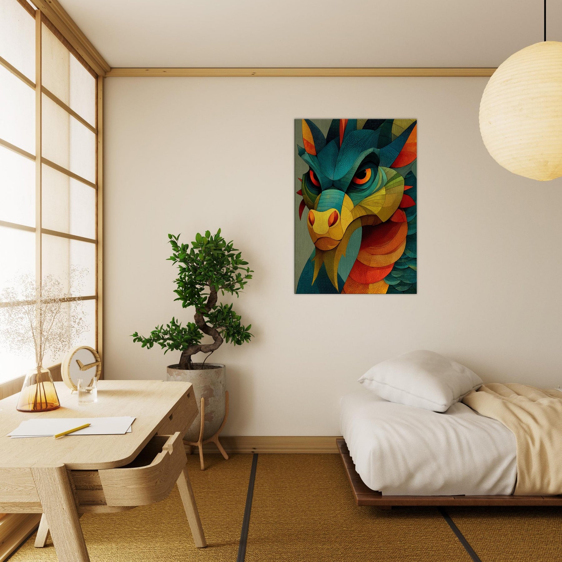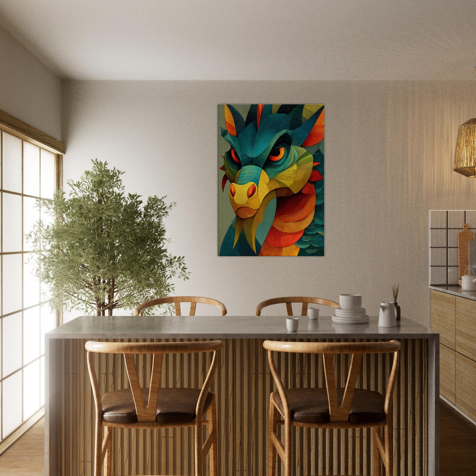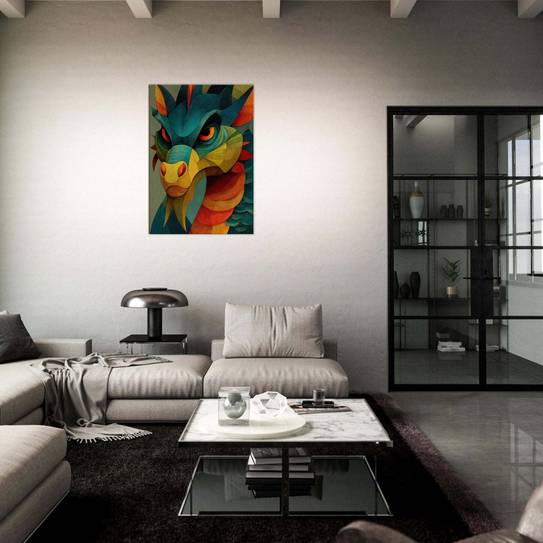 Immerse your space in the regal presence of a Chinese Dragon brought to life through fluid geometric shapes and ravishing color. This abstract interpretation breathes ancient myth into a contemporary canvas, where turquoise scales meet saffron highlights and fiery coral accents. The artwork's layered textures invite a tactile, almost architectural rhythm, turning a wall into a talking centerpiece that glows at dusk and hums with energy by day. Perfect for a living room or study seeking wonder and drama.