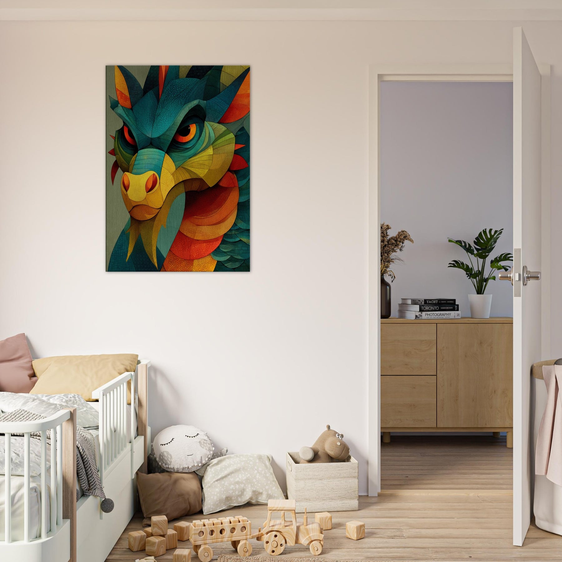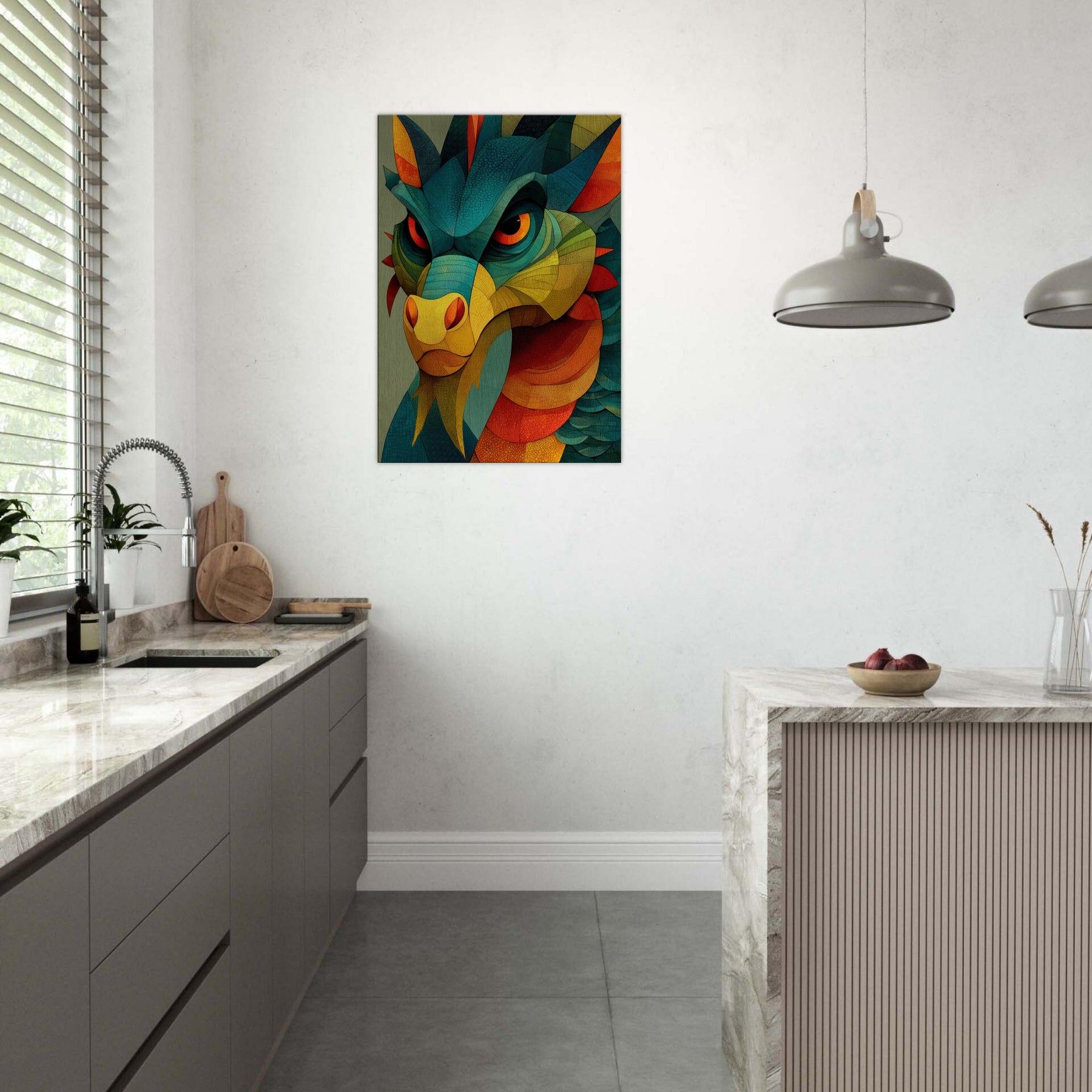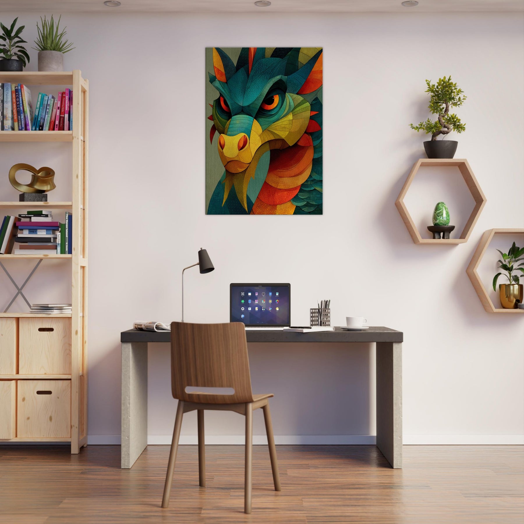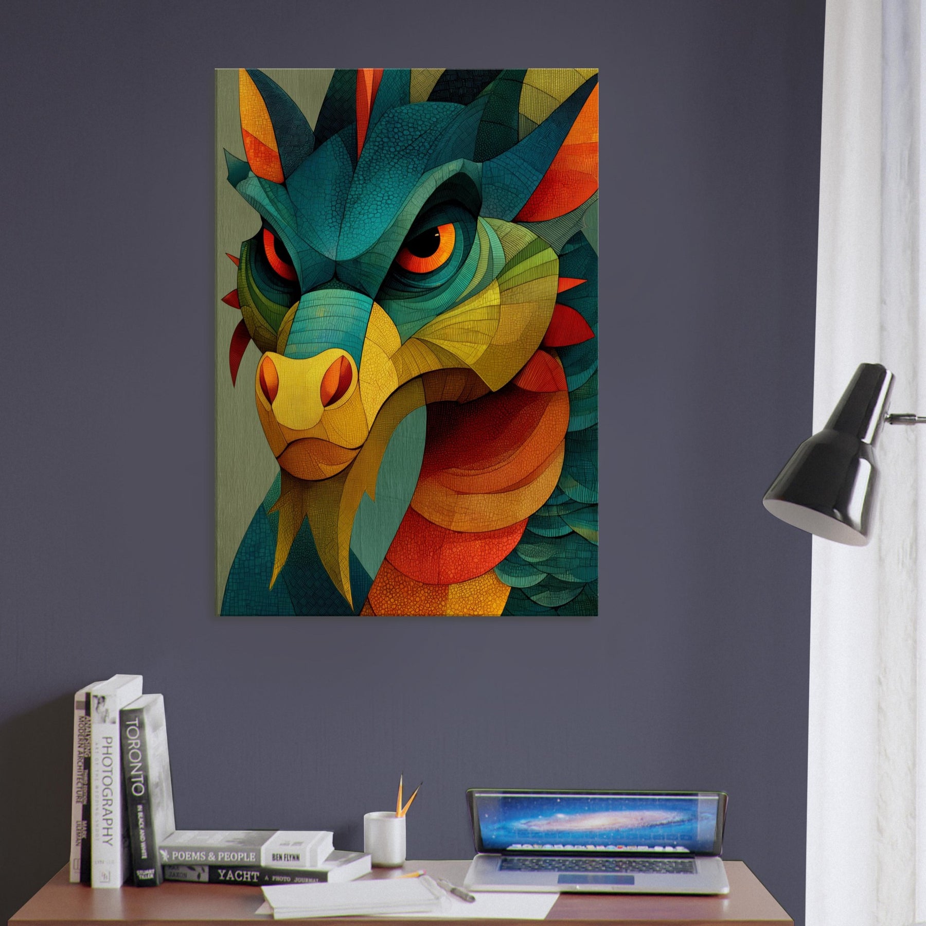 Immerse your space in the regal presence of a Chinese Dragon brought to life through fluid geometric shapes and ravishing color. This abstract interpretation breathes ancient myth into a contemporary canvas, where turquoise scales meet saffron highlights and fiery coral accents. The artwork's layered textures invite a tactile, almost architectural rhythm, turning a wall into a talking centerpiece that glows at dusk and hums with energy by day. Perfect for a living room or study seeking wonder and drama.