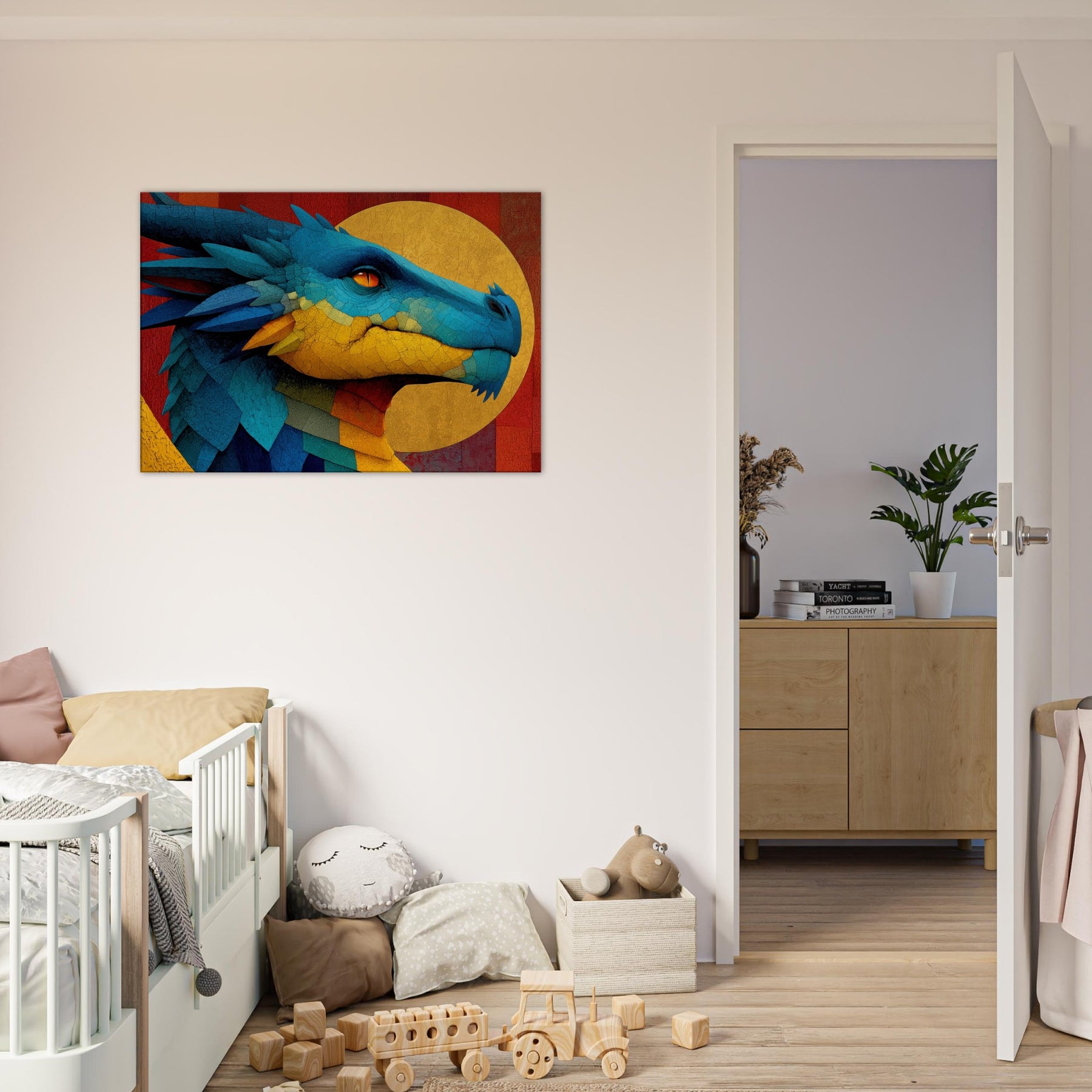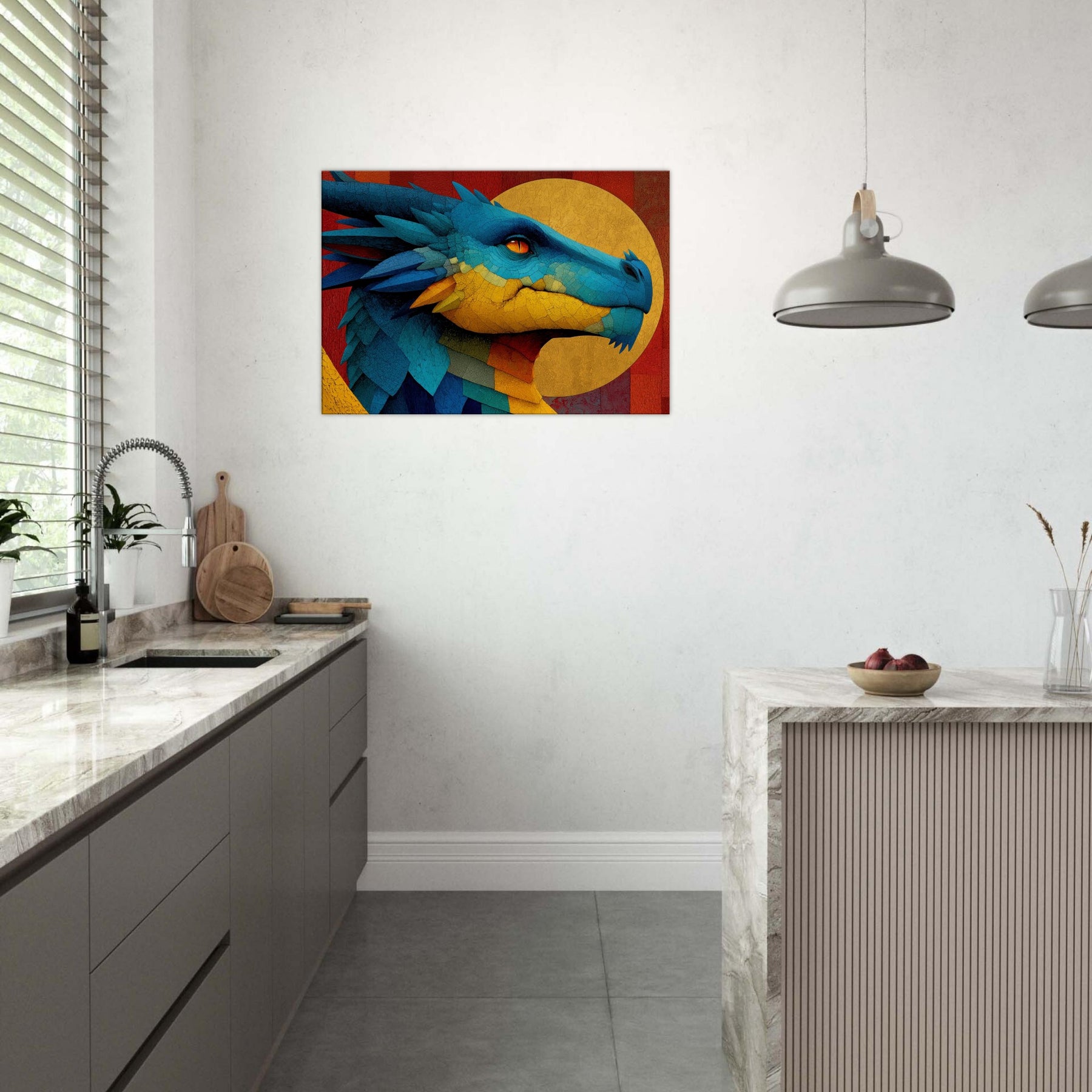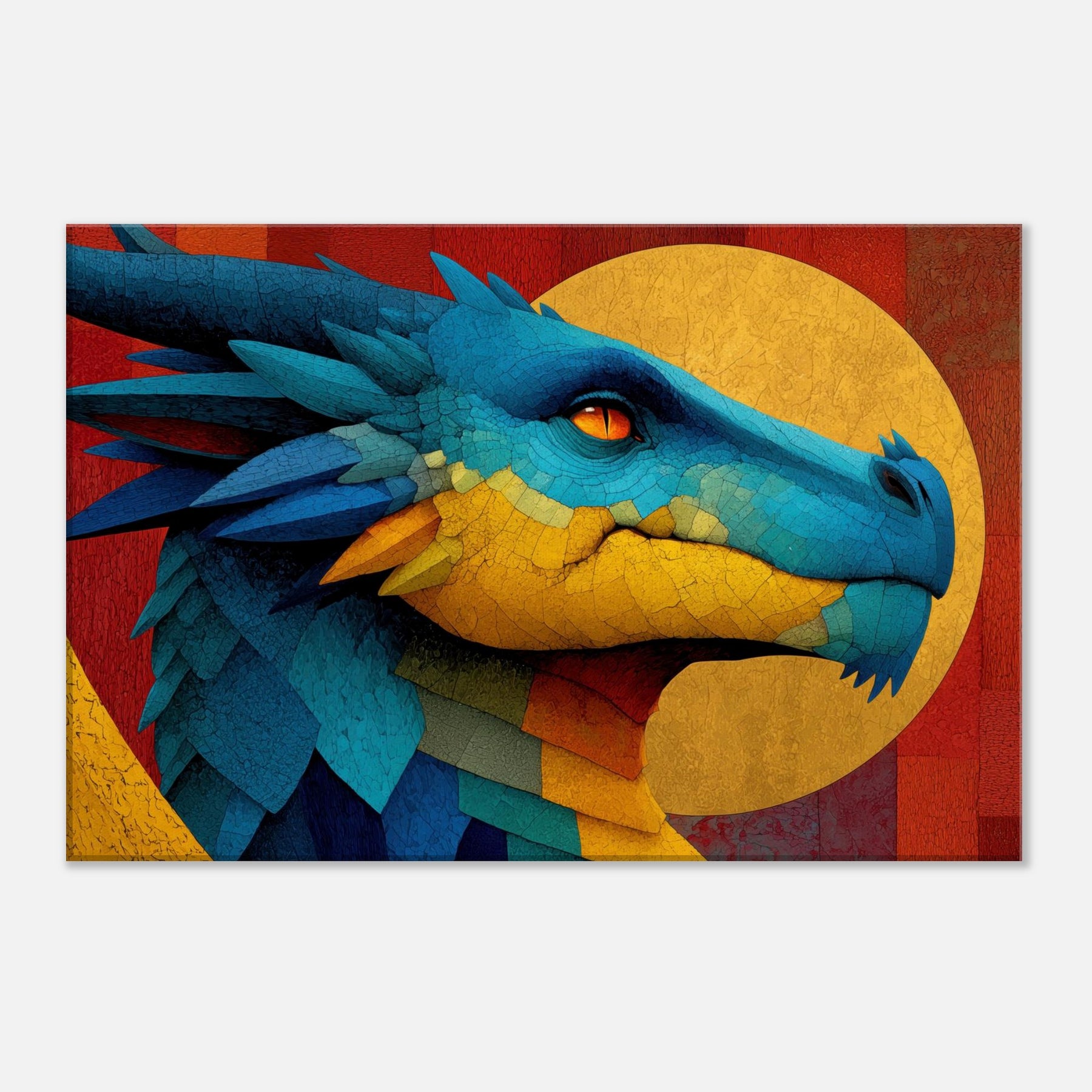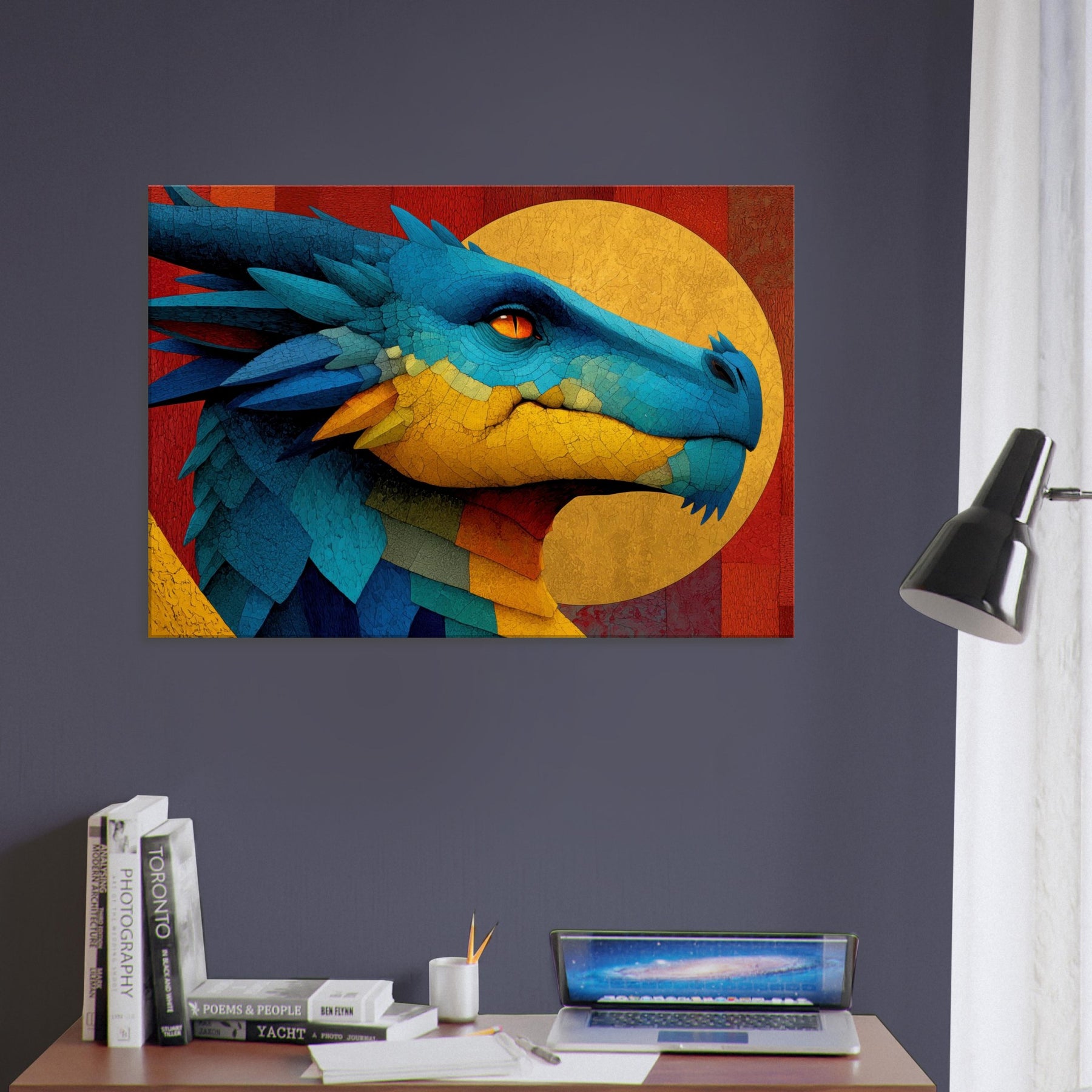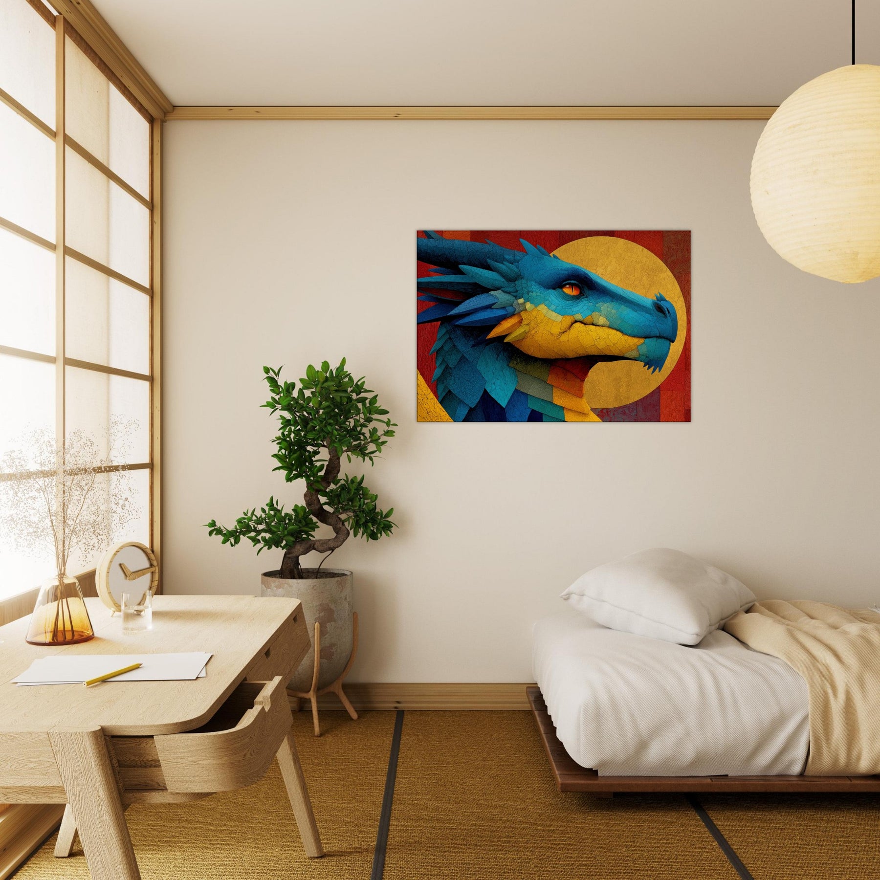 Majestic Dragon glides across a mosaic of color, its scales catching the light like sunlit tiles. This abstract fantasy invites warmth and wonder into a room, with cobalt blues and molten ochres that shift as you move. The dragon's vigilant amber eye seems to hold the room's quiet energy, while the layered textures create depth and a tactile texture. Perfect above a sofa or in a quiet study, it transforms walls into a living horizon dramatic, comforting, and endlessly inspiring.