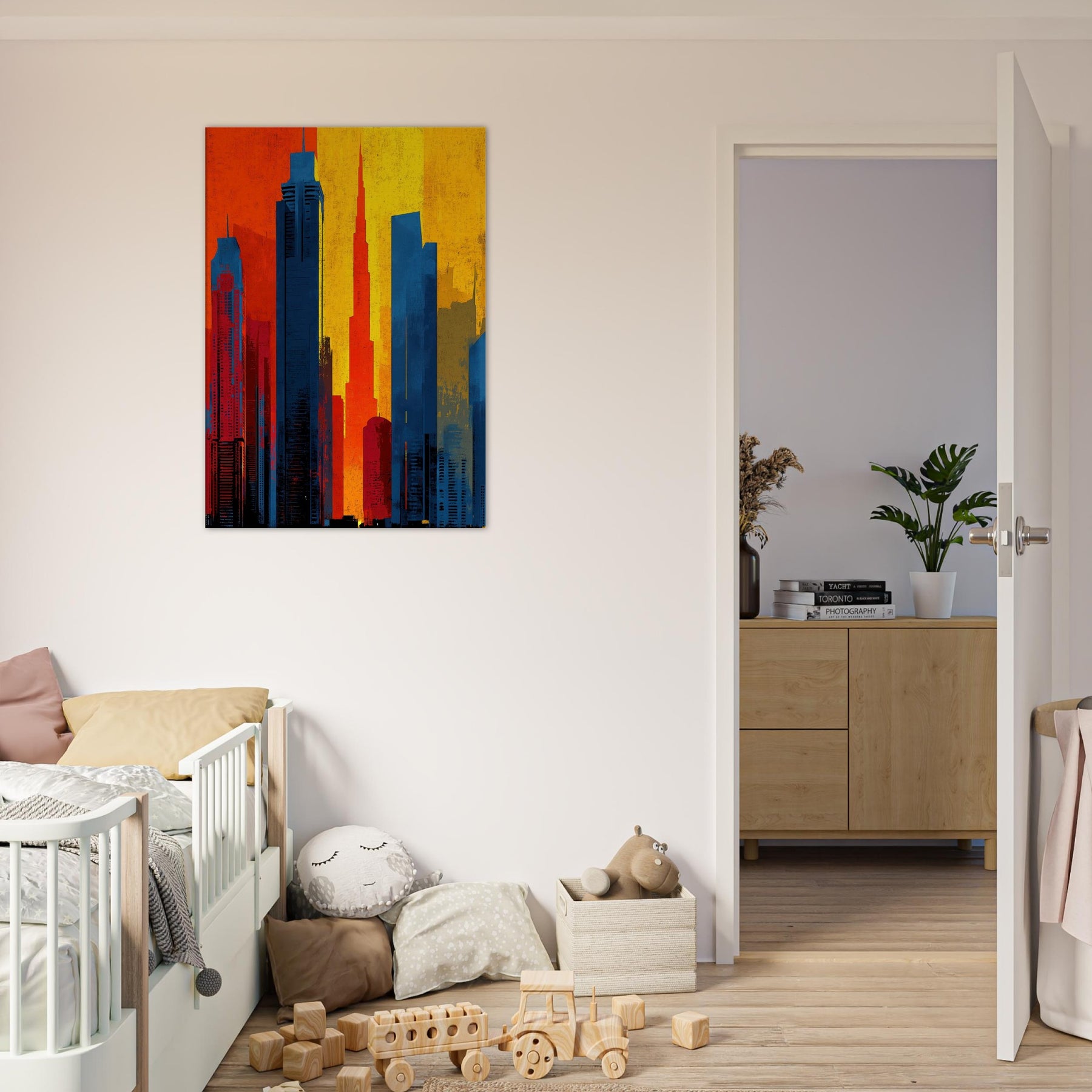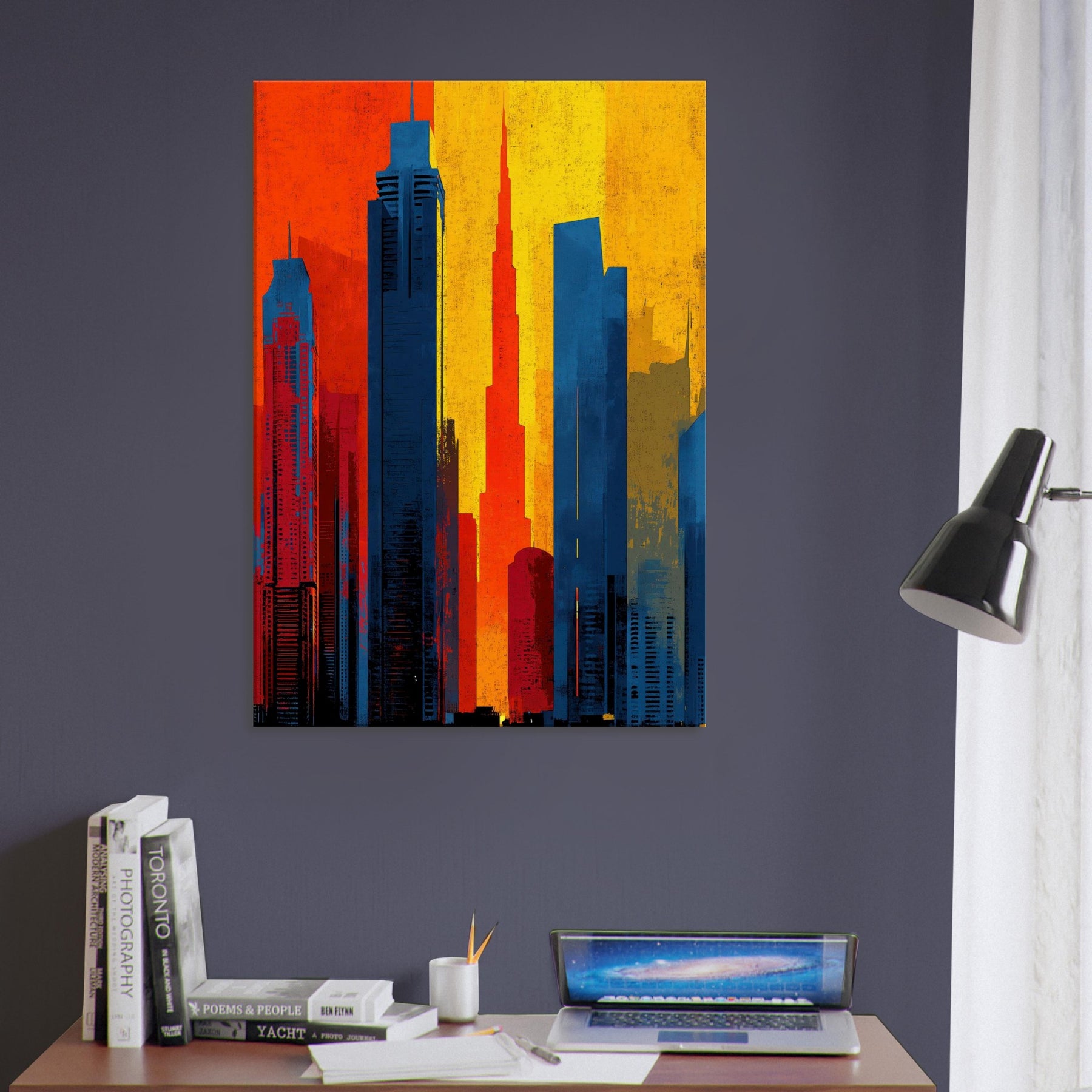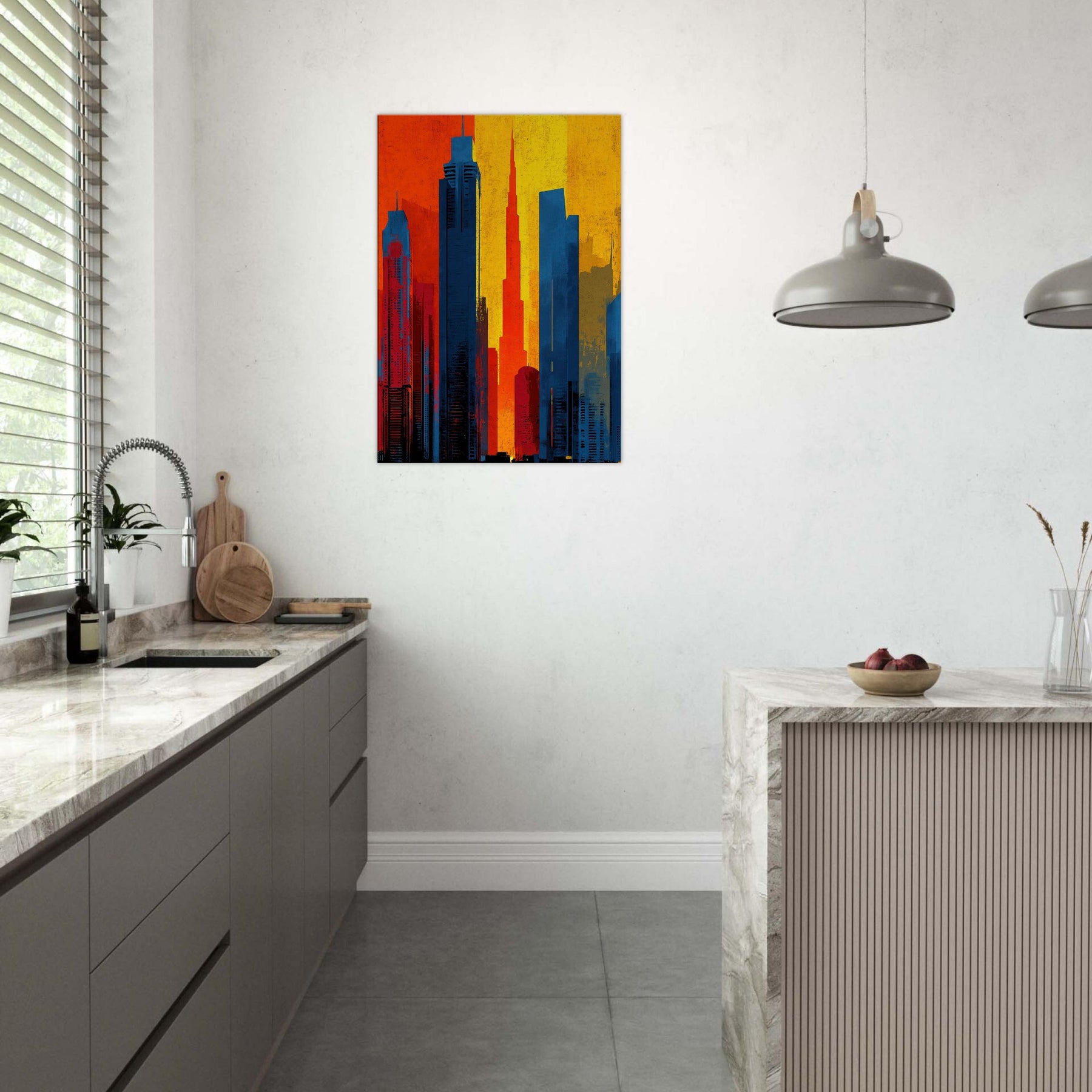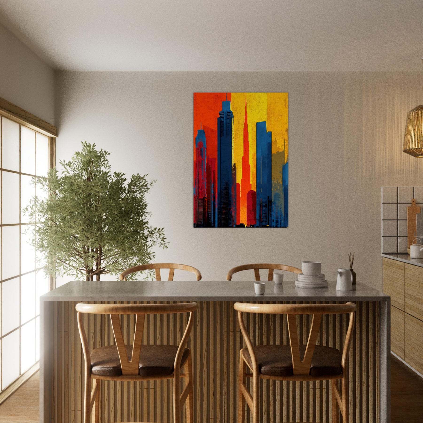 Dubai Neon Horizon electrifies the room with an electric ribbon of sunrise hues and midnight blues. This abstract cityscape breathes with momentum skyscrapers rising like prisms, bathed in warm reds and cool blues that echo desert sun and ocean dusk. A tactile texture of grain and grit adds depth, inviting touch and contemplation. Hung in a living room or office, it acts as a constant pulse of energy and aspiration, turning walls into a window to far horizons and the luminous heartbeat of Dubai.