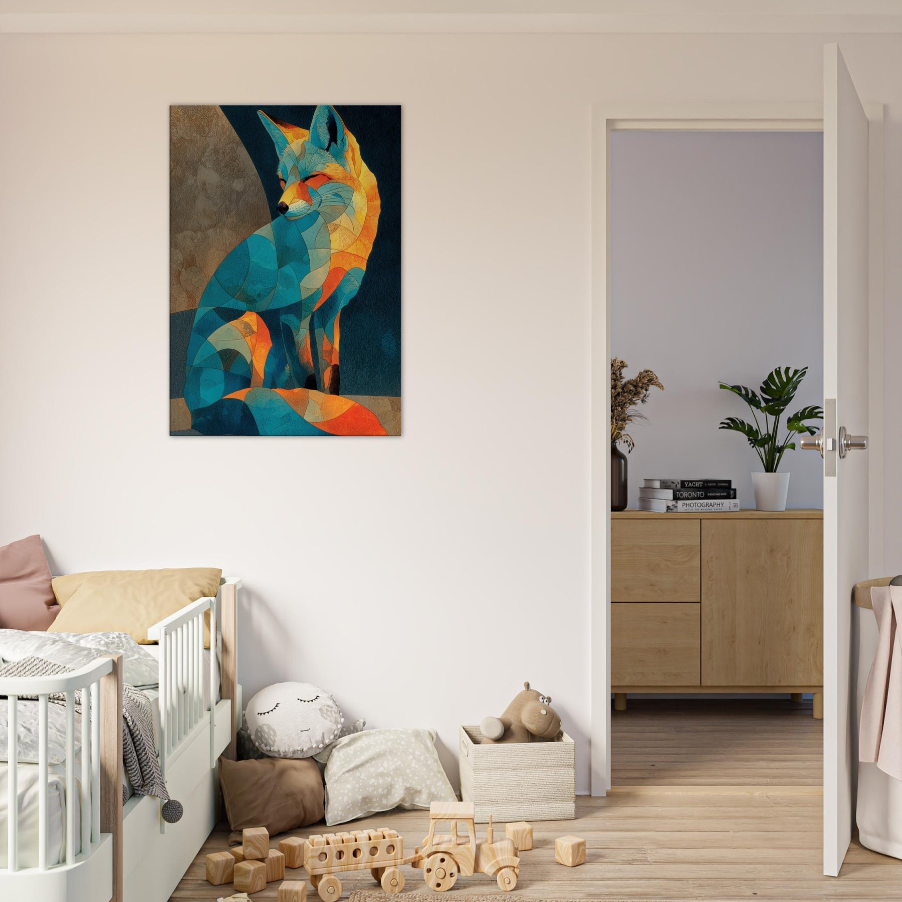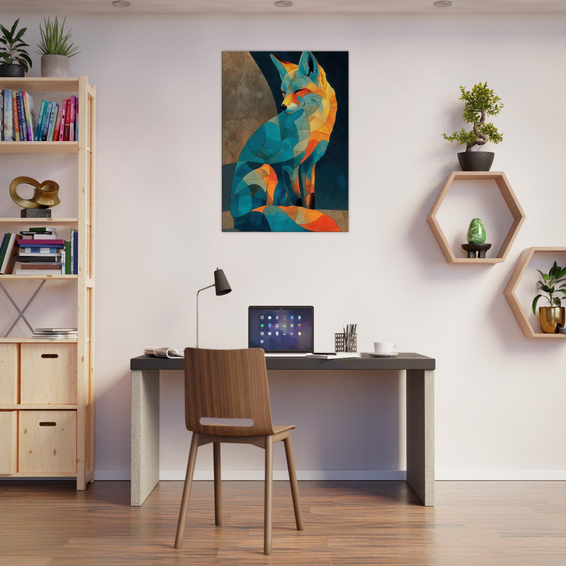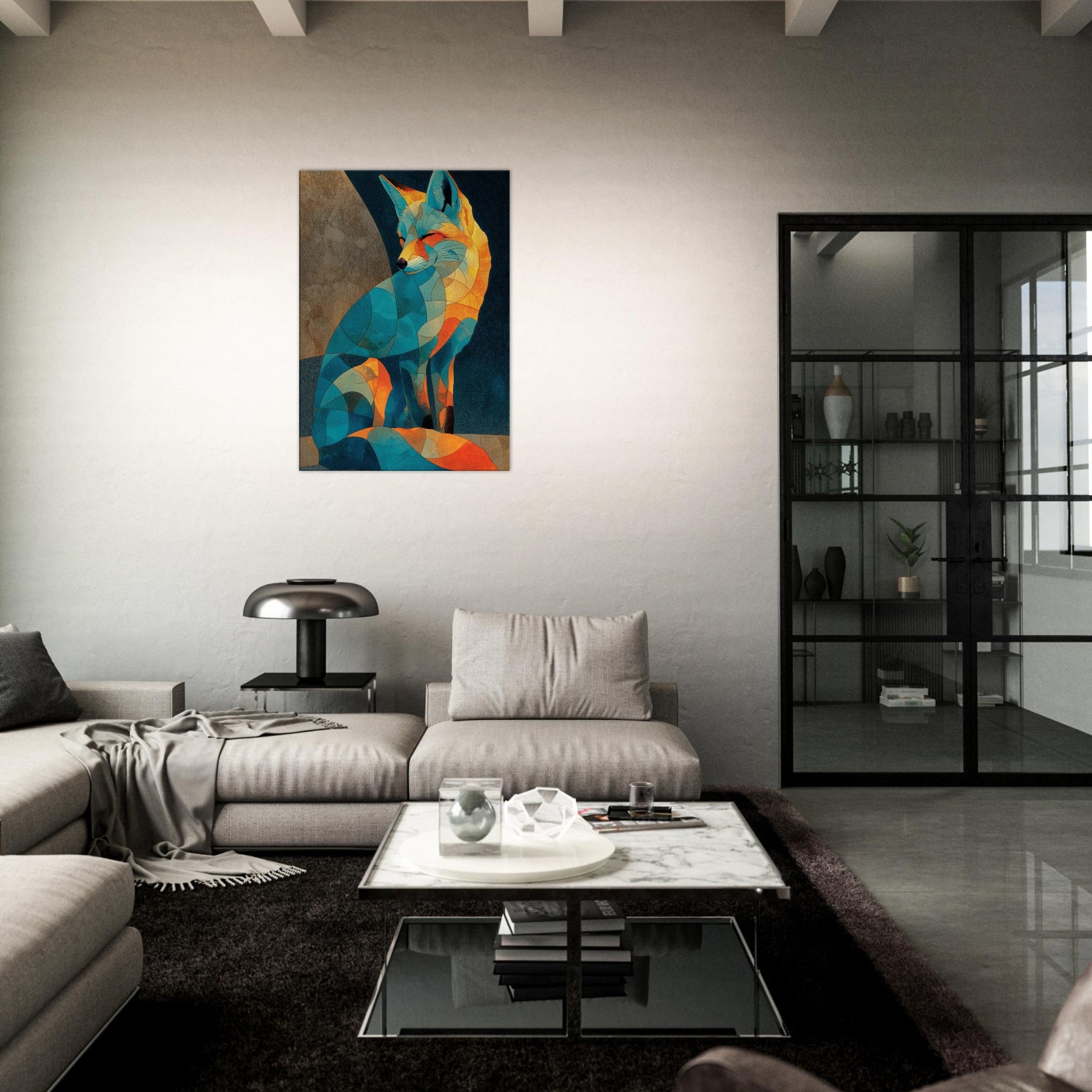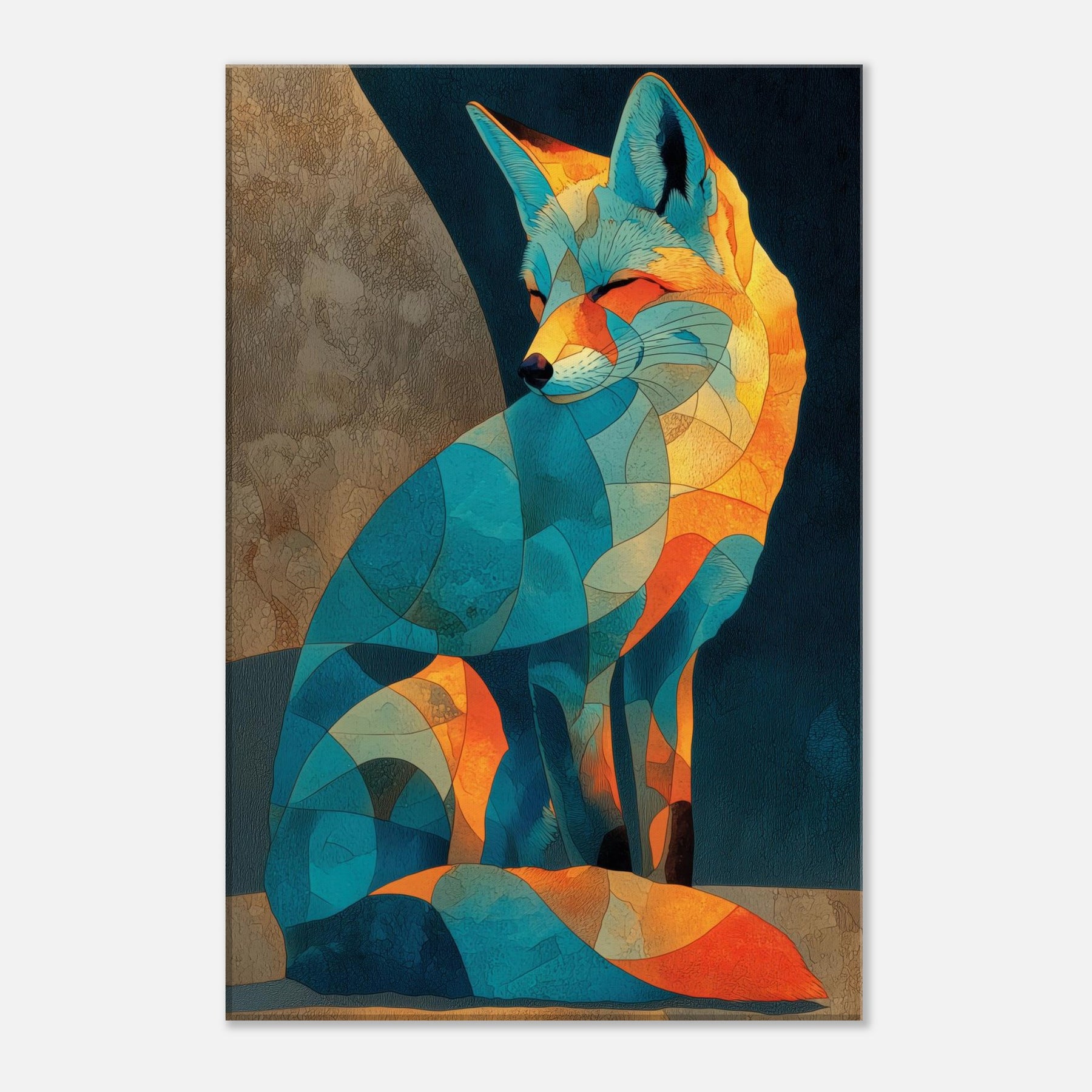 Let the Kitsune glow fill your space with quiet, shifting light. This abstract celebration of a fox spirit dissolves form into luminous panels of blue and amber, like twilight glass and moonlit fire. The result is a sensation of motion and mystery that makes a living room feel larger, calmer, and more magnetic. Hang it where conversation lingers above a sofa, in a hallway, or near a reading nook and let the fox's patient grace invite curiosity, warmth, and dreamlike wonder. The central subject is Kitsune (Fox Spirit).