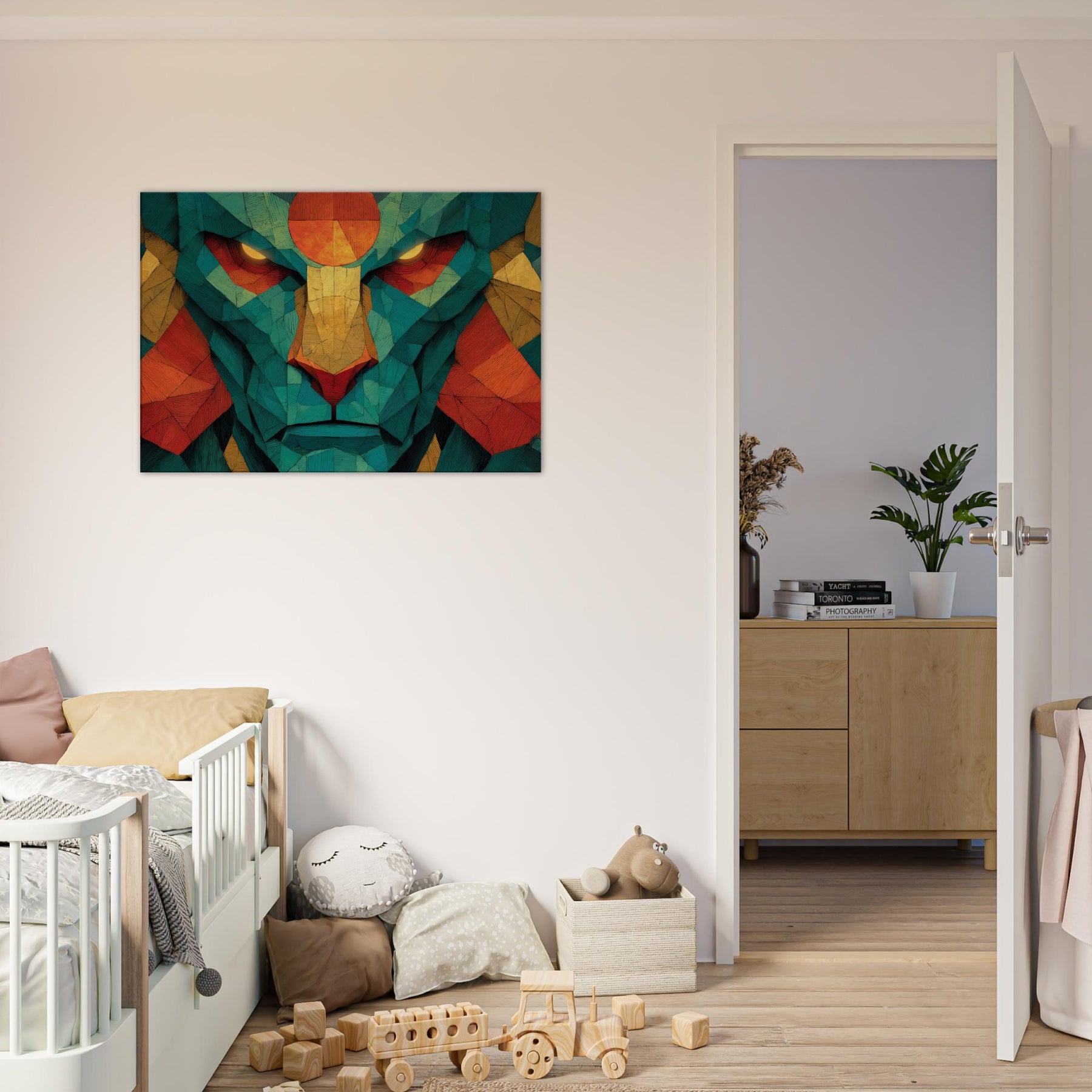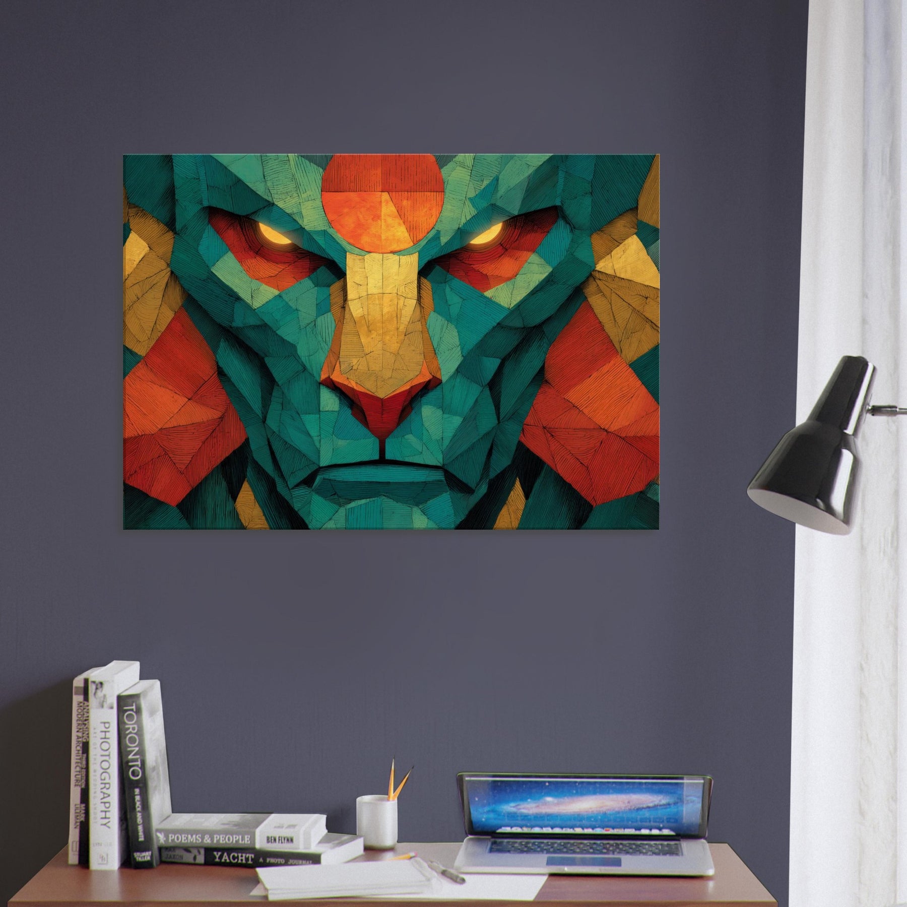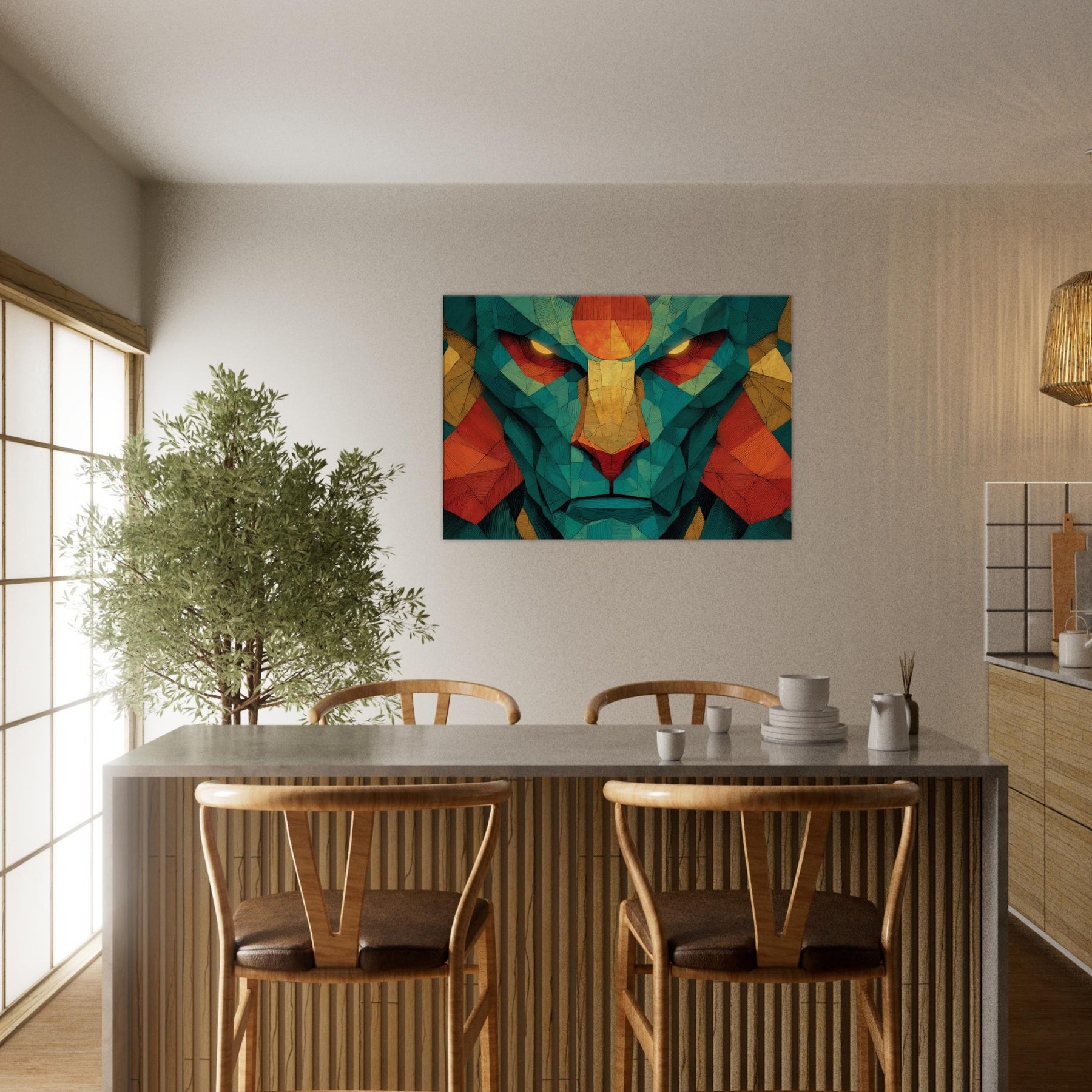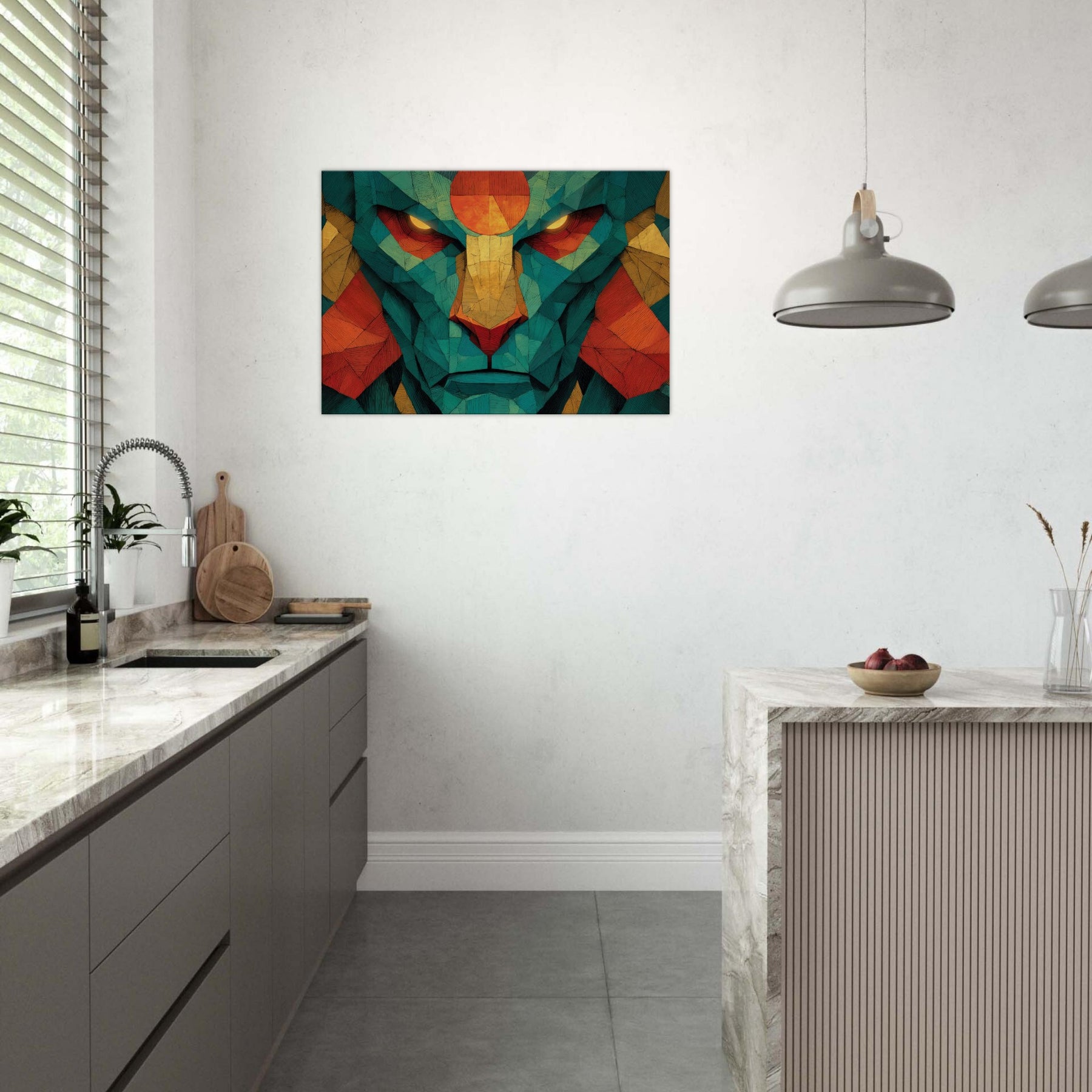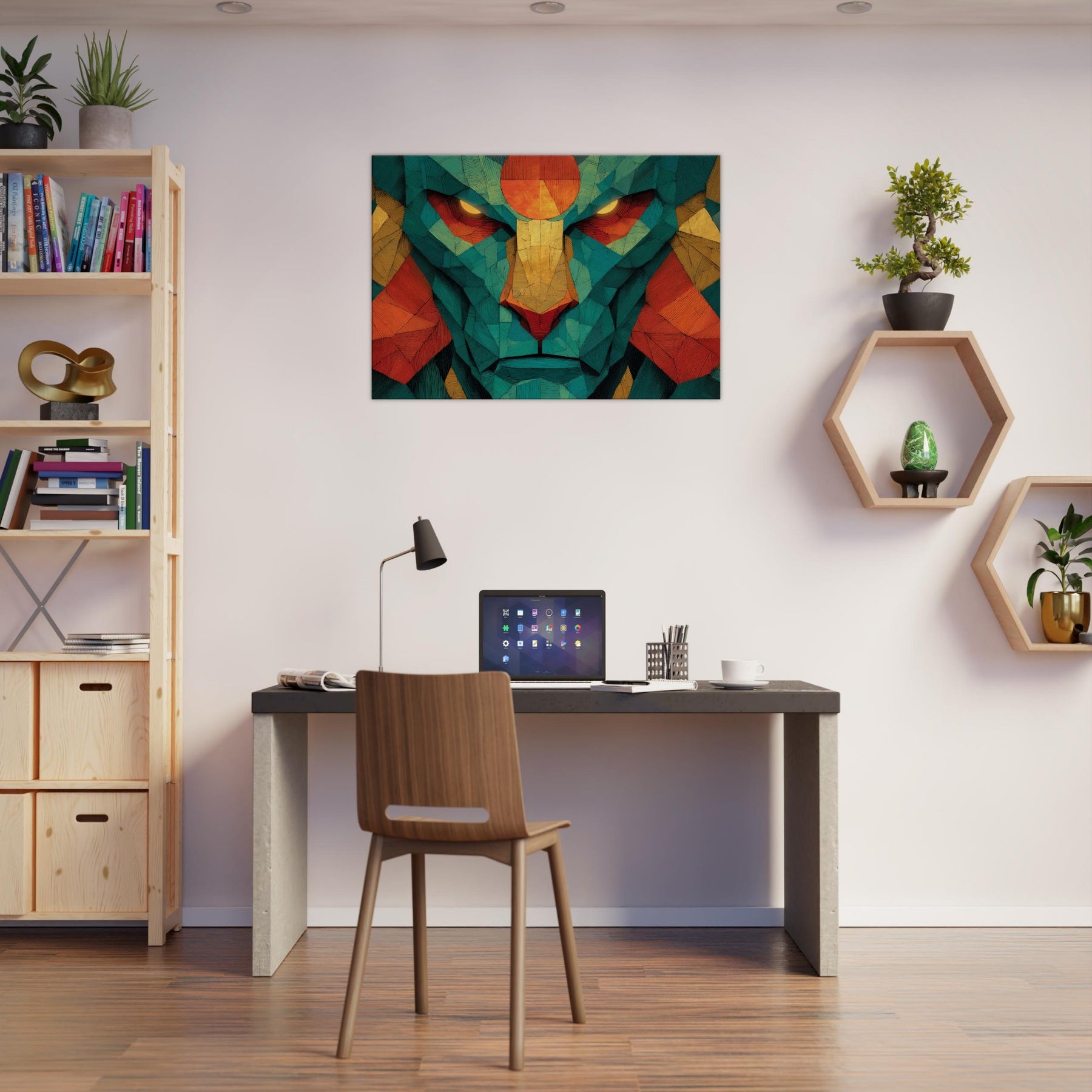 Where color coalesces into myth, this abstract channels the strength and grace of Hanuman into a luminous, meditative presence. The composition pulses with warm oranges, golds, and teal fragments, like a sunlit temple reflected in a quiet room. As light shifts, the piece reveals hidden facets, inviting a slower breath and a deeper gaze. Hang it in a living space for a sense of courage, focus, and mystical energy that makes daily rituals feel sacred and home feels larger than life.