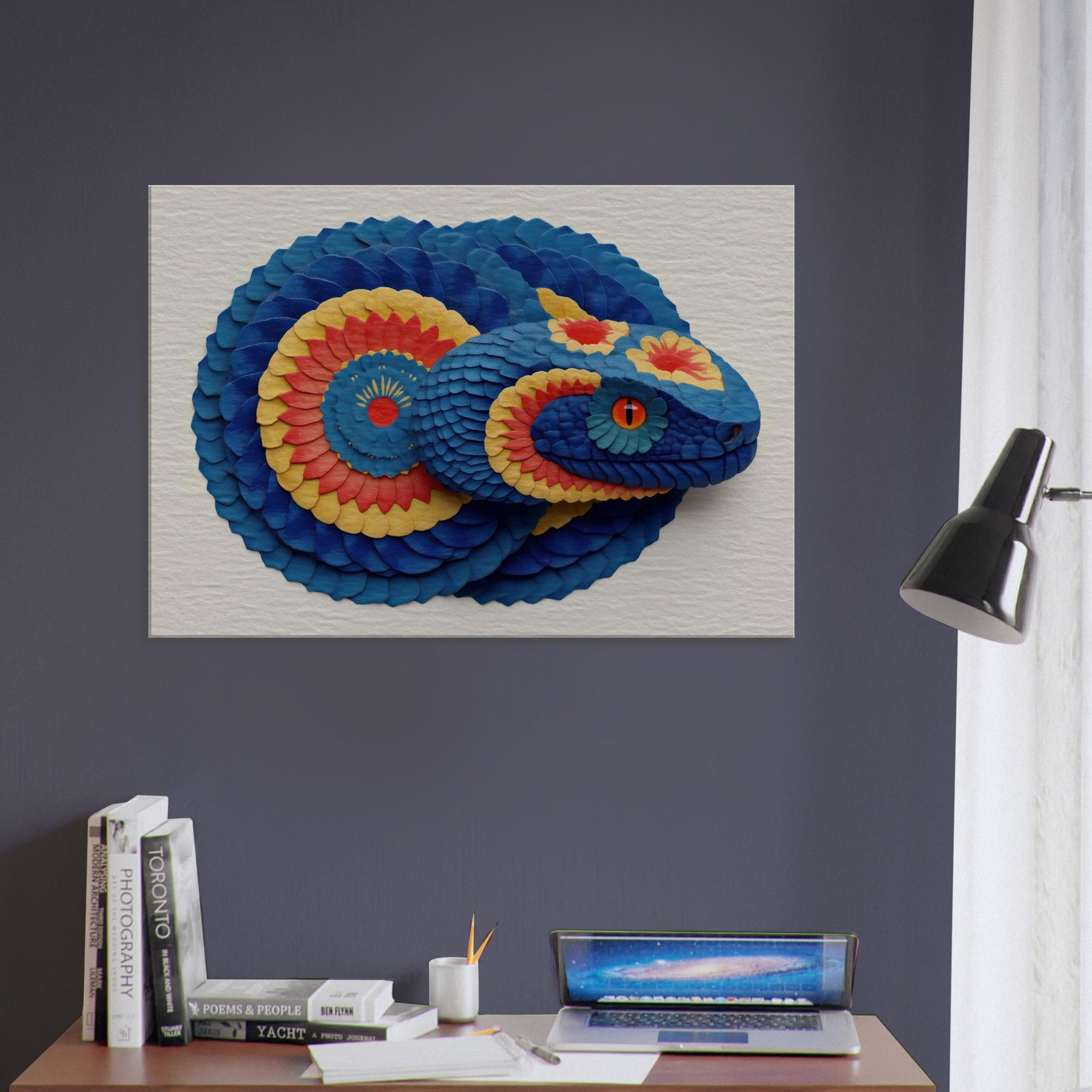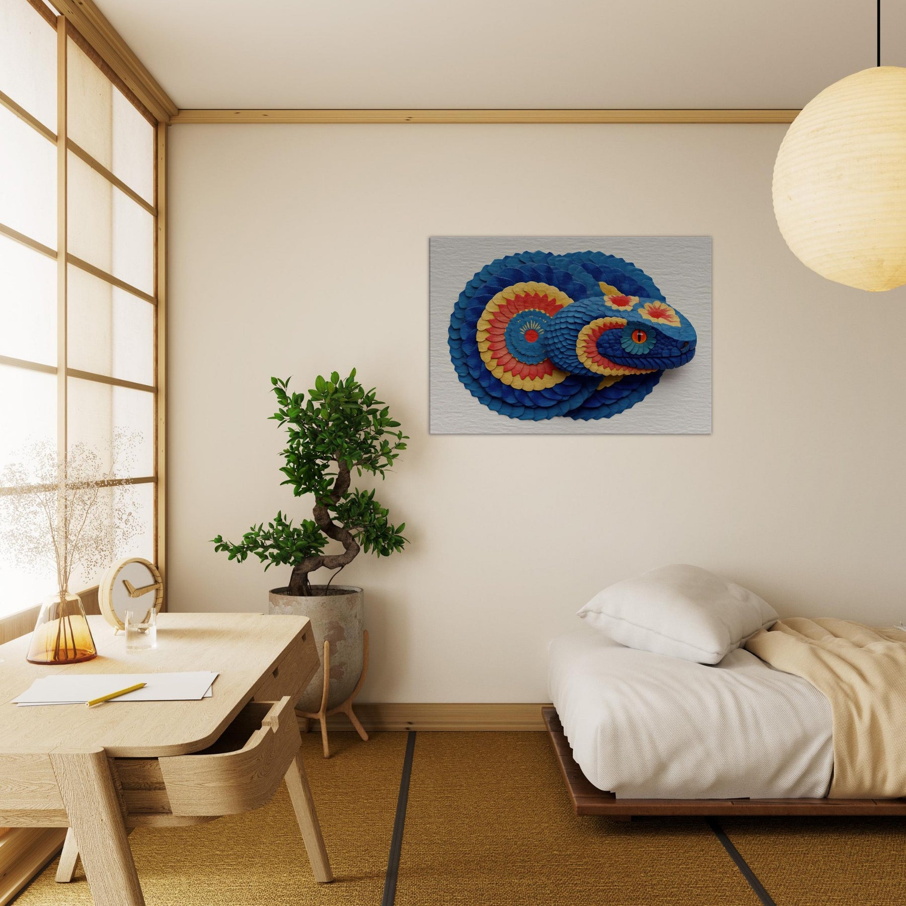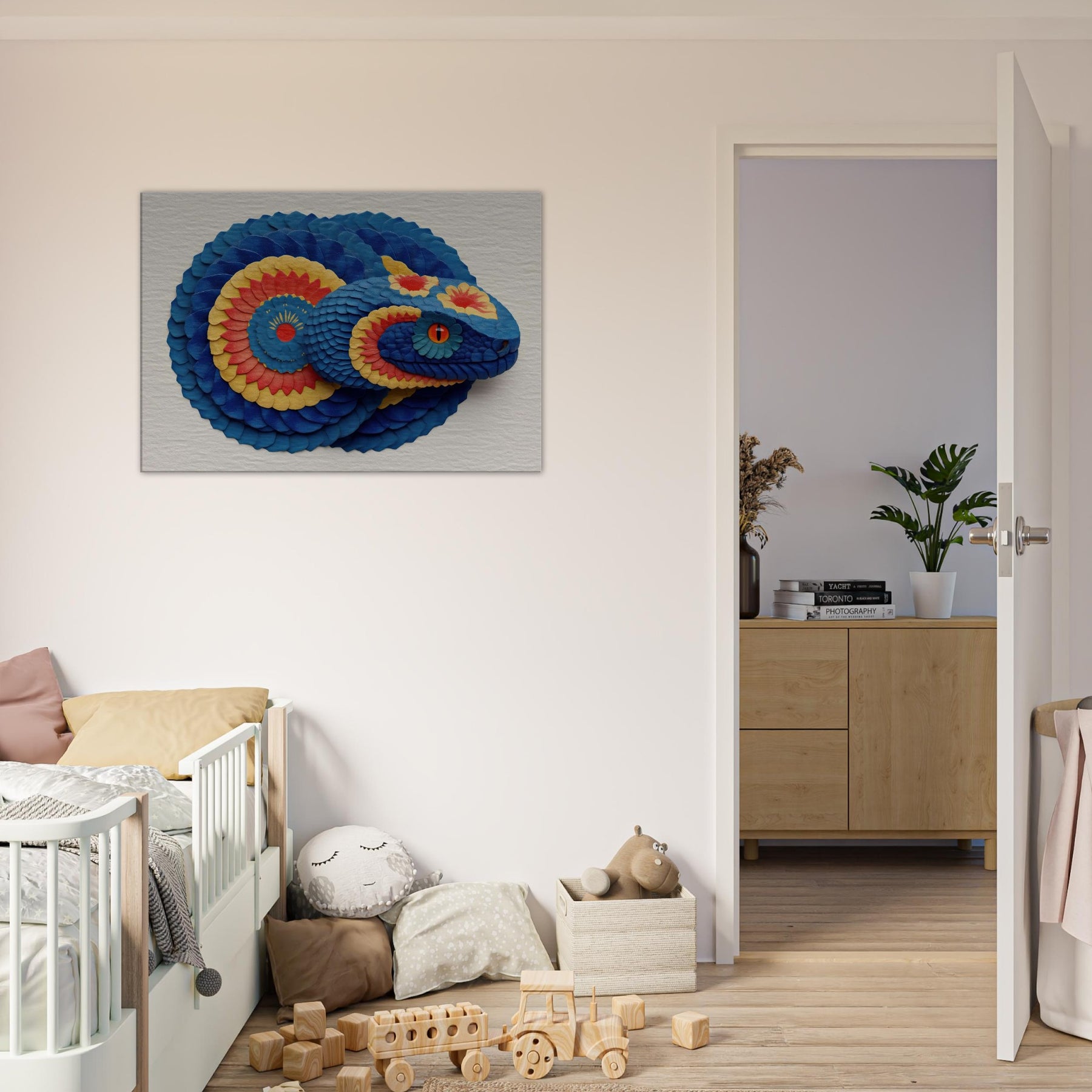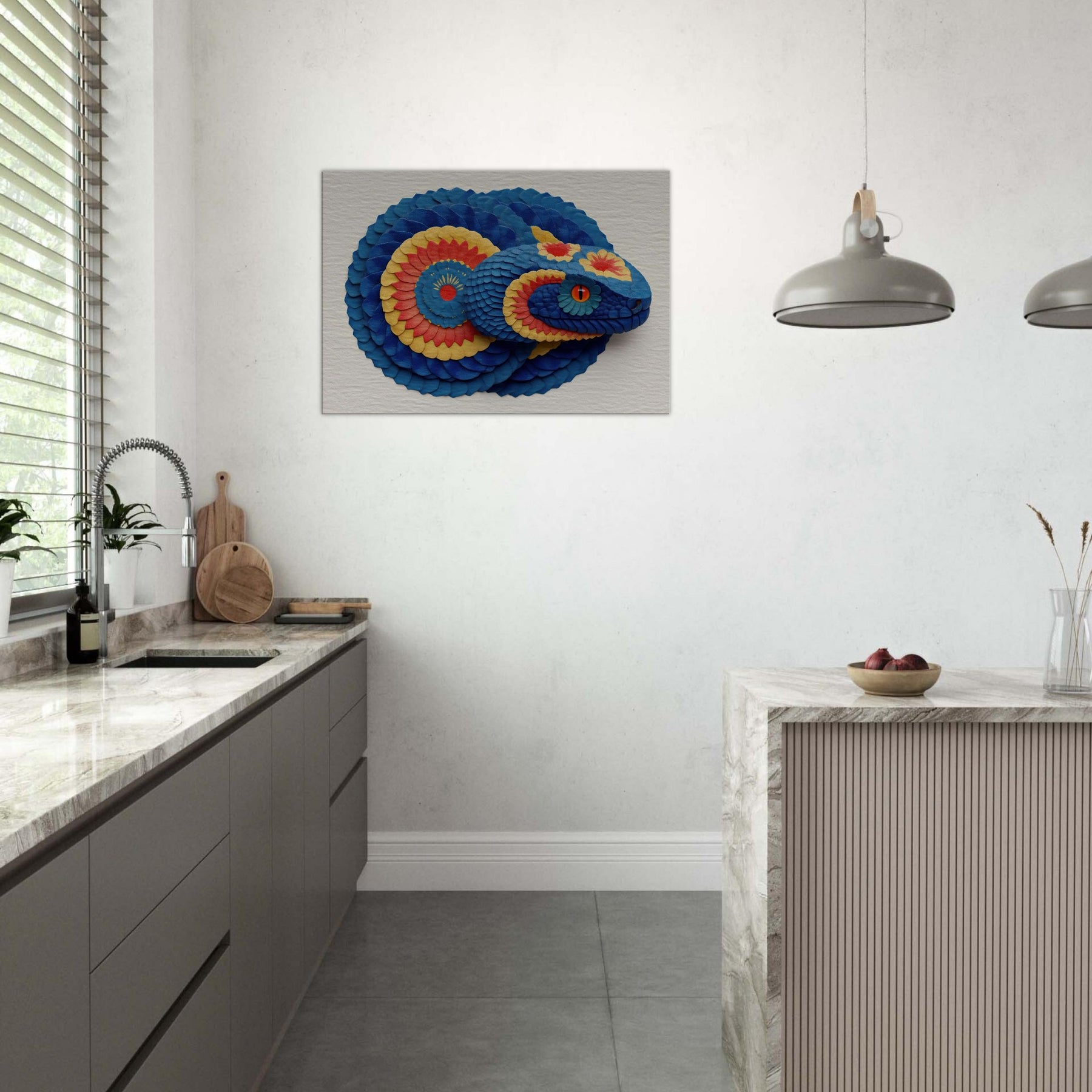Infinity Serpent unfurls in a luminous spiral, a festival of color that hums beneath the surface of your room. Crafted as an abstract, scaled form, it shifts from cobalt to sunlit yellow and coral, each ring echoing a heartbeat. The piece bathes walls in a mystical glow, turning quiet evenings into rituals of presence and wonder. Place it above a sofa or in a foyer to invite contemplative calm, a magnetic focal point that deepens any contemporary space.