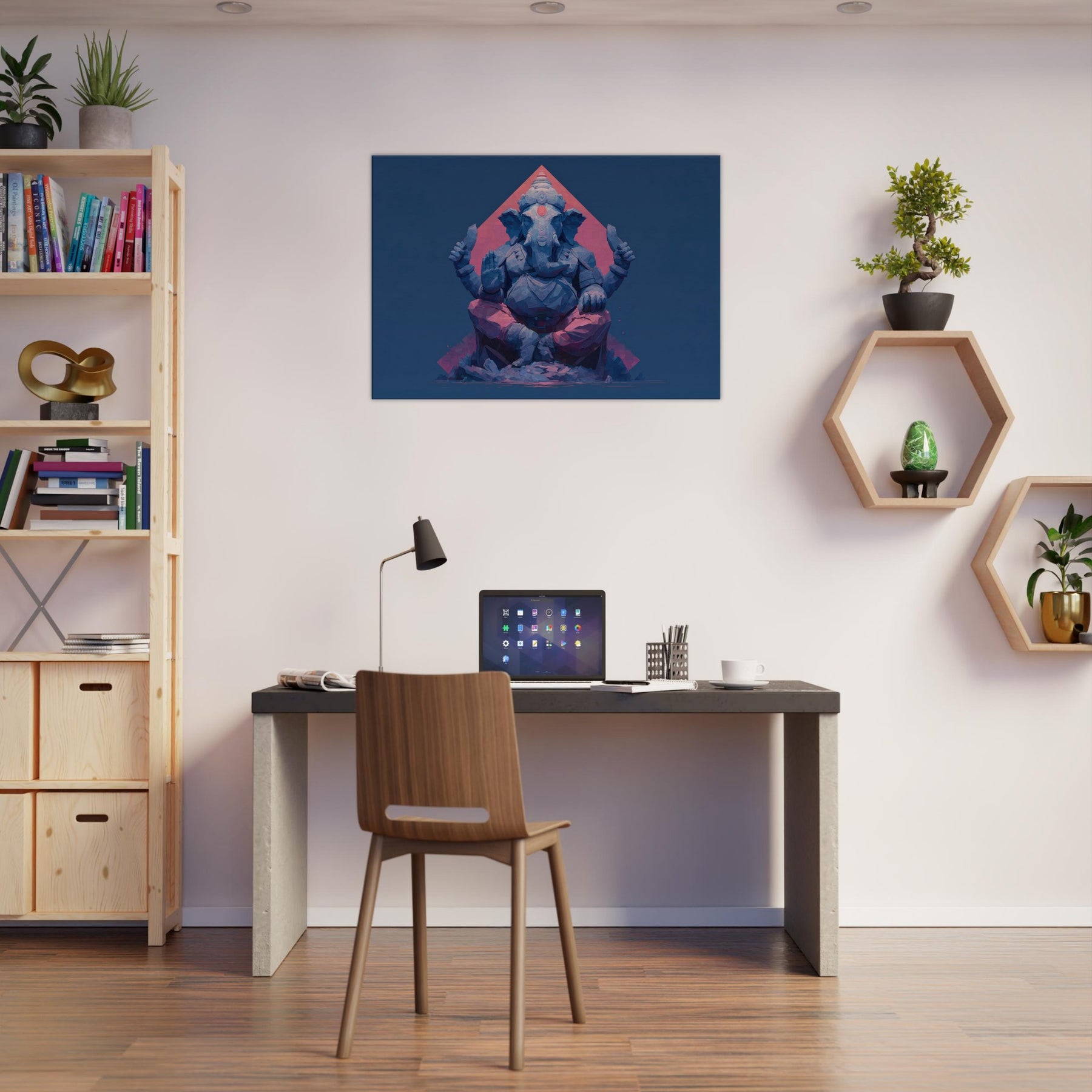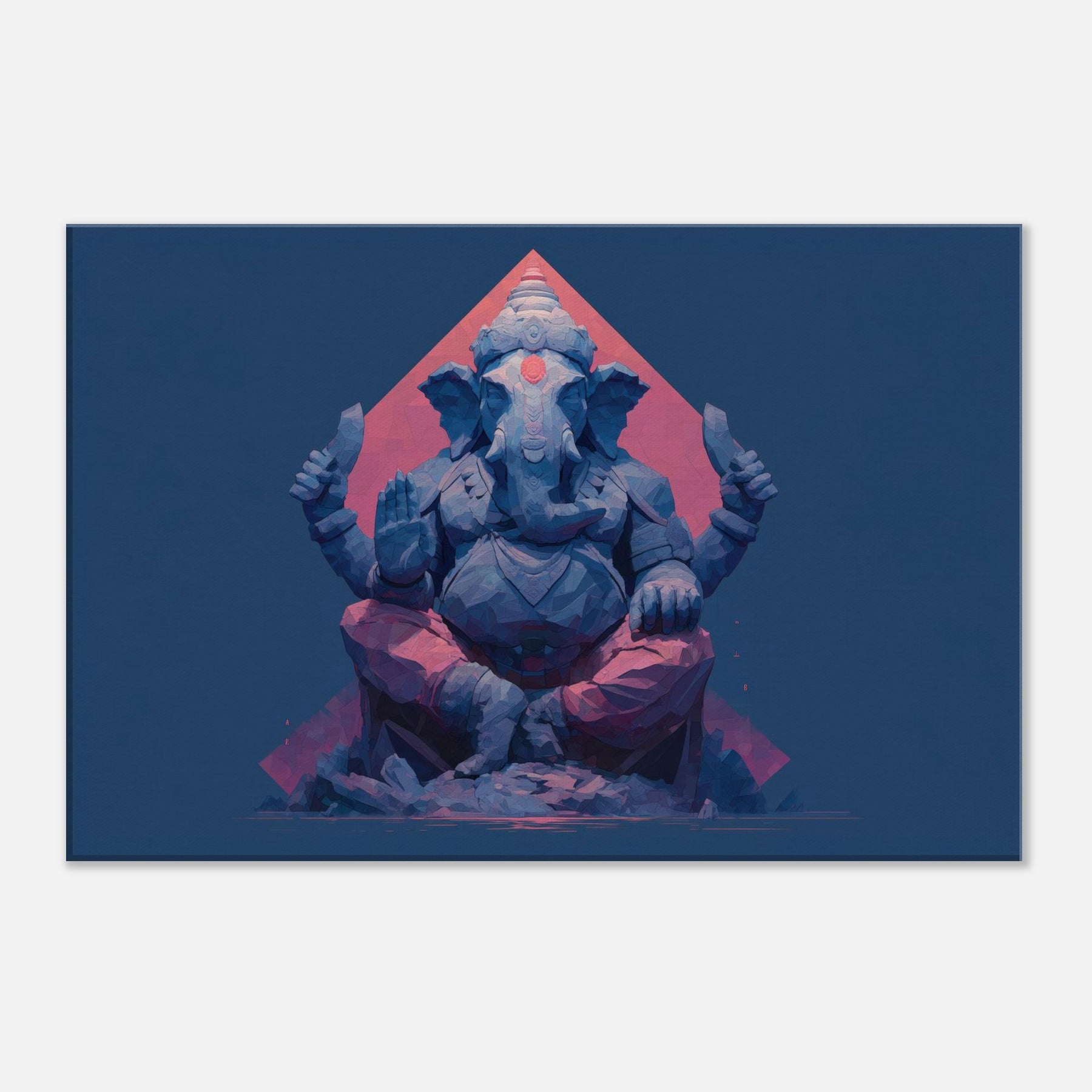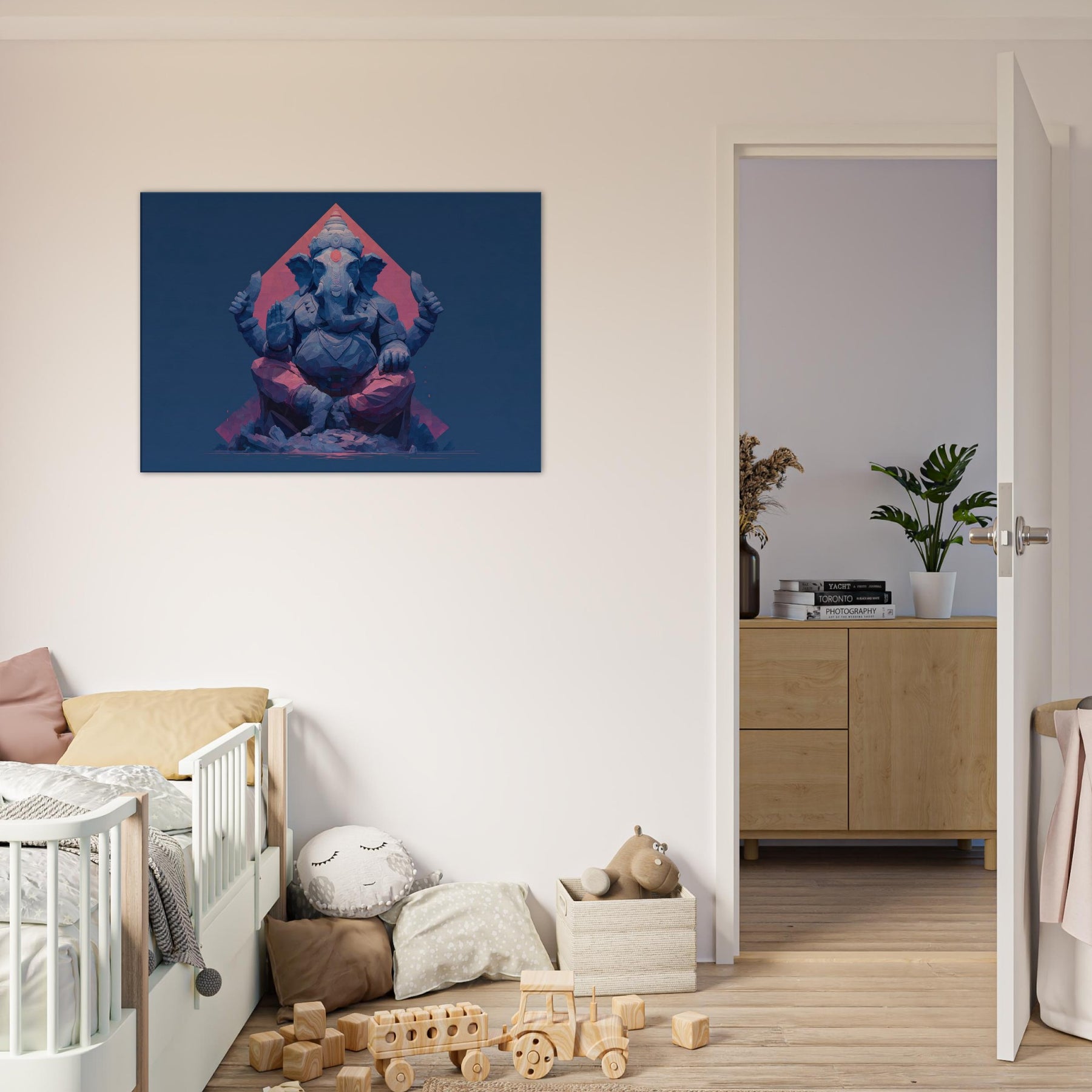 An ethereal reinterpretation of Ganesha unfolds in luminous facets and geometric hush. This abstract wonder hums with a mystic presence, as if the elephant headed guardian rises from a dream, inviting calm and contemplation. The cool blues mingle with warm pinks, casting a spiritual glow that elevates a living room, study, or entryway. Its meditative stance and open palm suggest blessing and protection, turning walls into a sanctuary where creativity and intention flow freely. A contemporary tribute to timeless wisdom.