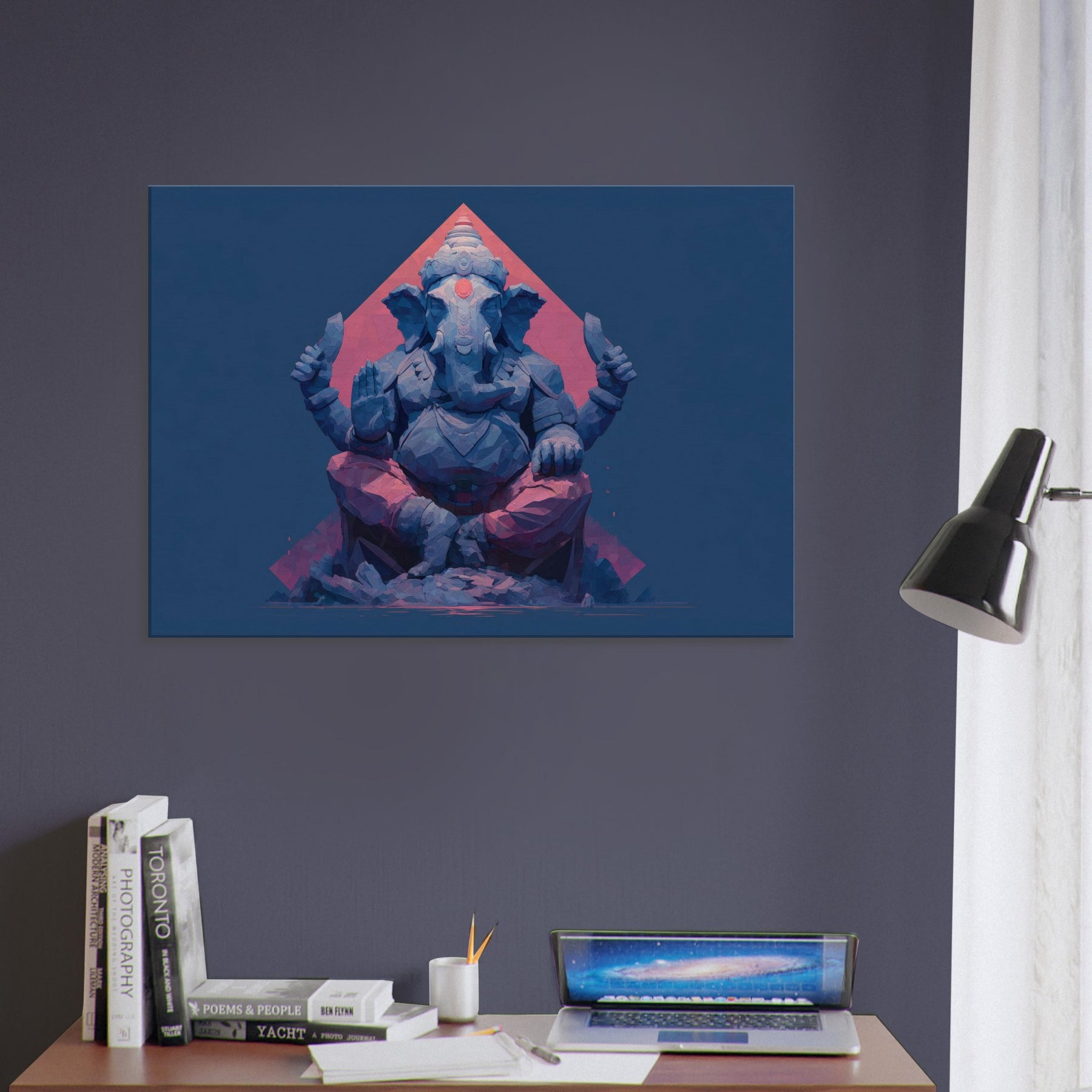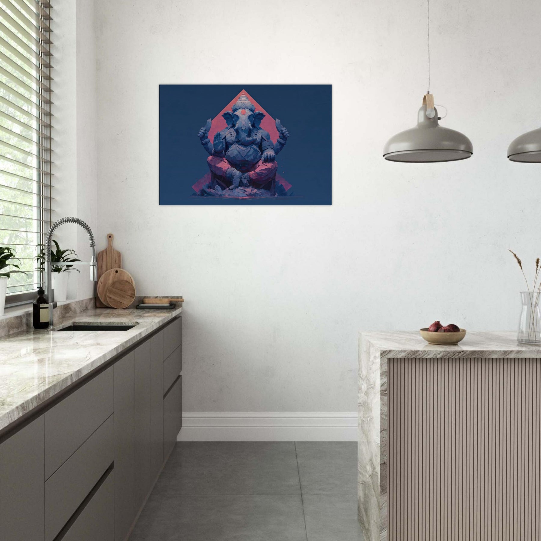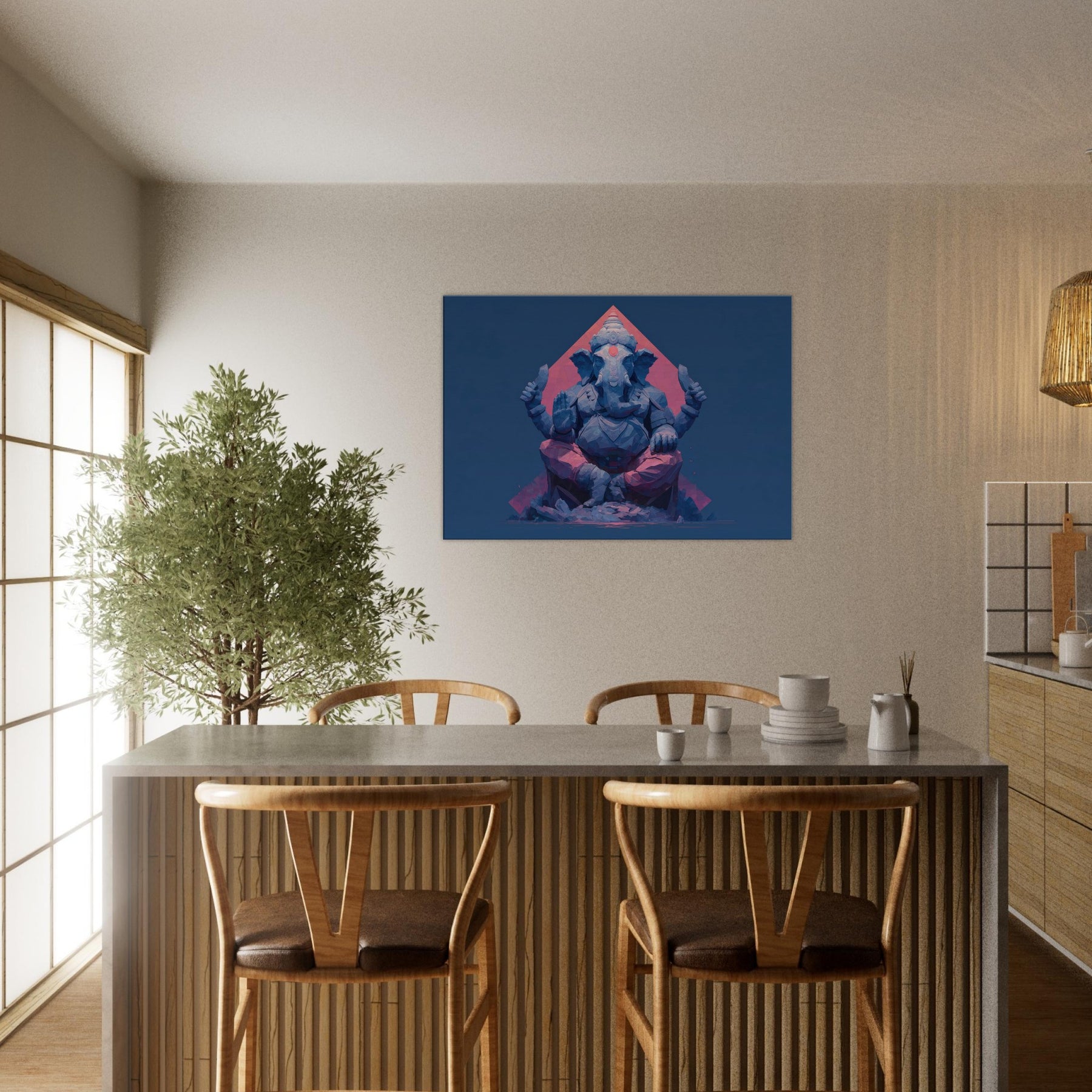 An ethereal reinterpretation of Ganesha unfolds in luminous facets and geometric hush. This abstract wonder hums with a mystic presence, as if the elephant headed guardian rises from a dream, inviting calm and contemplation. The cool blues mingle with warm pinks, casting a spiritual glow that elevates a living room, study, or entryway. Its meditative stance and open palm suggest blessing and protection, turning walls into a sanctuary where creativity and intention flow freely. A contemporary tribute to timeless wisdom.
