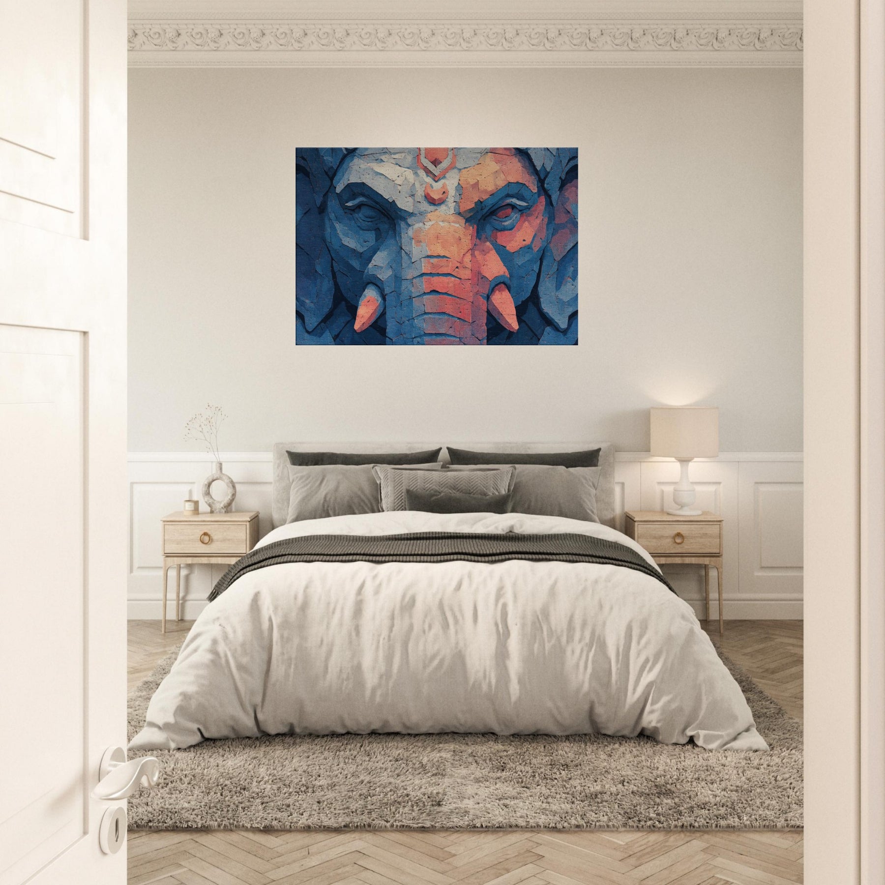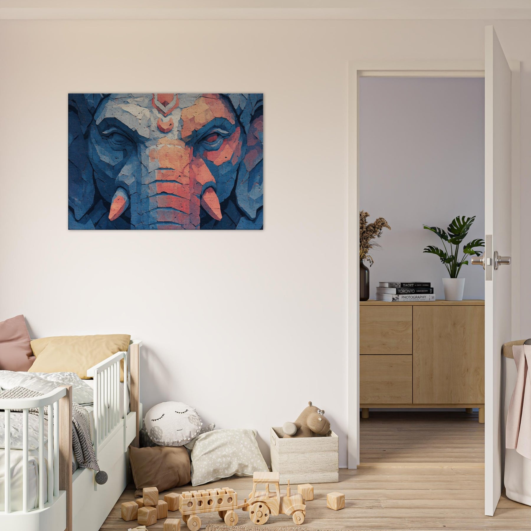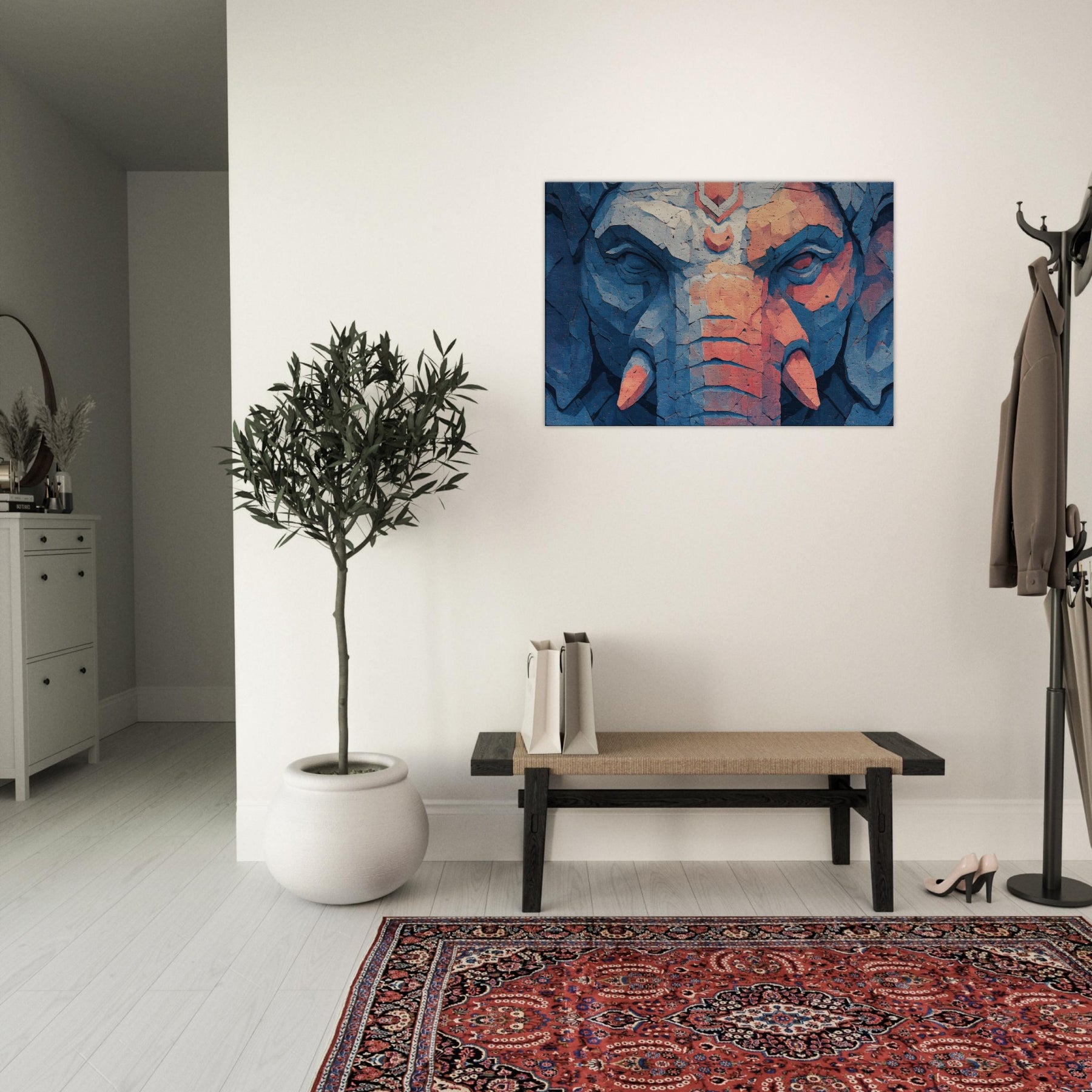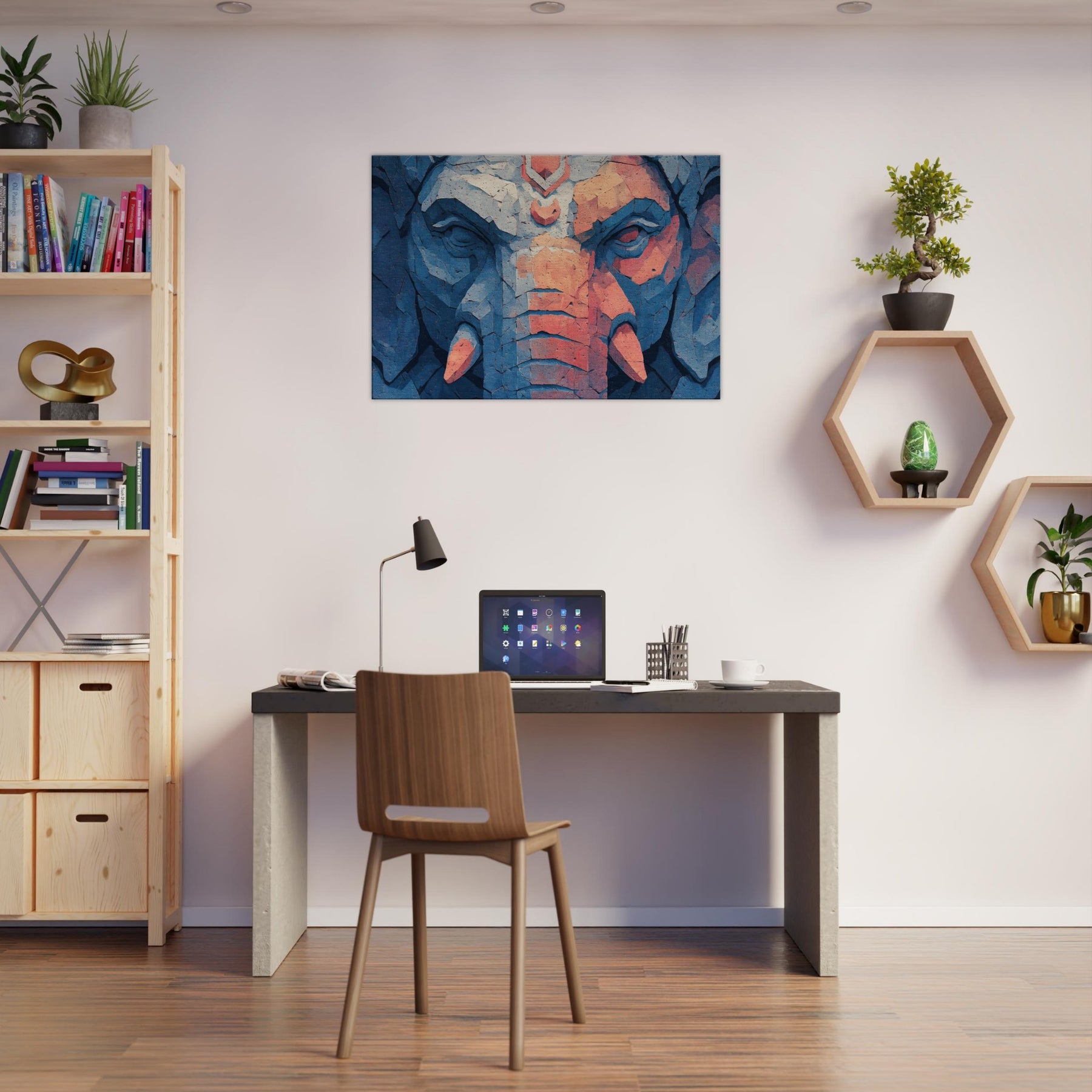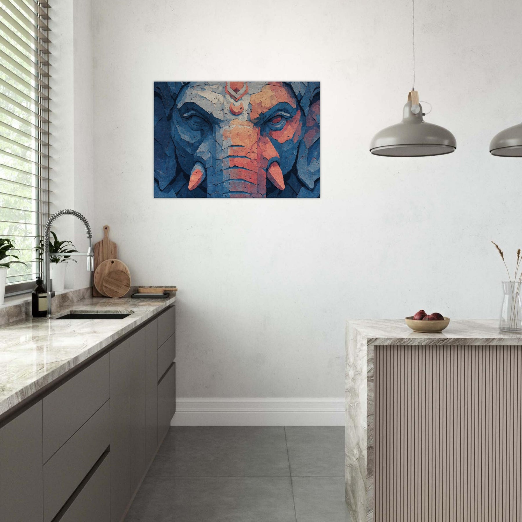 Ganesha Mosaic Reverie invites a serene prism of color into your space, where blues deepen into coral warmth and light seems to weave through every shard. The piece carries a mystical hush, as if a soft mantra had been painted across the wall. Hang it above a sofa or in a quiet hall, and let the sculpted tones slow the day transforming a living space into a sanctuary of focus, warmth, and quiet wonder, centered on Ganesha.
