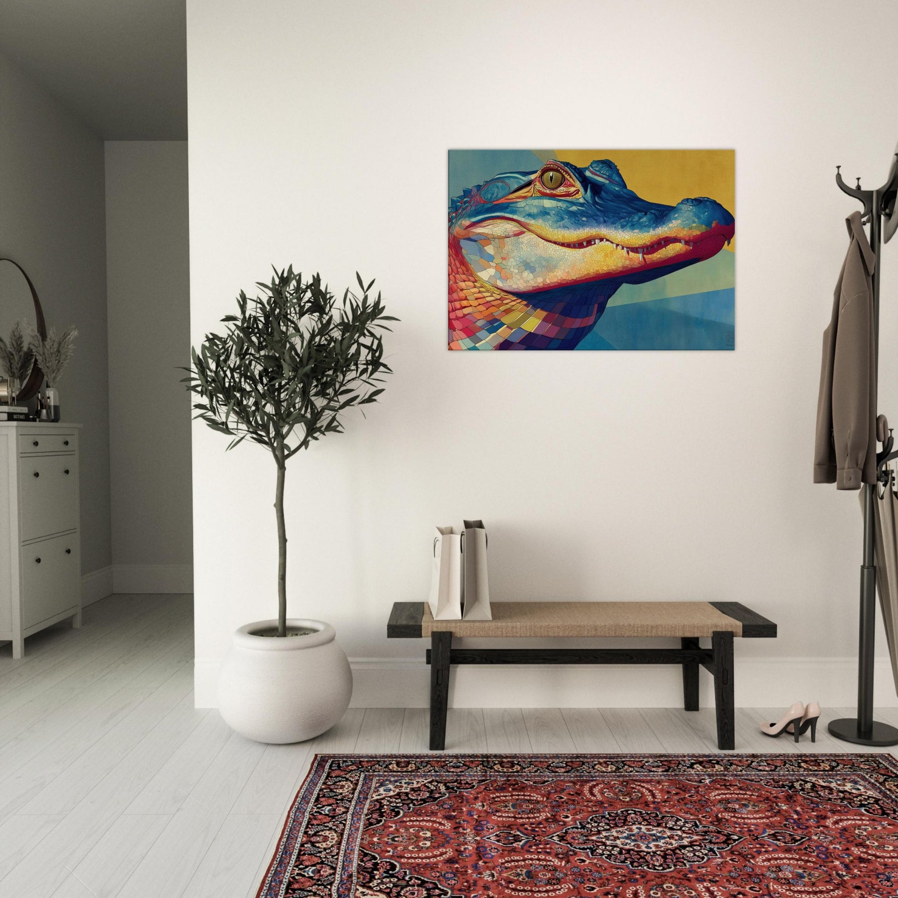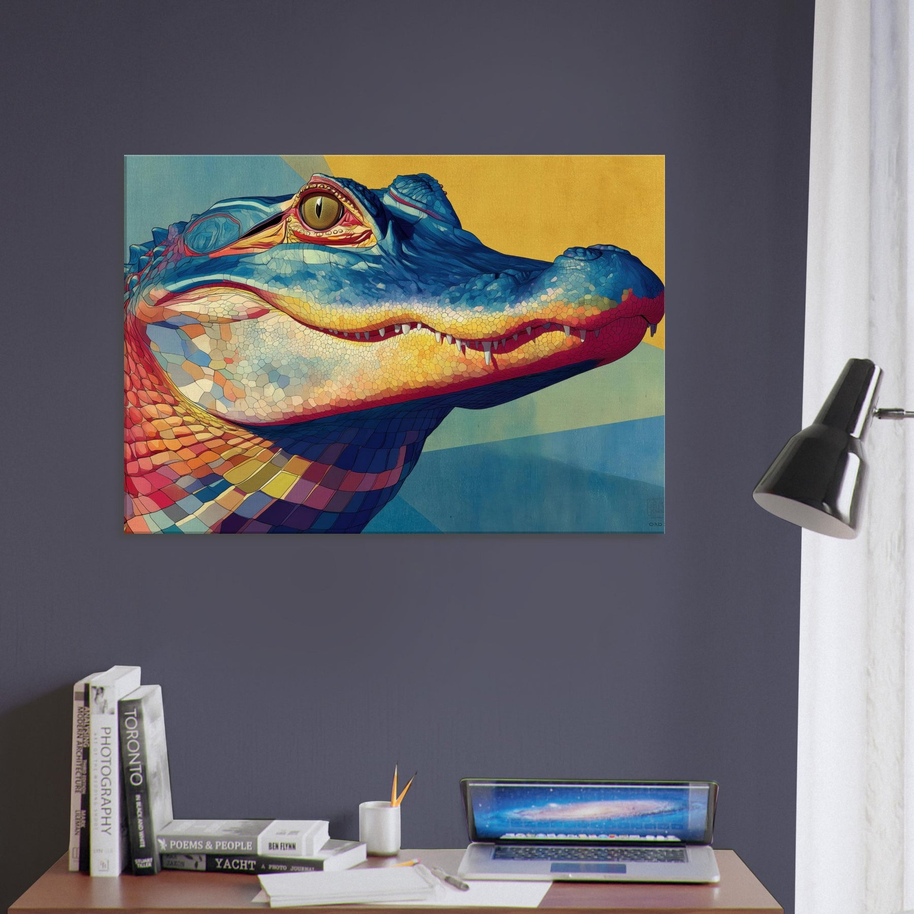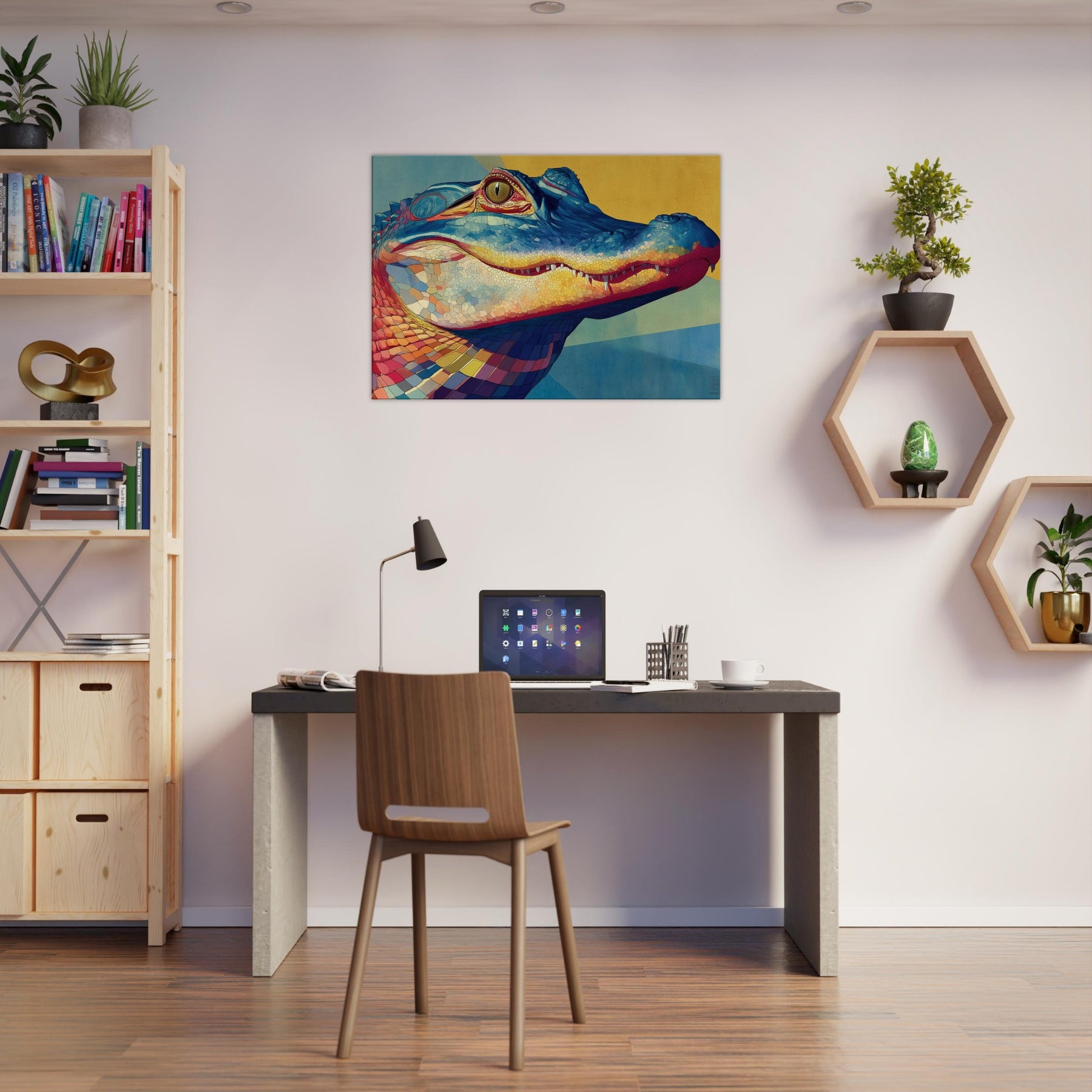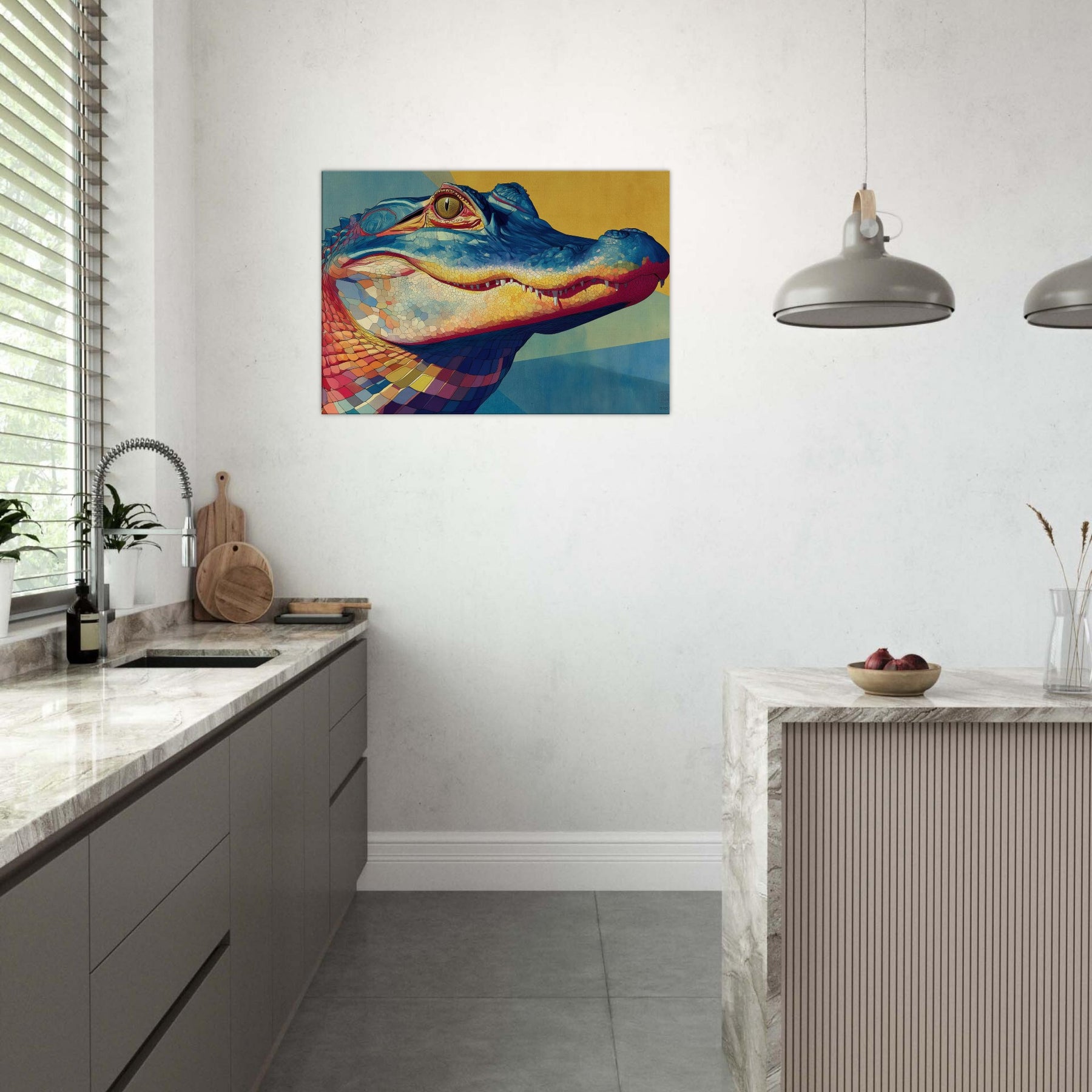 This Alligator emerges as a prism of motion and mood, rendered in a lively mosaic of color and shape. The abstract composition wraps the creature in curling blues, sunlit yellows, and coral accents, inviting the eye to travel across its scale like facets. A sense of quiet power and dreamlike depth settles into any living space, turning walls into a focal point of energy and calm.