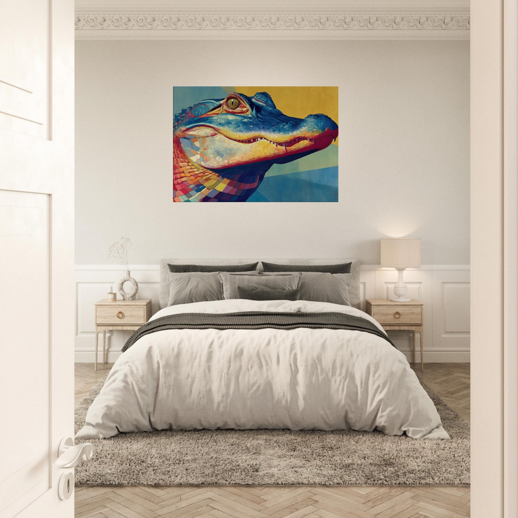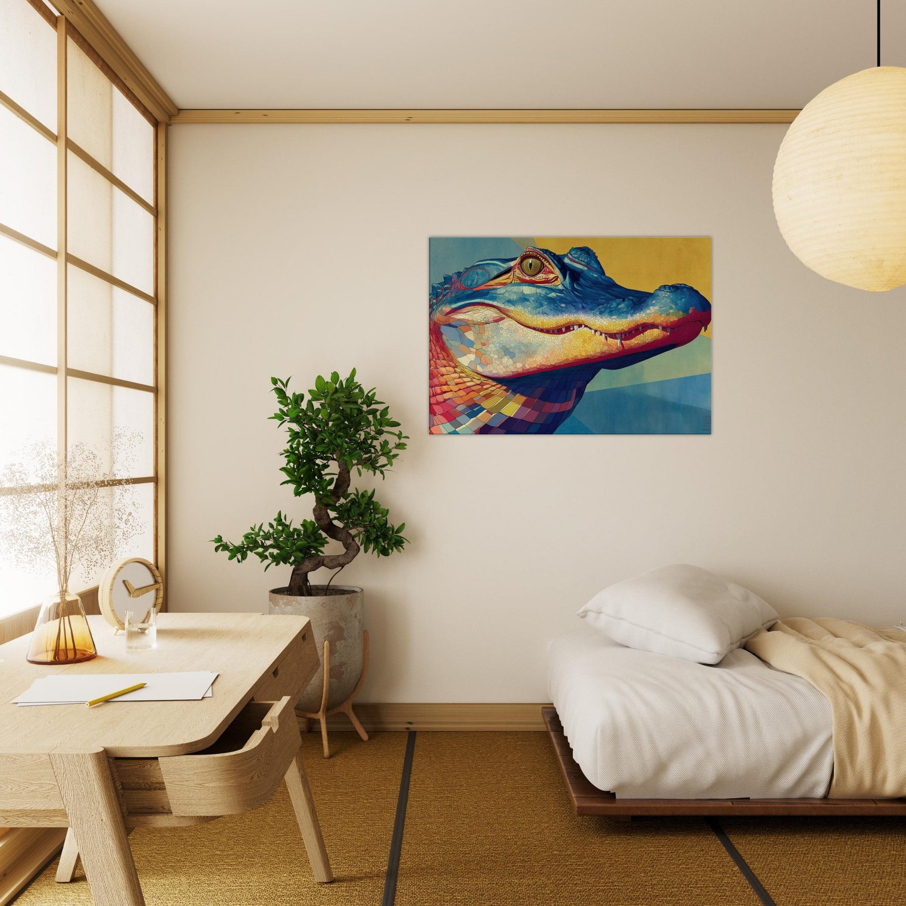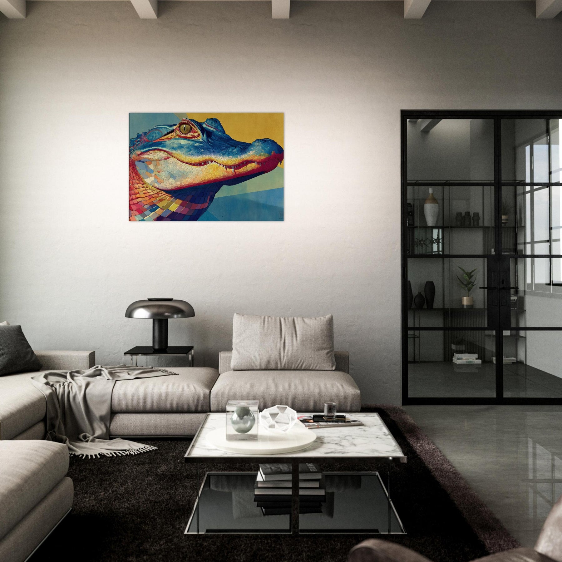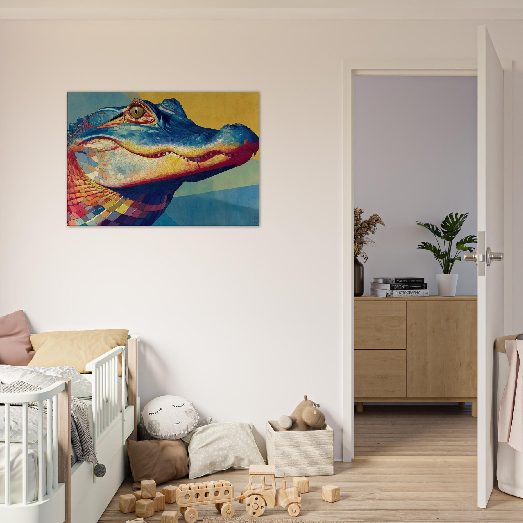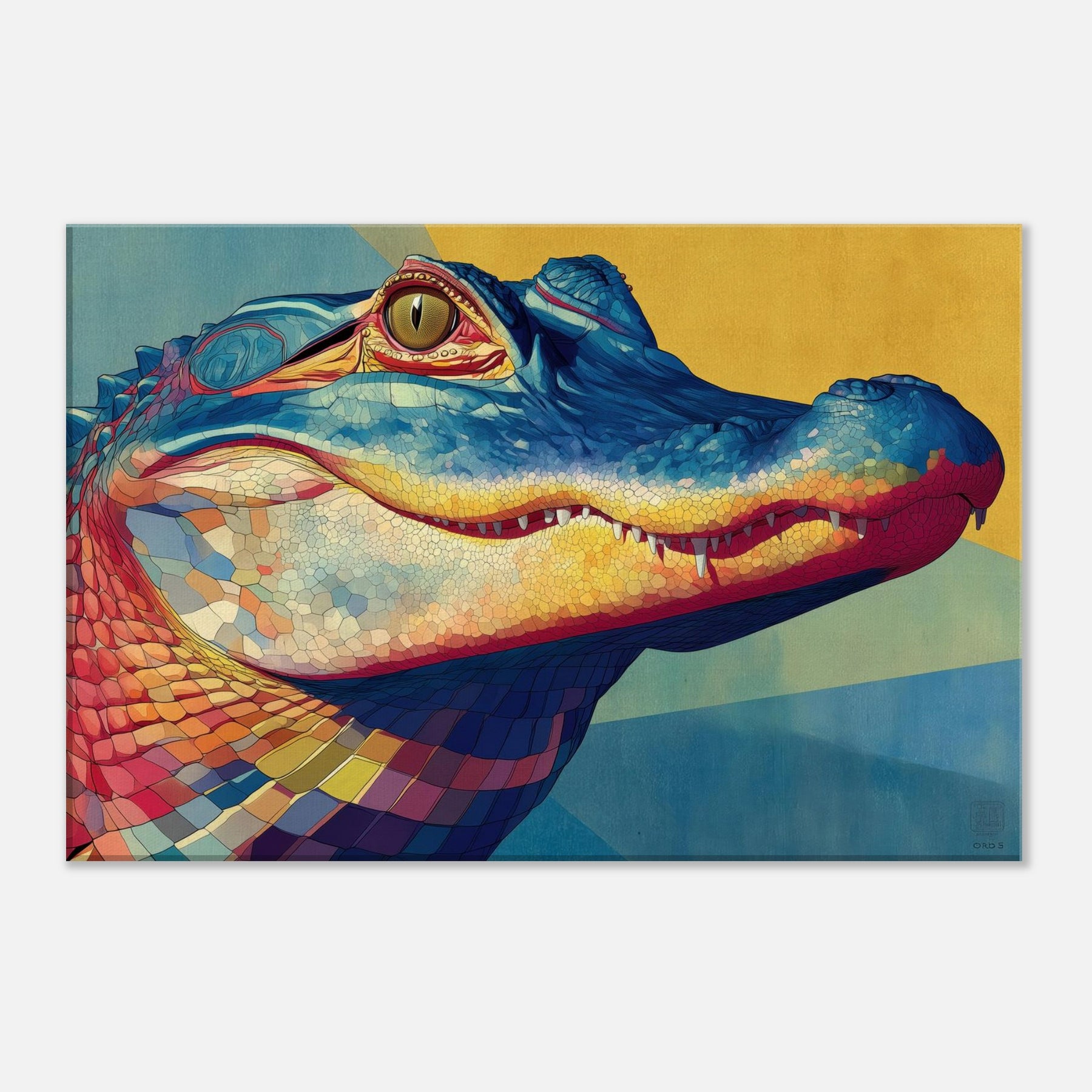 This Alligator emerges as a prism of motion and mood, rendered in a lively mosaic of color and shape. The abstract composition wraps the creature in curling blues, sunlit yellows, and coral accents, inviting the eye to travel across its scale like facets. A sense of quiet power and dreamlike depth settles into any living space, turning walls into a focal point of energy and calm.