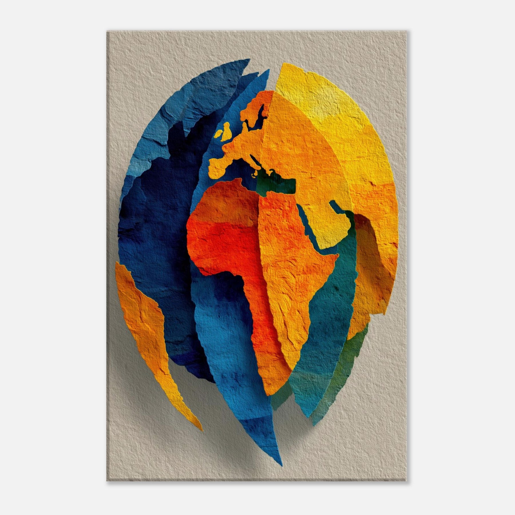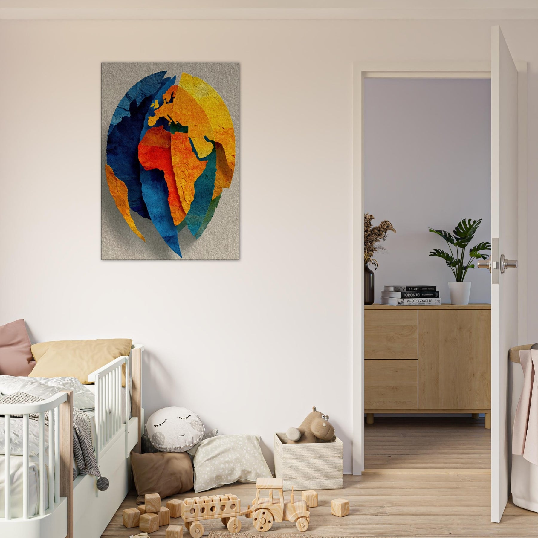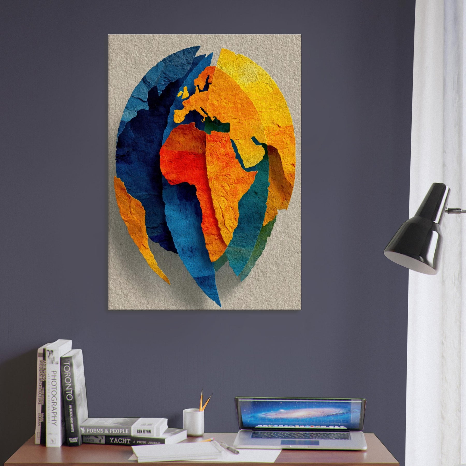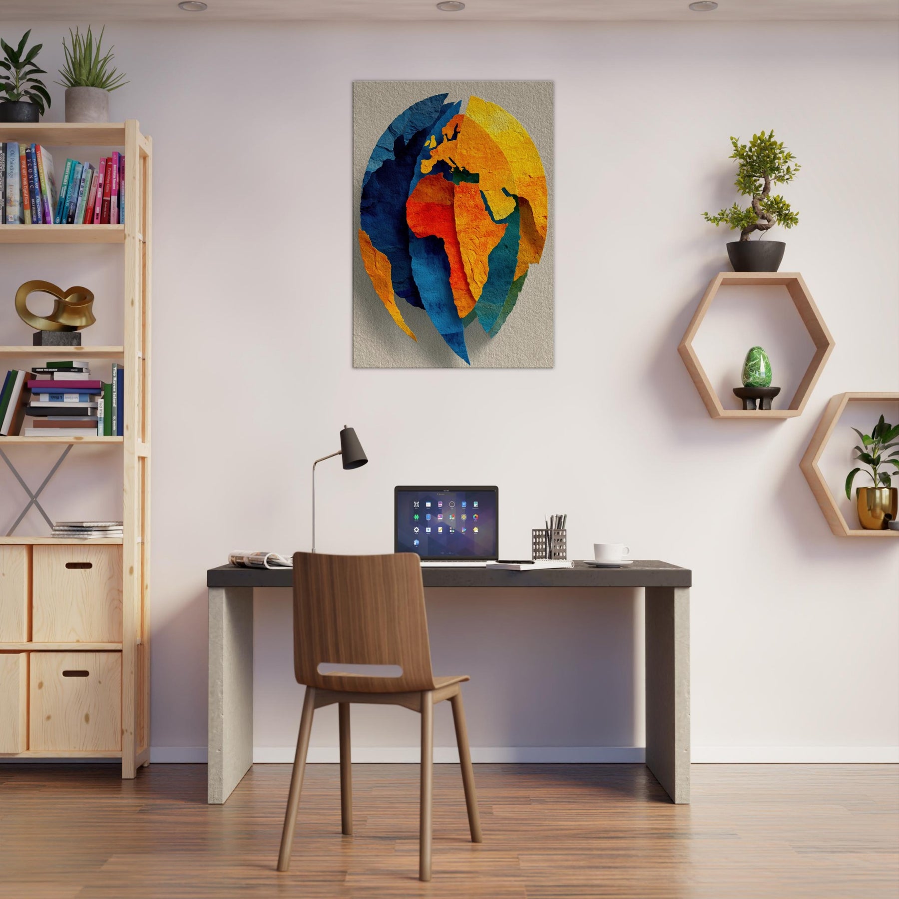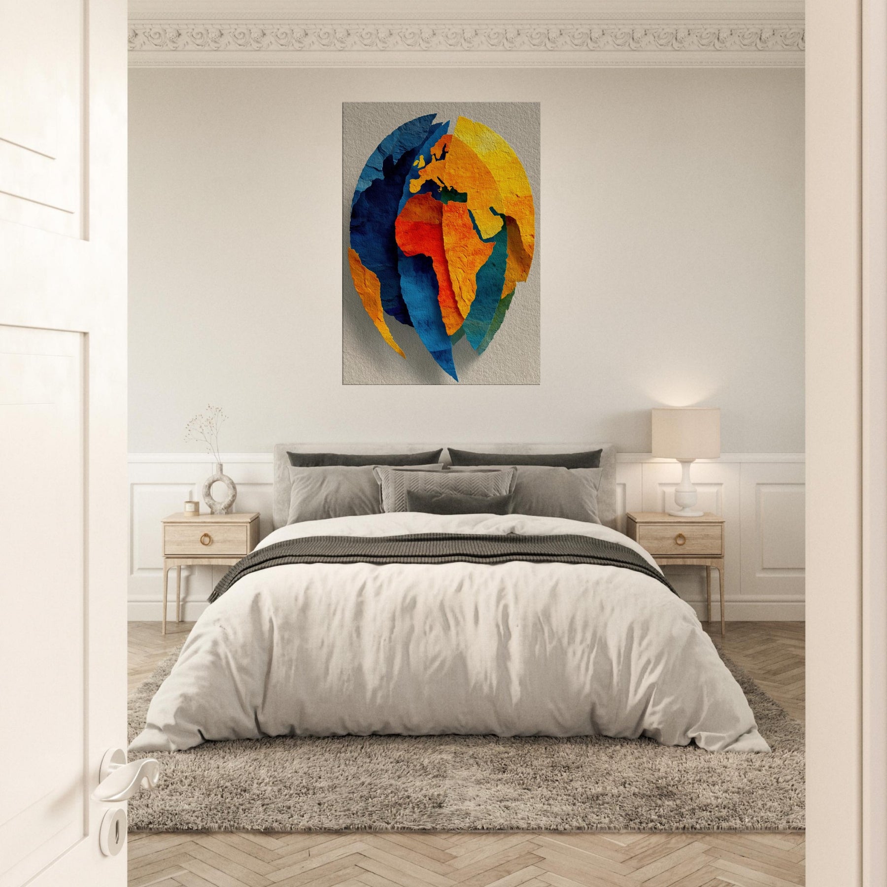 Globe Silhouette unfolds in a marriage of color and shadow, each torn layer revealing a new horizon. This abstract inspired composition invites the eye to travel without leaving the room, turning walls into a quiet map of possibility. The Globe Silhouette glows with warm sunset tones and deep ocean blues, bringing depth, texture, and a sense of movement to a living space. Perfect above a sofa or desk, it anchors conversation while softening contemporary interiors with a tactile, sculptural presence.