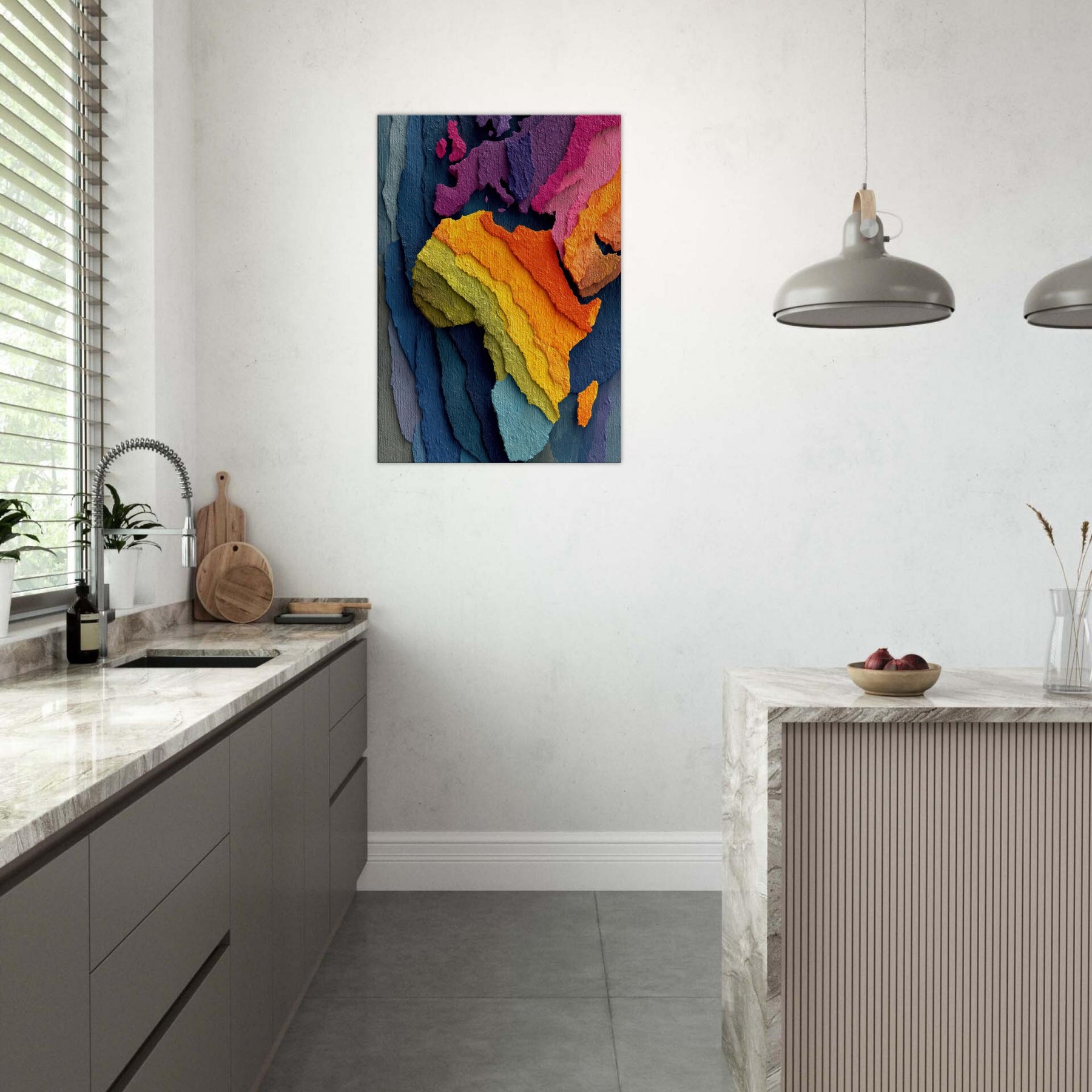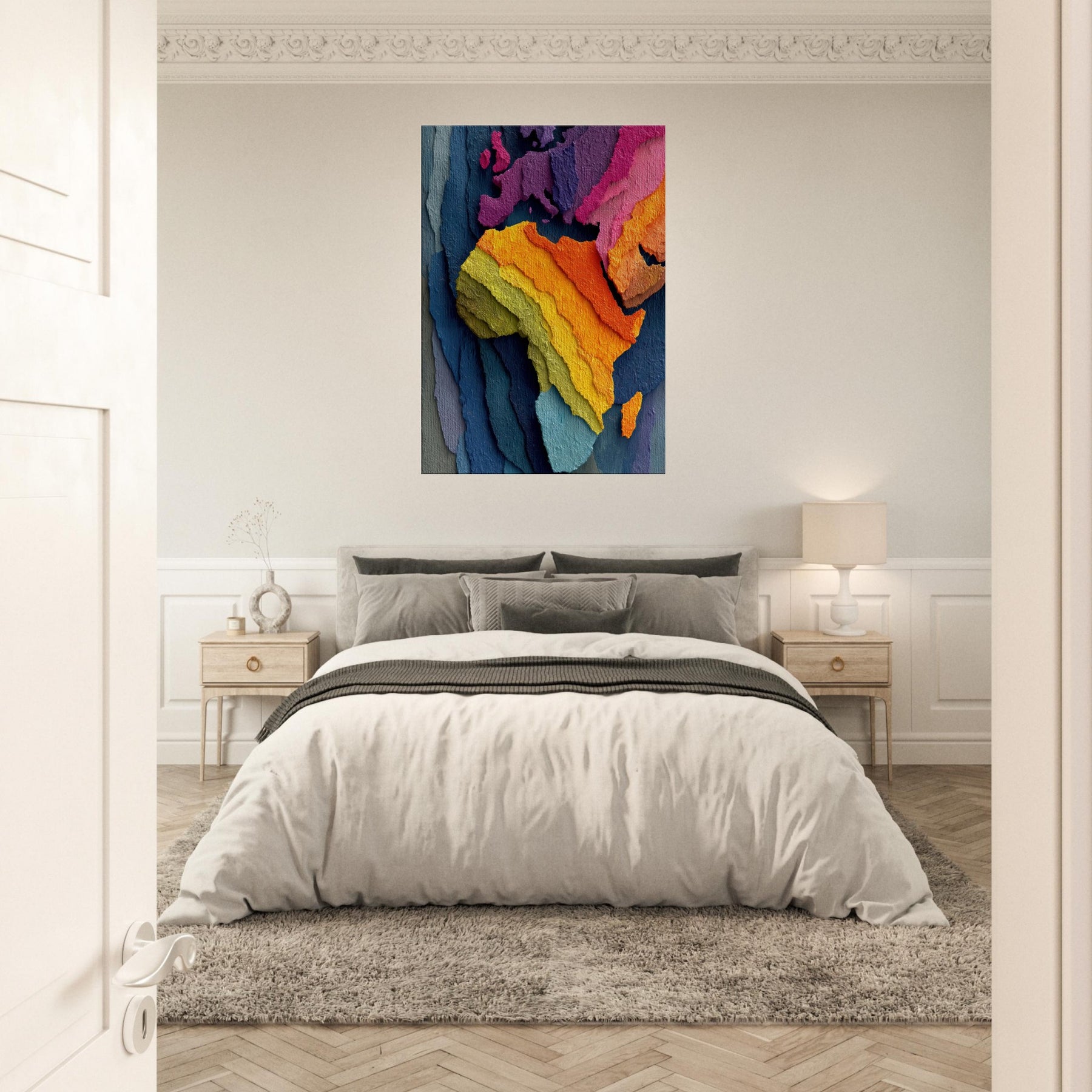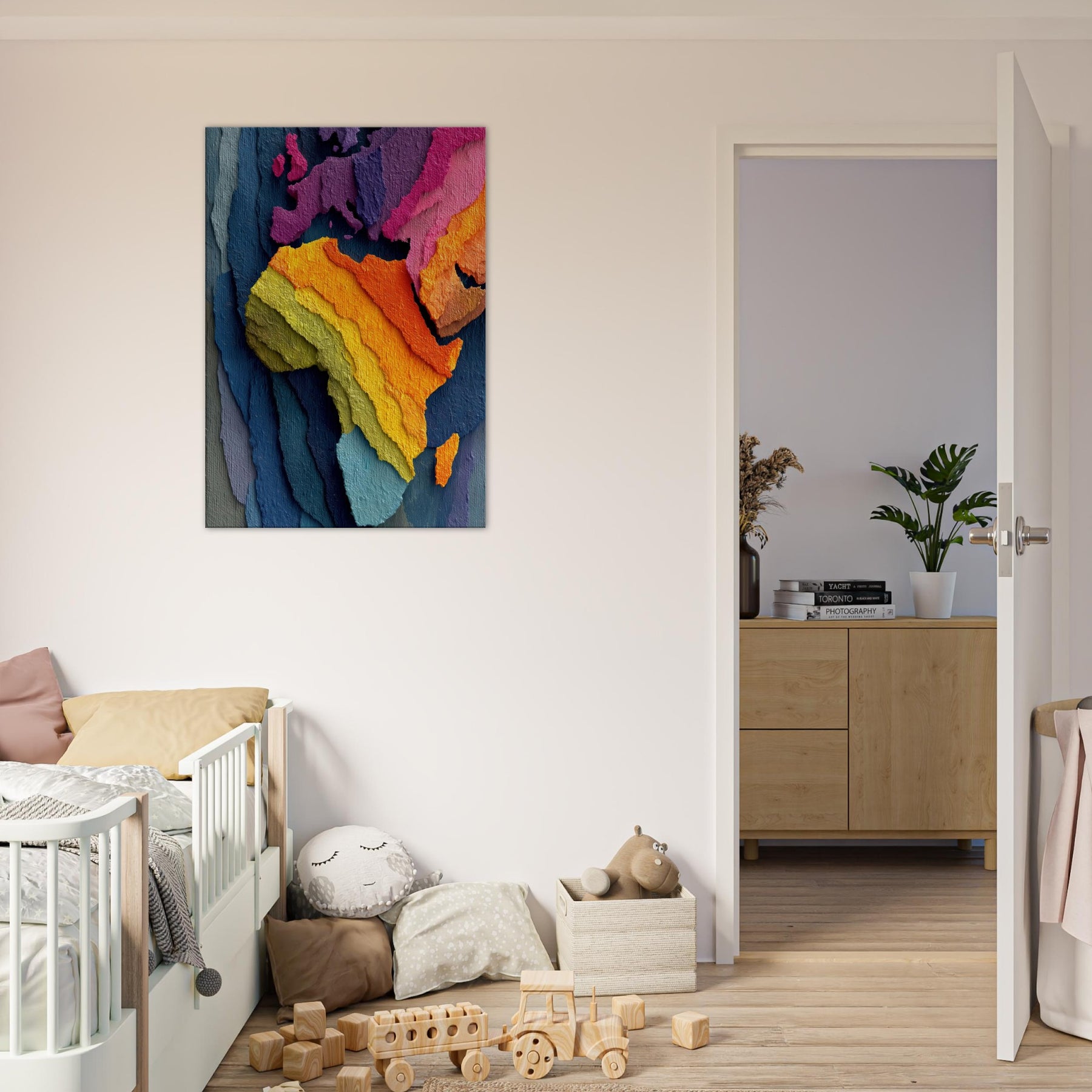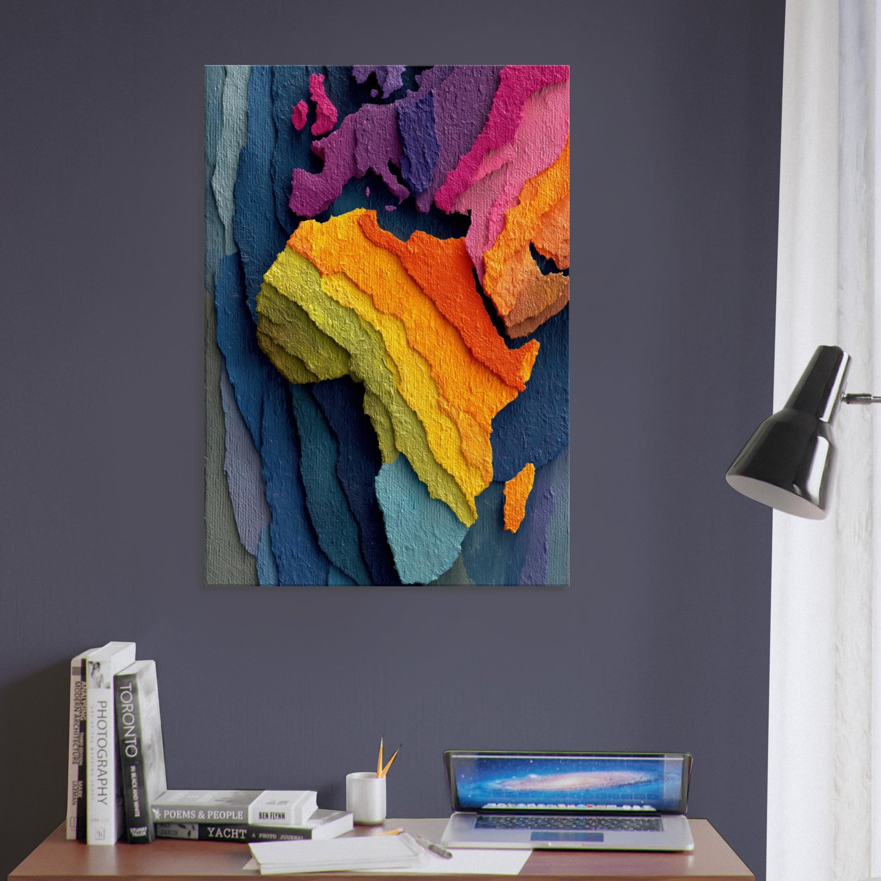 World Map Outline unfurls across your wall in a chorus of color. Layers of texture weave continents in radiant bands, inviting the eye to drift and discover new edges as light shifts. This piece turns a living room into a map of memory, a room where travel meets home. The bold tones emeralds, blues, sunset yellows create warmth while the delicate lines suggest architecture, streets, and skylines. A statement canvas that complements modern interiors with depth, glow, and a sense of possibility.