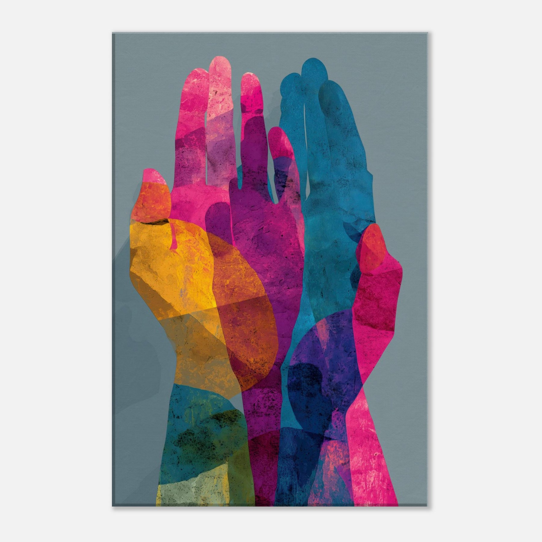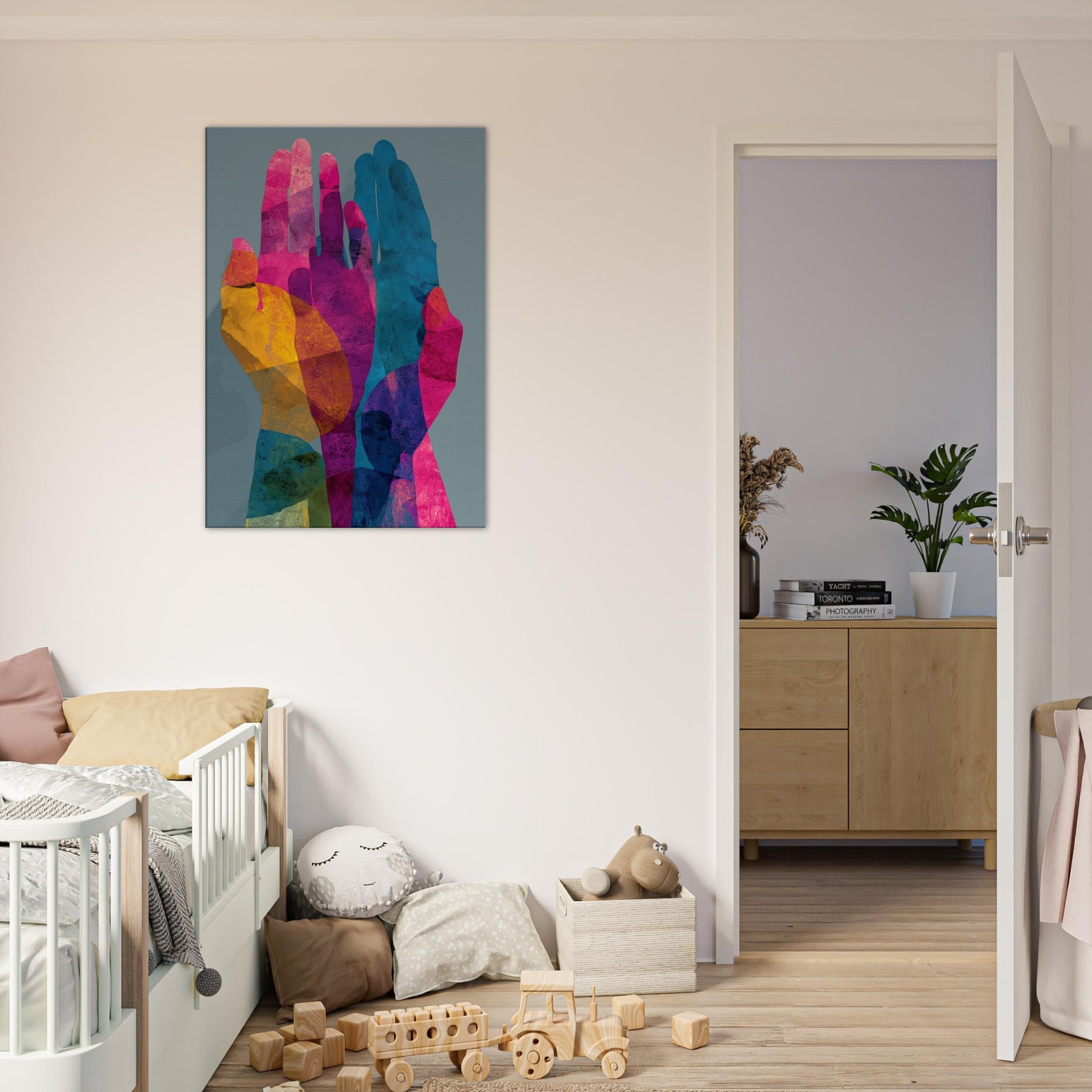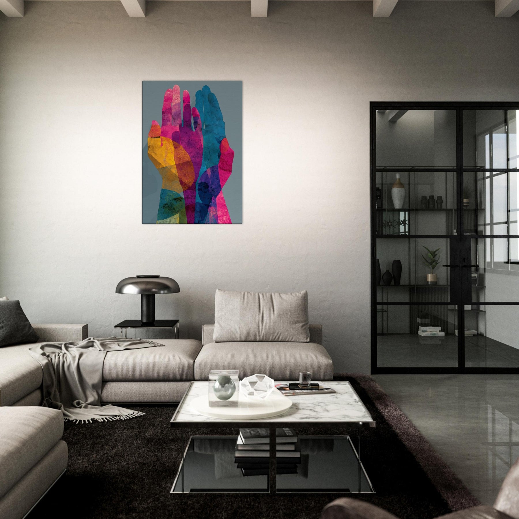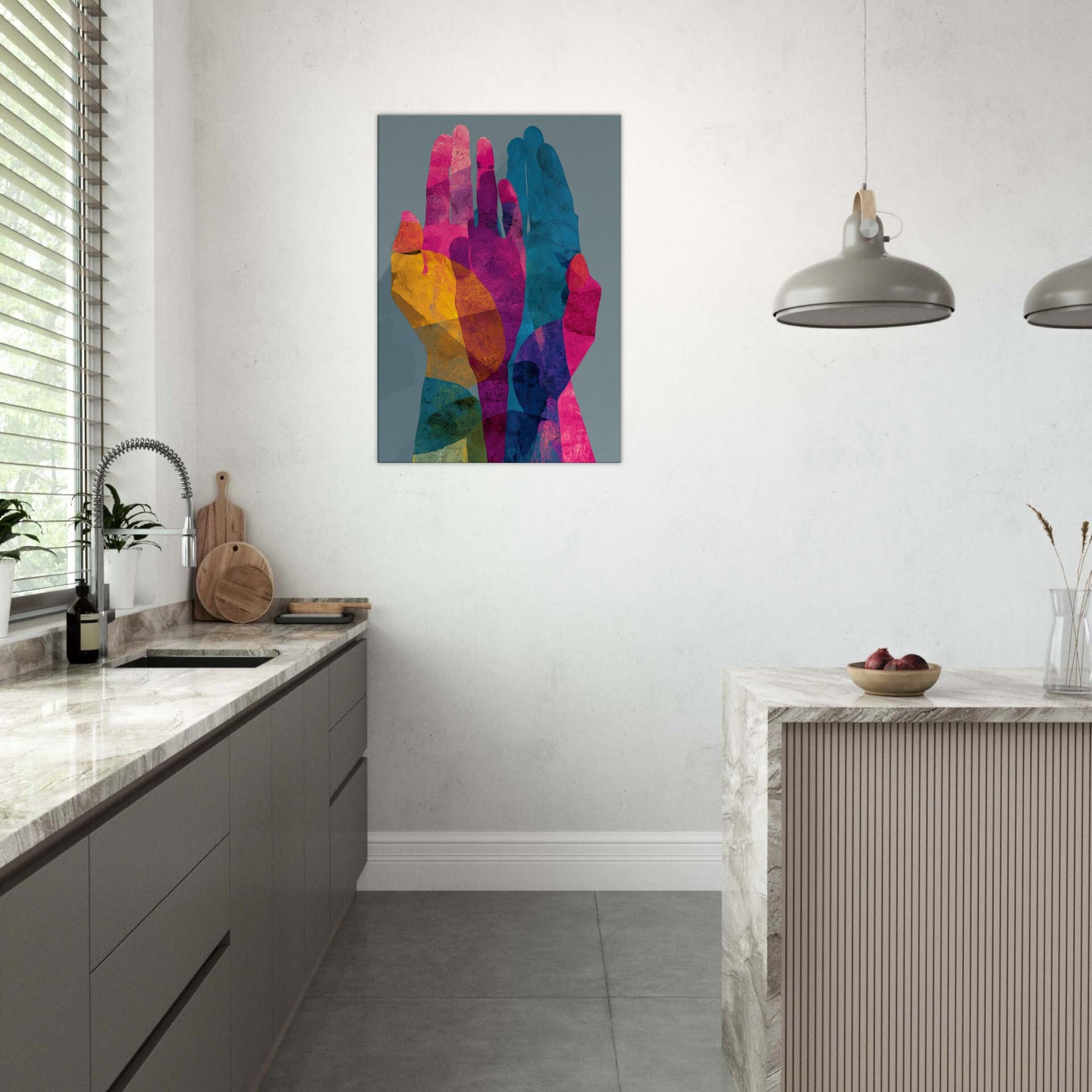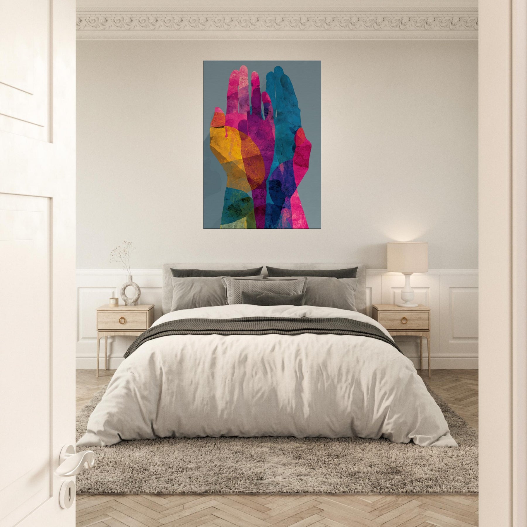 An entrancing meditation in color, this Hands Line Art piece dissolves form into a luminous chorus of arcs and shadows. The abstract faces and bodies mingle through translucent skins of magenta, teal, and gold, inviting a warm, contemplative mood to any room. Hang it where dawn light or evening glow can wash over the lines, turning a hallway or living space into a gallery of quiet conversation. This work speaks of connection, memory, and the pull of touch, inviting viewers to linger.