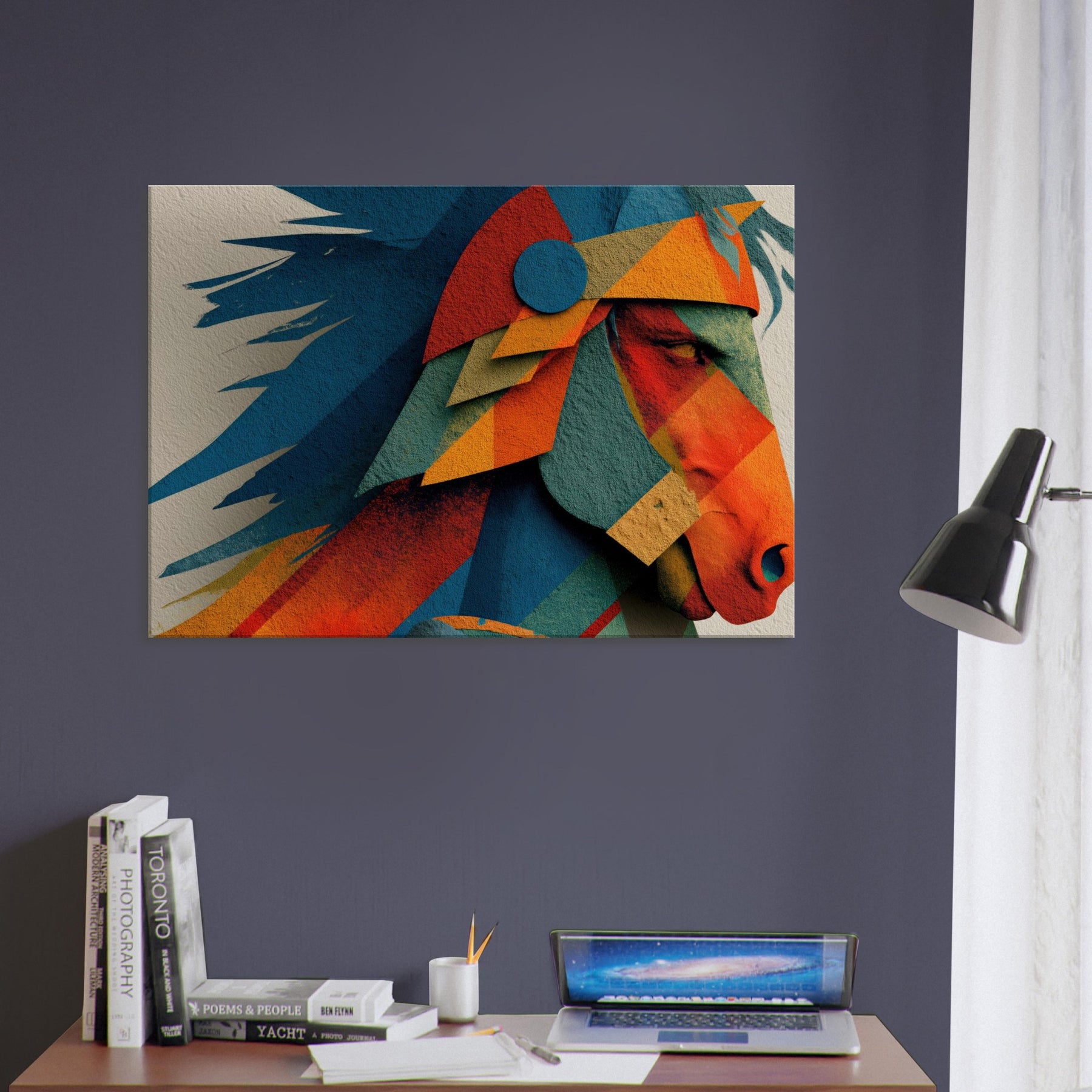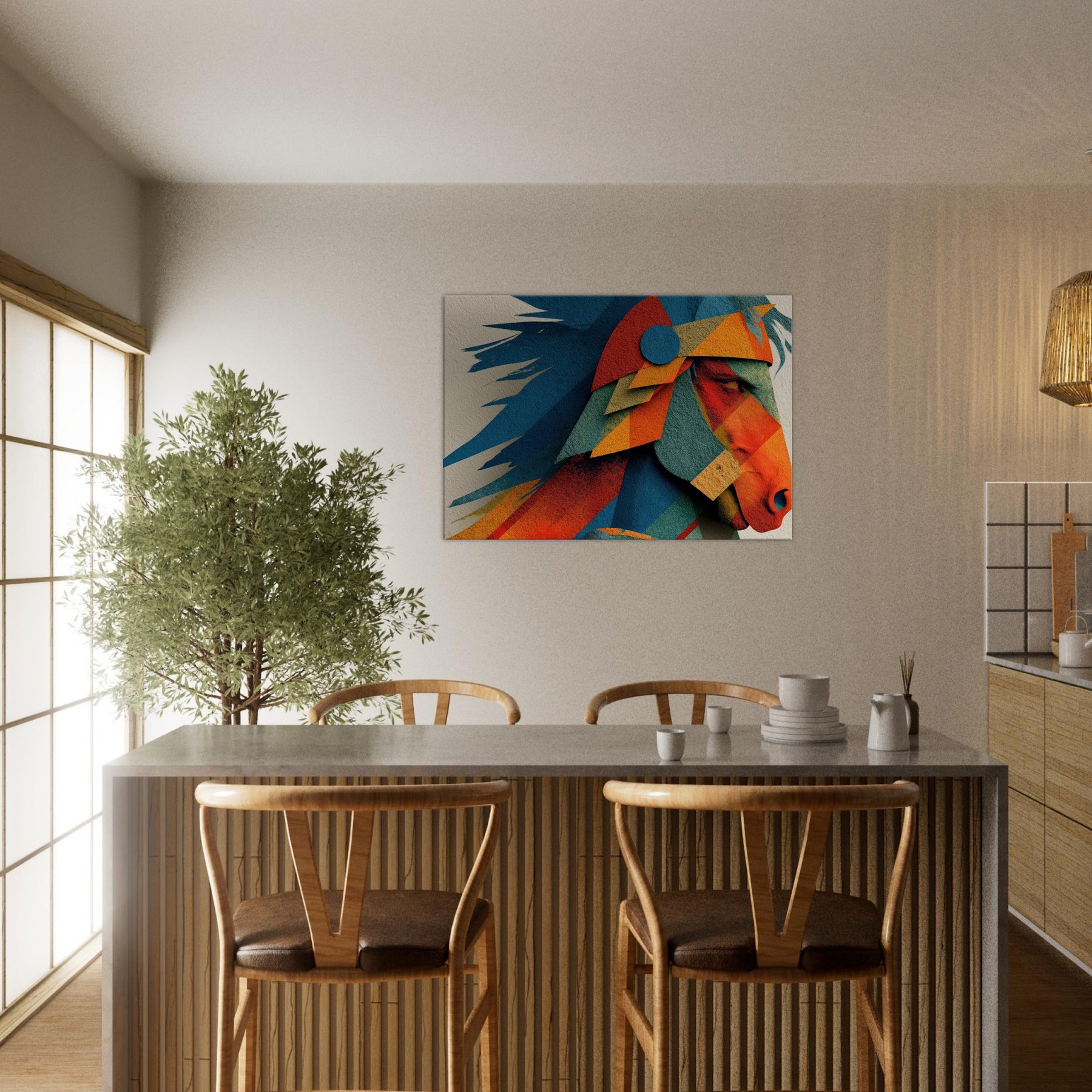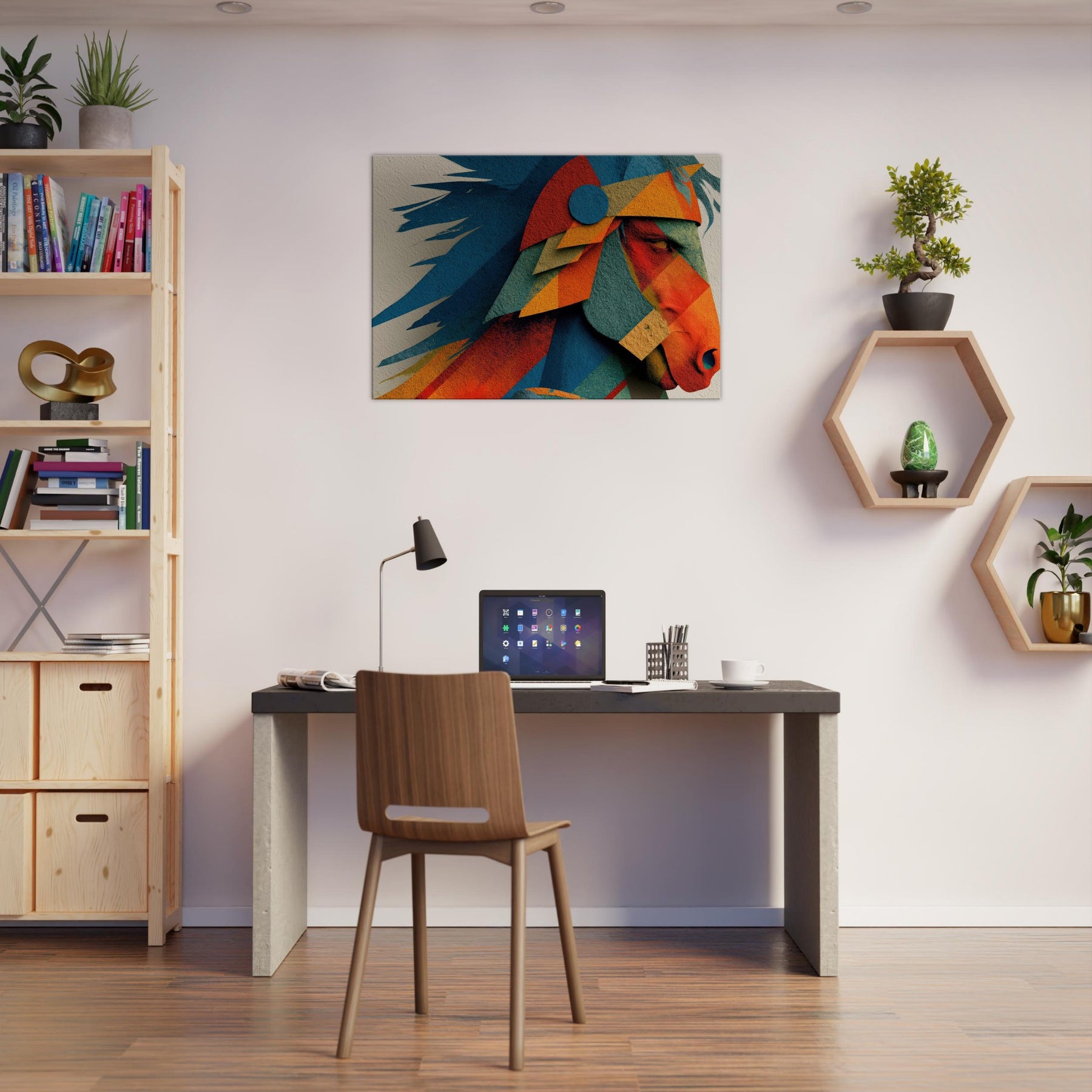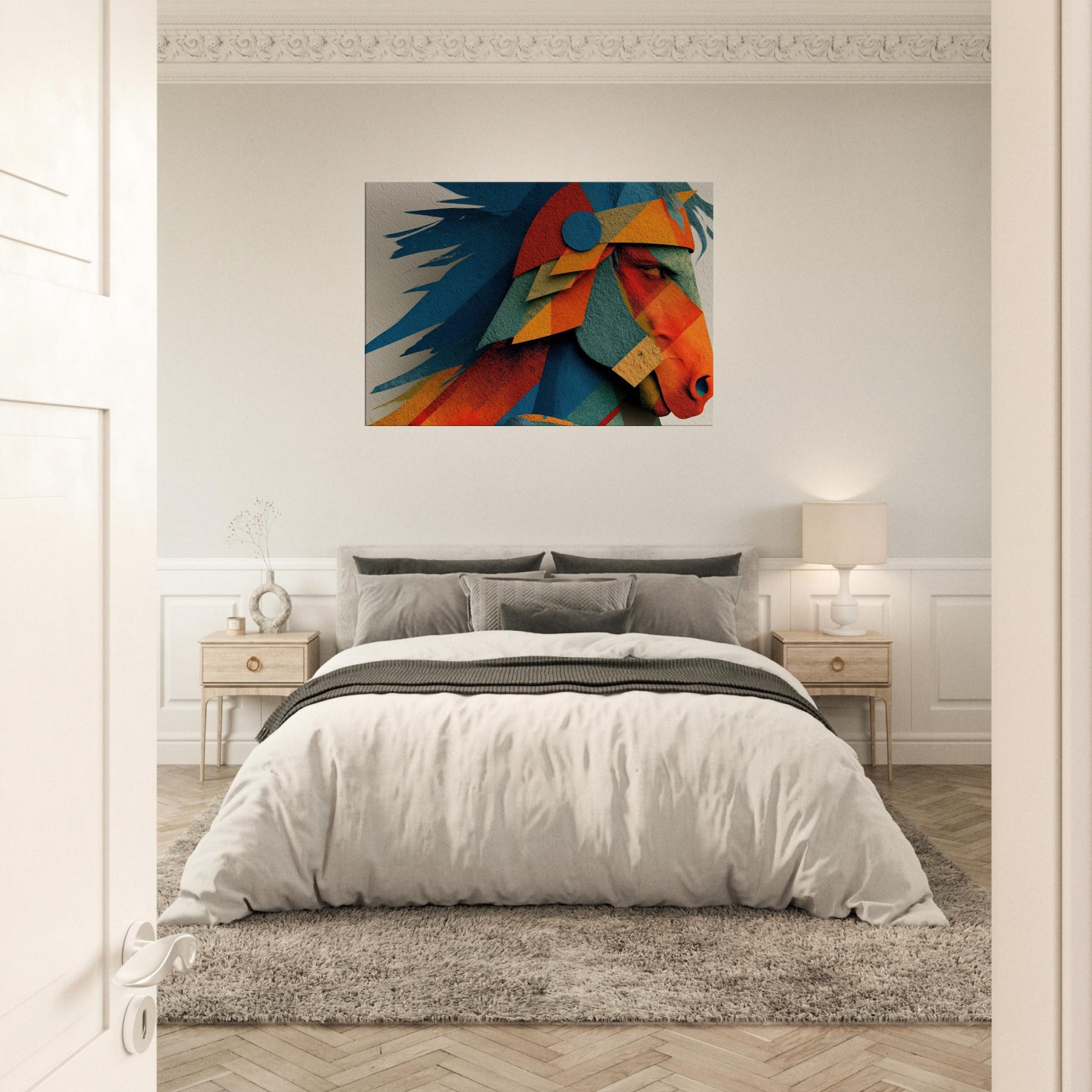 Poised and fearless, the Proud Centaur Warrior erupts in a chorus of color and shape. This abstract composition channels mythic power through fractured planes and blazing hues that curl around the viewer like wind. The piece radiates movement and courage, turning a wall into a sanctuary of bold imagination. Hang it in a living room or study to summon focus, creativity, and a timeless sense of adventure, a tactile, sensory invitation that makes space feel larger and more alive.