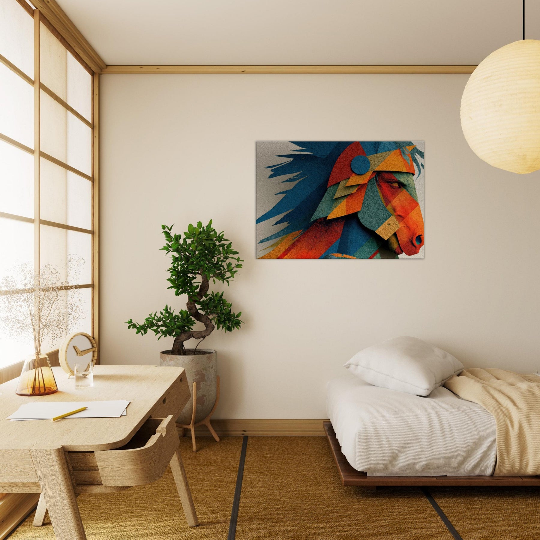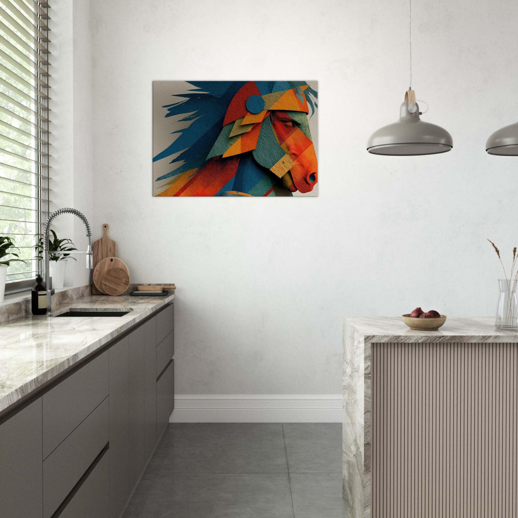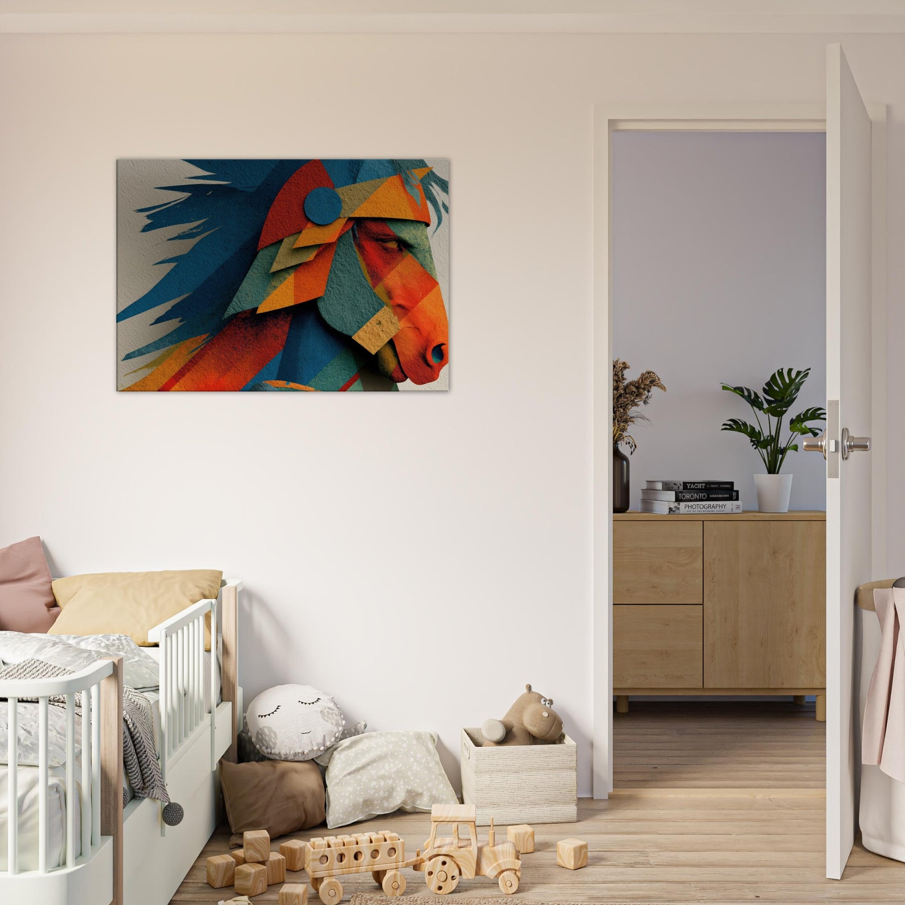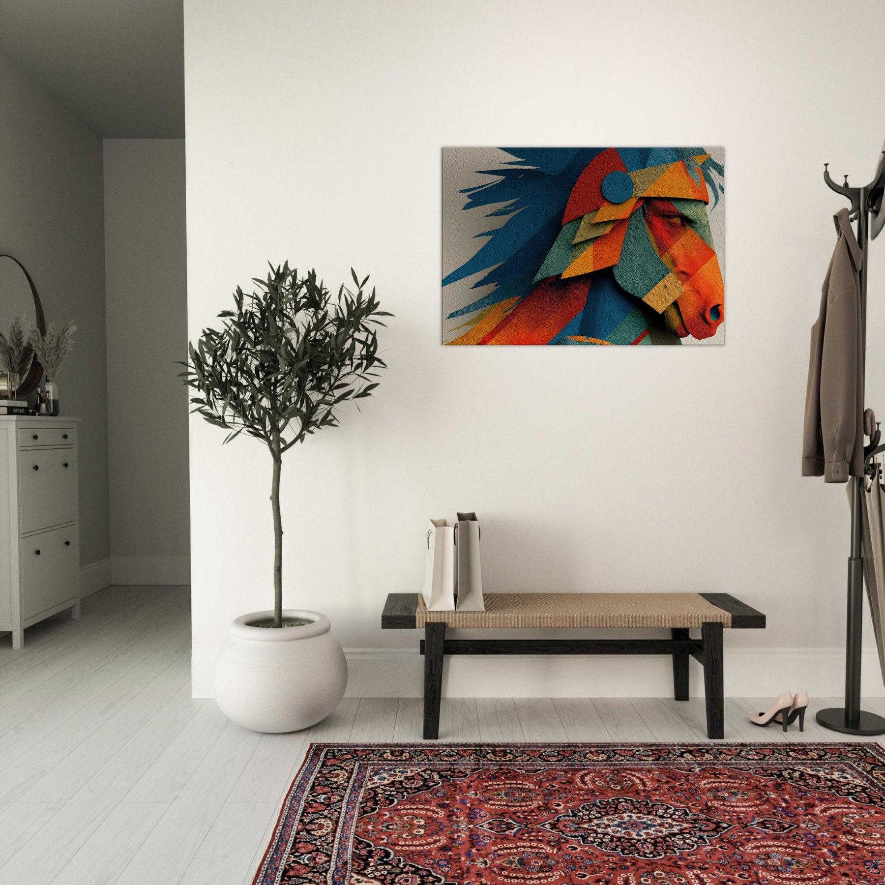 Poised and fearless, the Proud Centaur Warrior erupts in a chorus of color and shape. This abstract composition channels mythic power through fractured planes and blazing hues that curl around the viewer like wind. The piece radiates movement and courage, turning a wall into a sanctuary of bold imagination. Hang it in a living room or study to summon focus, creativity, and a timeless sense of adventure, a tactile, sensory invitation that makes space feel larger and more alive.