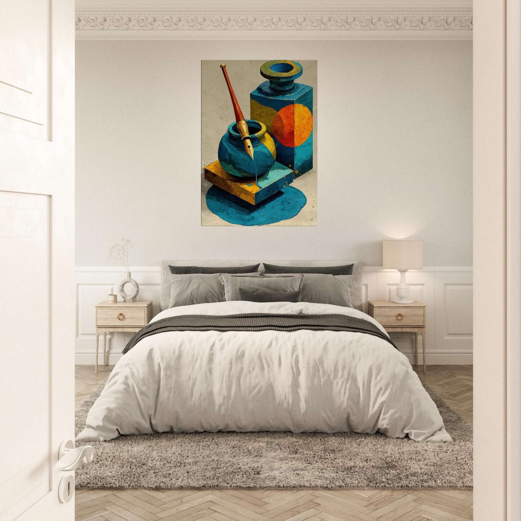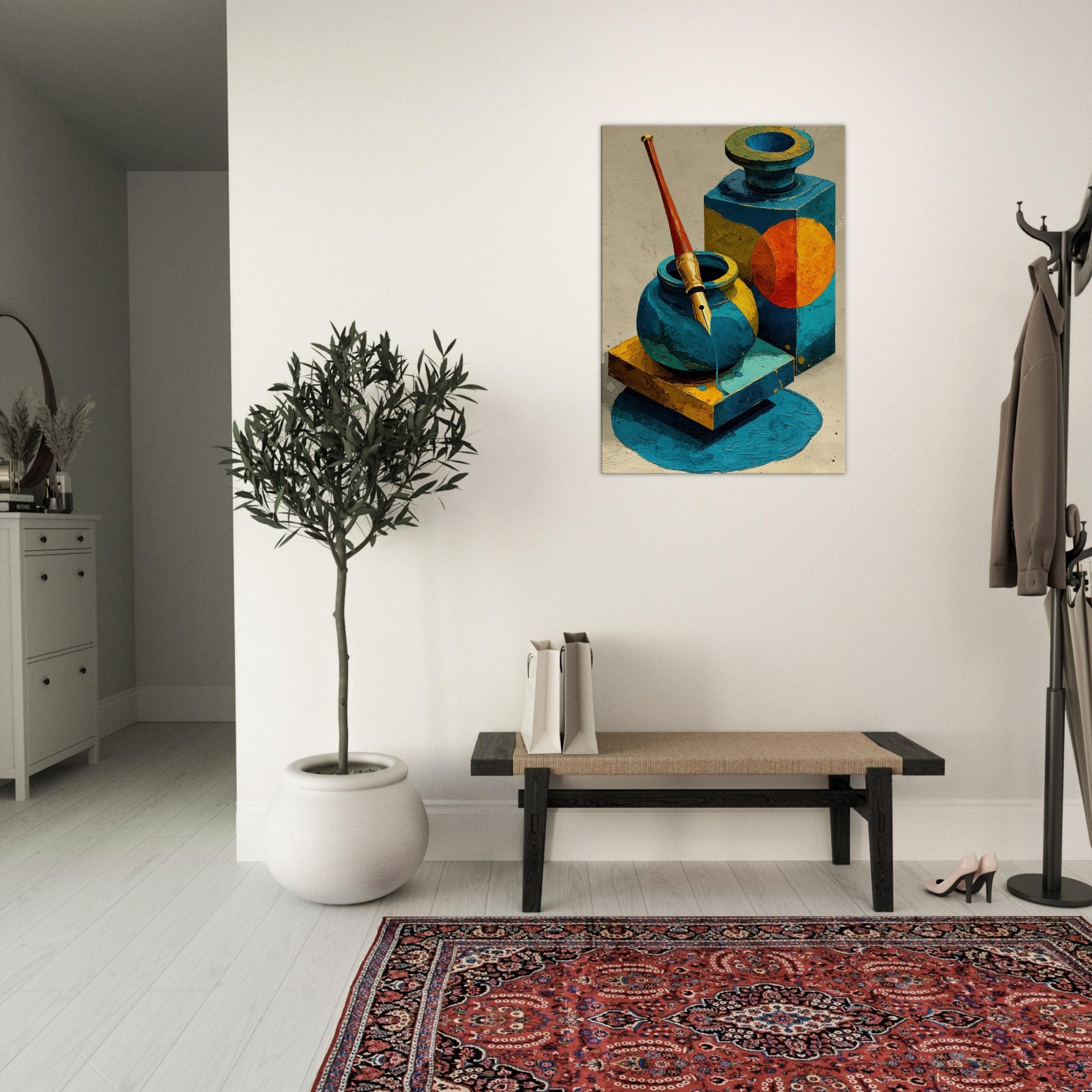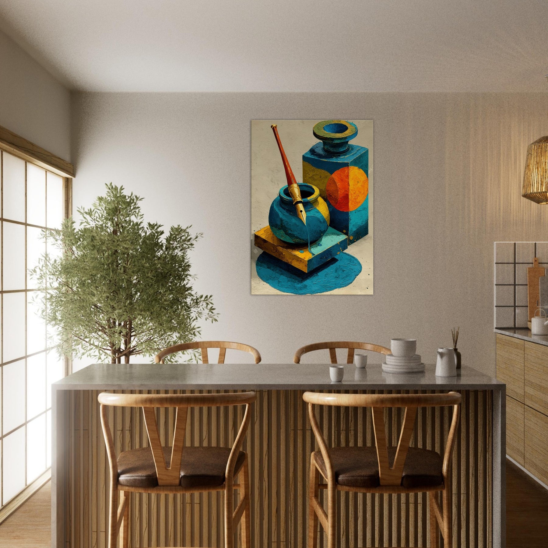 Immerse your space in the quiet drama of a Calligraphy Brush & Inkstone rendered as an abstract study in texture and balance. This piece breathes with ink dark depths and sun warmed highlights, inviting the eye to travel along layered planes and subtle returns of form. The tactile brush marks evoke a studio ritual, turning a living room or study into a sanctuary of focus and grace. A refined accent that pairs with both minimal and eclectic decor.