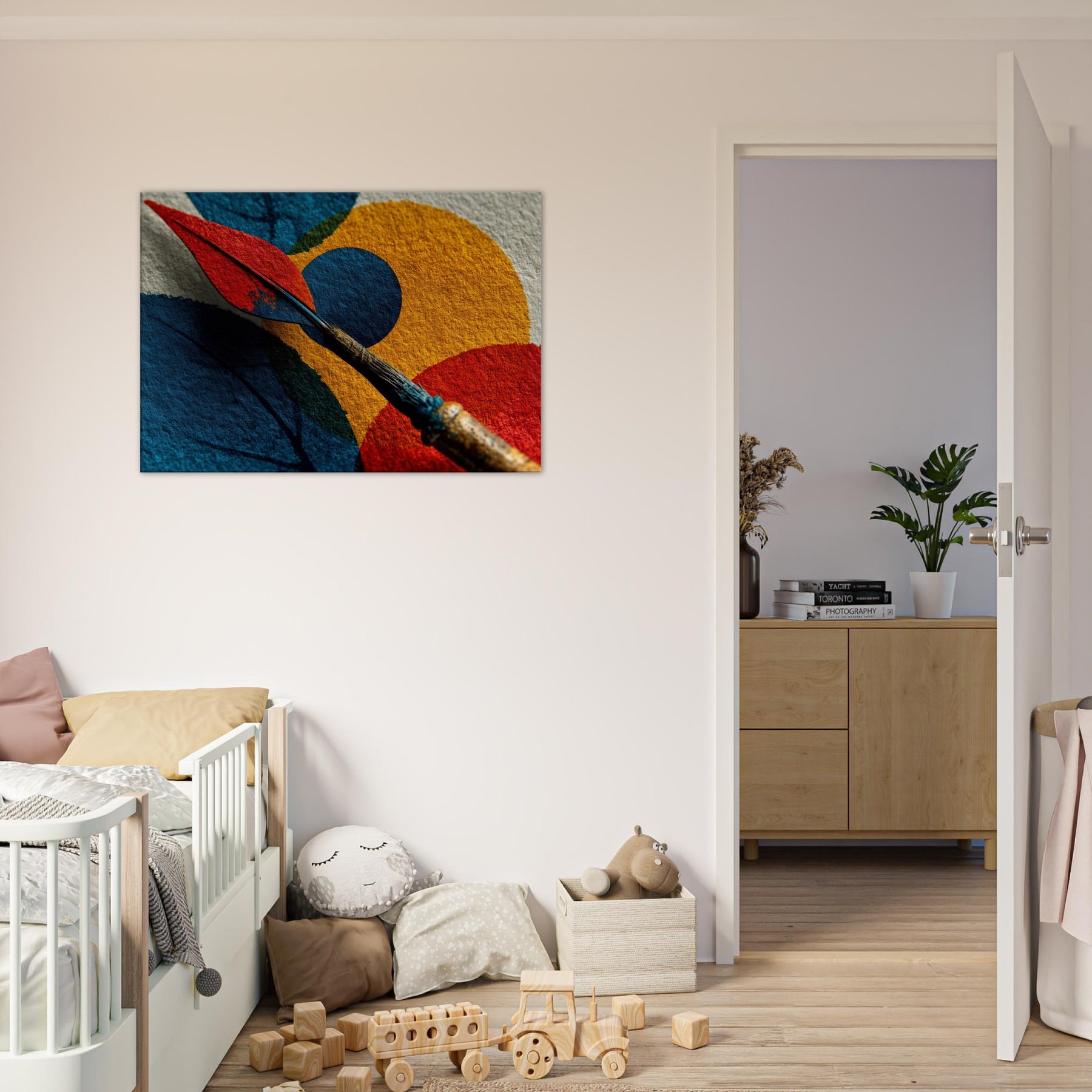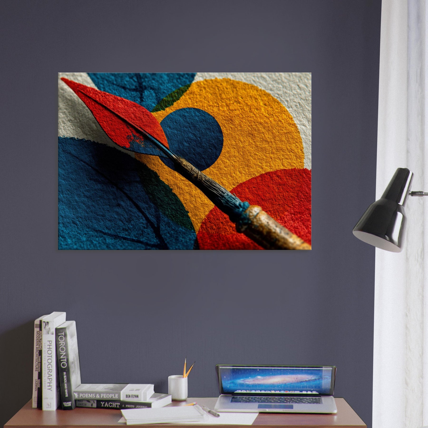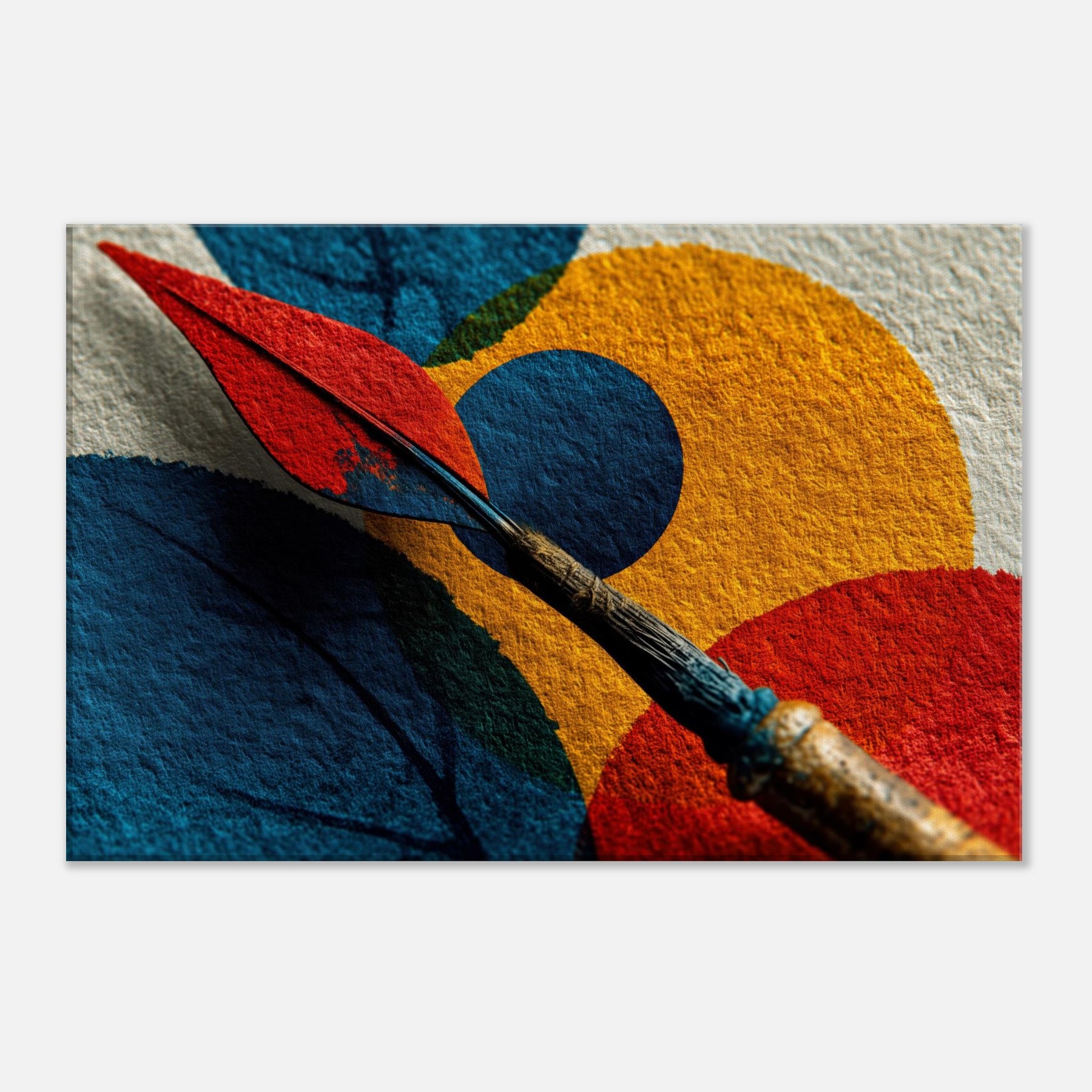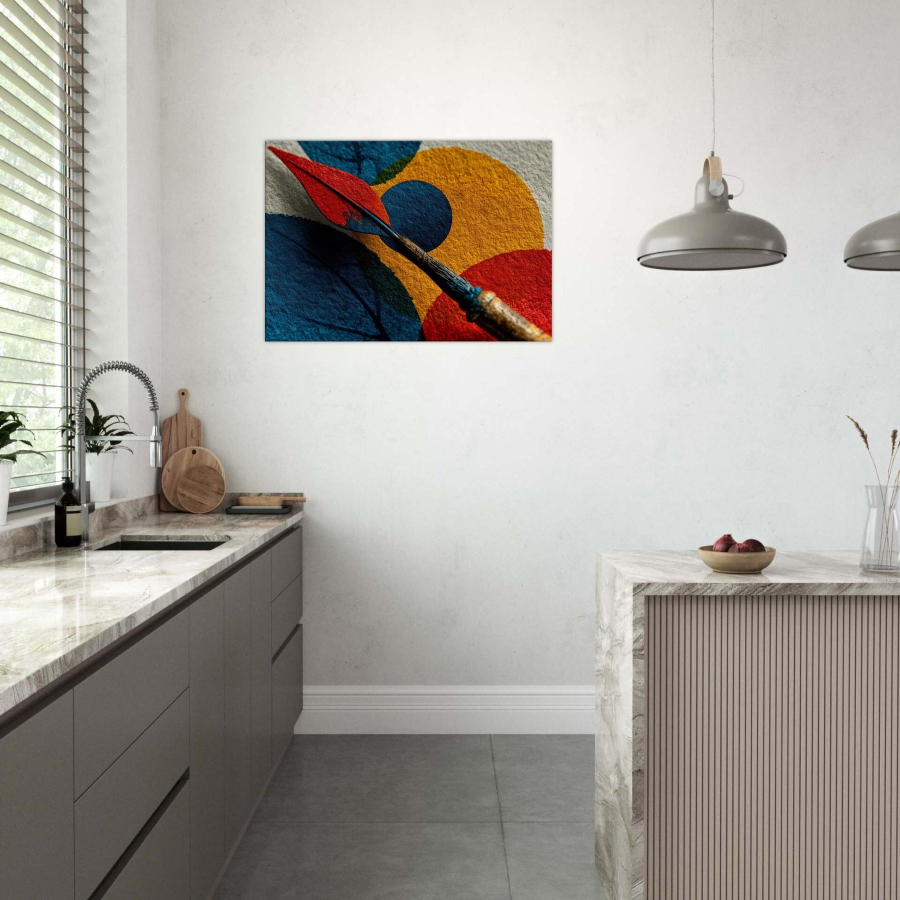 Let your walls breathe with a nocturnal blaze of color and quiet precision. This work centers on the Calligraphy Brush & Inkstone, captured in abstract form as if the act of writing itself were a . The brush’s red arc cuts across layered circles of blue, gold, and charcoal, inviting the eye to travel and rest. Ideal for a living room or study, it conjures focus without stiffness, a tactile, ink scented presence that elevates the space with movement and meaning.