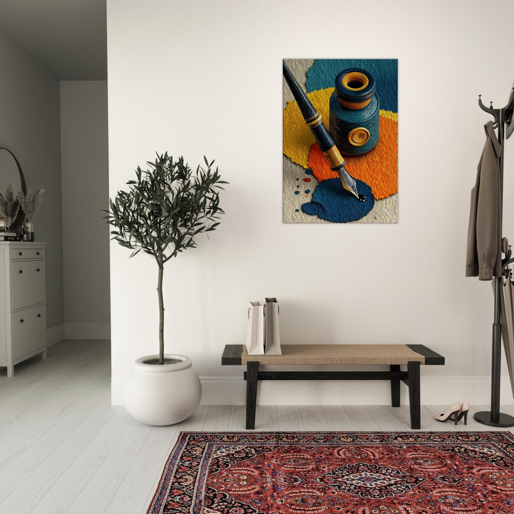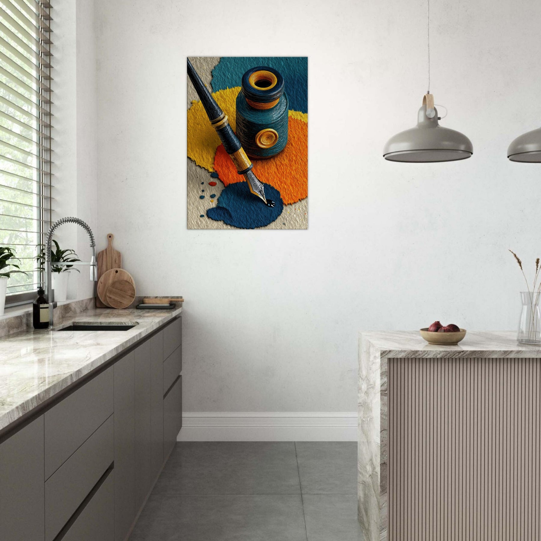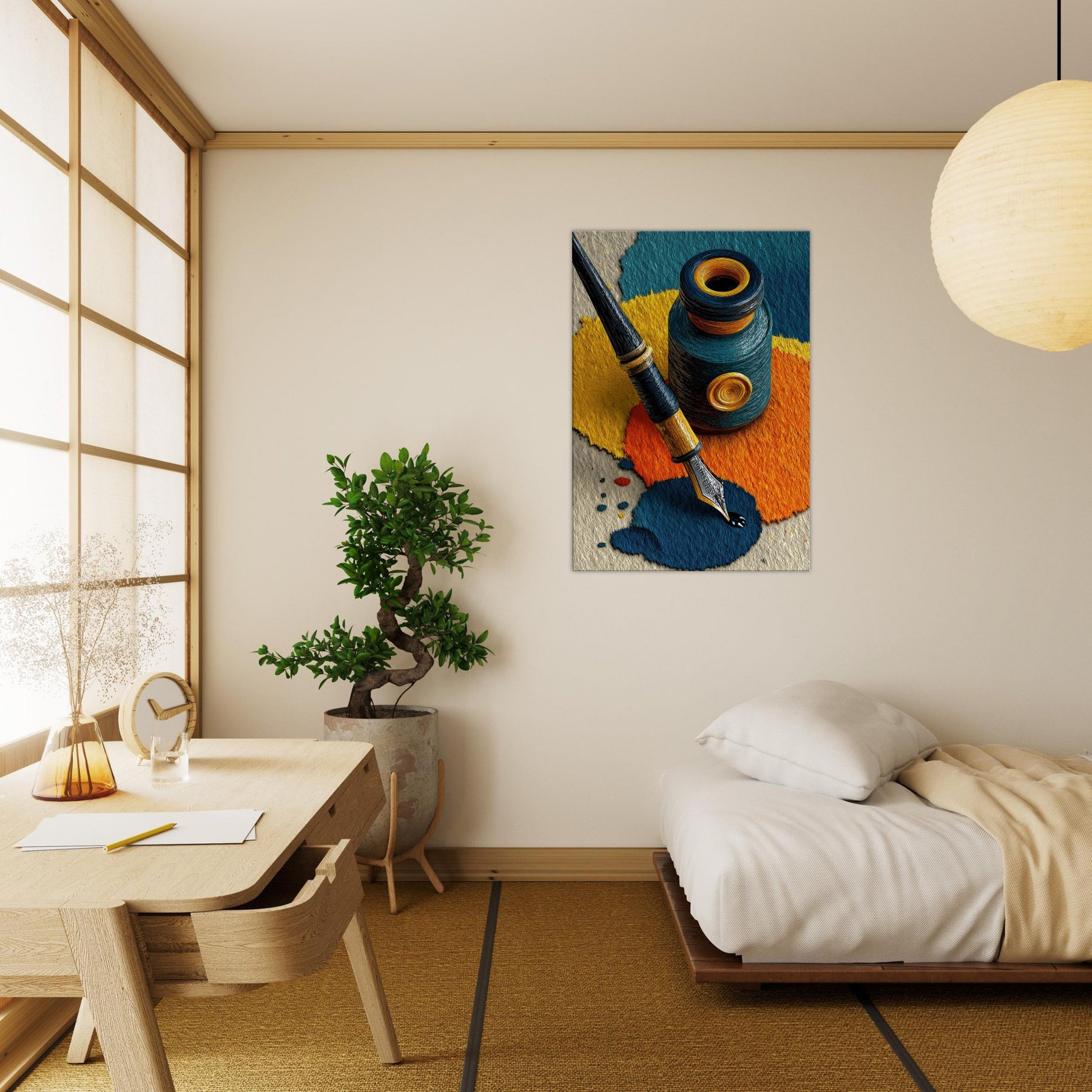 Let the Calligraphy Brush & Inkstone guide your space into a meditative orbit of color and quiet momentum. This abstract composition evokes the tactile rhythm of ink on paper, the weight of lacquered wood, and a vivid sweep of cobalt, amber, and ochre that feels like a whispered lyric along the wall. In a living room or study, it slows the eye, enriches texture, and lends the space a refined sense of artistry, balance, and timeless calm.