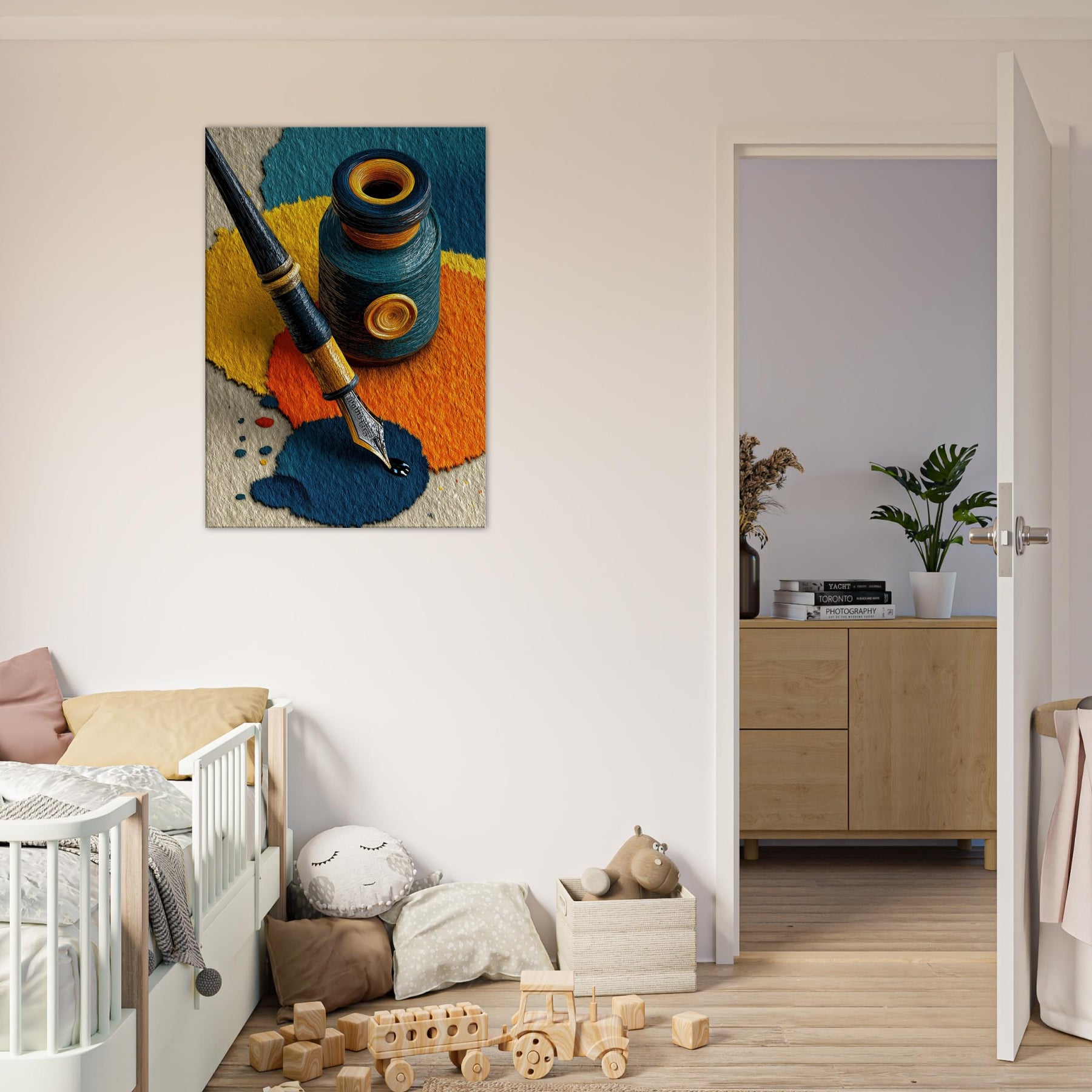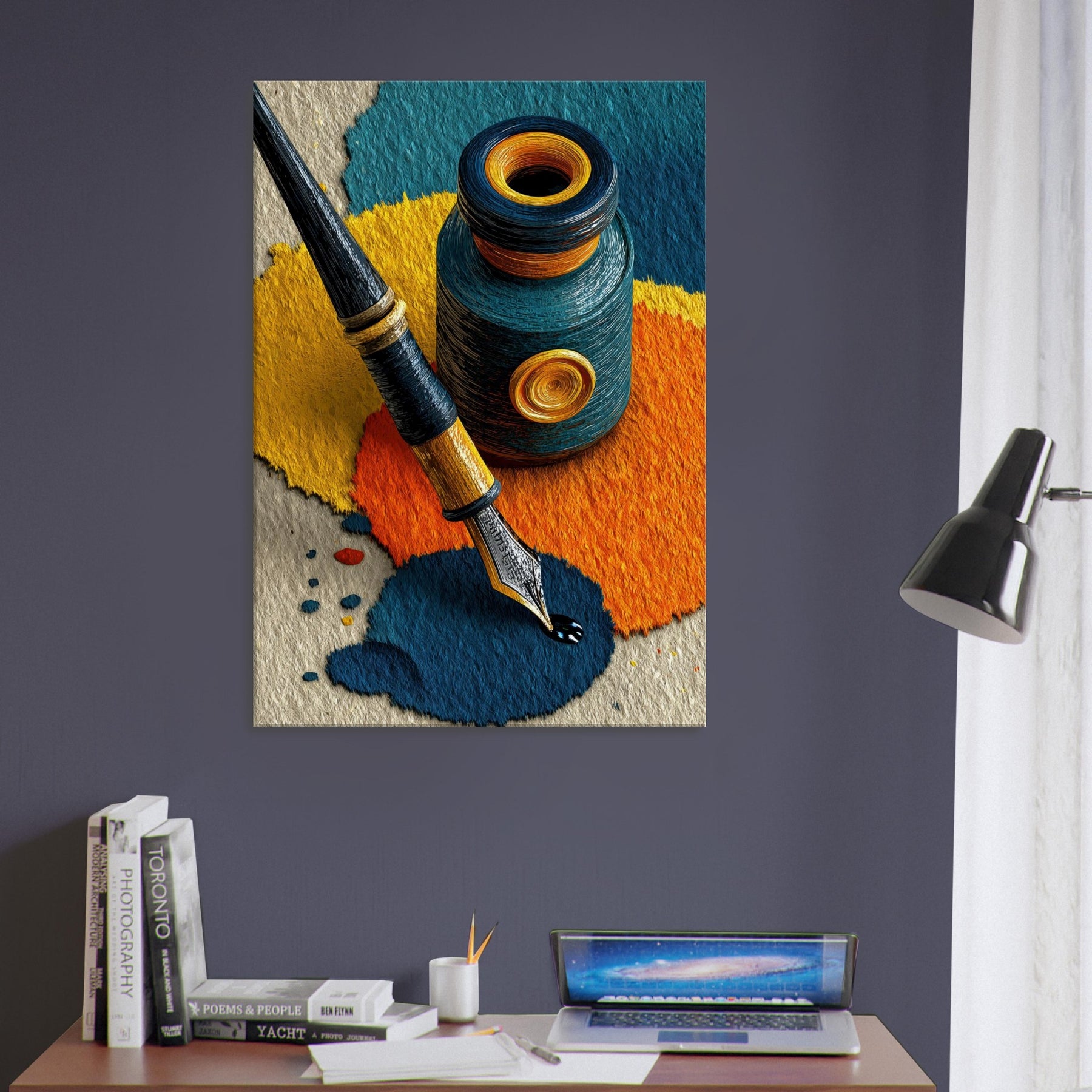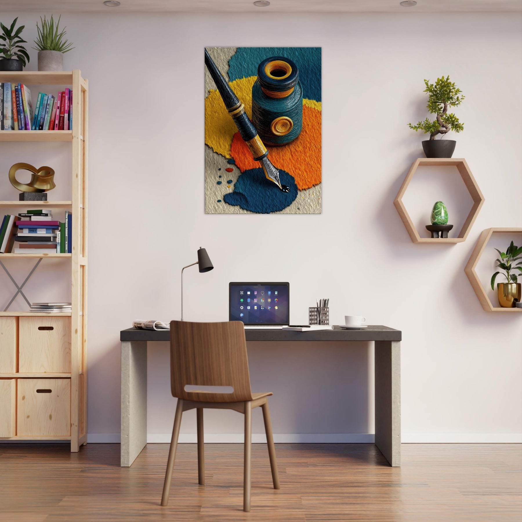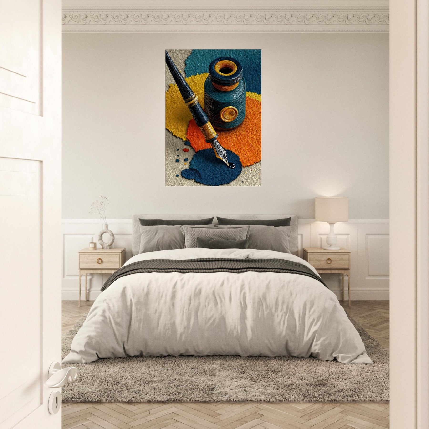 Let the Calligraphy Brush & Inkstone guide your space into a meditative orbit of color and quiet momentum. This abstract composition evokes the tactile rhythm of ink on paper, the weight of lacquered wood, and a vivid sweep of cobalt, amber, and ochre that feels like a whispered lyric along the wall. In a living room or study, it slows the eye, enriches texture, and lends the space a refined sense of artistry, balance, and timeless calm.