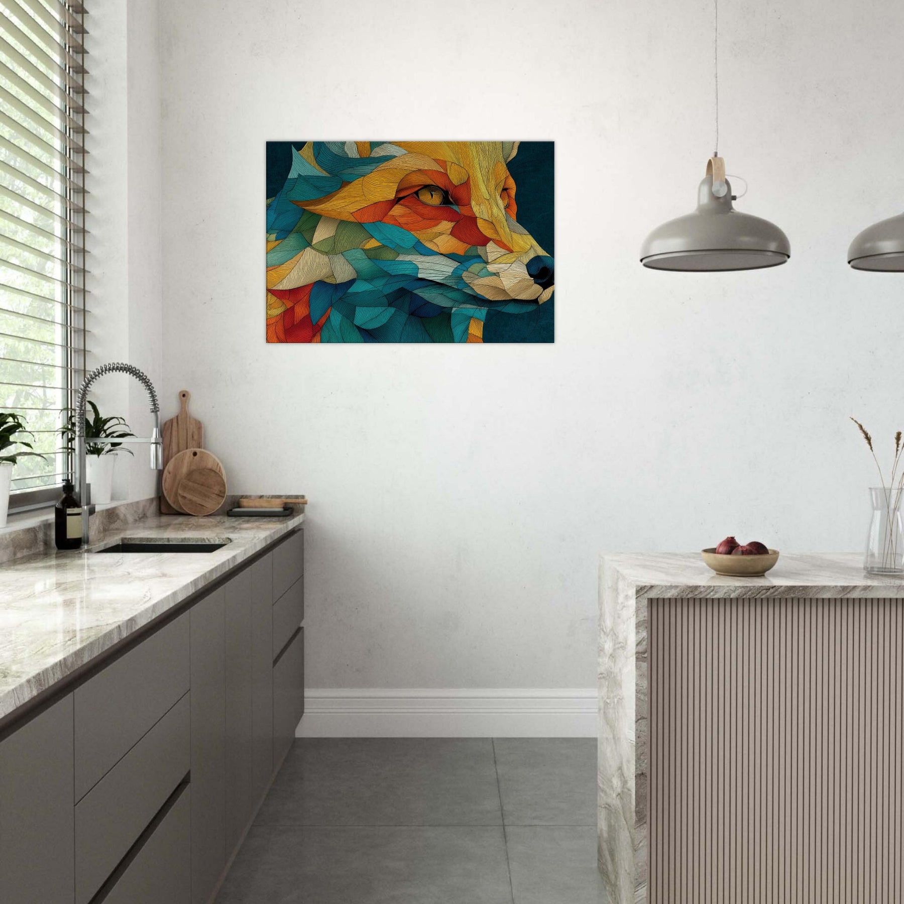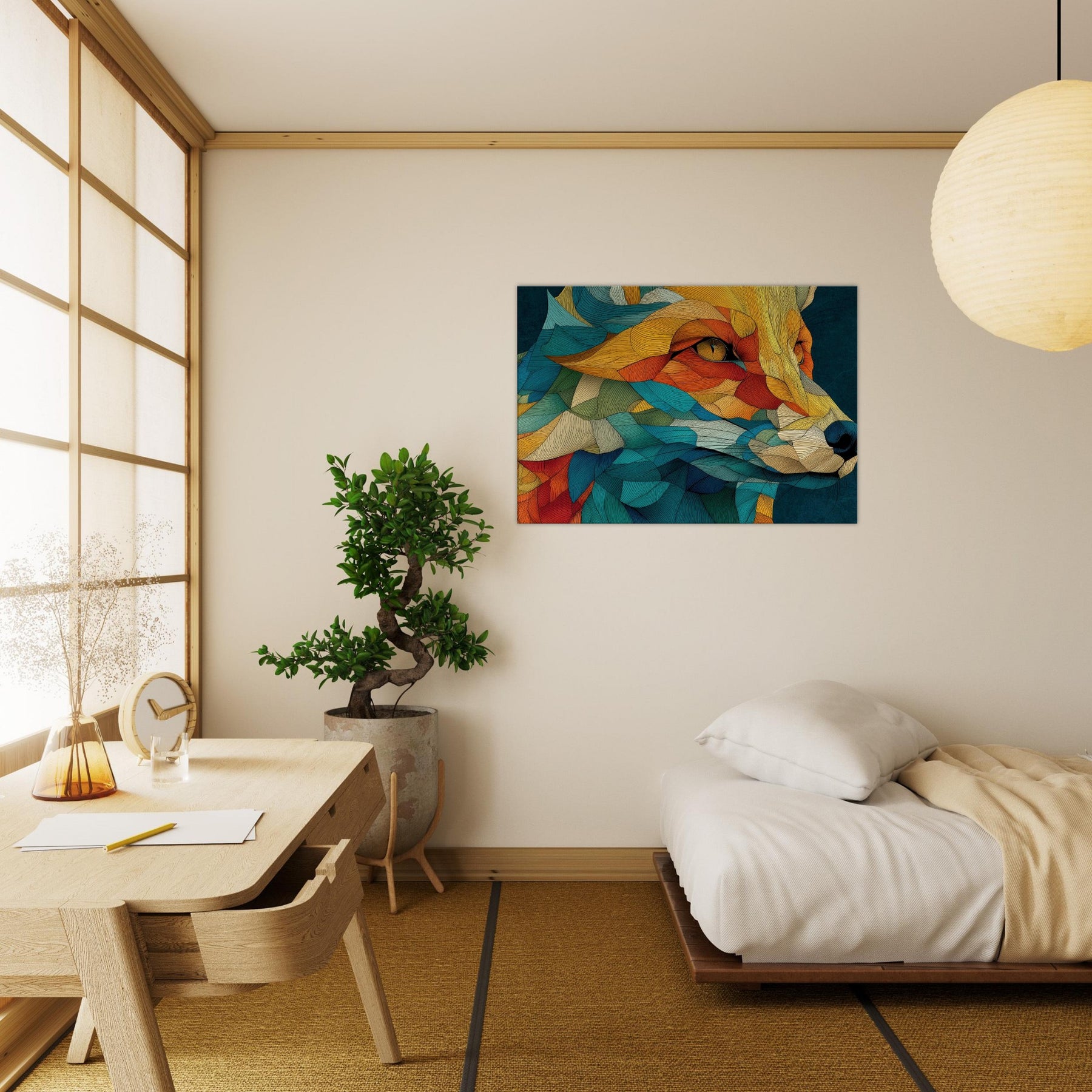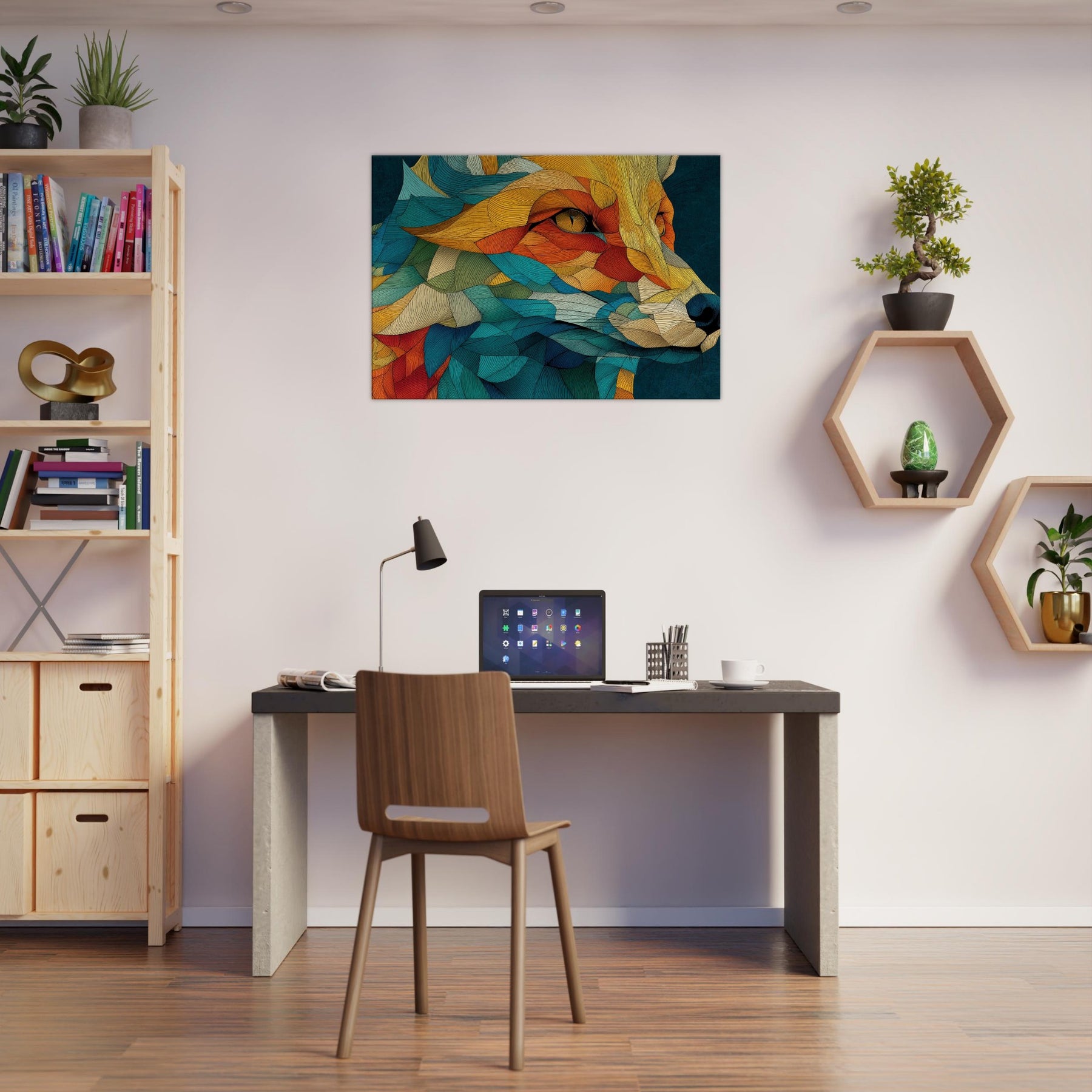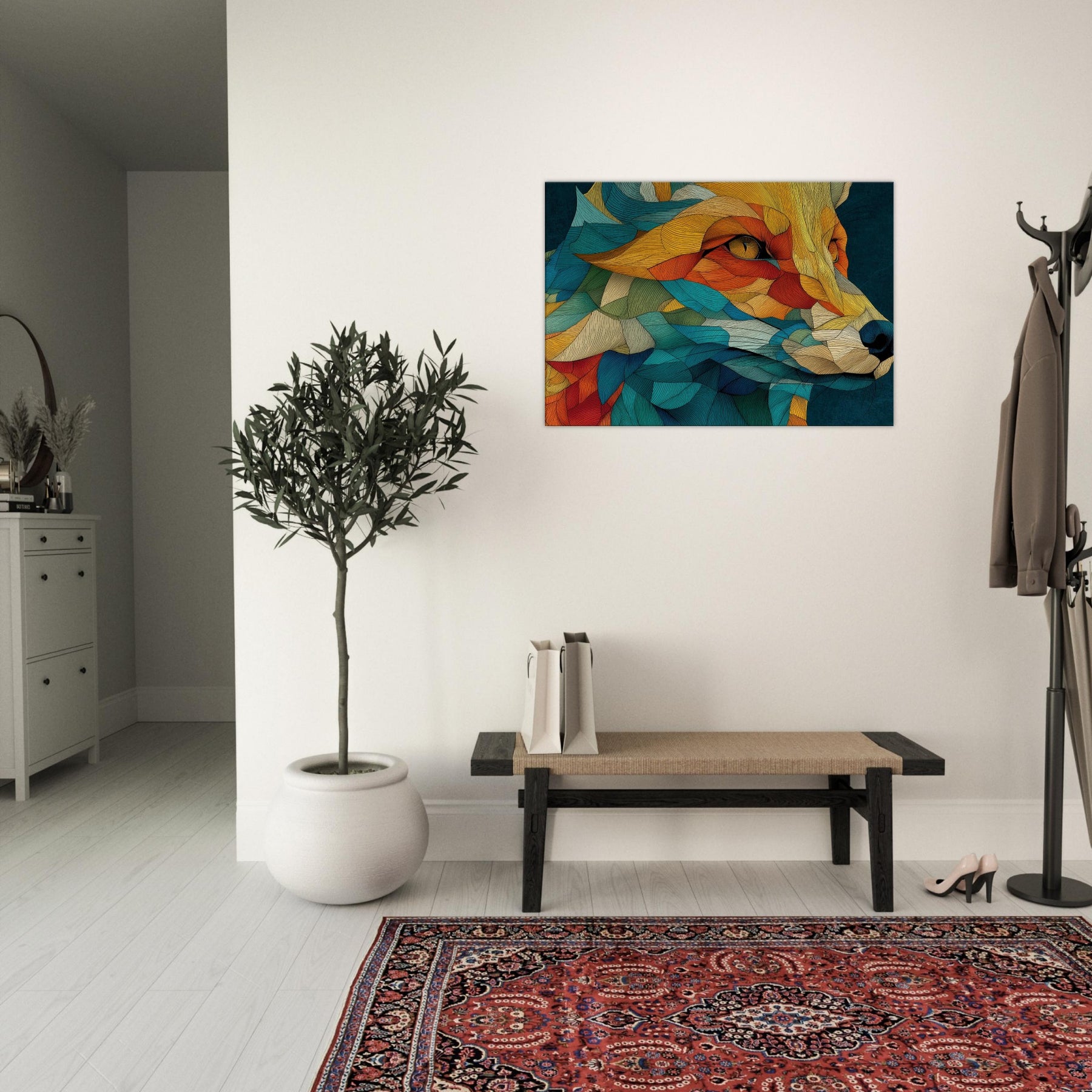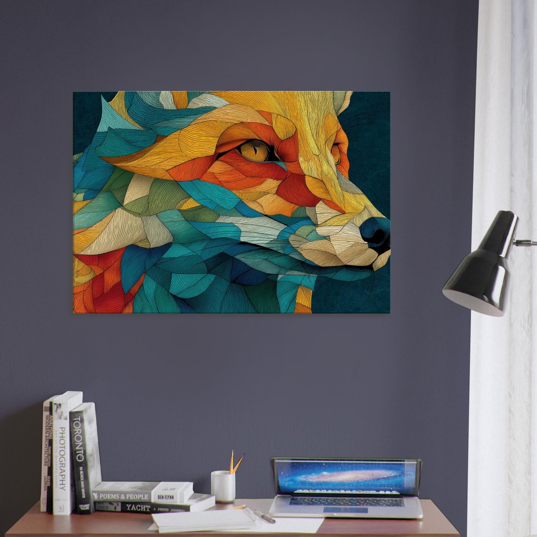 Fox takes center stage in a sea of fractured color, where line and hue braid into a living, breathing . This abstract composition invites the eye to drift along curved ribbons of pigment, catching light and shadow in a gentle dance. The Fox emerges with quiet majesty, its silhouette built from warm ambers, cool teals, and sunlit ochres that shimmer against a deep teal backdrop. Hang it to infuse a room with energy, warmth, and a refined, contemporary mood.