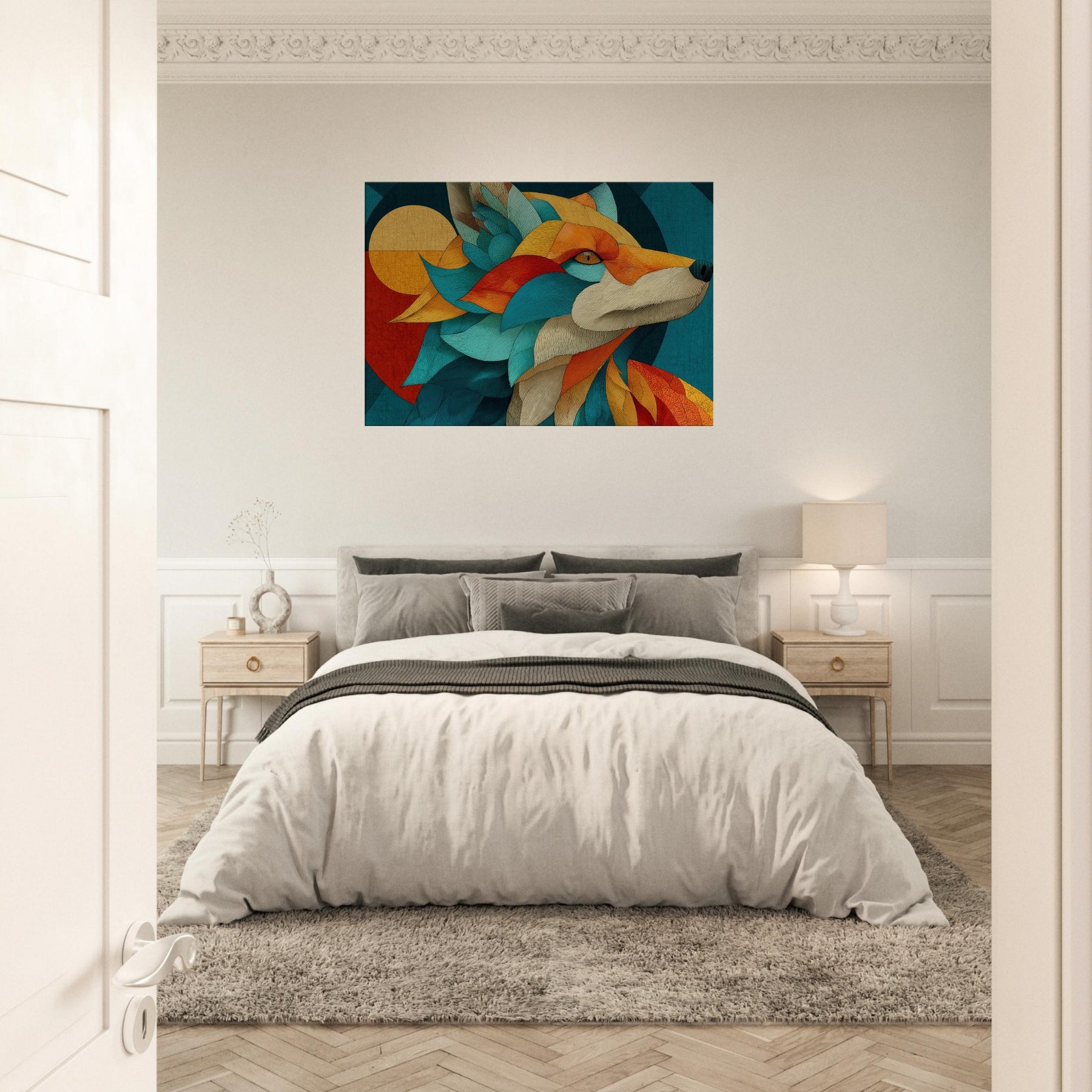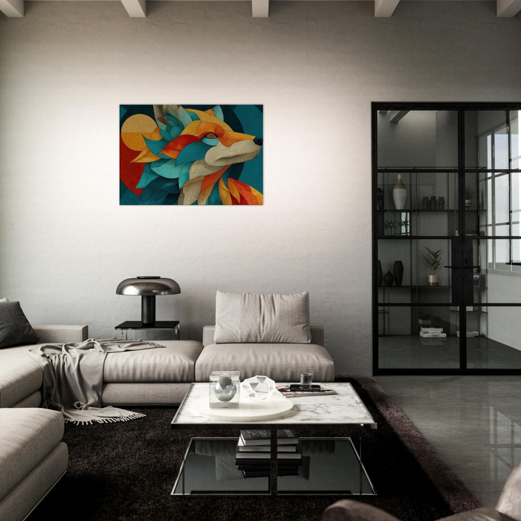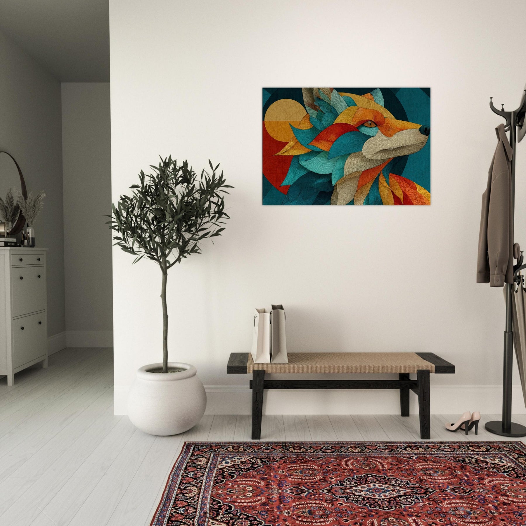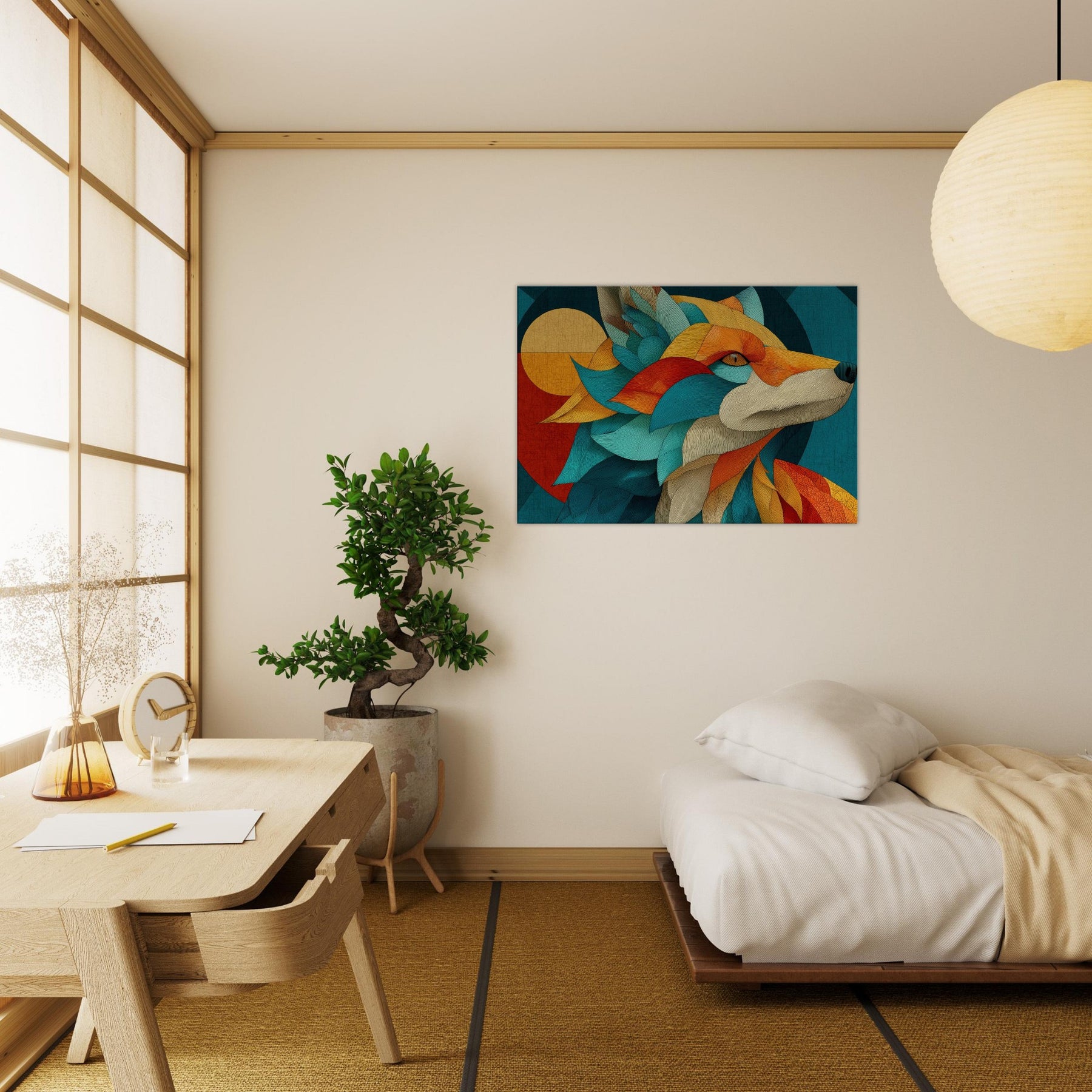 In this abstract ode to Kitsune, the Japanese Fox Spirit with Multiple Tails, the myth beckons through a tide of color and grain. The composition unfurls like a whispered foxfire searing oranges, cool teals, and sun warmed ochres weaving a luminous trail across the wall. The layered, textured strokes invite a quiet intimacy, turning a hallway or living room into a twilight forest where imagination roams. Hang it where light shifts it amplifies mood, sparks conversation, and makes every glance feel enchanted.
