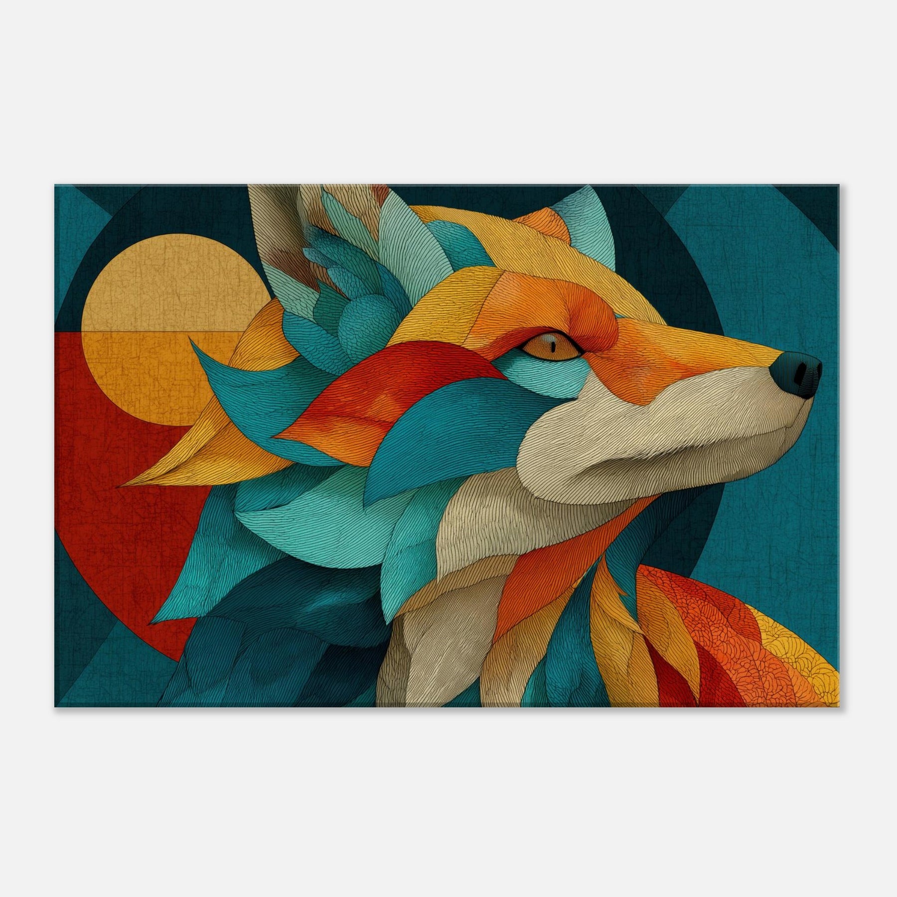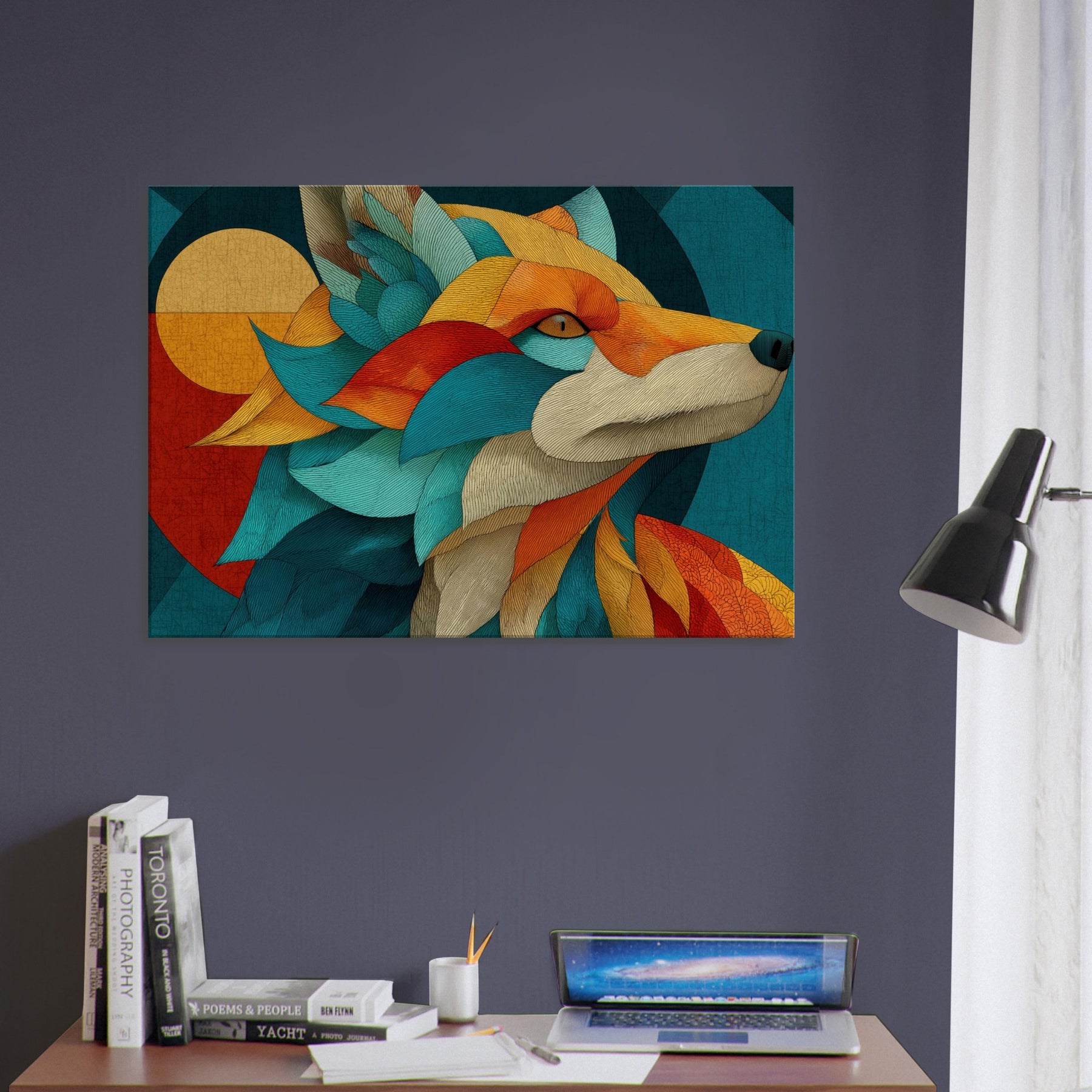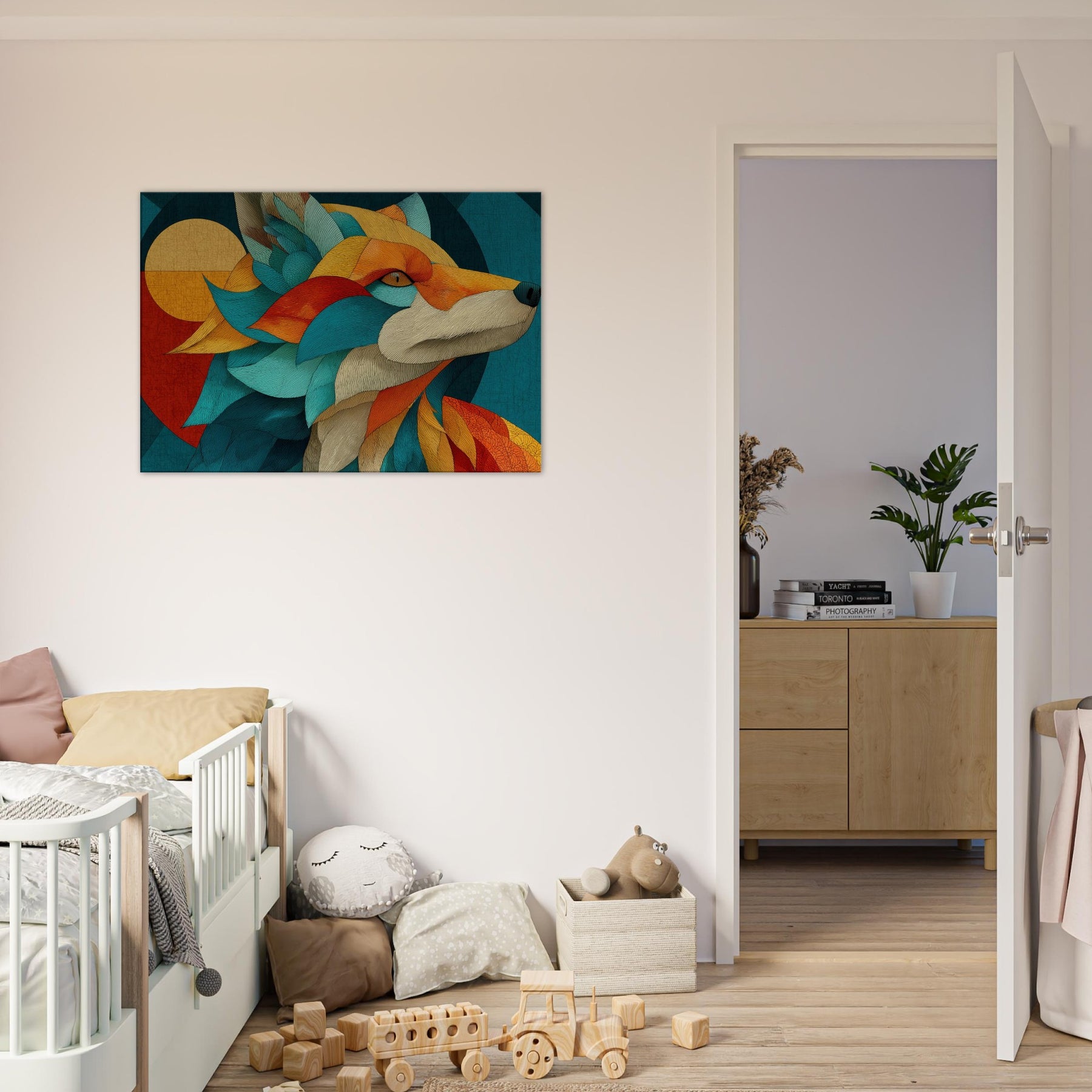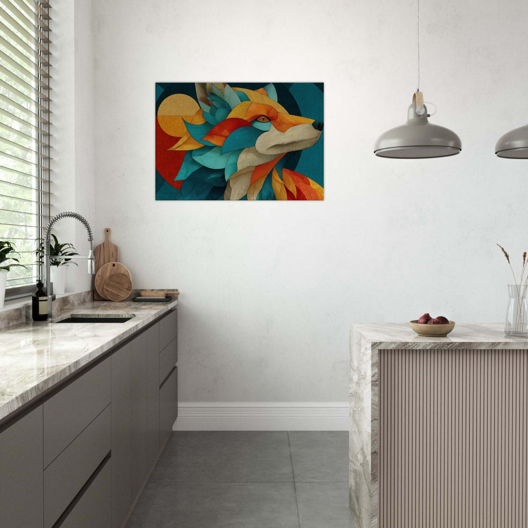 In this abstract ode to Kitsune, the Japanese Fox Spirit with Multiple Tails, the myth beckons through a tide of color and grain. The composition unfurls like a whispered foxfire searing oranges, cool teals, and sun warmed ochres weaving a luminous trail across the wall. The layered, textured strokes invite a quiet intimacy, turning a hallway or living room into a twilight forest where imagination roams. Hang it where light shifts it amplifies mood, sparks conversation, and makes every glance feel enchanted.