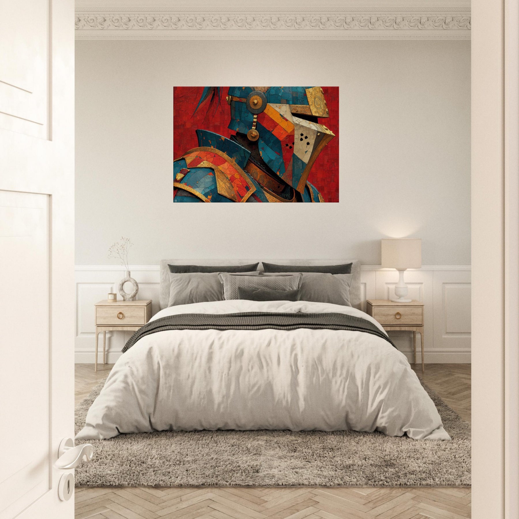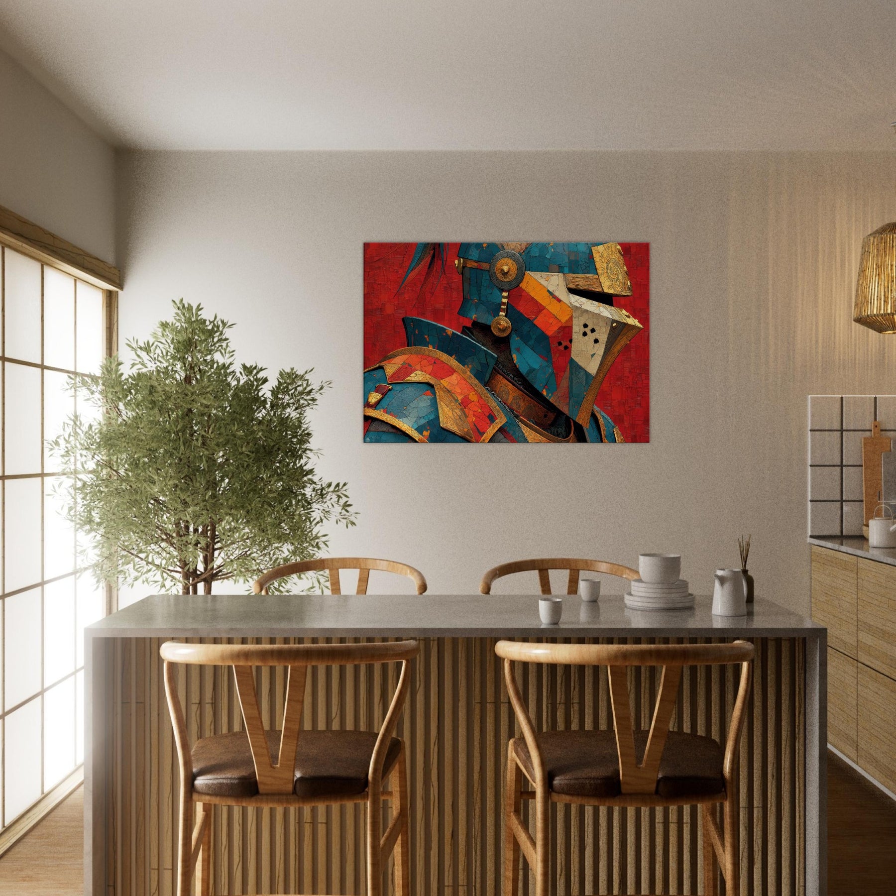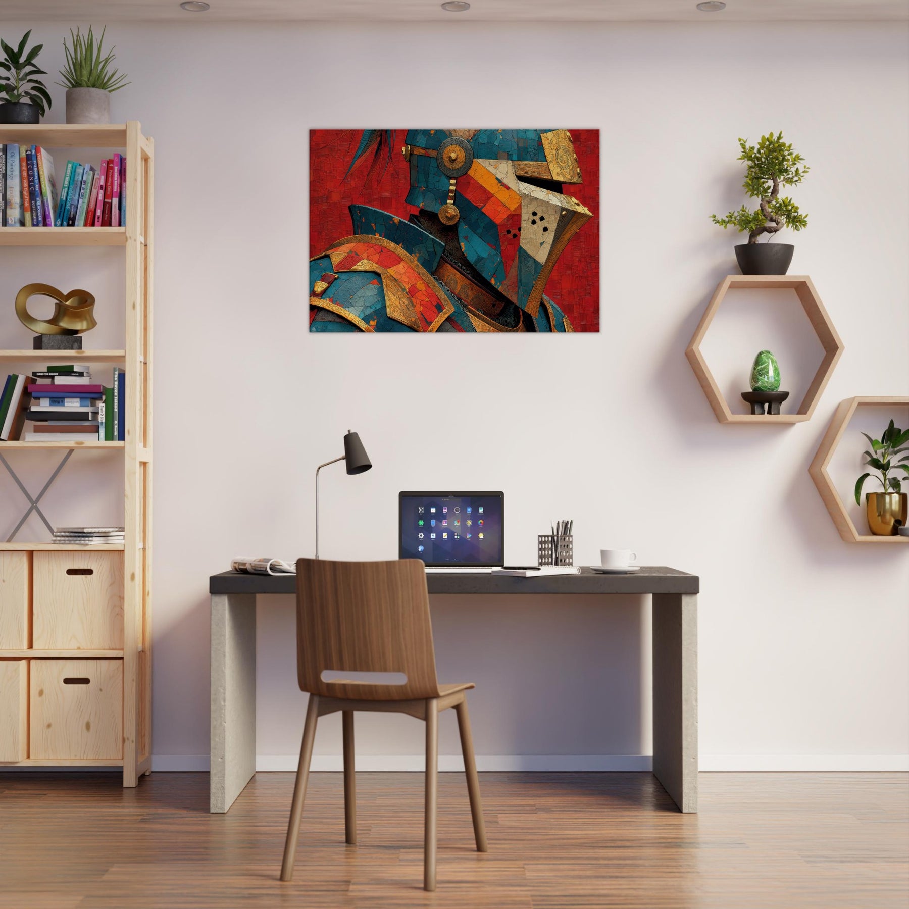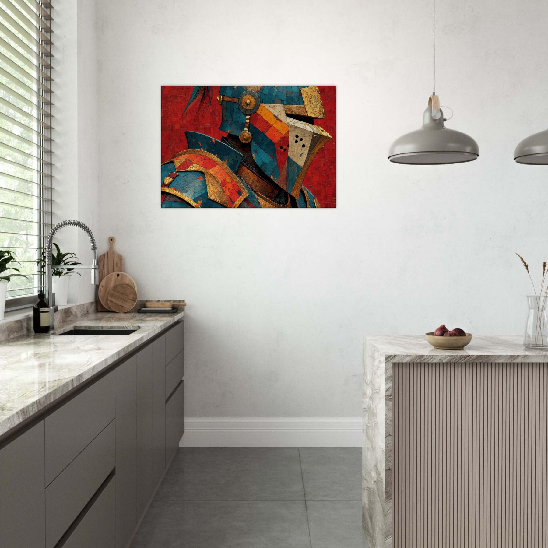 Step into a realm of courage and color with the Gallant Knight in Shining Armor reimagined in a dazzling mosaic of form. The piece hums with red, cobalt, and gold facets that catch the eye and lure the breath, inviting you to explore its layered, liquid light. This radiant, abstract composition creates a focal moment in any room perfect above a sofa, in an office nook, or near a reading chair where legend and atmosphere meet, elevating space with quiet, cinematic drama.