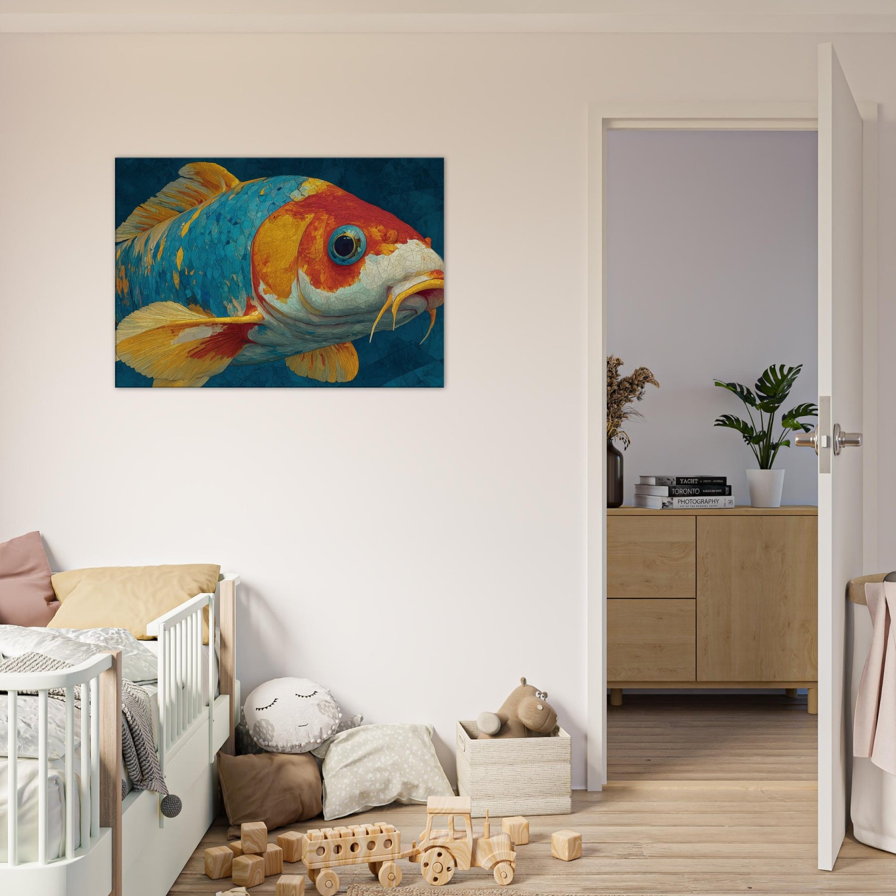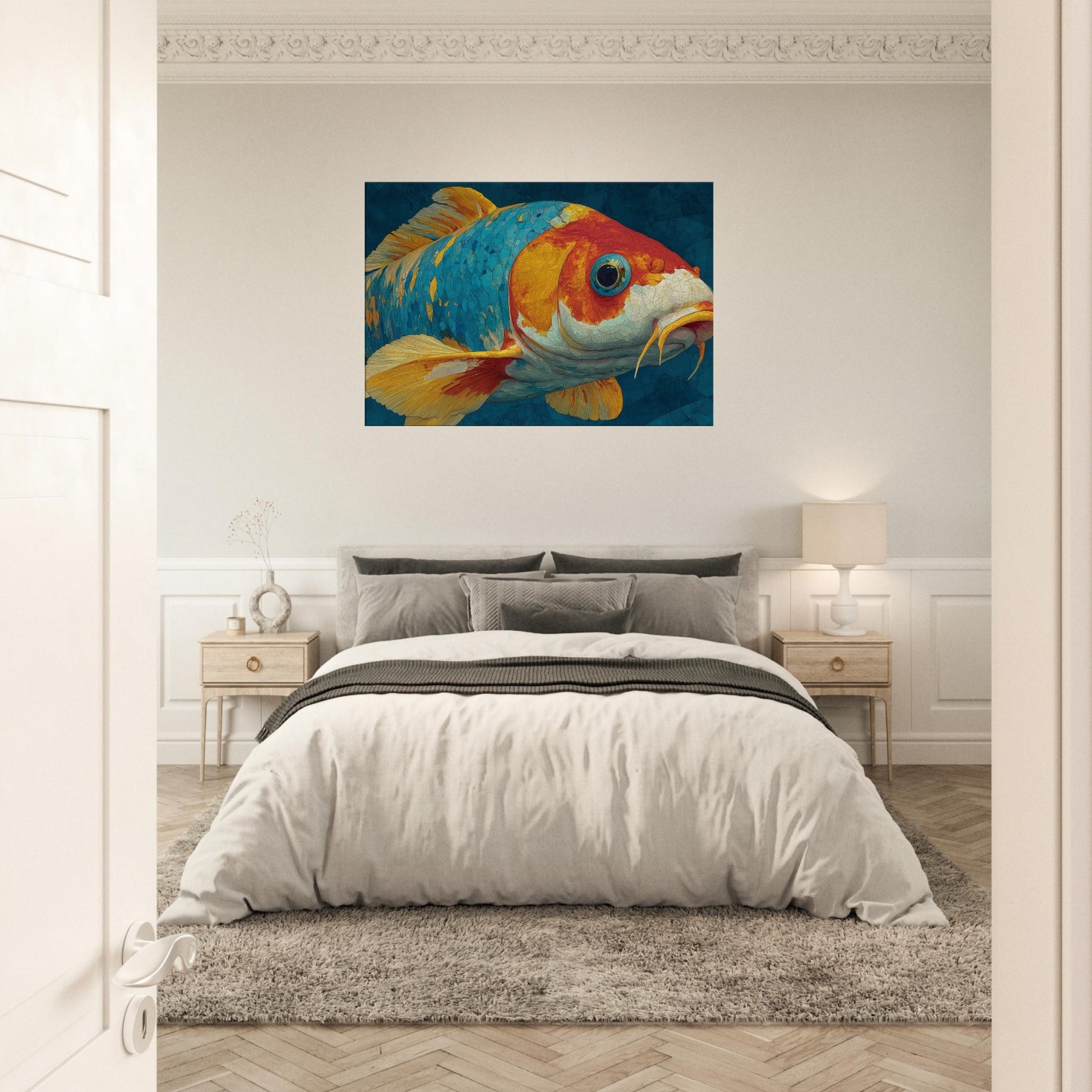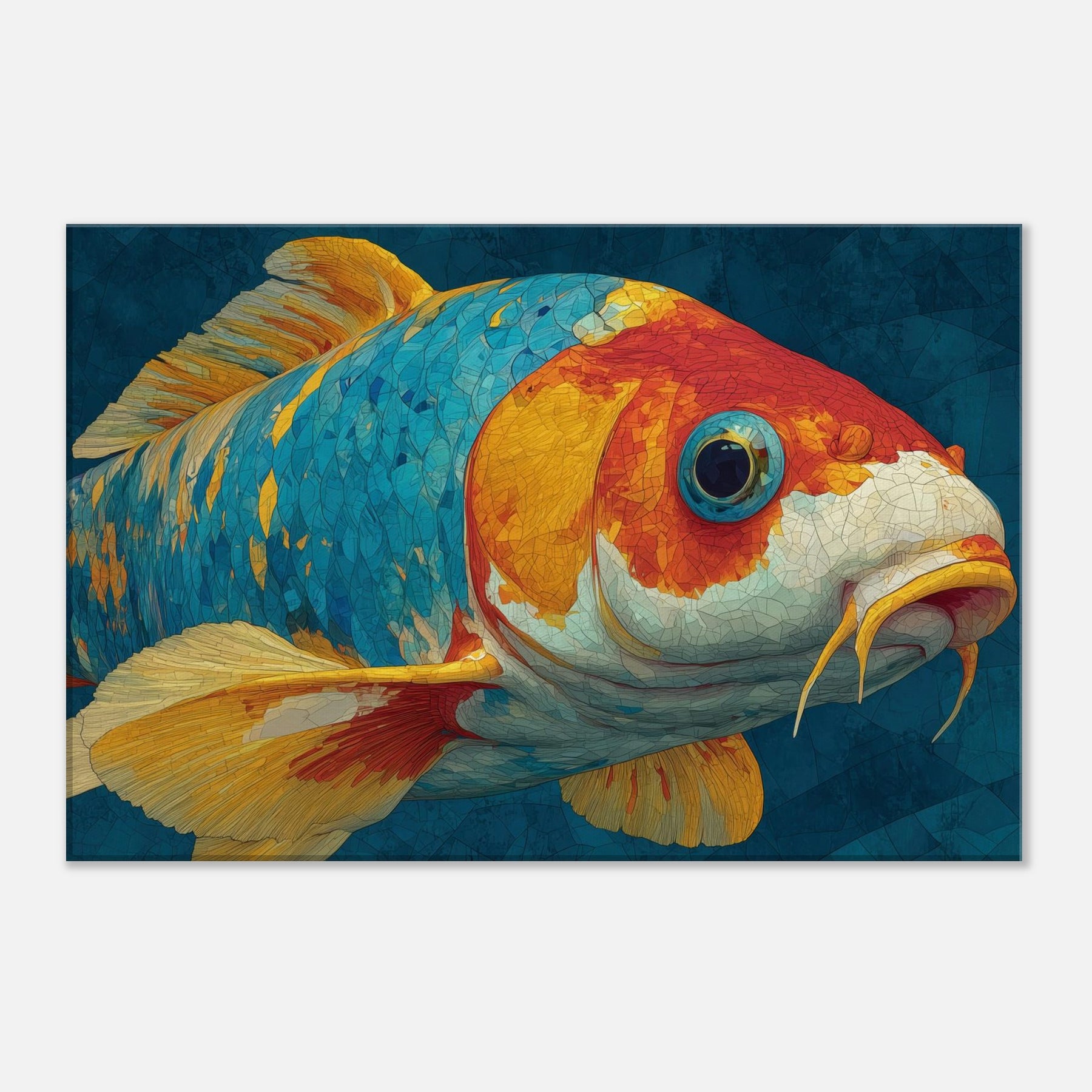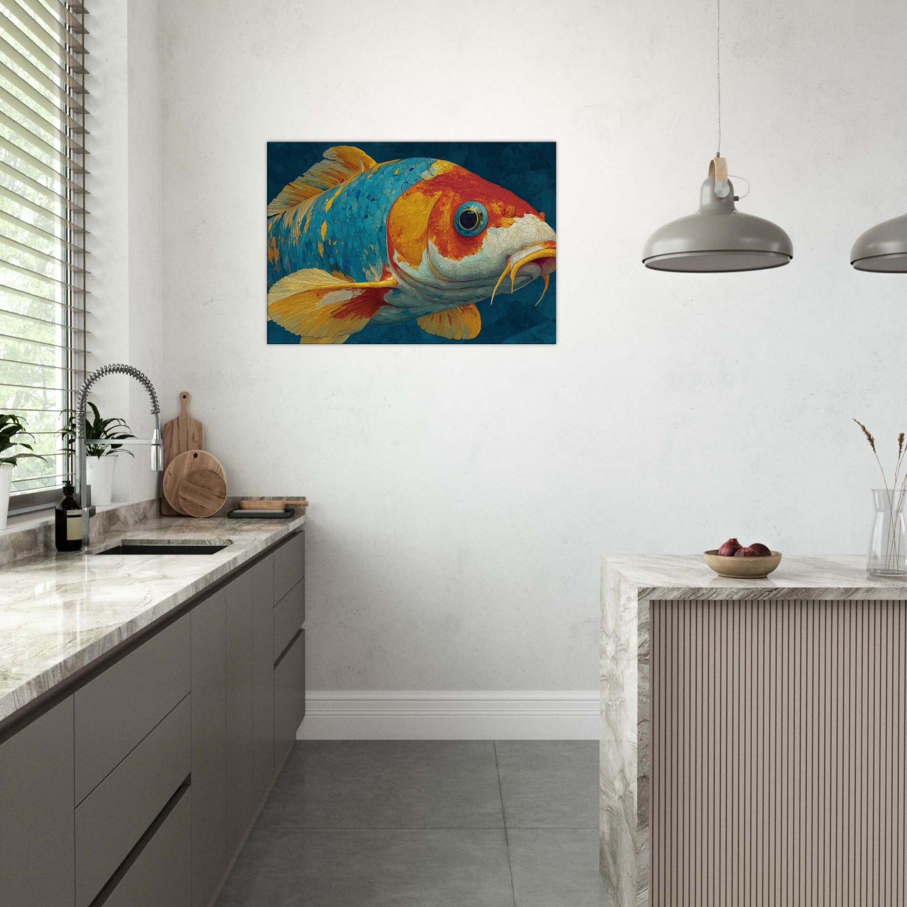 Immerse your space in the luminous pulse of a Koi Fish captured in abstract form. This painting swirls with electric blues and molten oranges, each tile like fragment catching light and echoing a tranquil current. The piece invites a meditative gaze, turning a wall into a living window where energy and calm coexist. Ideal for a serene corner or a bold focal point, it elevates mood with graceful movement and refined color an ode to vitality in flightlike harmony.