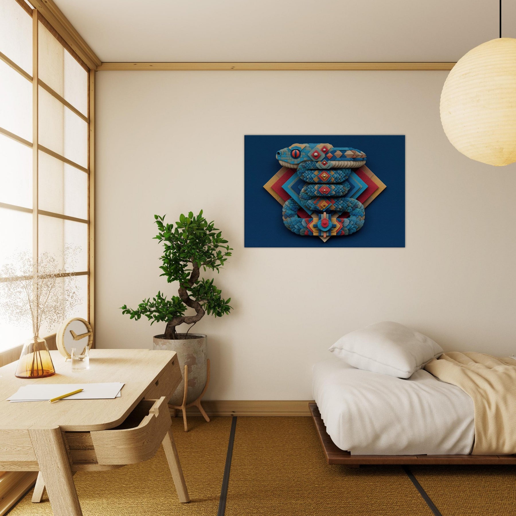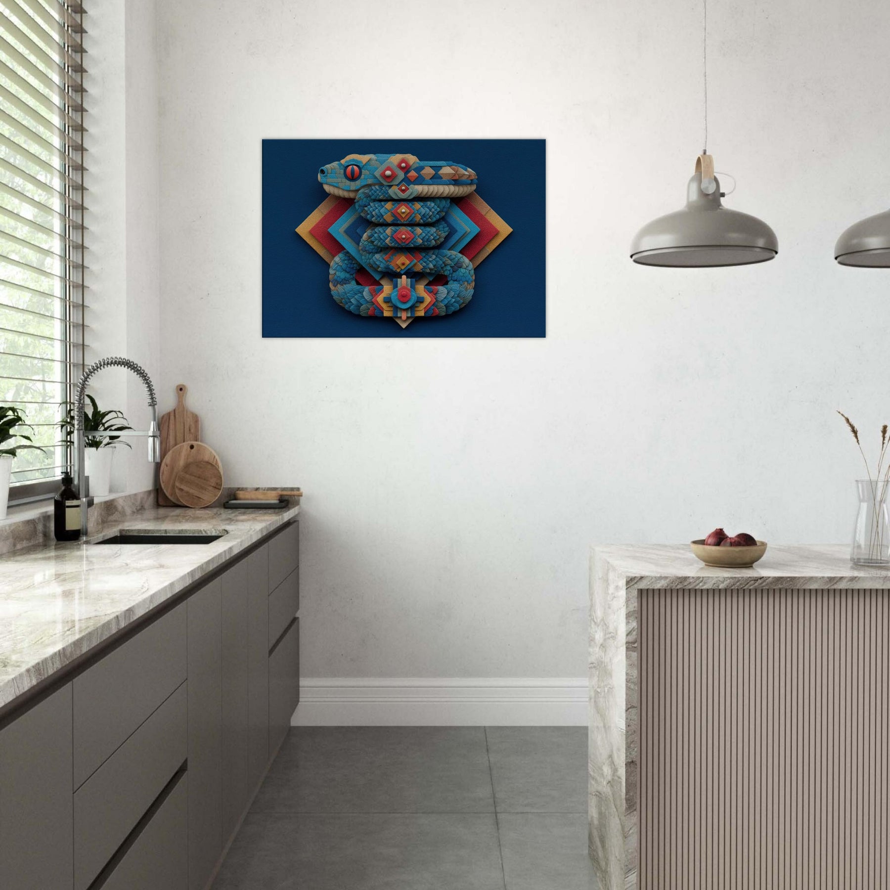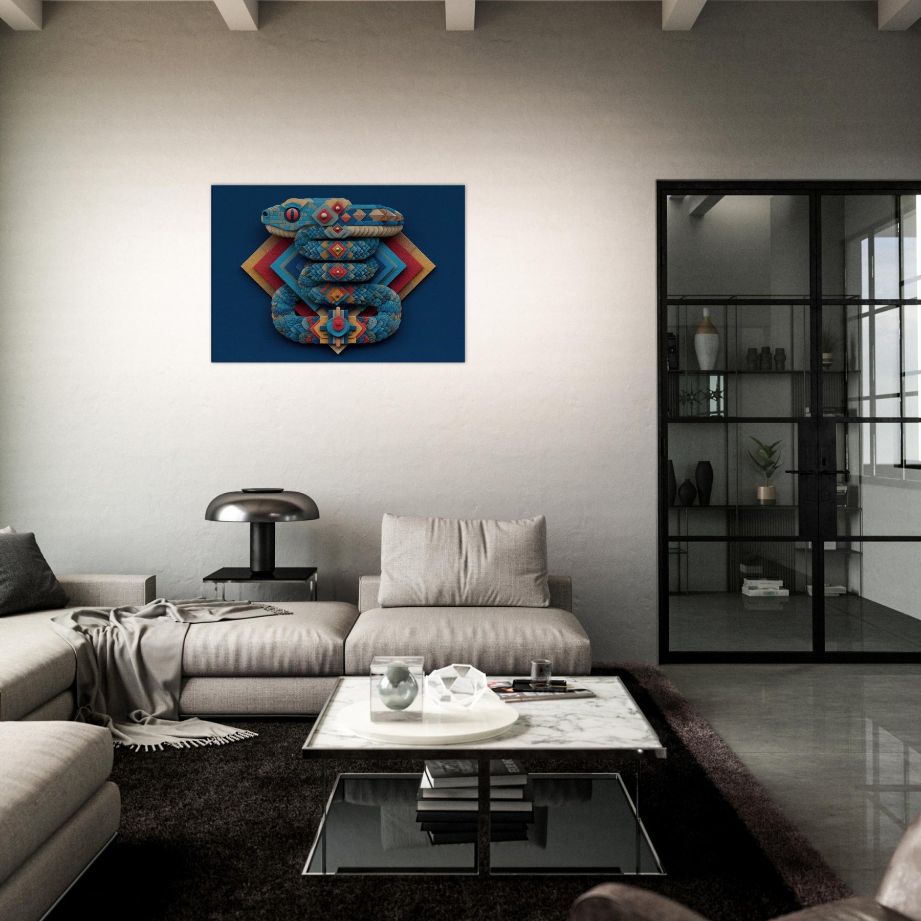 Let this piece drape your space in liquid dusk and electric breath. The Kundalini Serpent coils through a forest of textured geometry, its scales of teal, cobalt, and sun warmed ochre catching light and your gaze. The atmosphere hums with mystic energy, inviting quiet reflection in a living room or study. A tactile, architectural rhythm echoes in every corner, turning walls into a sanctuary where color, form, and intention rise together.