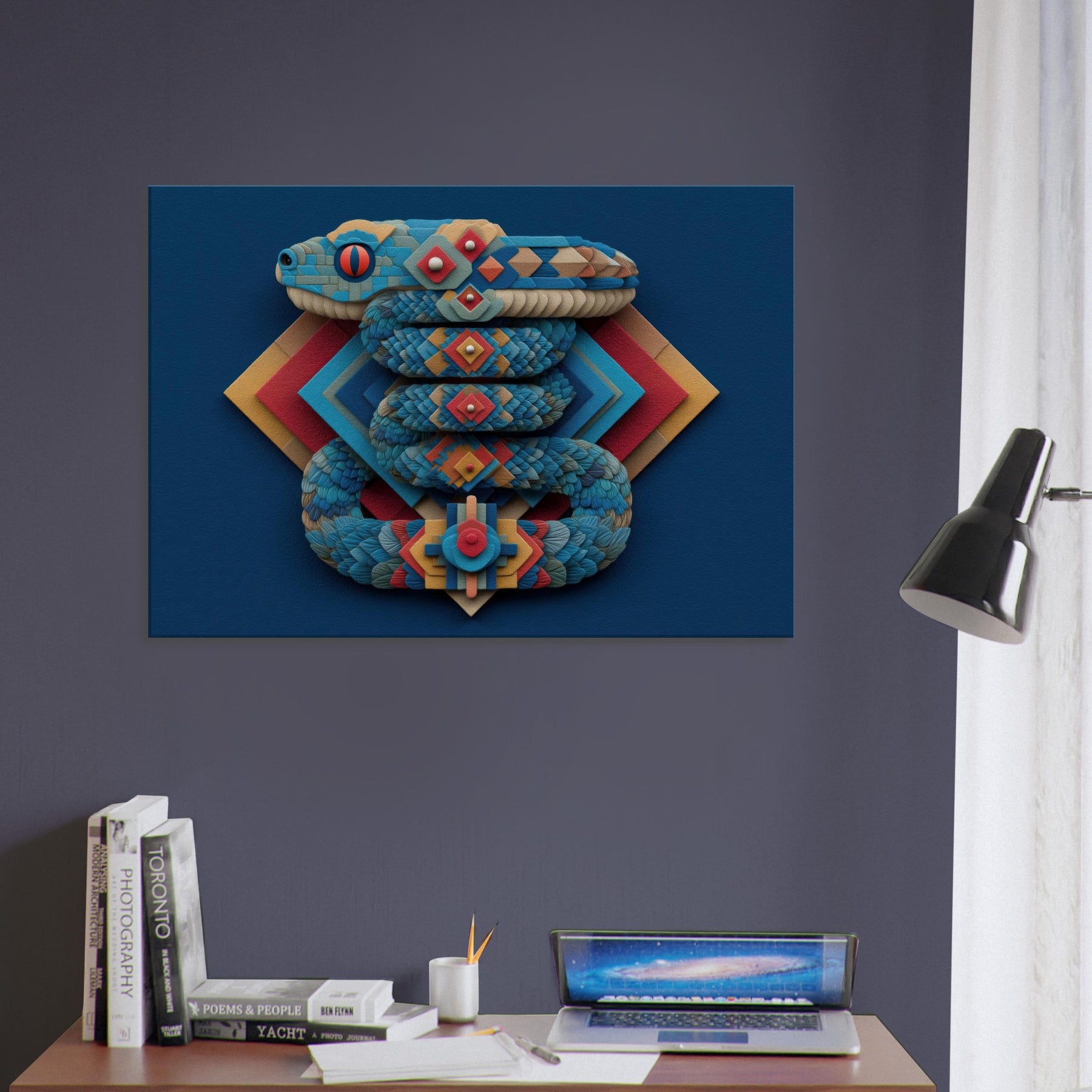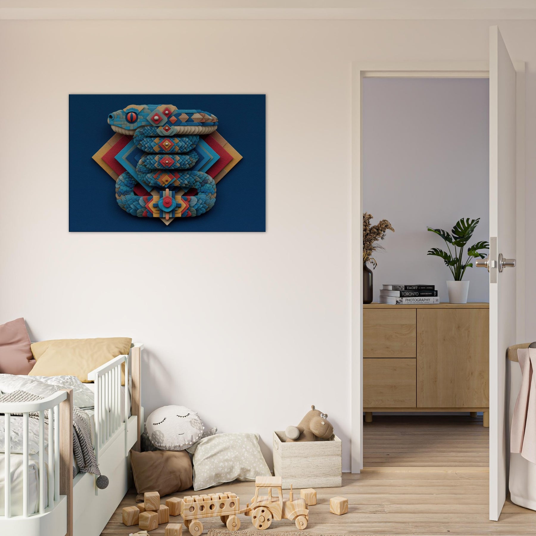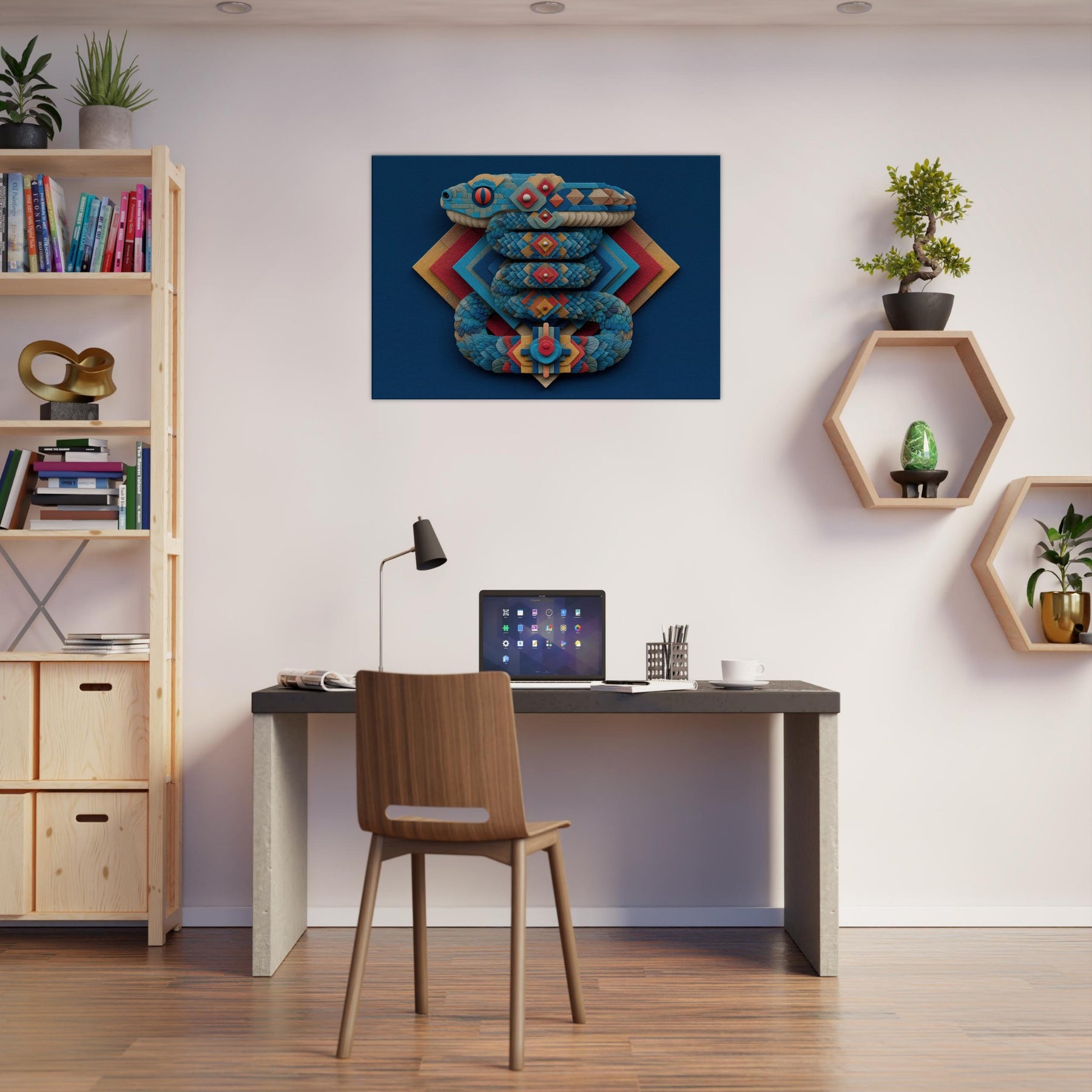 Let this piece drape your space in liquid dusk and electric breath. The Kundalini Serpent coils through a forest of textured geometry, its scales of teal, cobalt, and sun warmed ochre catching light and your gaze. The atmosphere hums with mystic energy, inviting quiet reflection in a living room or study. A tactile, architectural rhythm echoes in every corner, turning walls into a sanctuary where color, form, and intention rise together.