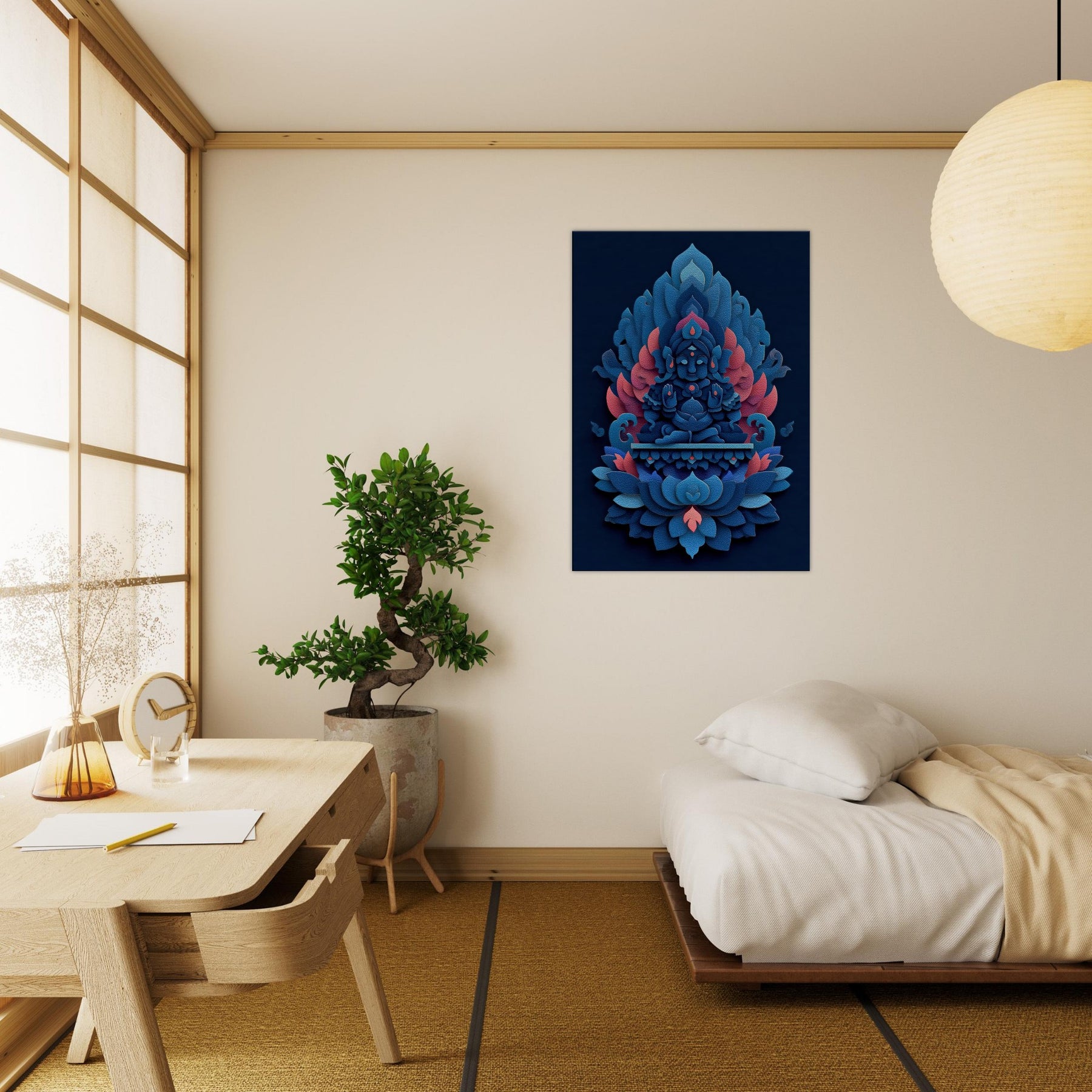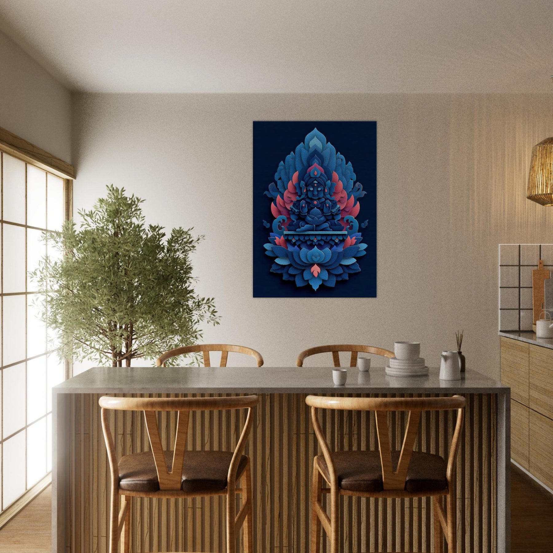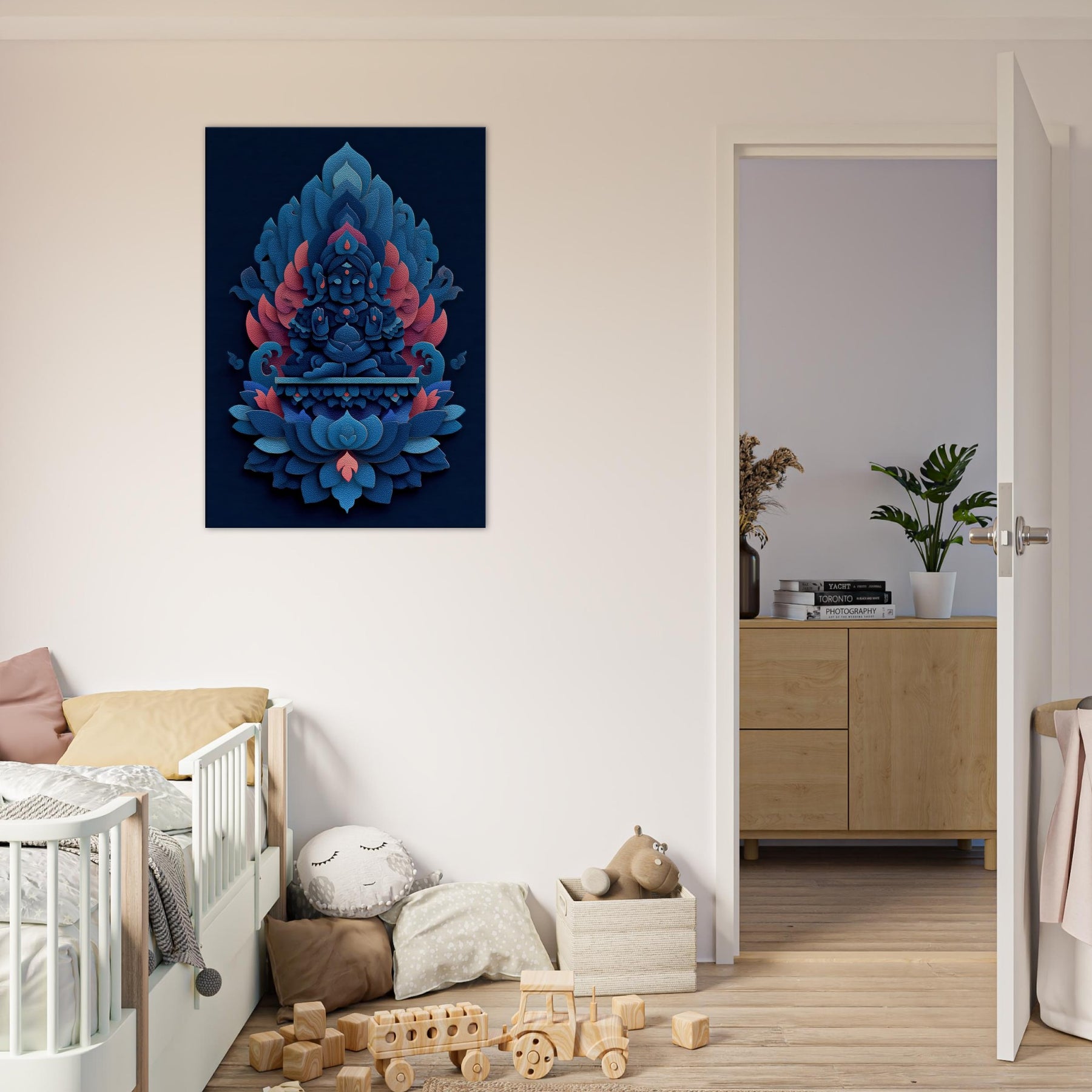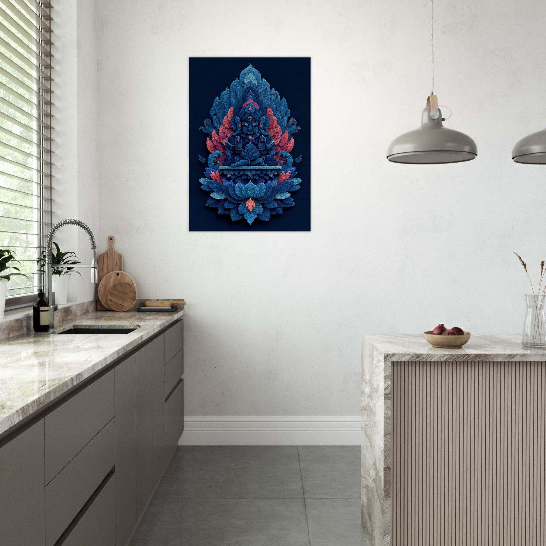 Invite the serenity of Lakshmi into your living space with this sculptural wall art. A graceful bloom of lotus petals in cool blues, punctuated by blush pink, unfolds in a ritual of light and texture. The piece exudes abundance and calm, its layered tones catching and refracting warmth to soften walls and invite quiet reflection. Perfect above a sofa or mantel, it lends a mystical, luxurious glow that elevates everyday moments into ceremony.