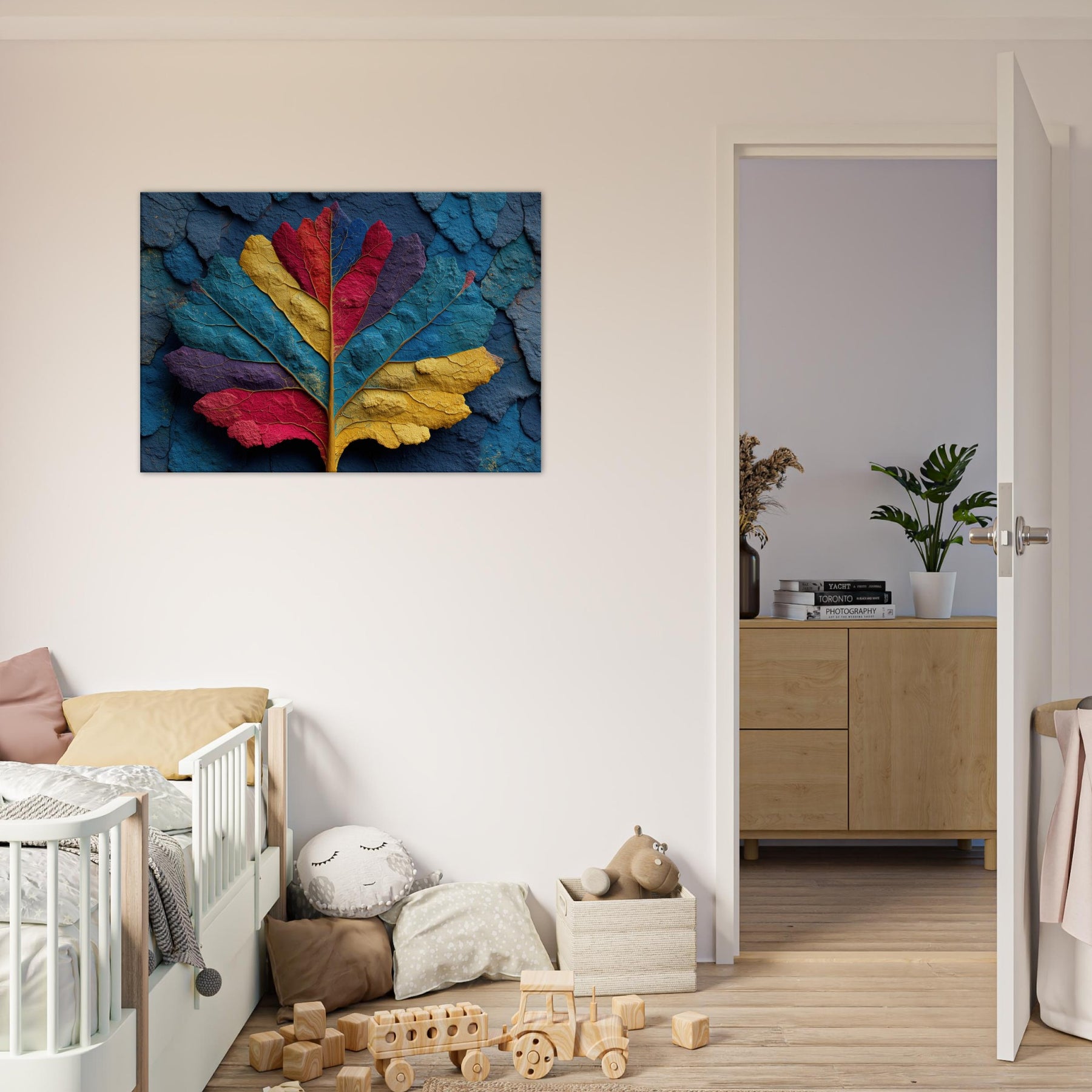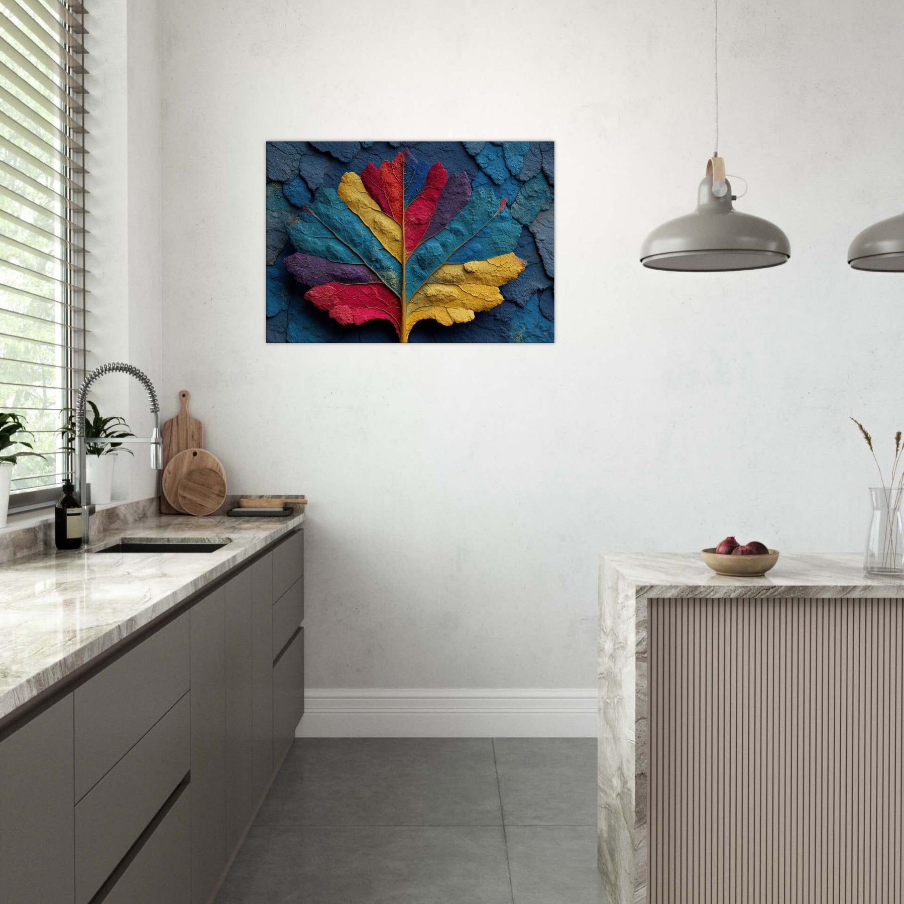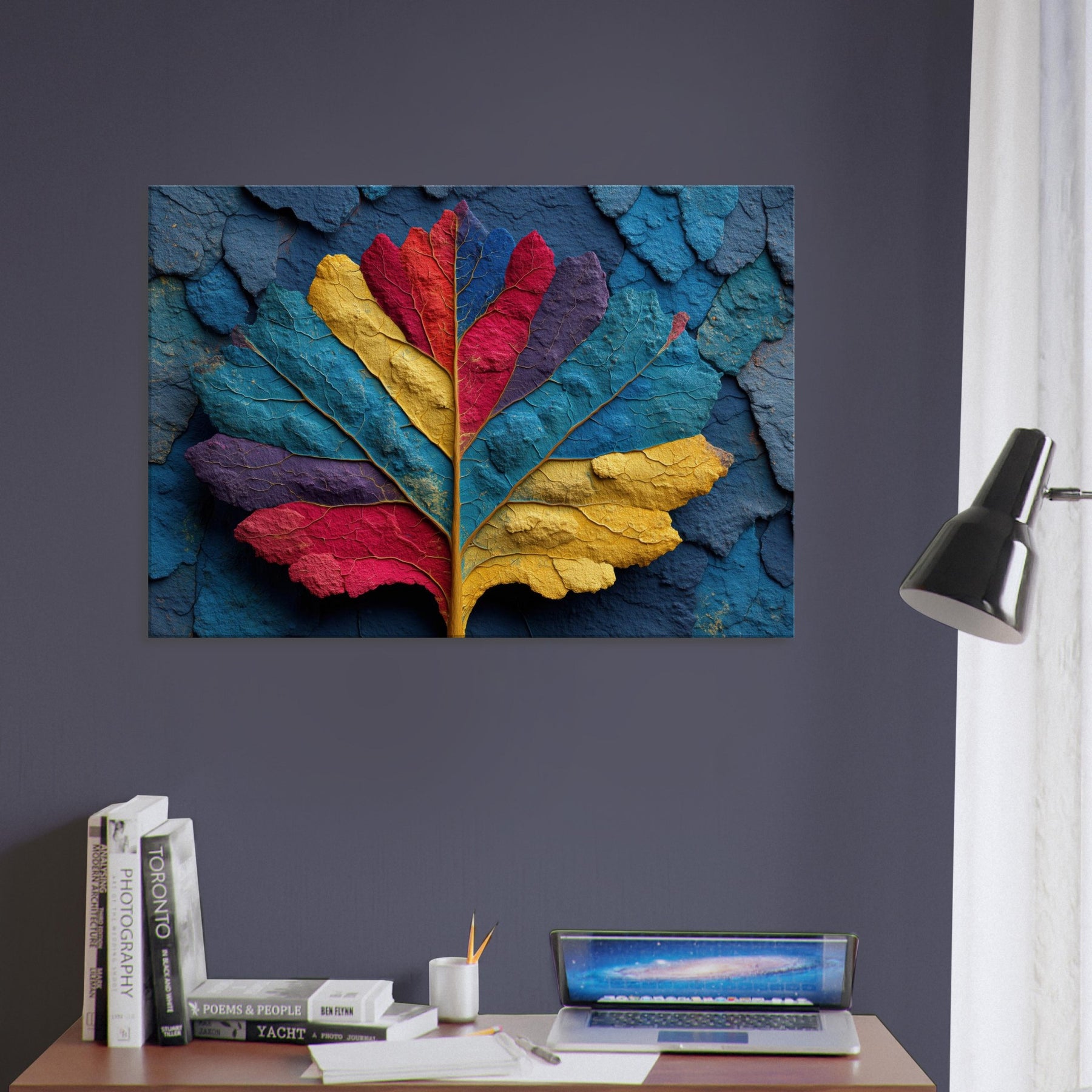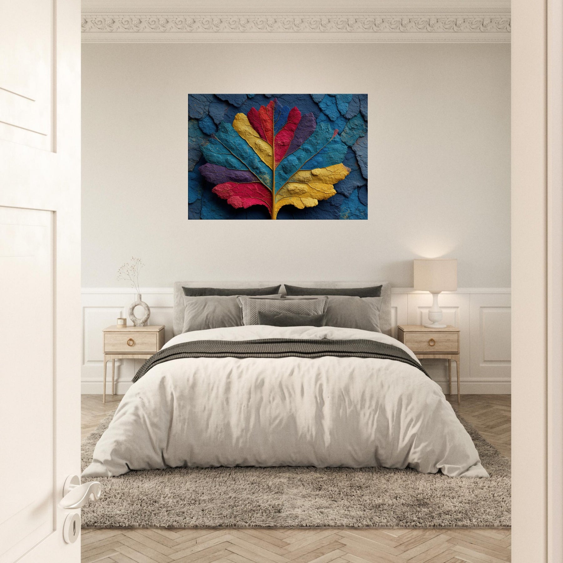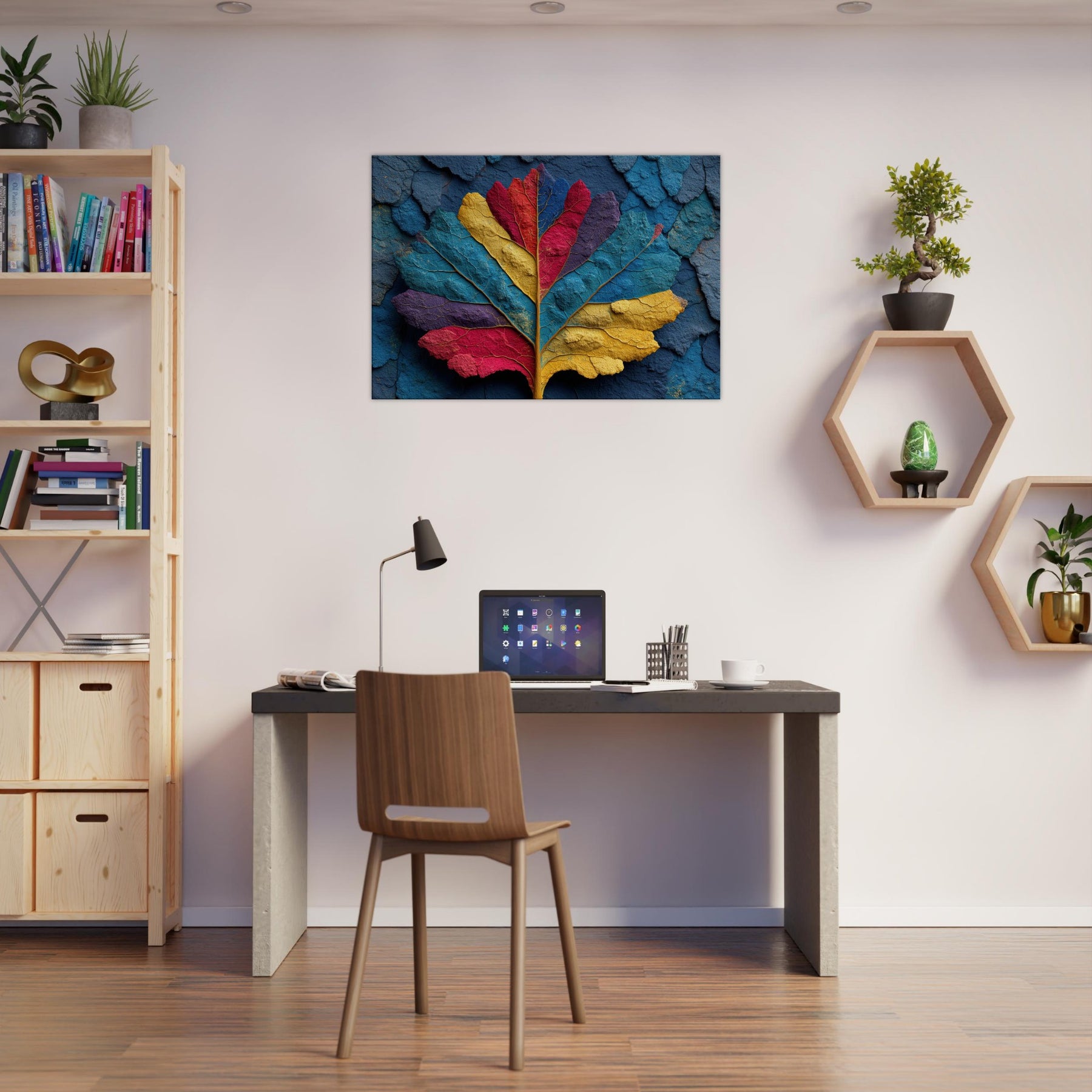 Mystical energy meets modern restraint in this Bodhi Leaf composition. Layers of saturated color radiate from a central vein, like a whispered mantra that settles into the room. The abstract sensibility turns a single botanical form into a dreamscape, inviting slow breaths and gentle focus. Hung in a living room or study, it casts a luminous, ever changing mood, calming yet electric, as if the air itself were soft with incense and dusk. A versatile centerpiece for mindful, contemporary interiors.