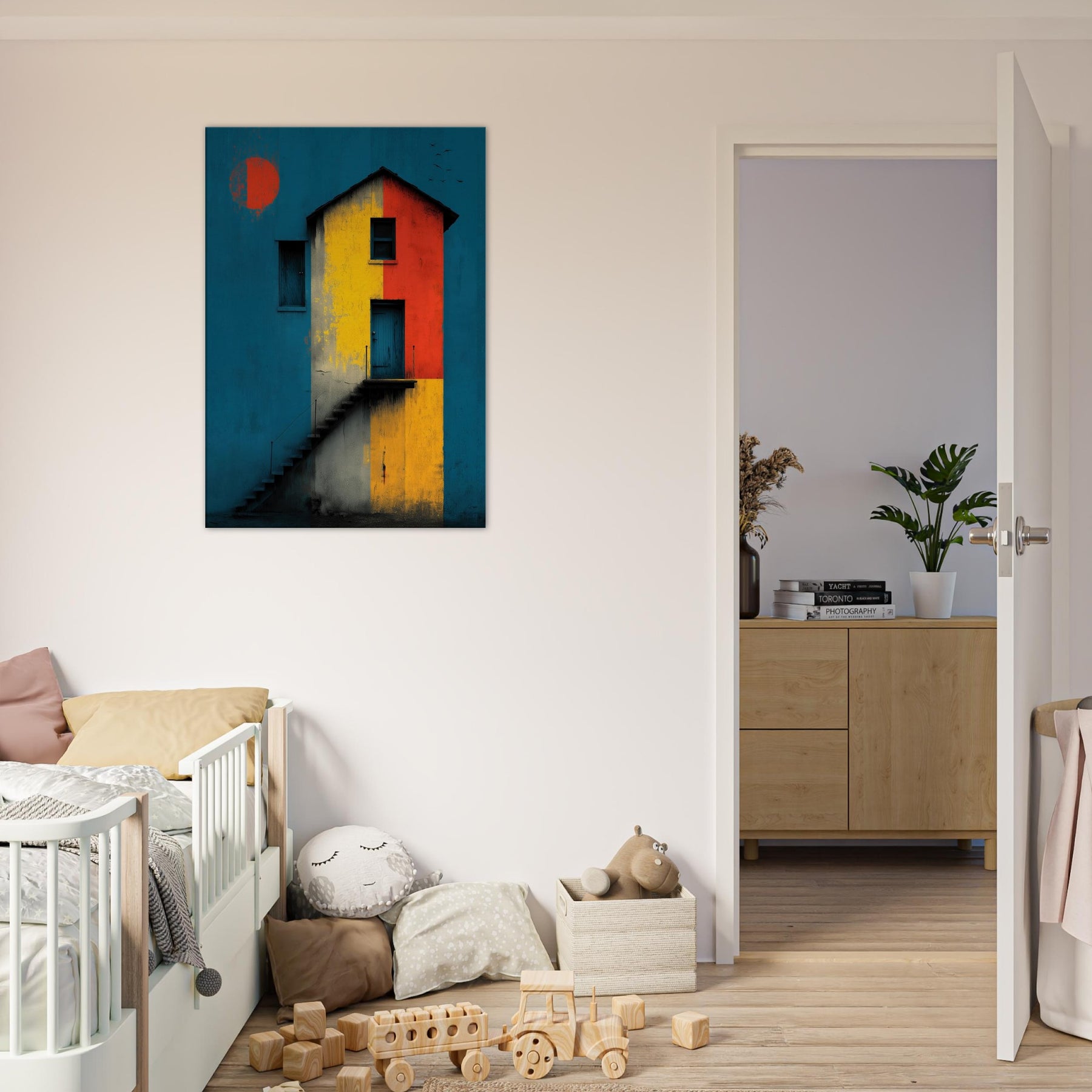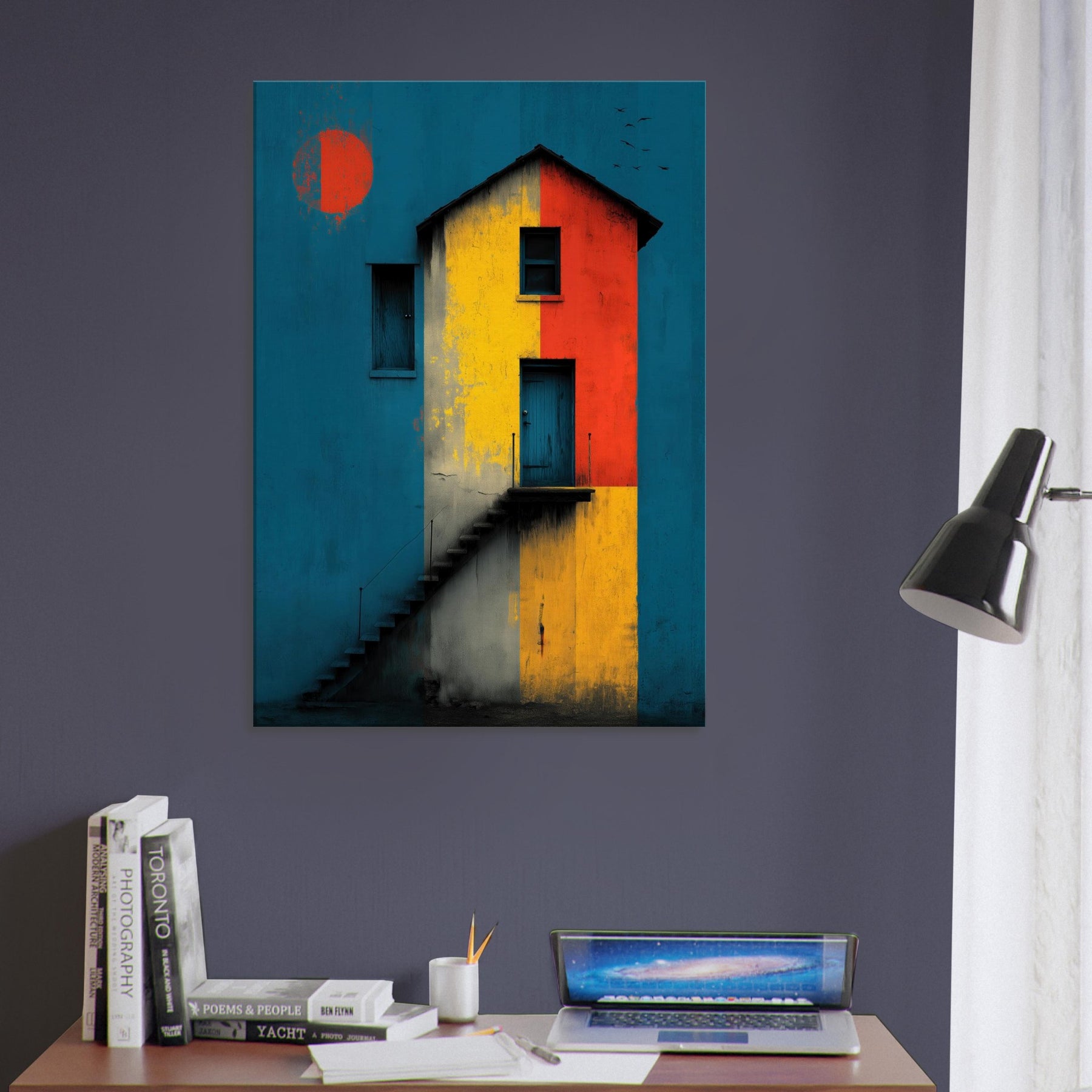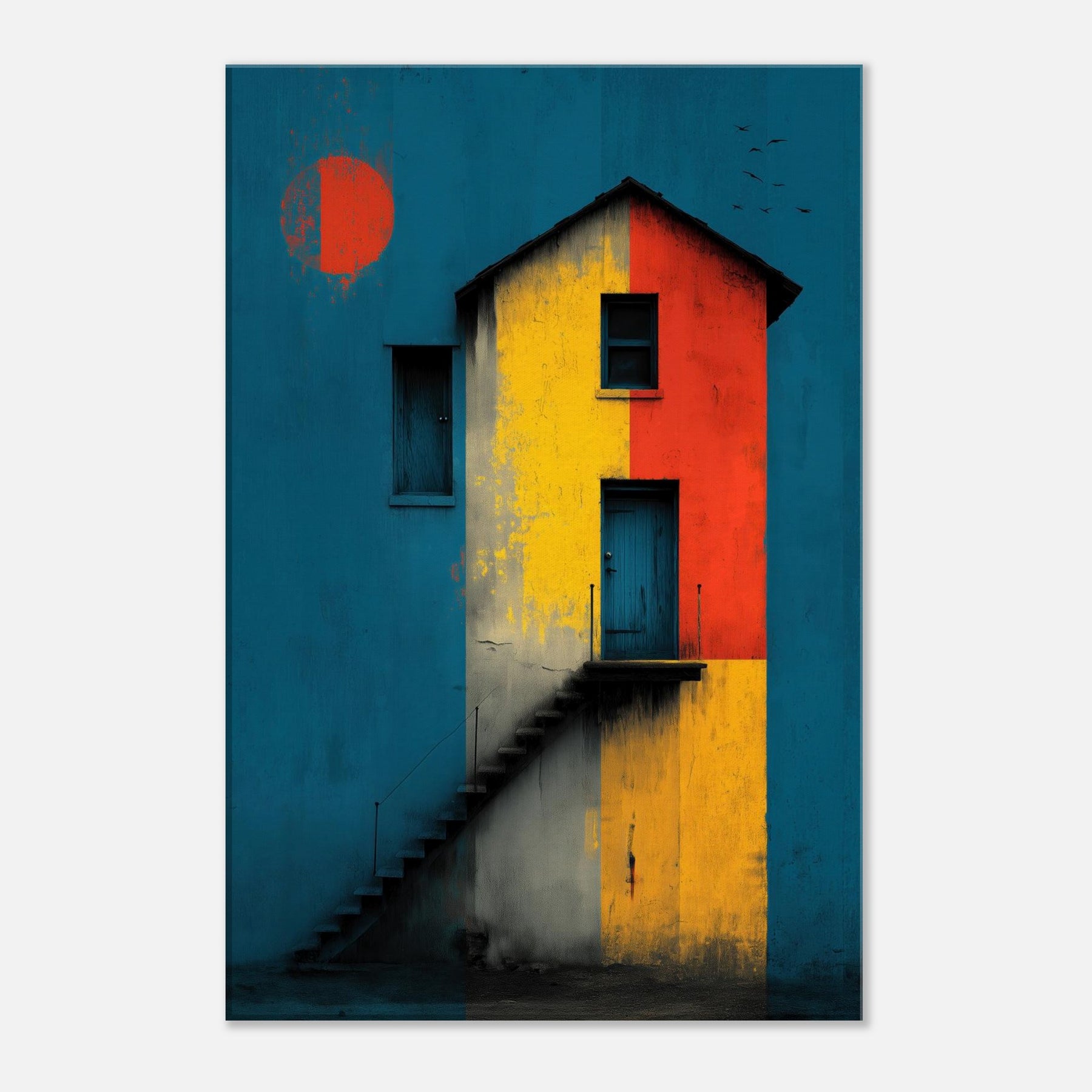 Step closer to a shoreline of color where a lighthouse emerges from a field of bold blocks. This abstract composition conjures salt breeze and twilight lamps, turning architecture into a meditative encounter. The lighthouse stands as a beacon across a canvas of teal, ochre, and crimson, inviting quiet contemplation while lending drama to a living room or study. Its layered textures echo weathered plaster and salt stung walls, so each glance reveals new light, new mood, and a daily voyage home.