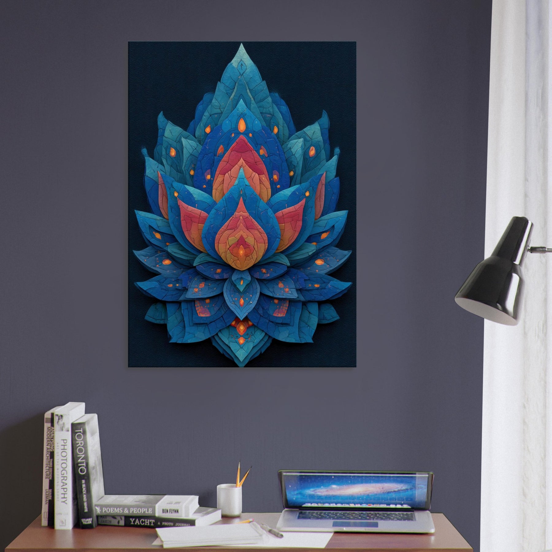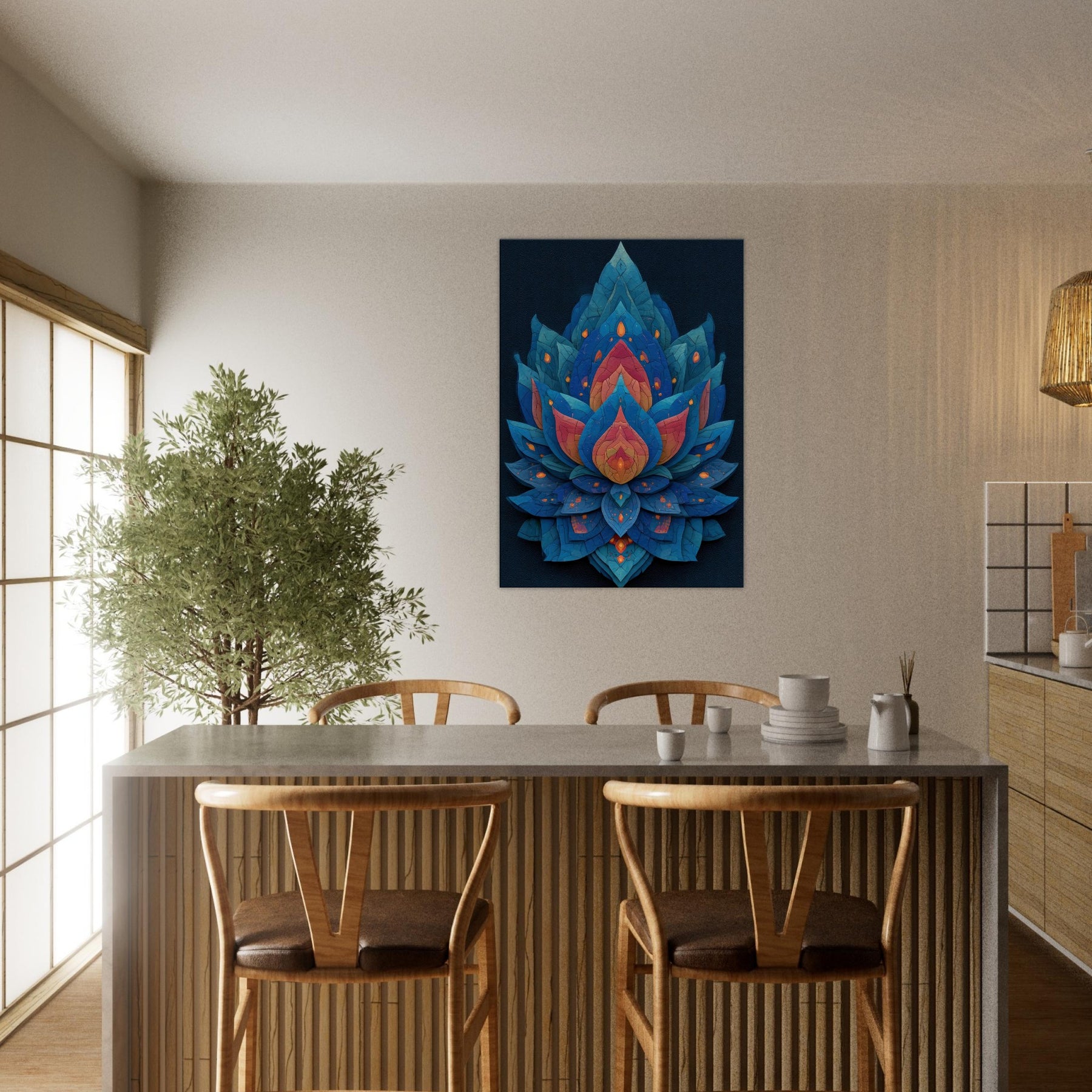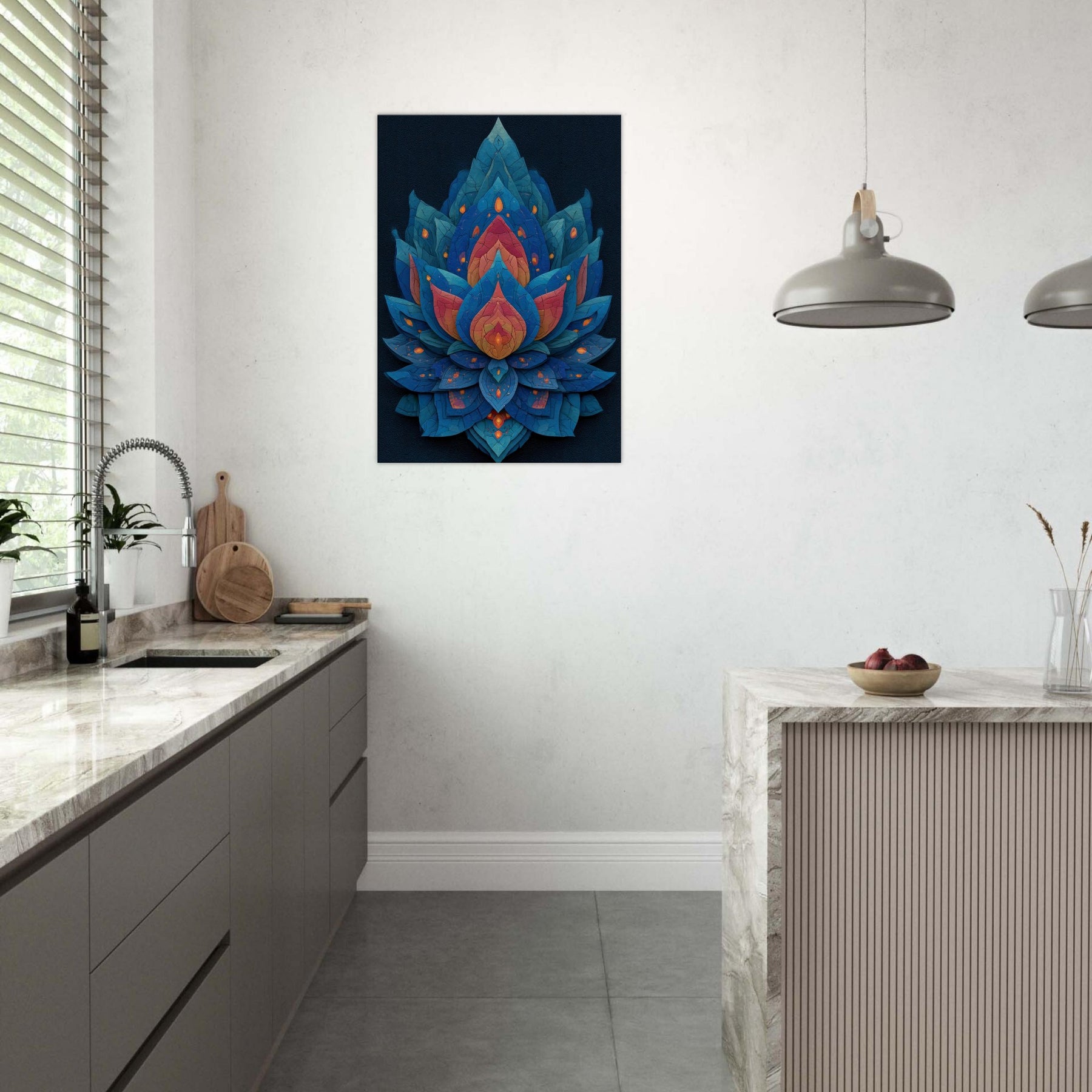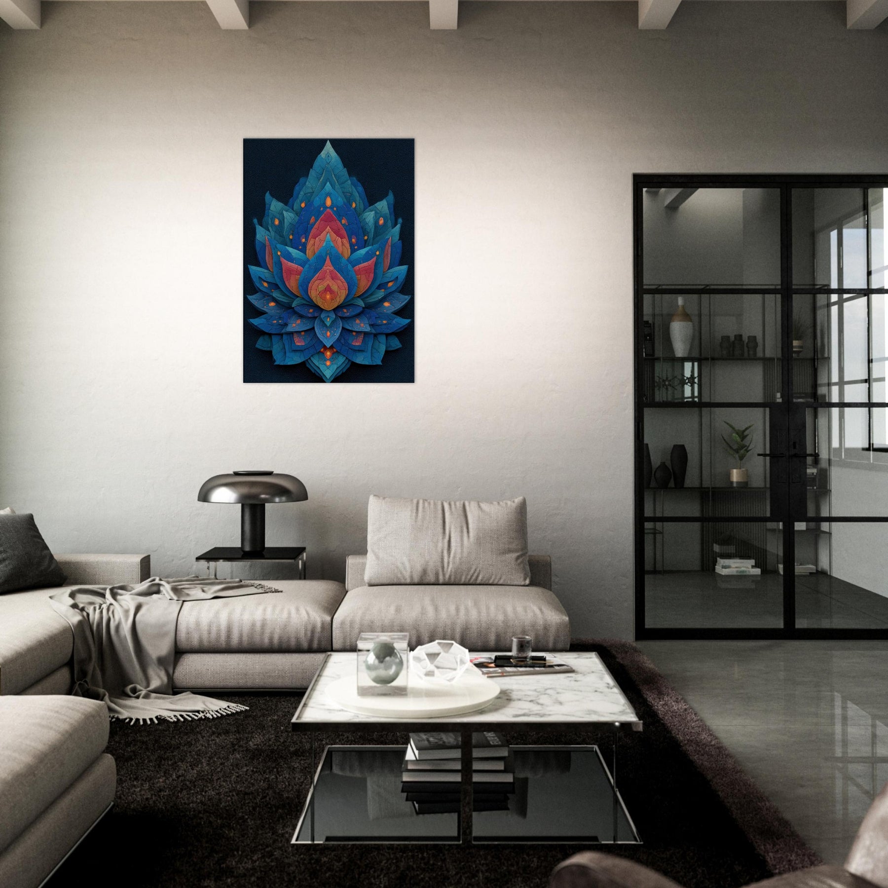 Step into a sanctuary of color where the Lotus Throne rises with a quiet, radiant authority. This abstractized bloom glows in electric blues and ember oranges, its layered petals stacking like a meditation on light and shadow. The atmosphere feels hushed, almost sacred, inviting slow breaths and centering the room with a soft, warm glow. Perfect above a sofa or in a focal alcove, it turns everyday space into a contemplative retreat, a living artwork that inspires quiet wonder.