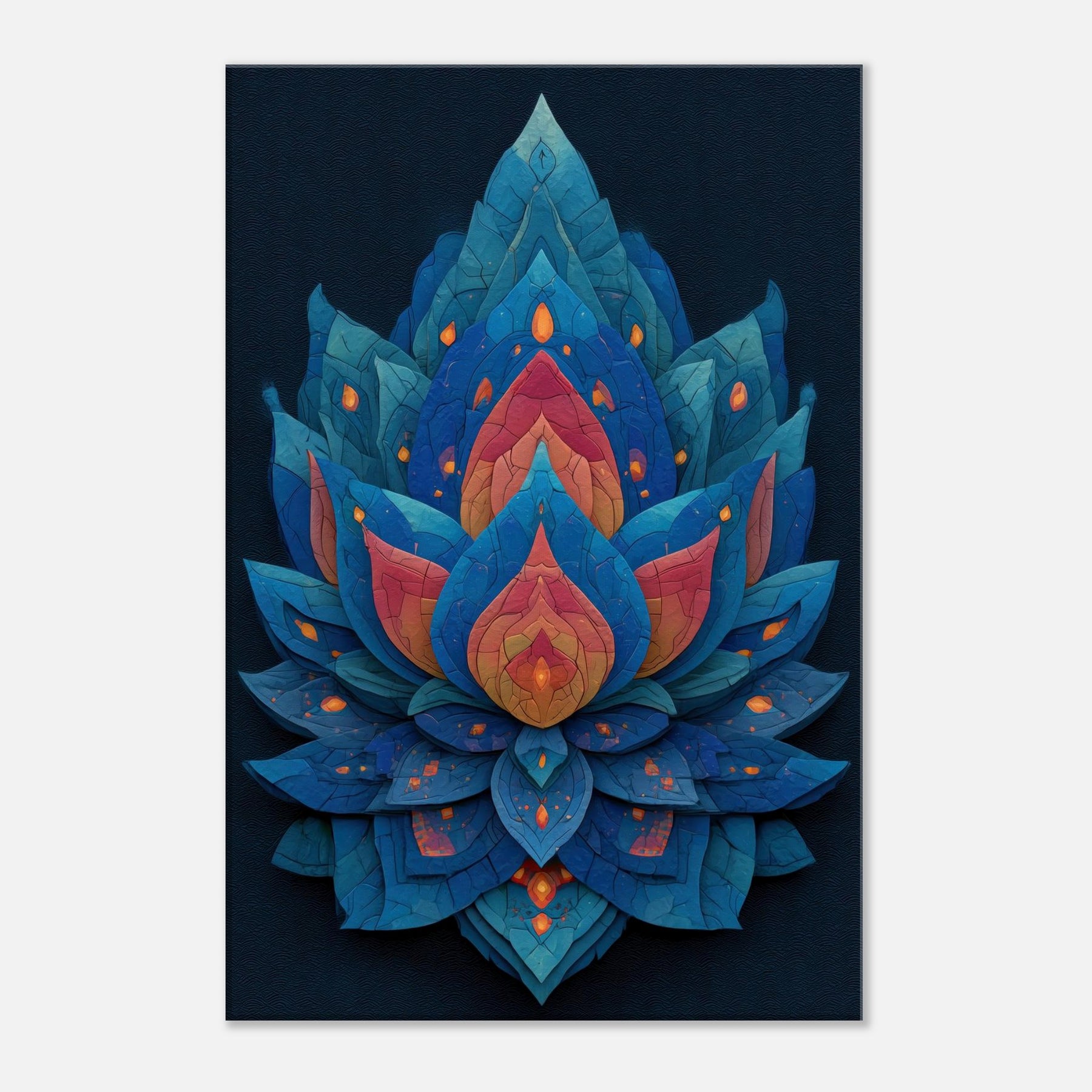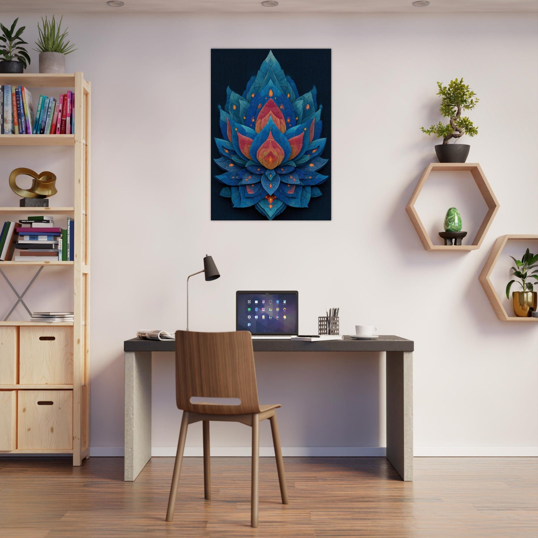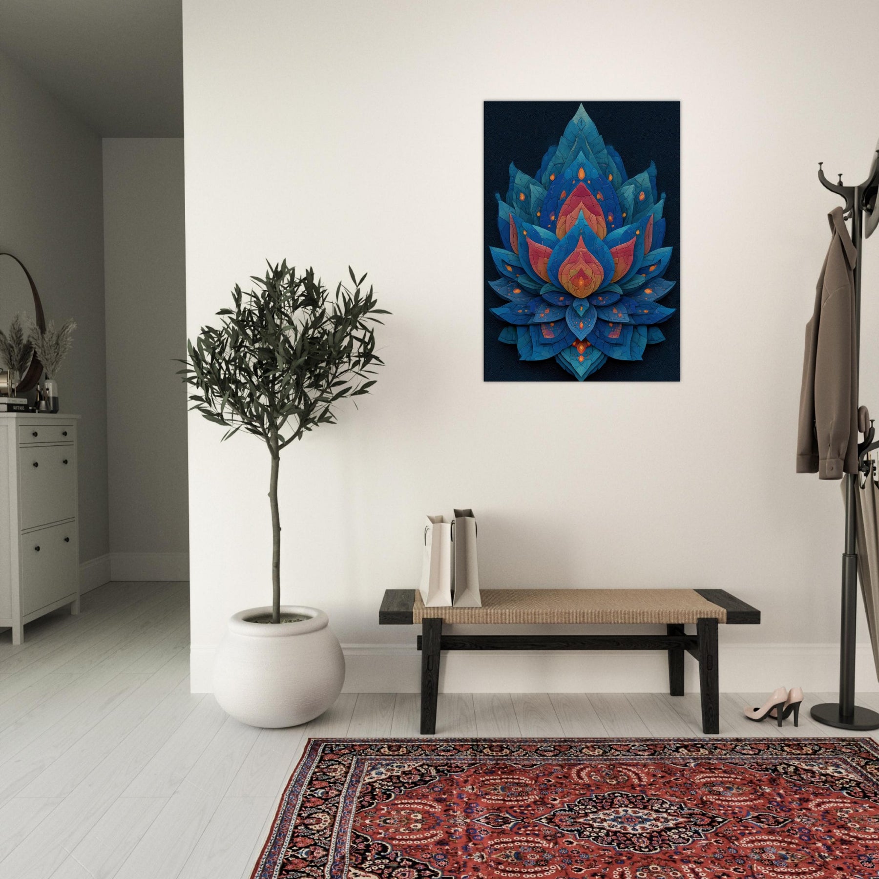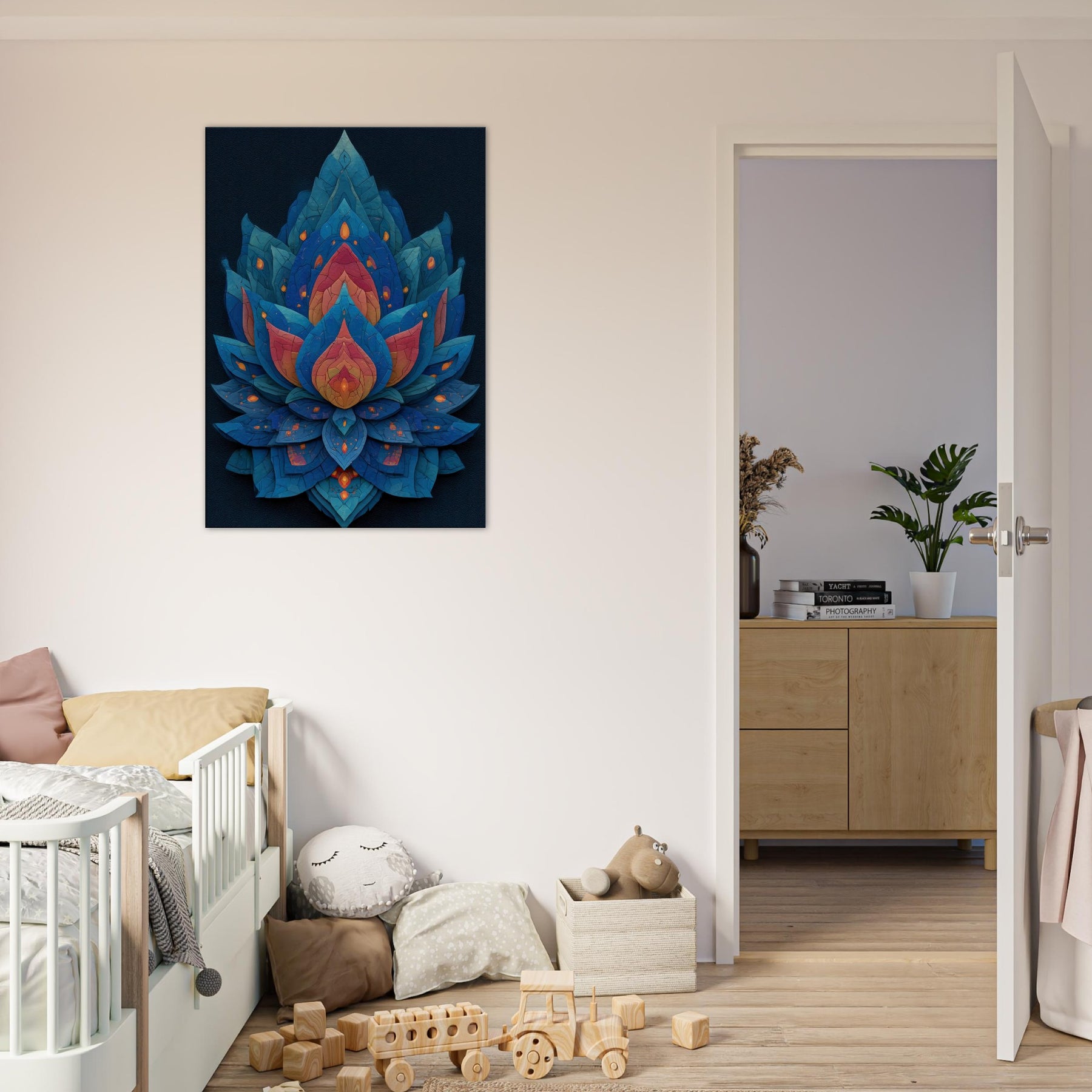 Step into a sanctuary of color where the Lotus Throne rises with a quiet, radiant authority. This abstractized bloom glows in electric blues and ember oranges, its layered petals stacking like a meditation on light and shadow. The atmosphere feels hushed, almost sacred, inviting slow breaths and centering the room with a soft, warm glow. Perfect above a sofa or in a focal alcove, it turns everyday space into a contemplative retreat, a living artwork that inspires quiet wonder.