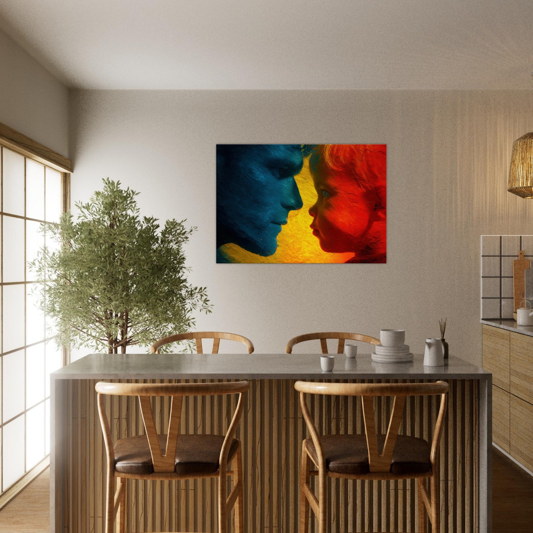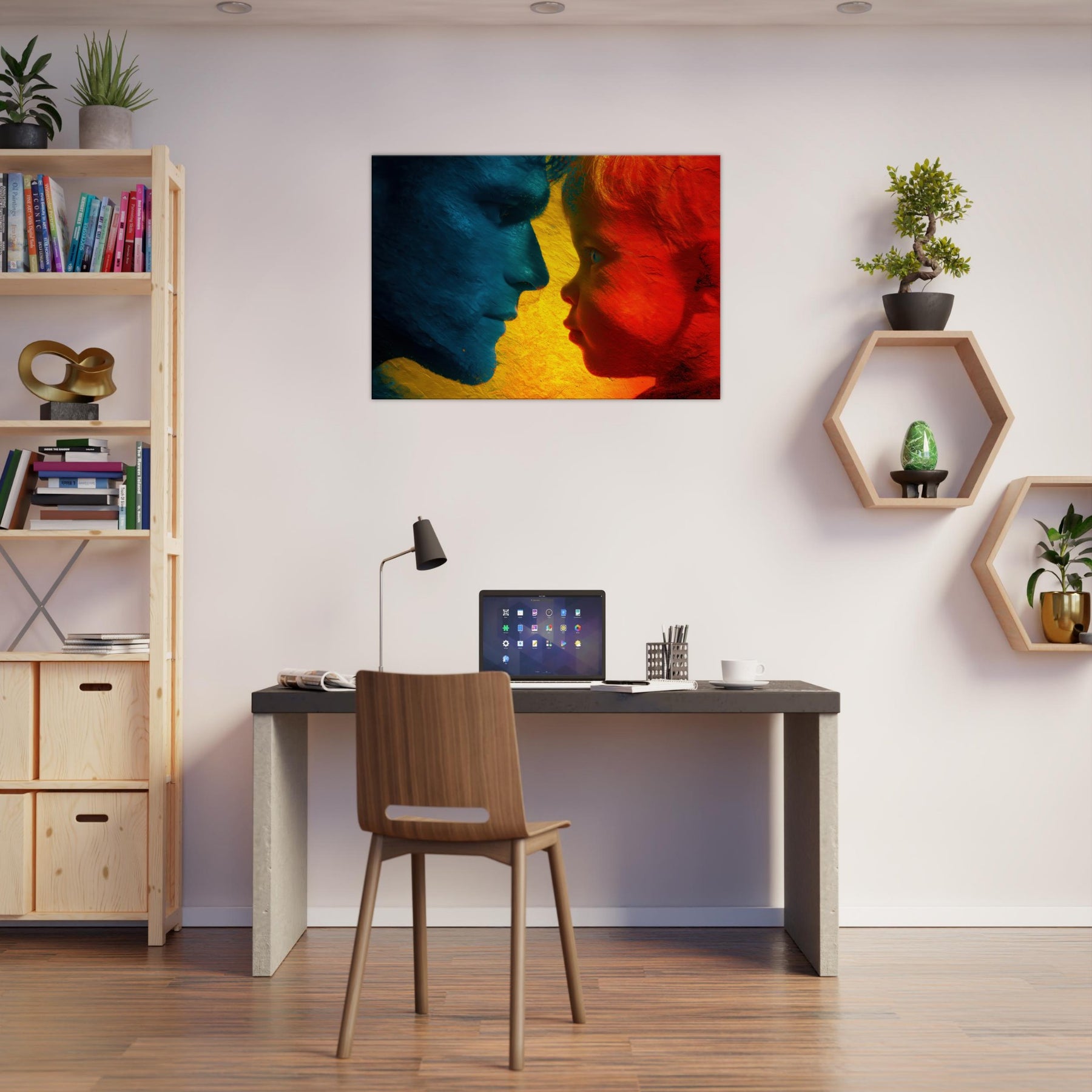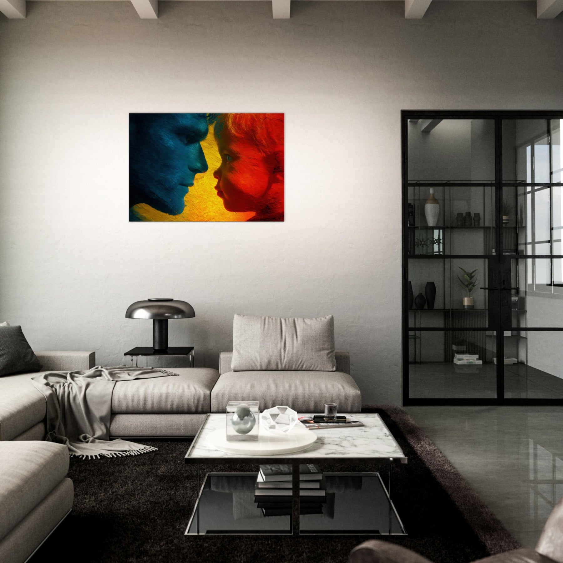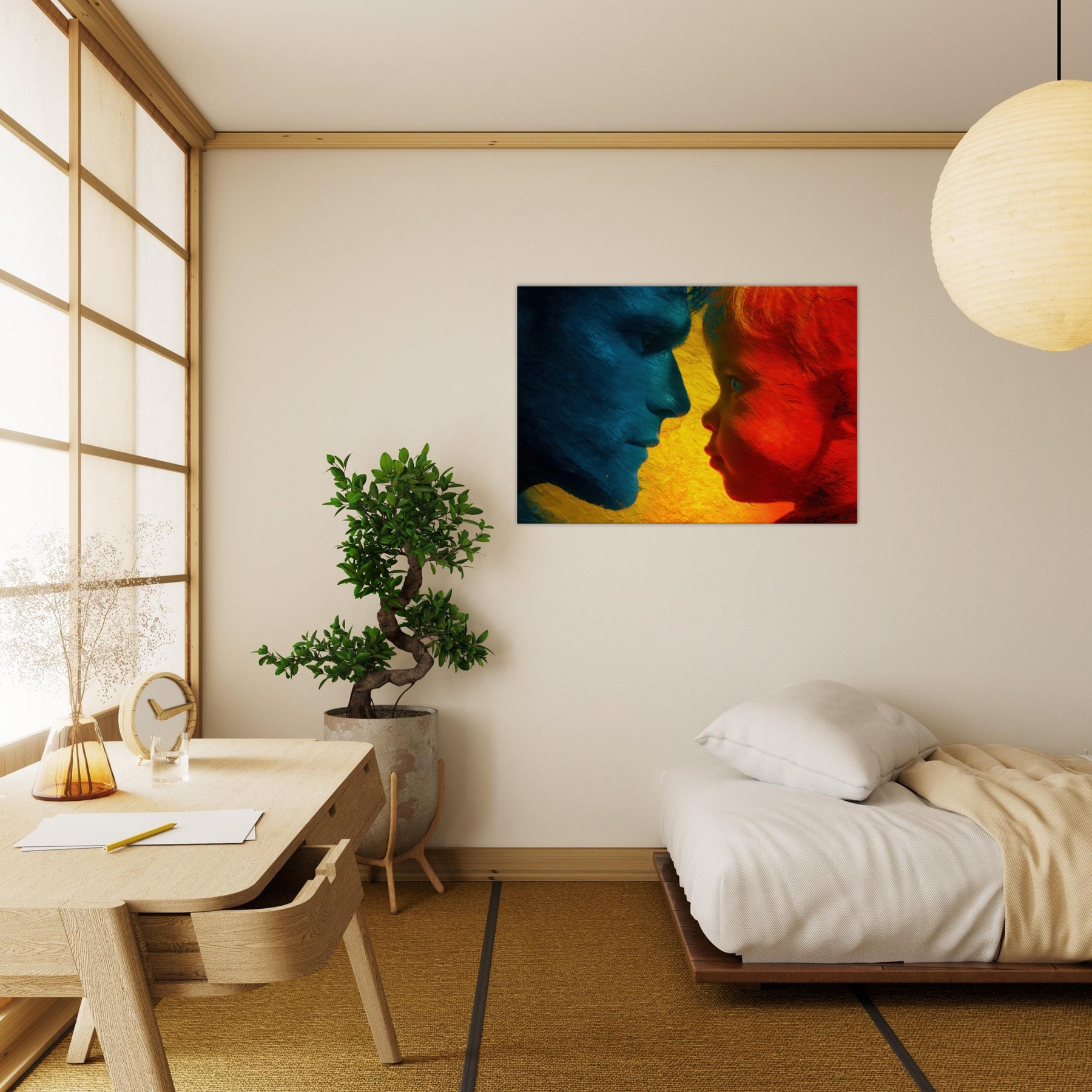 Let this abstract study of a parent and child flood your space with tenderness and tension. Through sculpted silhouettes and a daring dual palette, the moment feels both intimate and expansive, as if the room itself is listening. The piece hums with quiet energy, turning walls into a stage where connection becomes a living, breathing atmosphere. Perfect above a sofa or in a hallway, it invites slow breath, conversation, and a sense of belonging in any home.