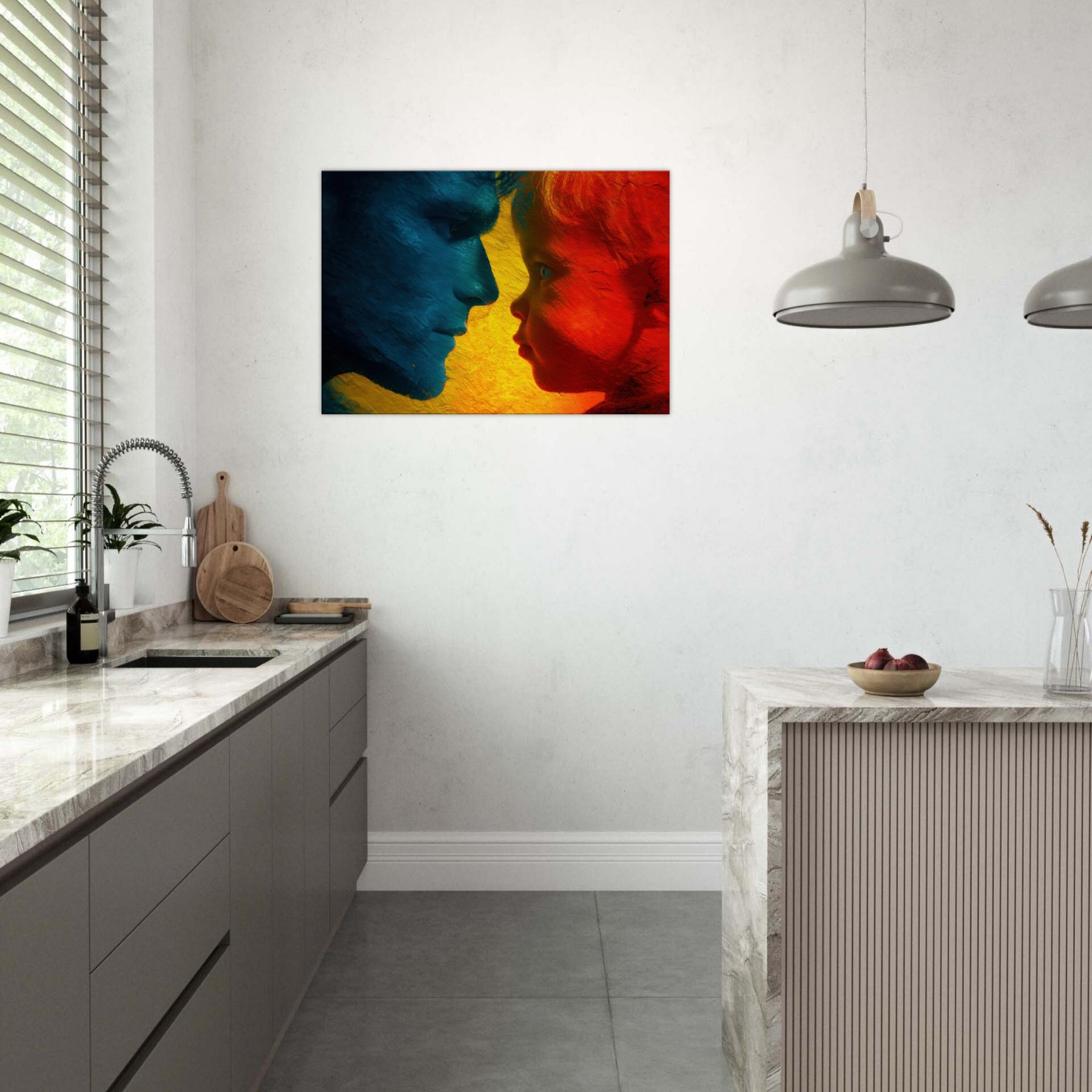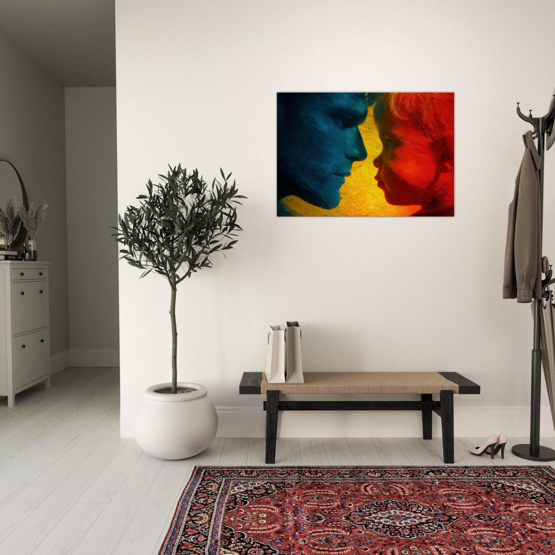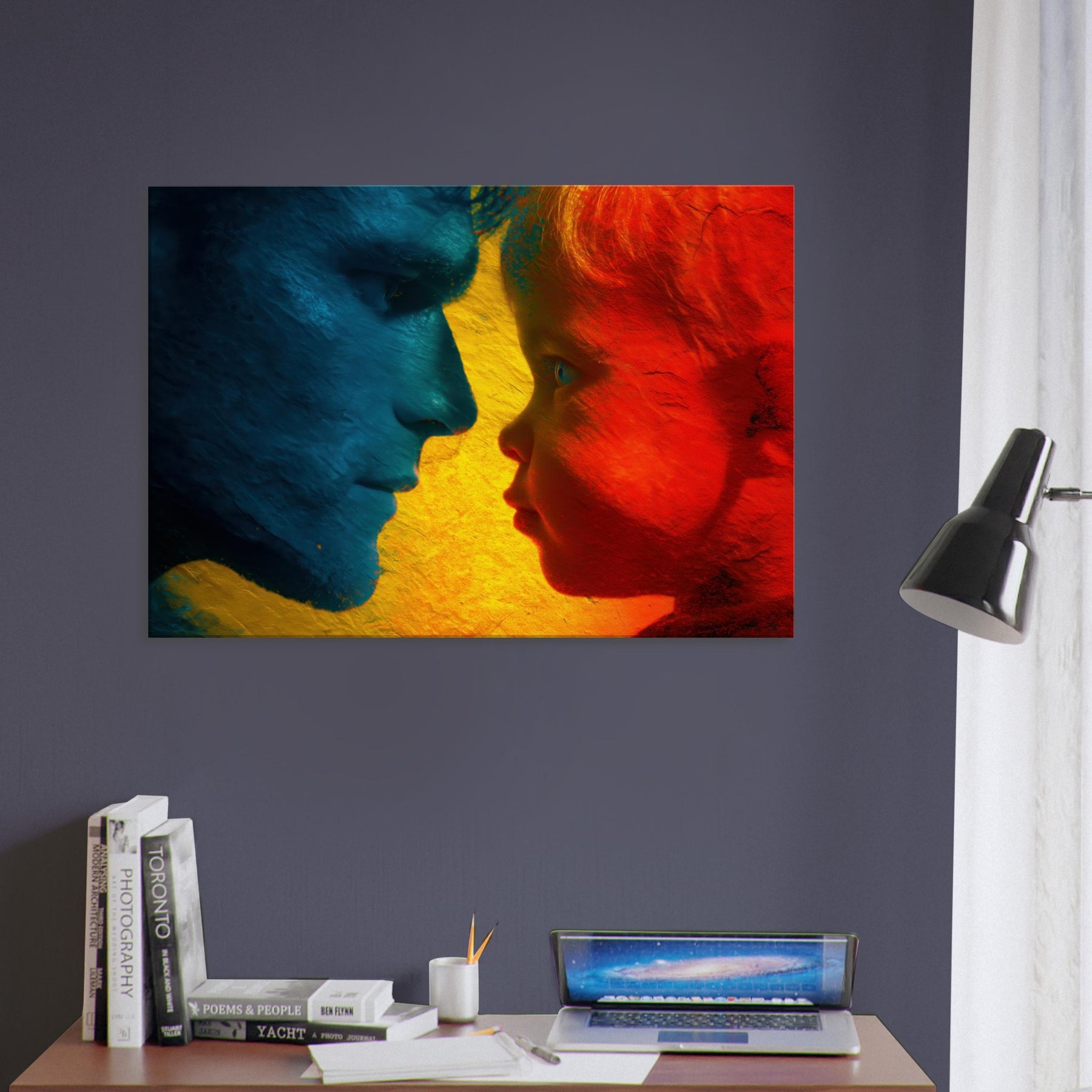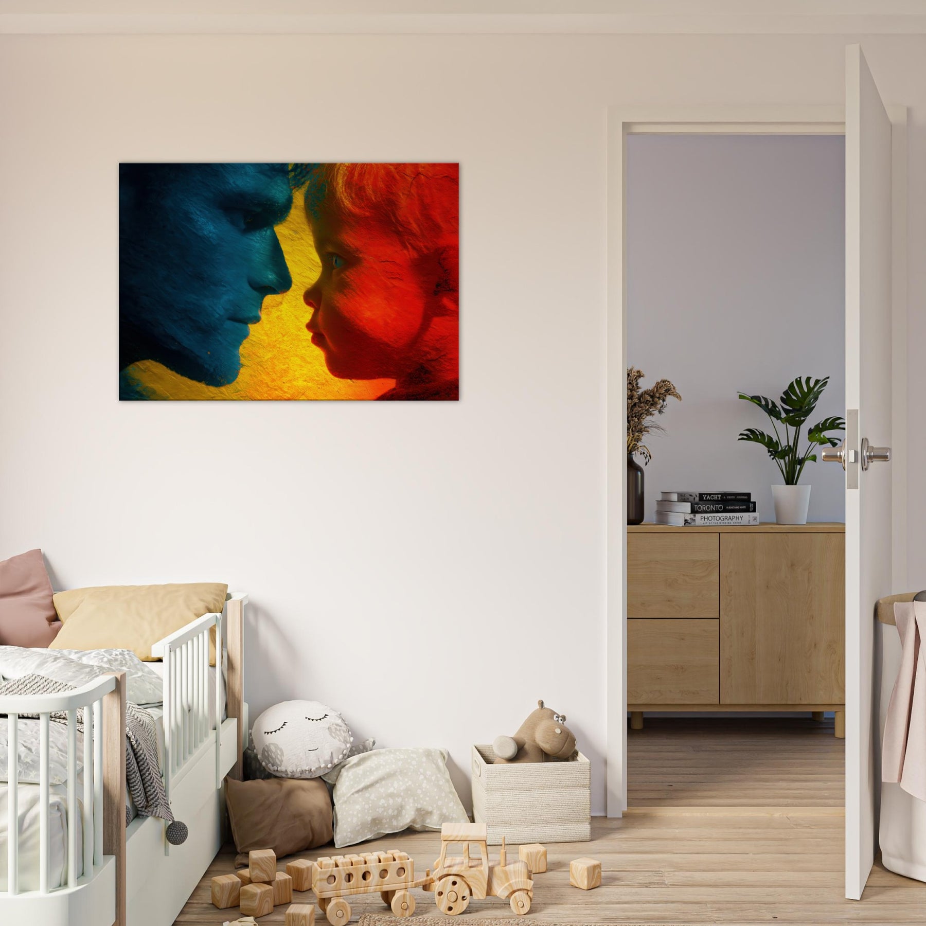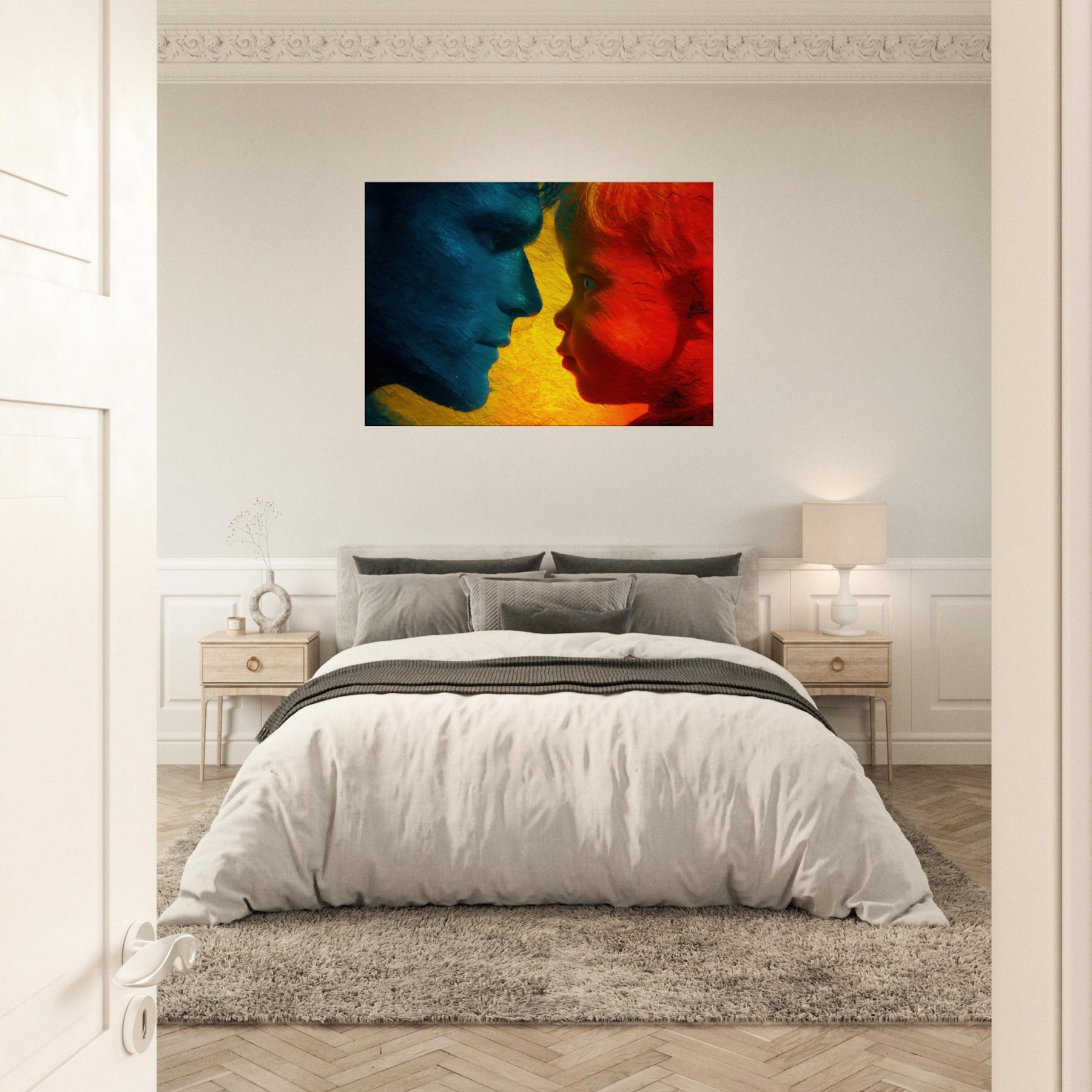 Let this abstract study of a parent and child flood your space with tenderness and tension. Through sculpted silhouettes and a daring dual palette, the moment feels both intimate and expansive, as if the room itself is listening. The piece hums with quiet energy, turning walls into a stage where connection becomes a living, breathing atmosphere. Perfect above a sofa or in a hallway, it invites slow breath, conversation, and a sense of belonging in any home.