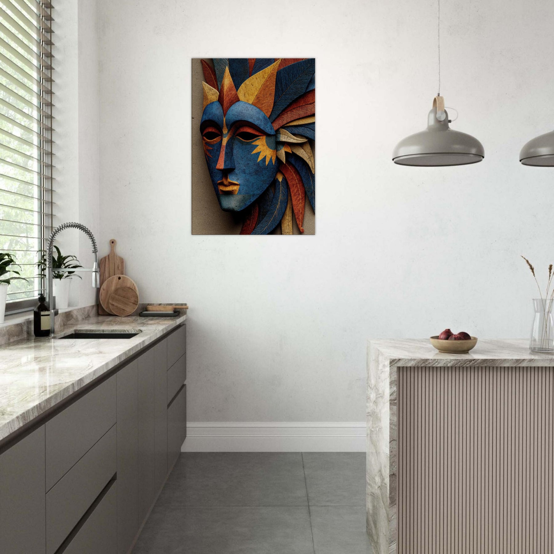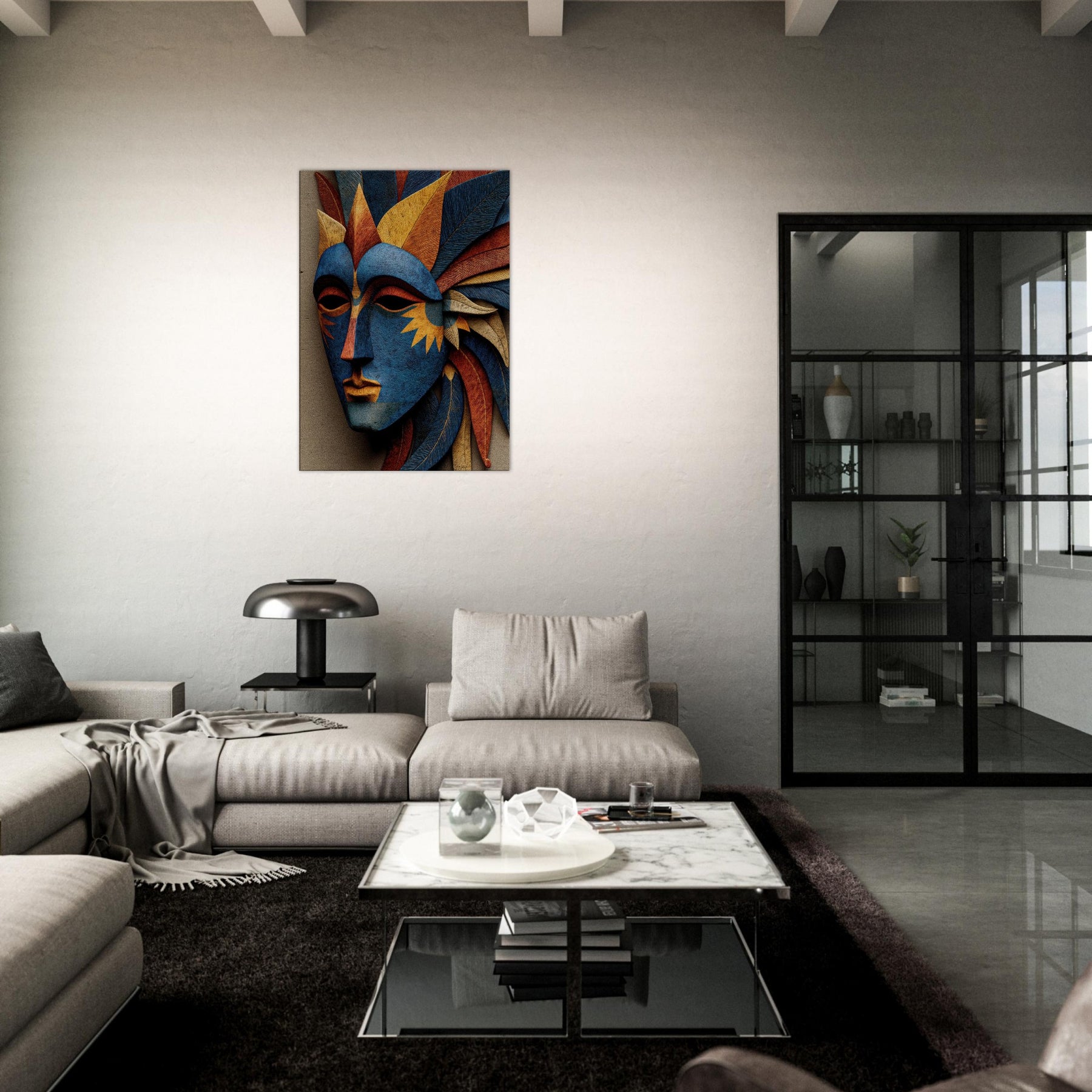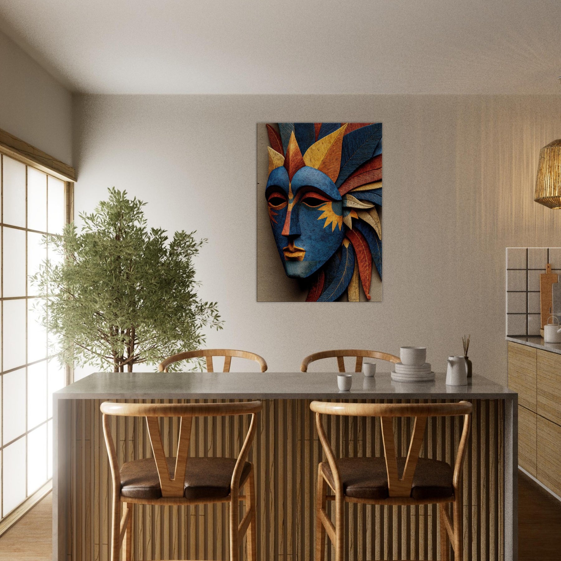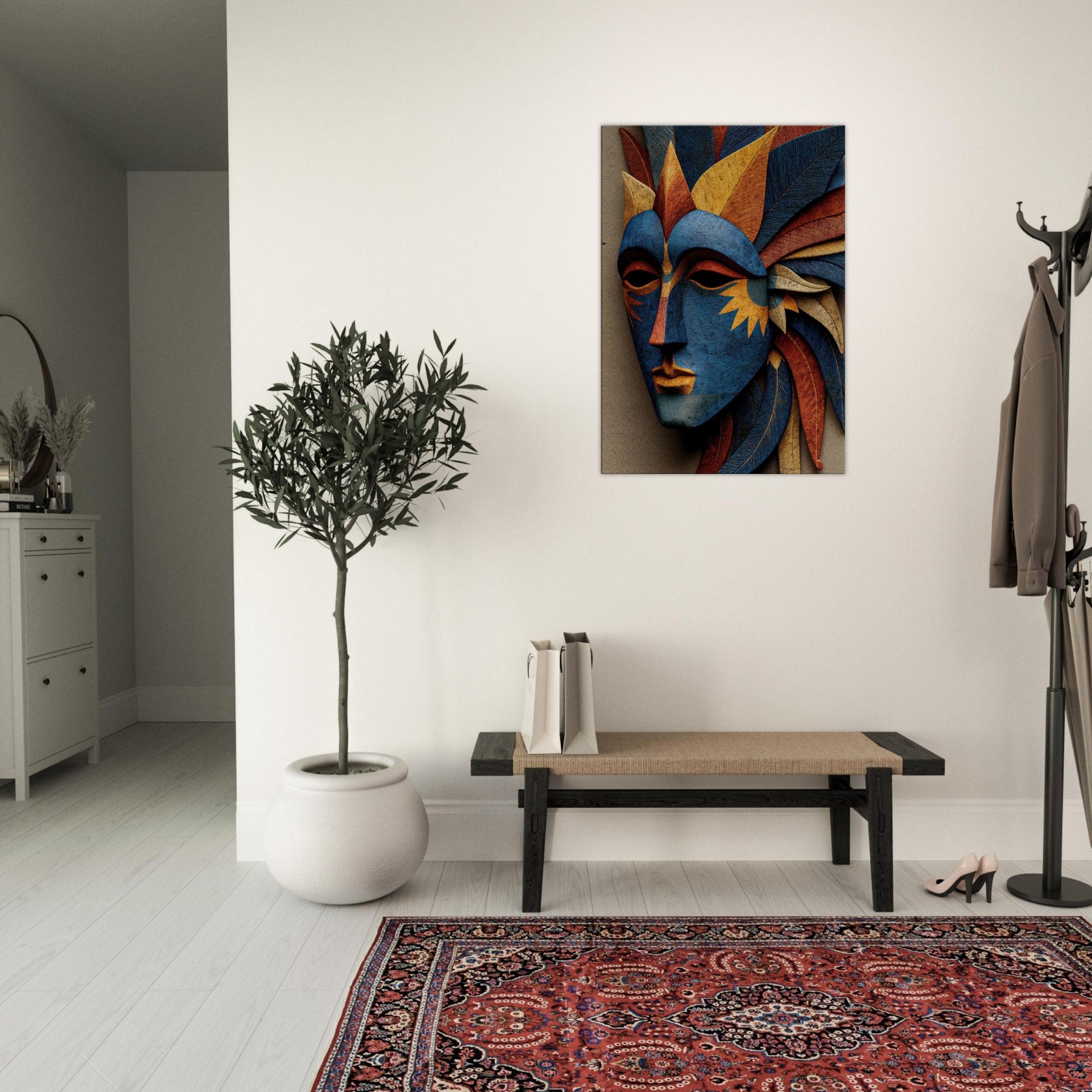 Step close to this Venetian Mask and you step into a memory theater where color breathes. A blue face framed by sunlit gold and warm orange carries a quiet, mask wearing mood that shifts with the light. The layered textures feel like carved wood and weathered plaster, inviting contemplation and touch. Perfect for a living room or hallway, it becomes a focal point that whispers drama, mystery, and grace, elevating neutrals with a radiant, refined energy.